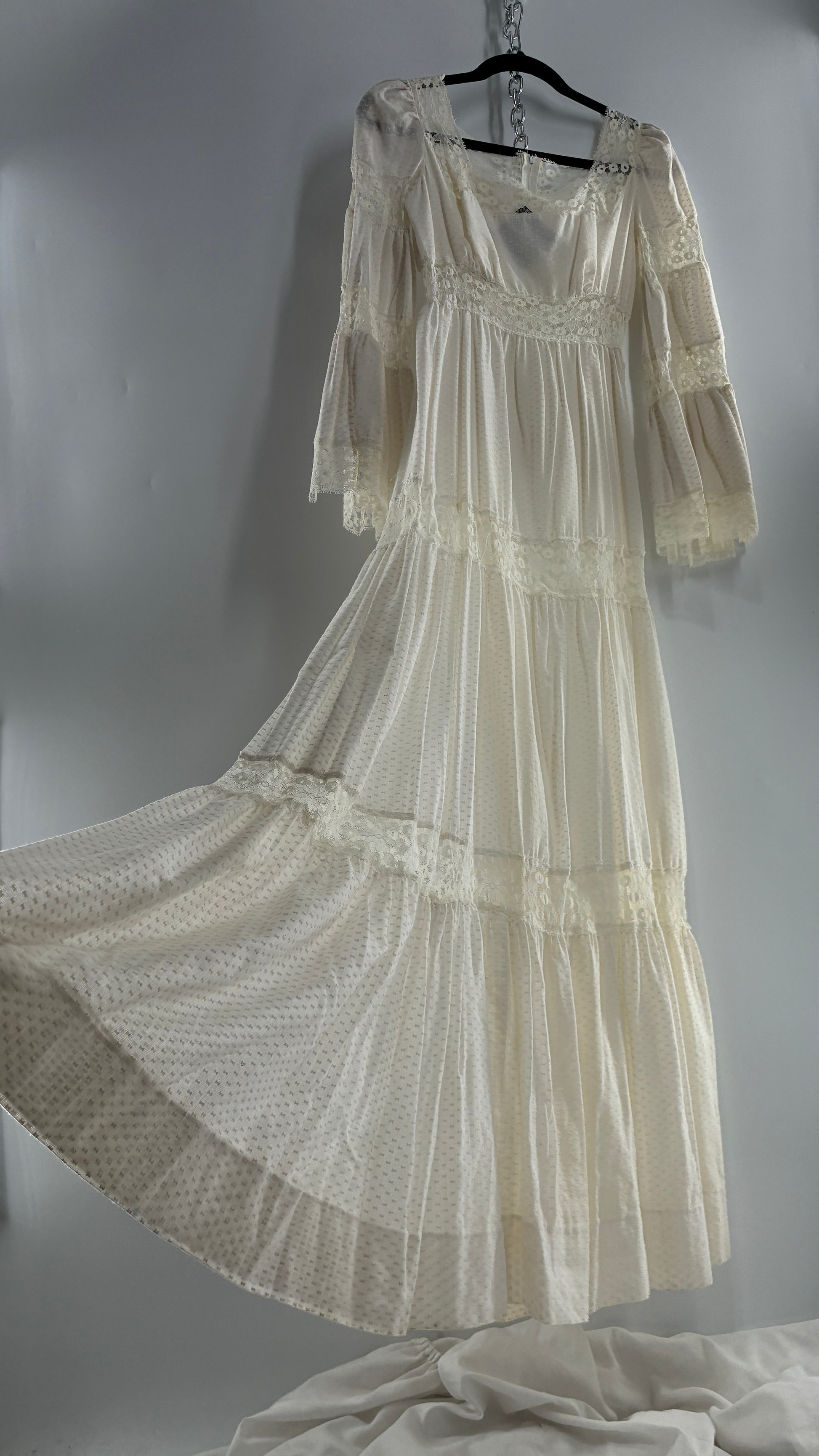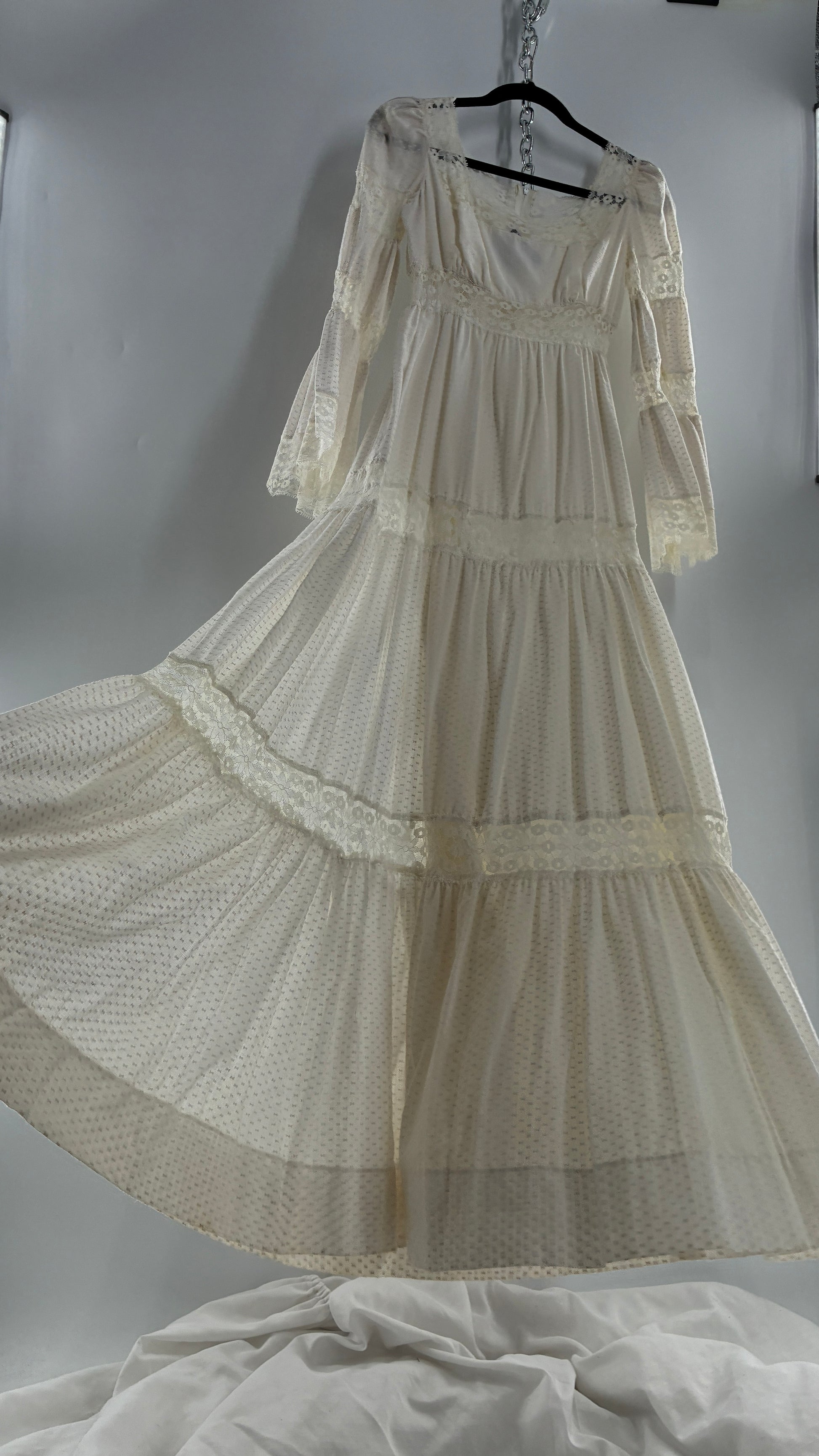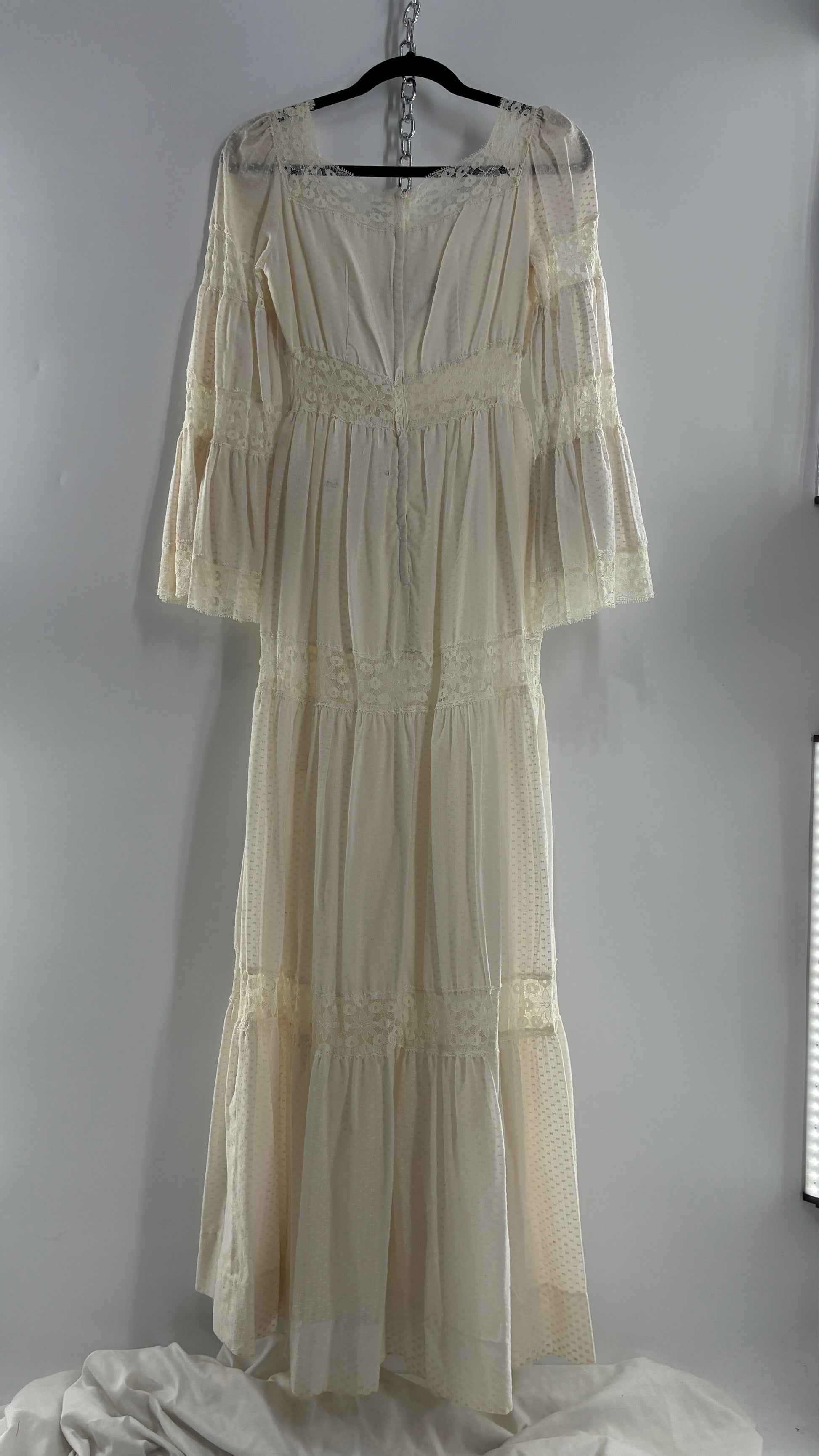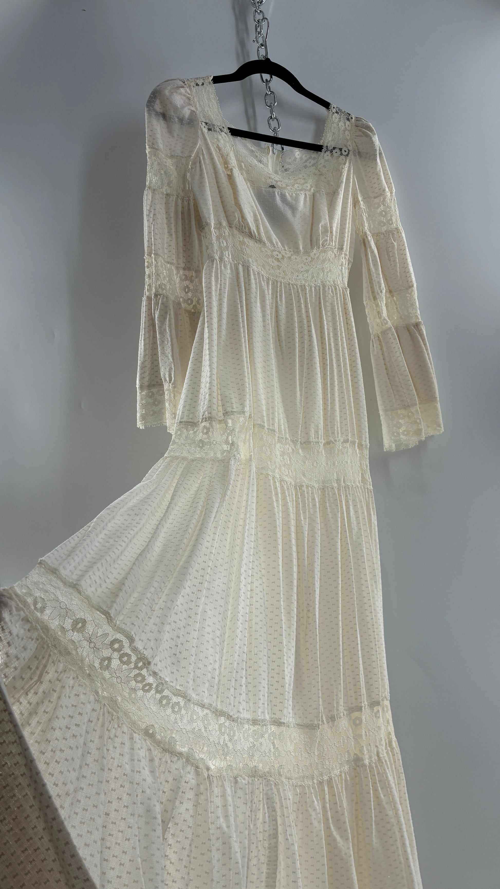 Vintage 1970s Off White Handmade Bell Sleeve Possible Wedding Gown (XS/Small)