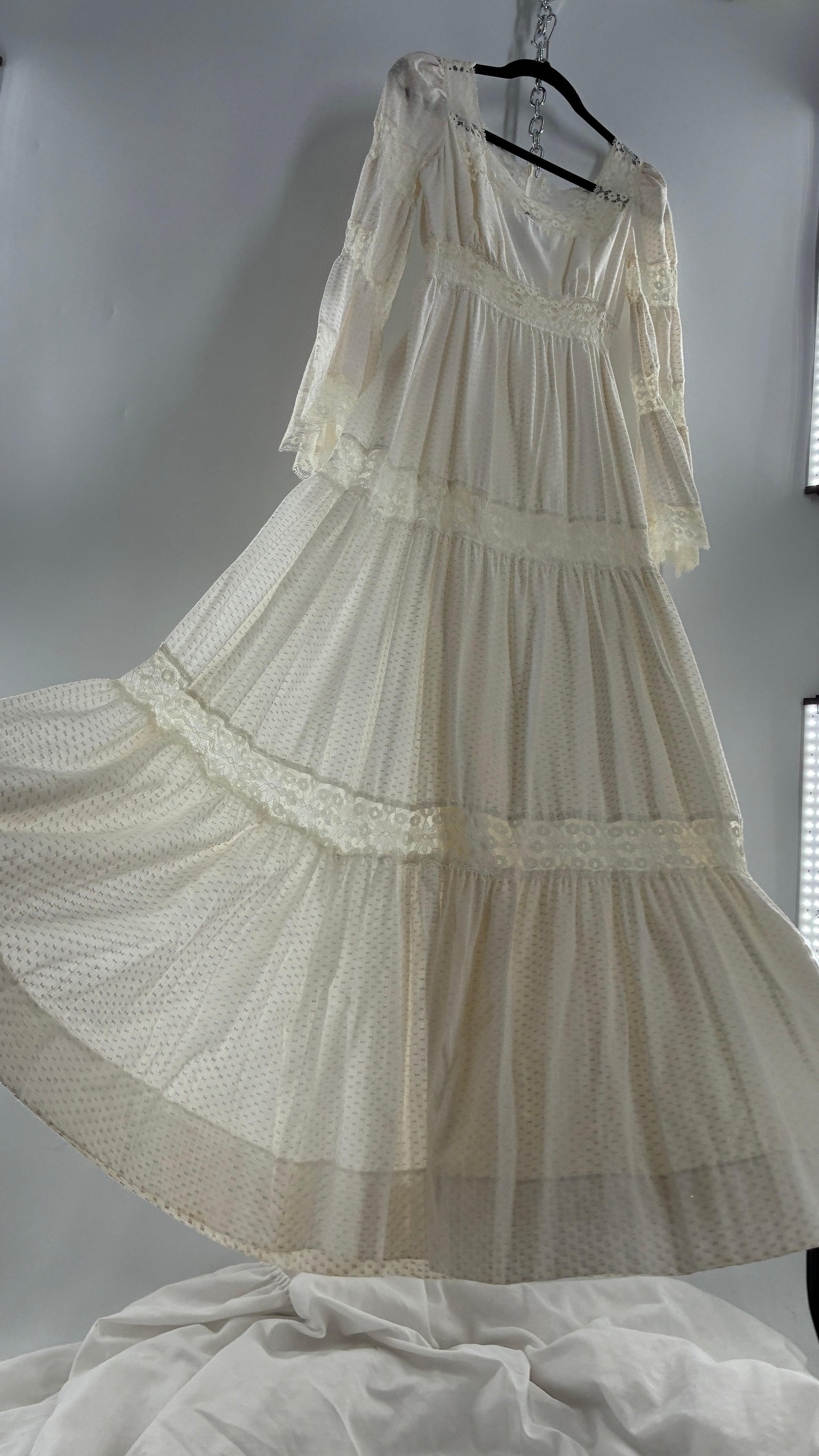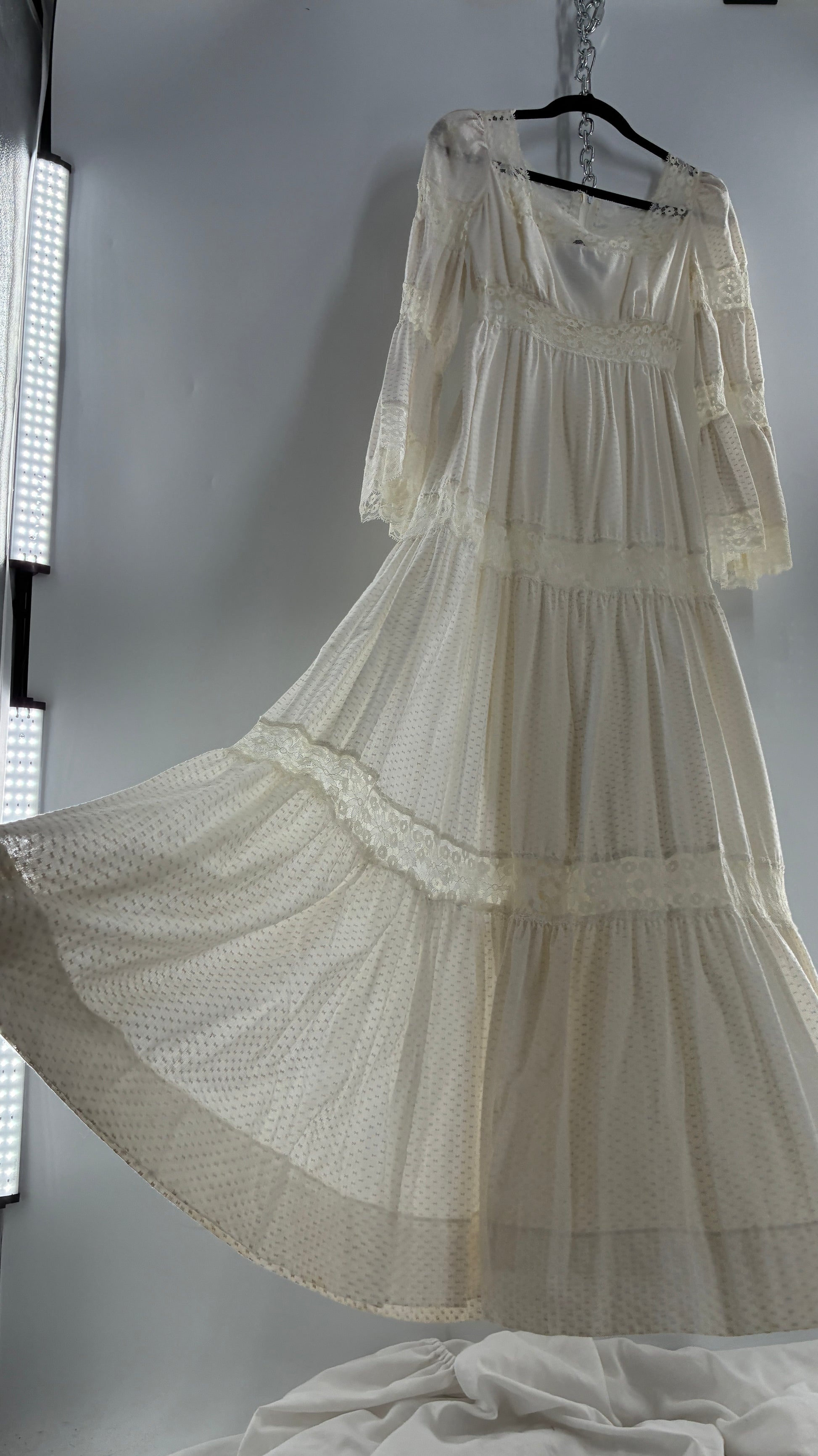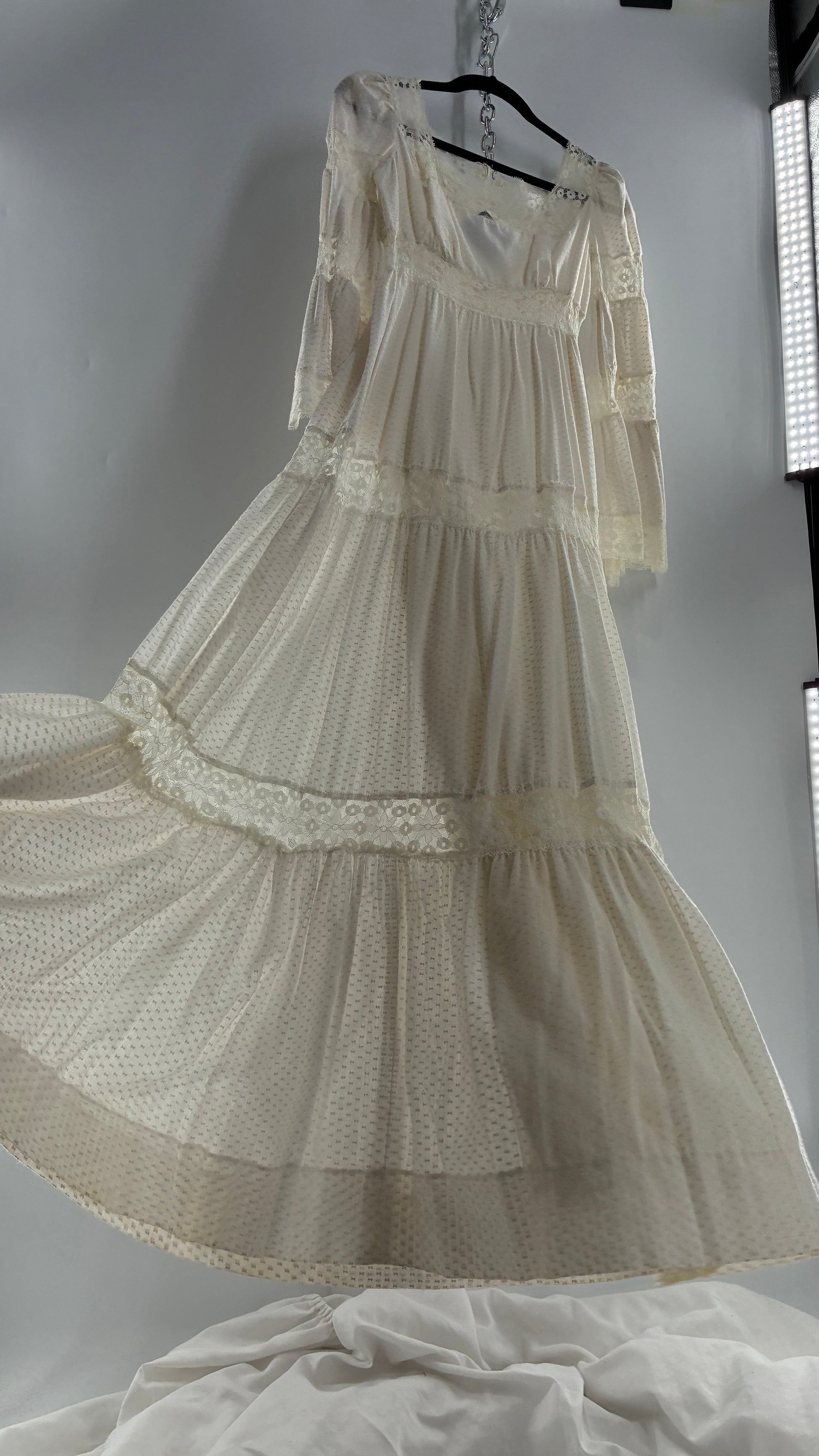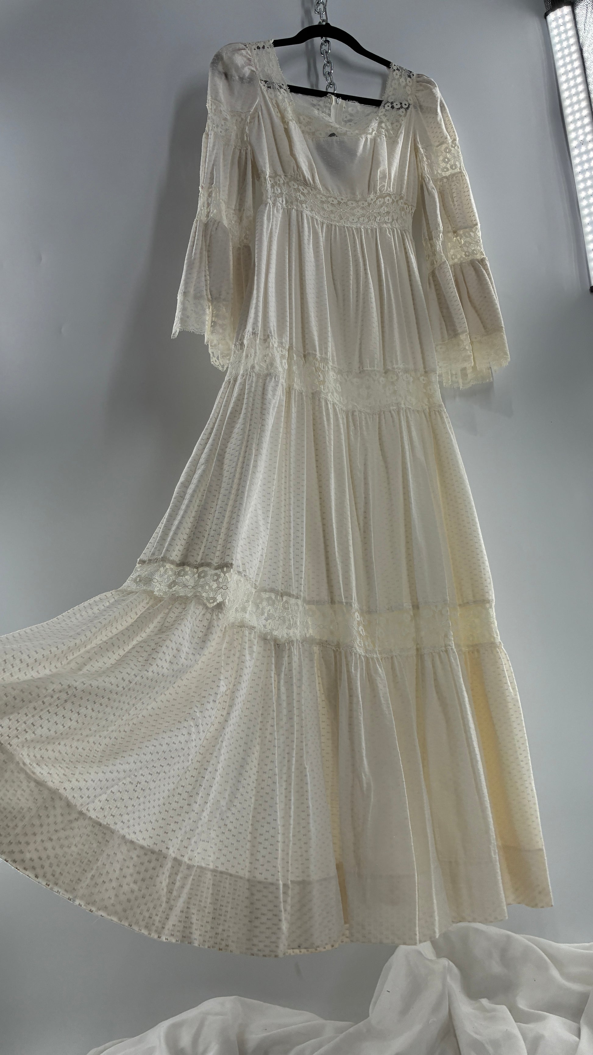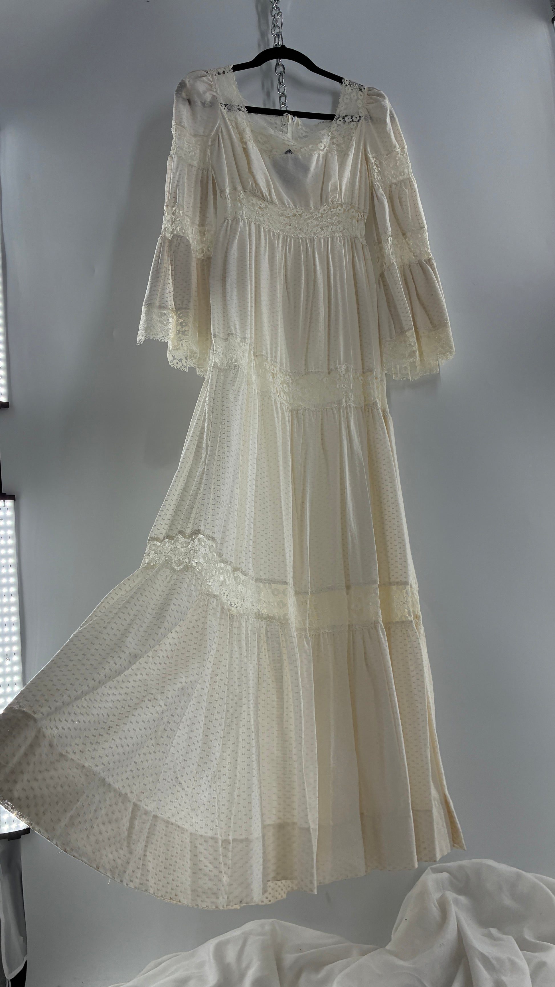 Vintage 1970s Off White Handmade Bell Sleeve Possible Wedding Gown (XS/Small)