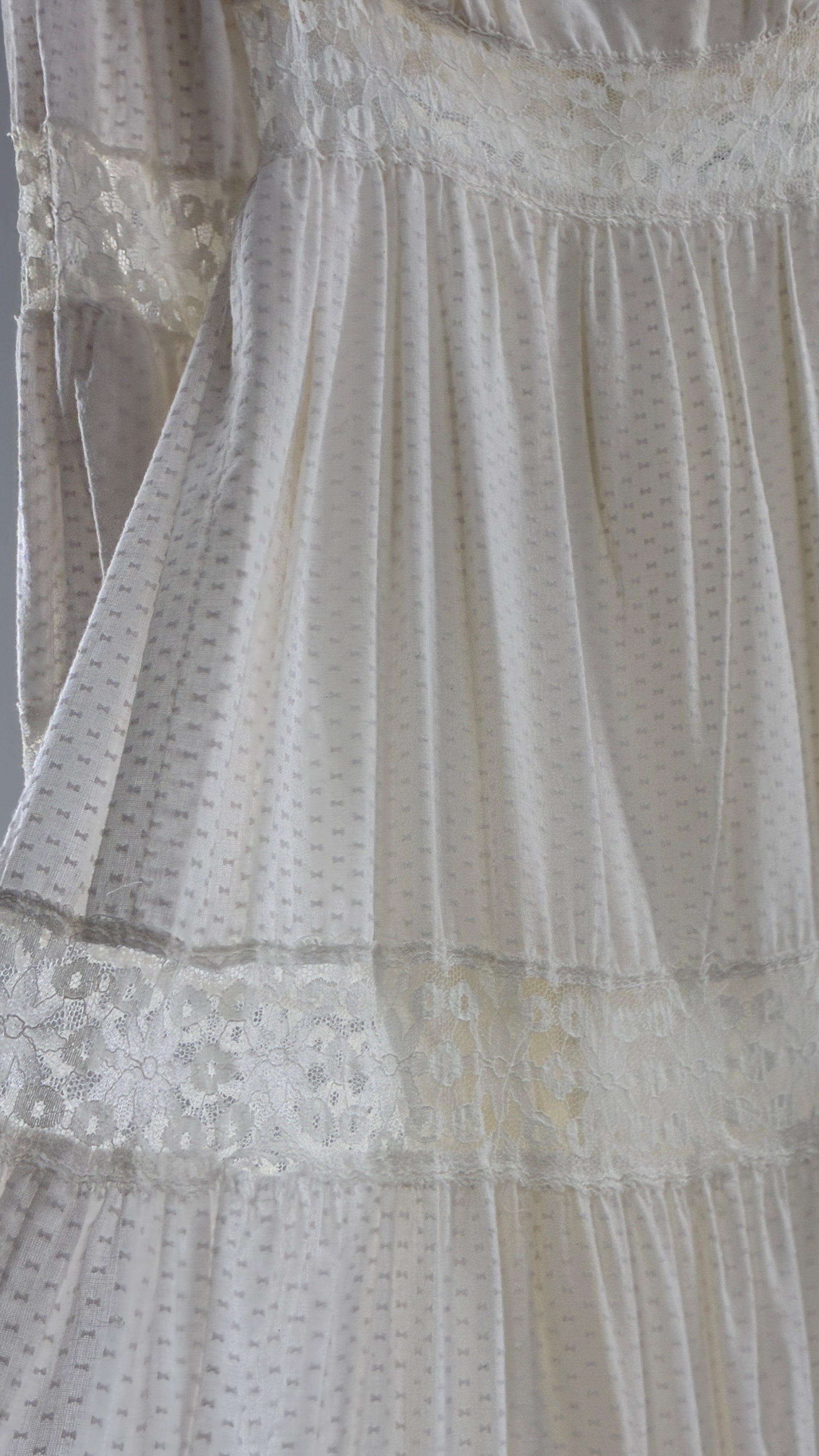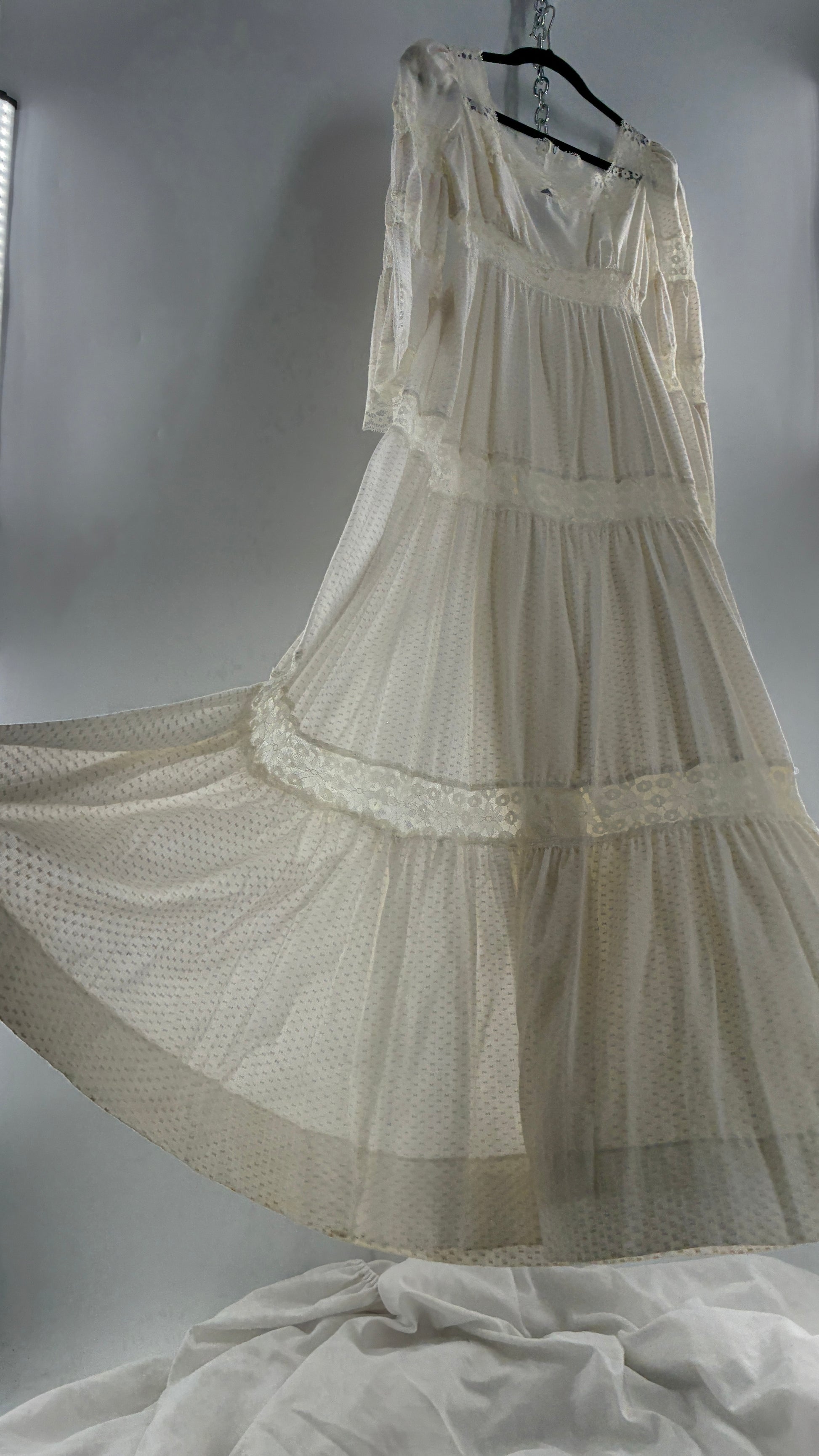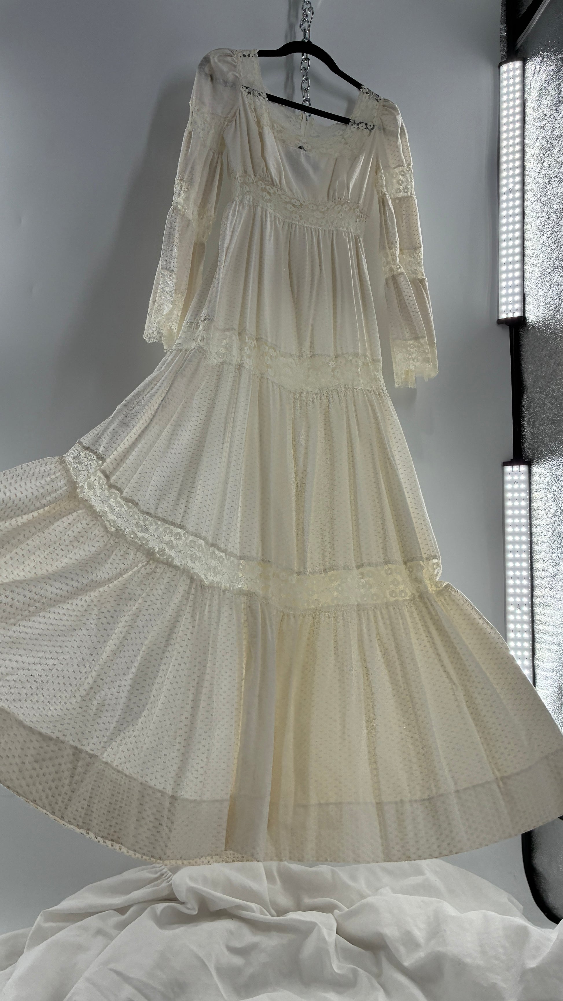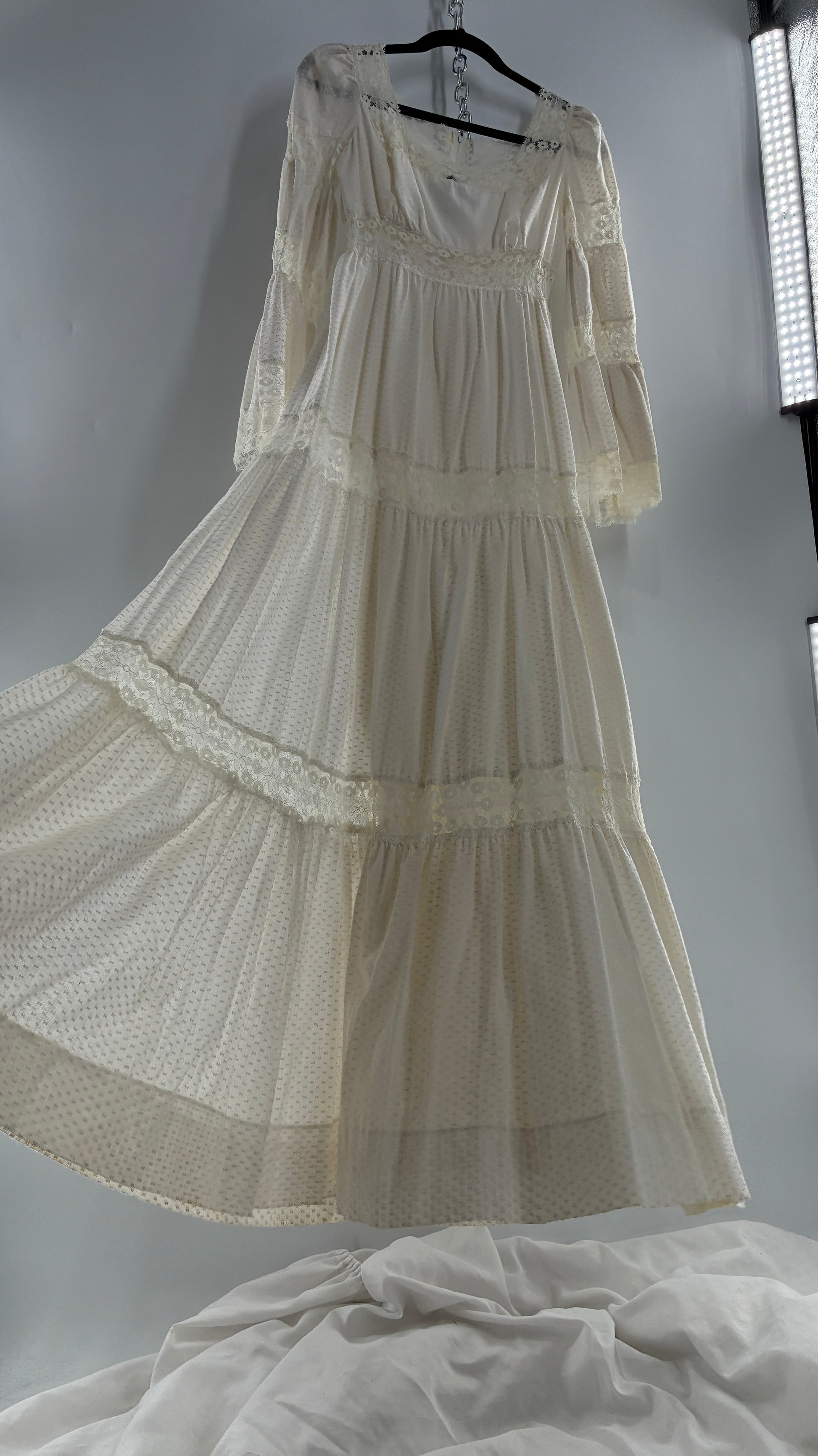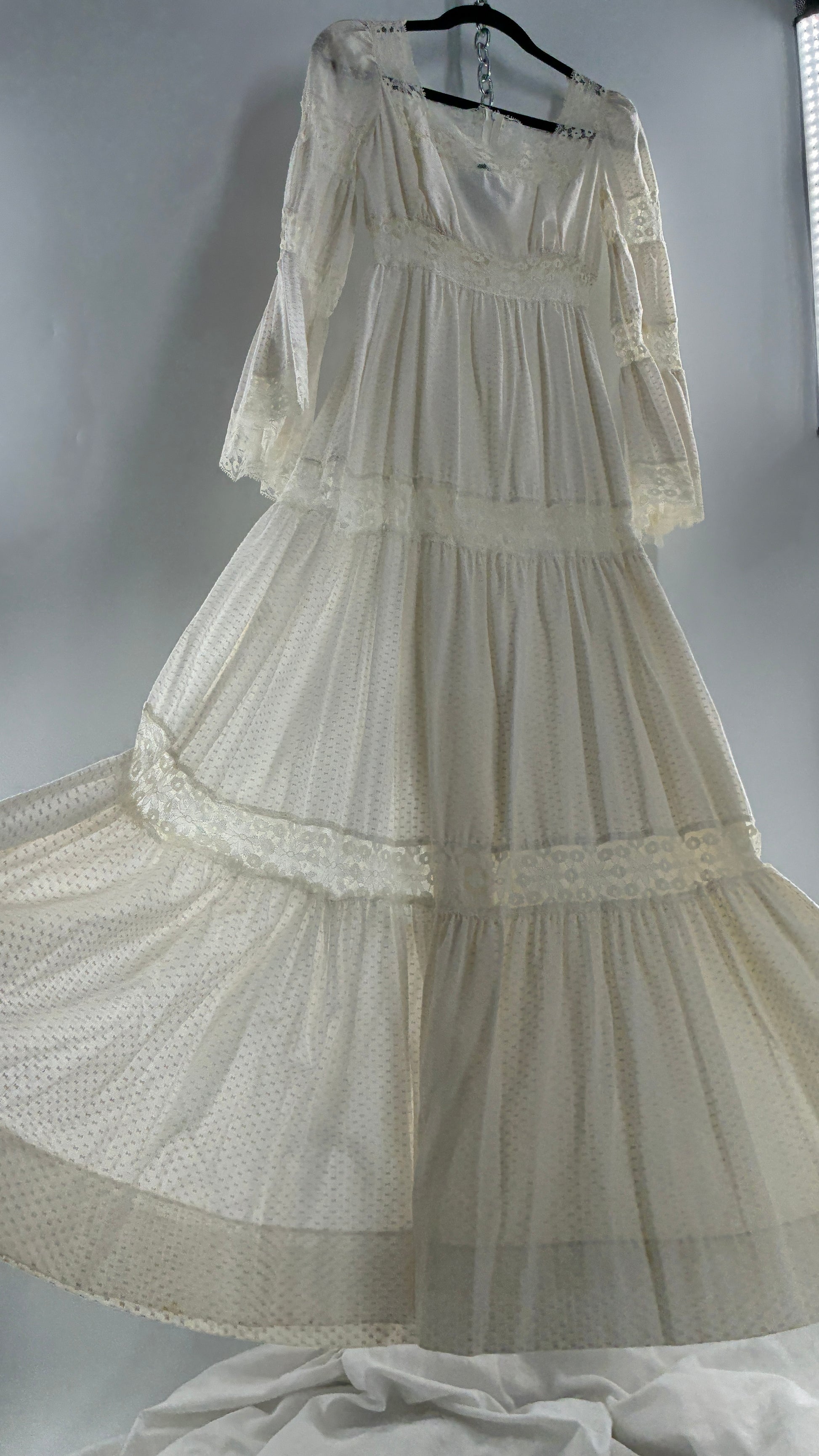 Vintage 1970s Off White Handmade Bell Sleeve Possible Wedding Gown (XS/Small)