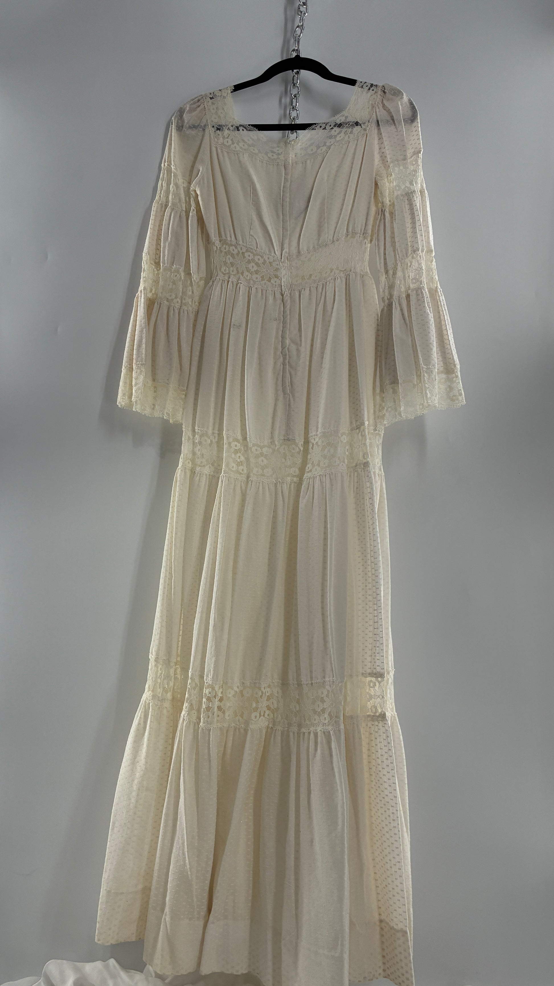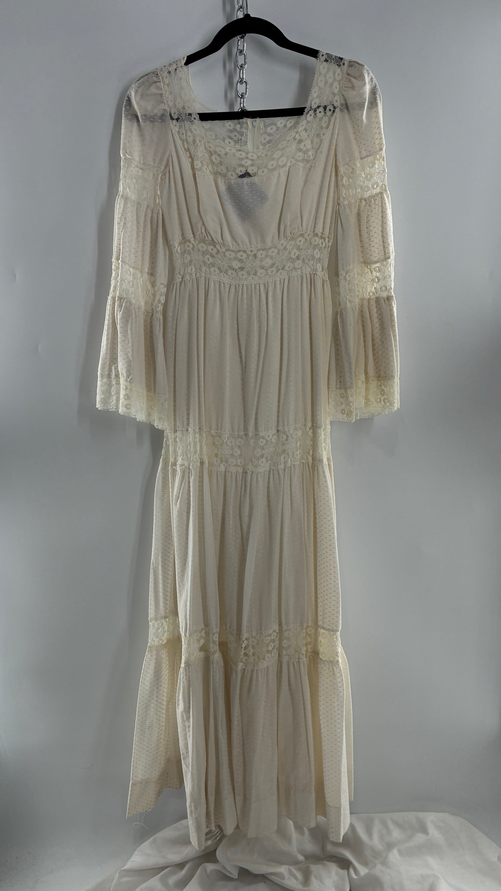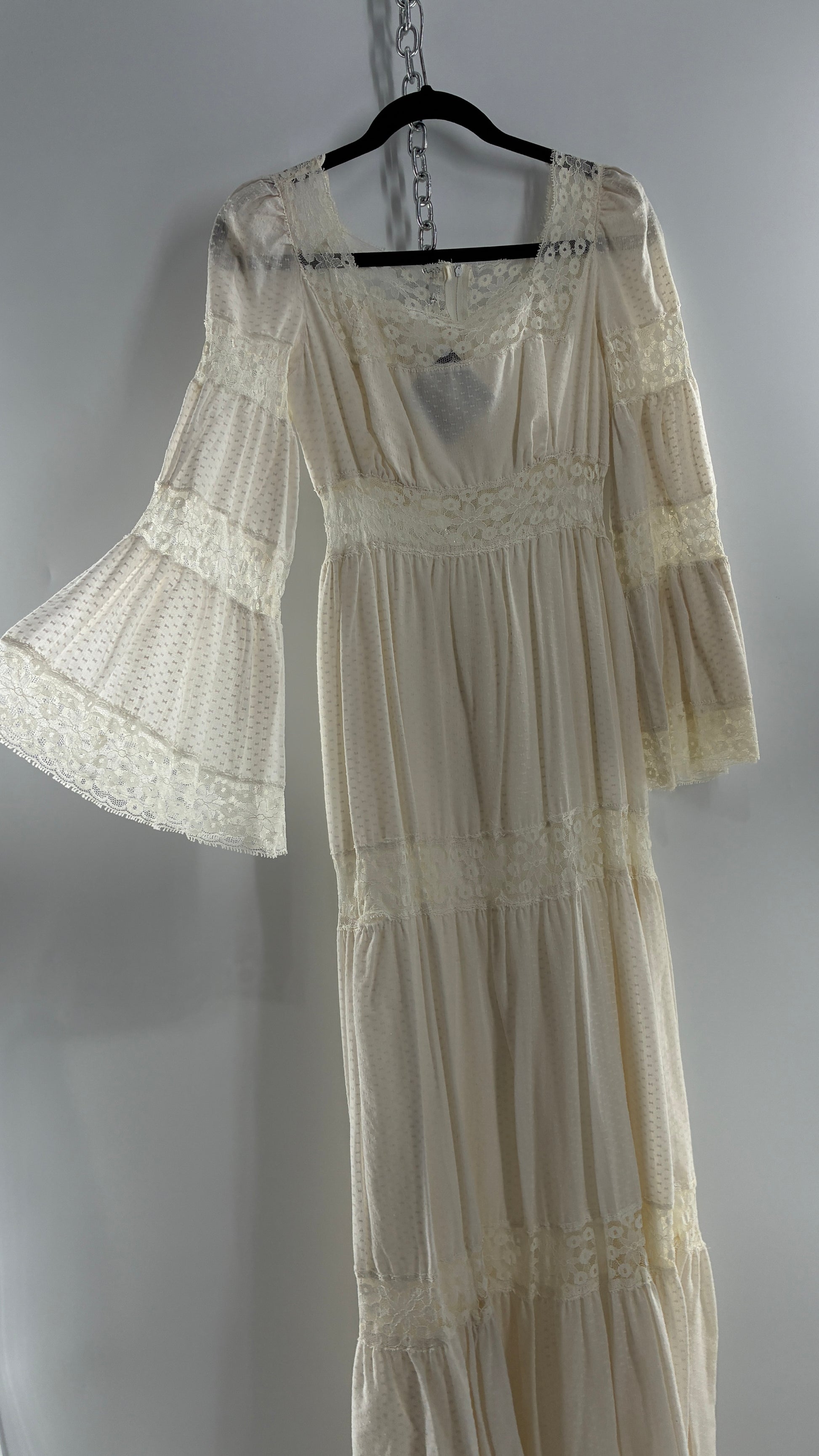 Vintage 1970s Off White Handmade Bell Sleeve Gown (XS/Small)