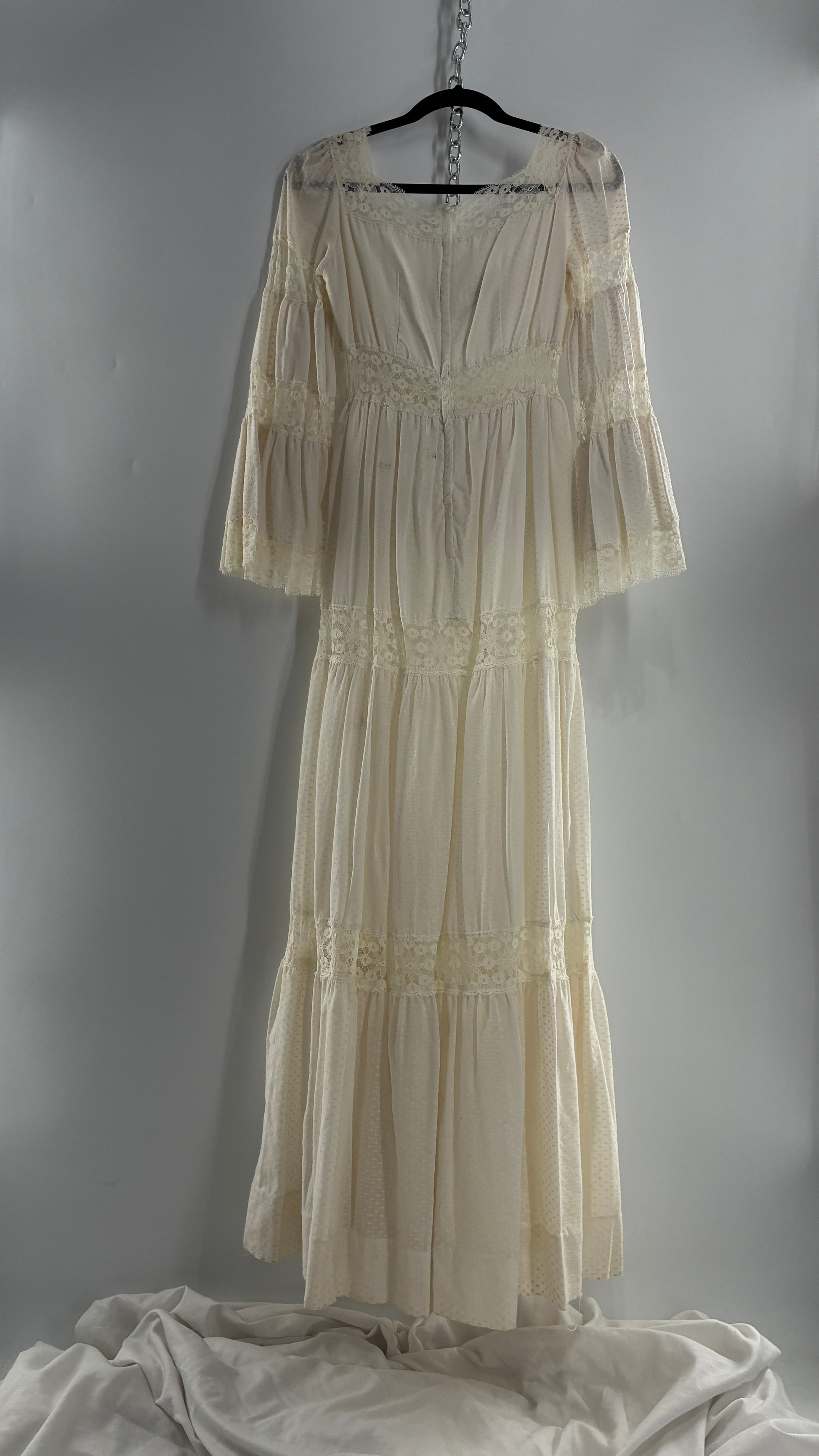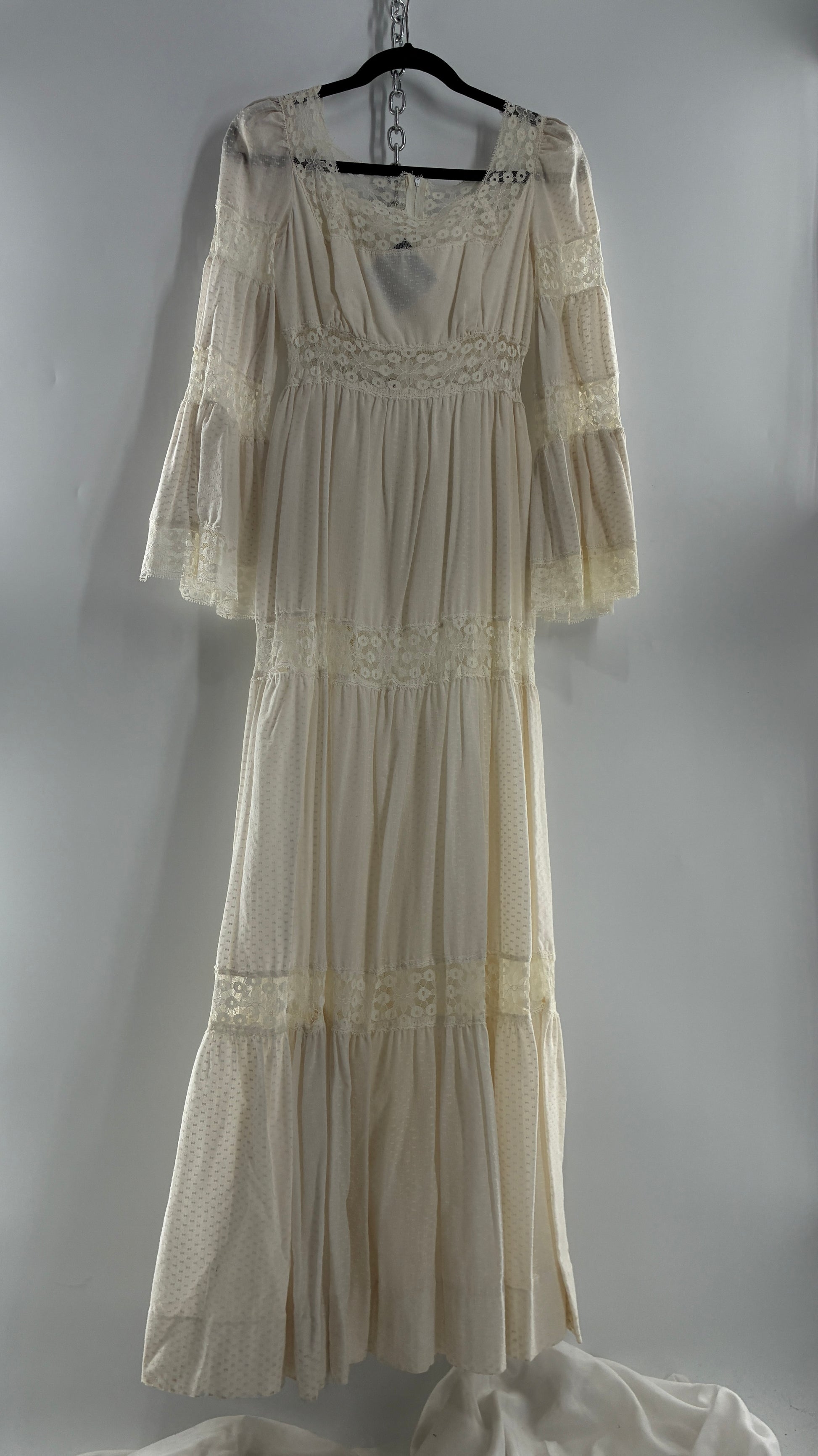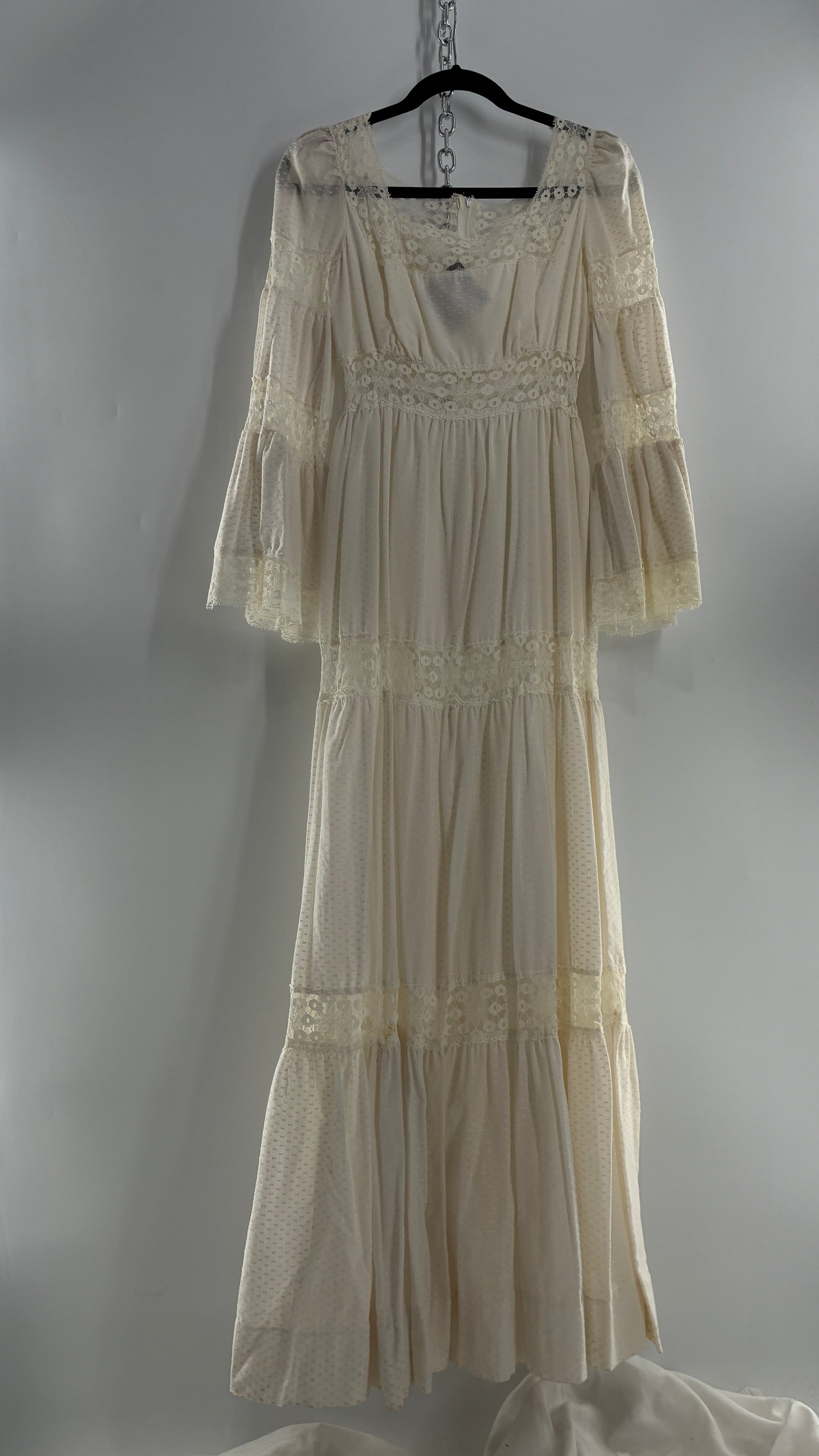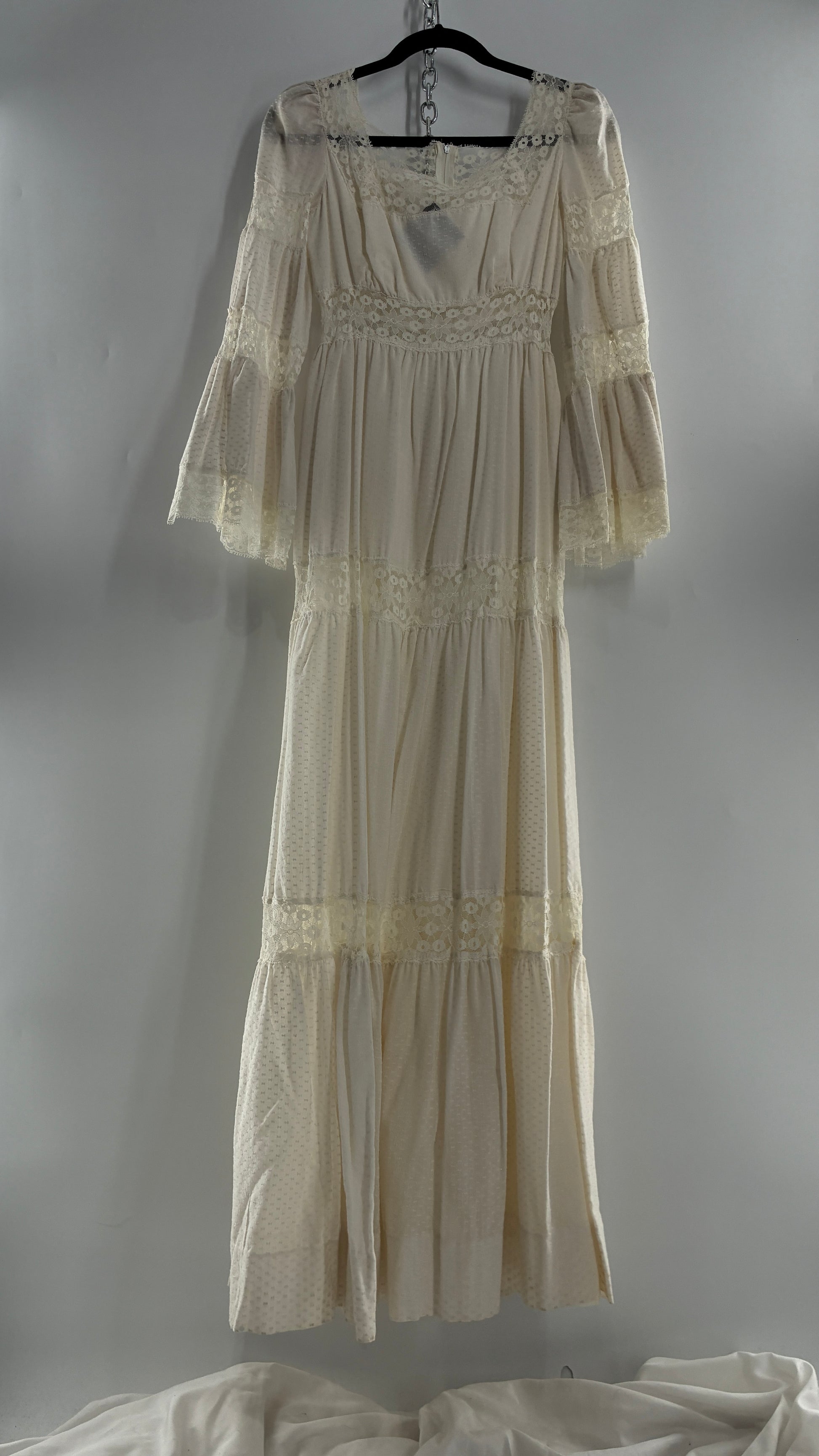 Vintage 1970s Off White Handmade Bell Sleeve Gown (XS/Small)