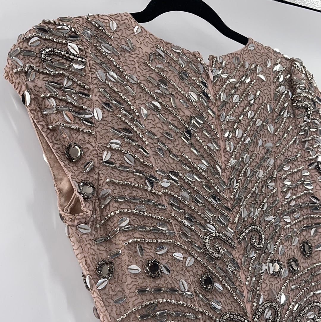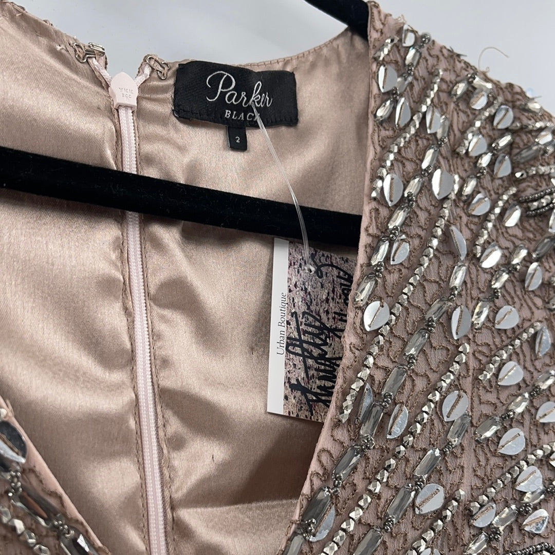 Parker Black Beige Beaded Midi Dress (Size 2)