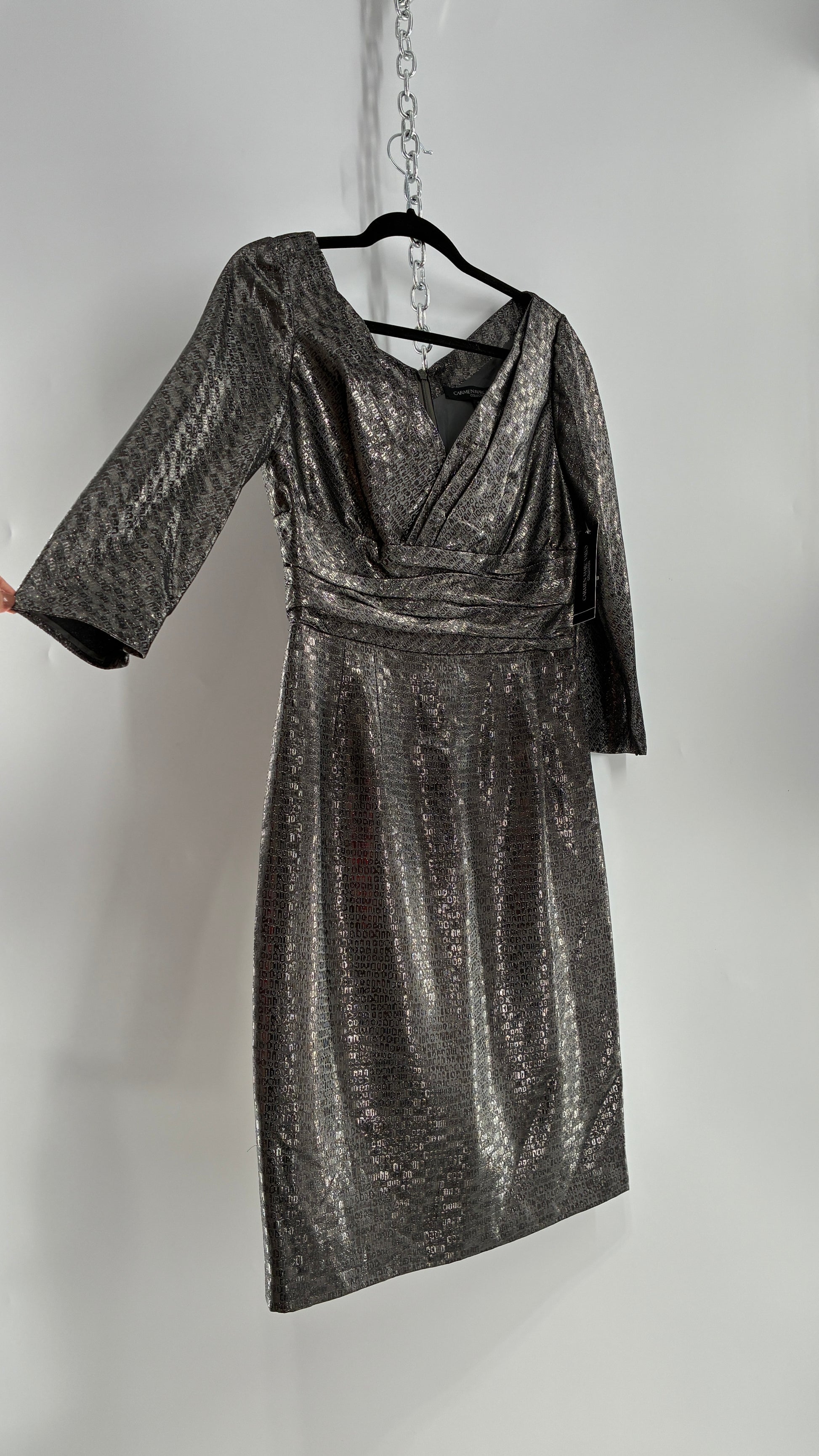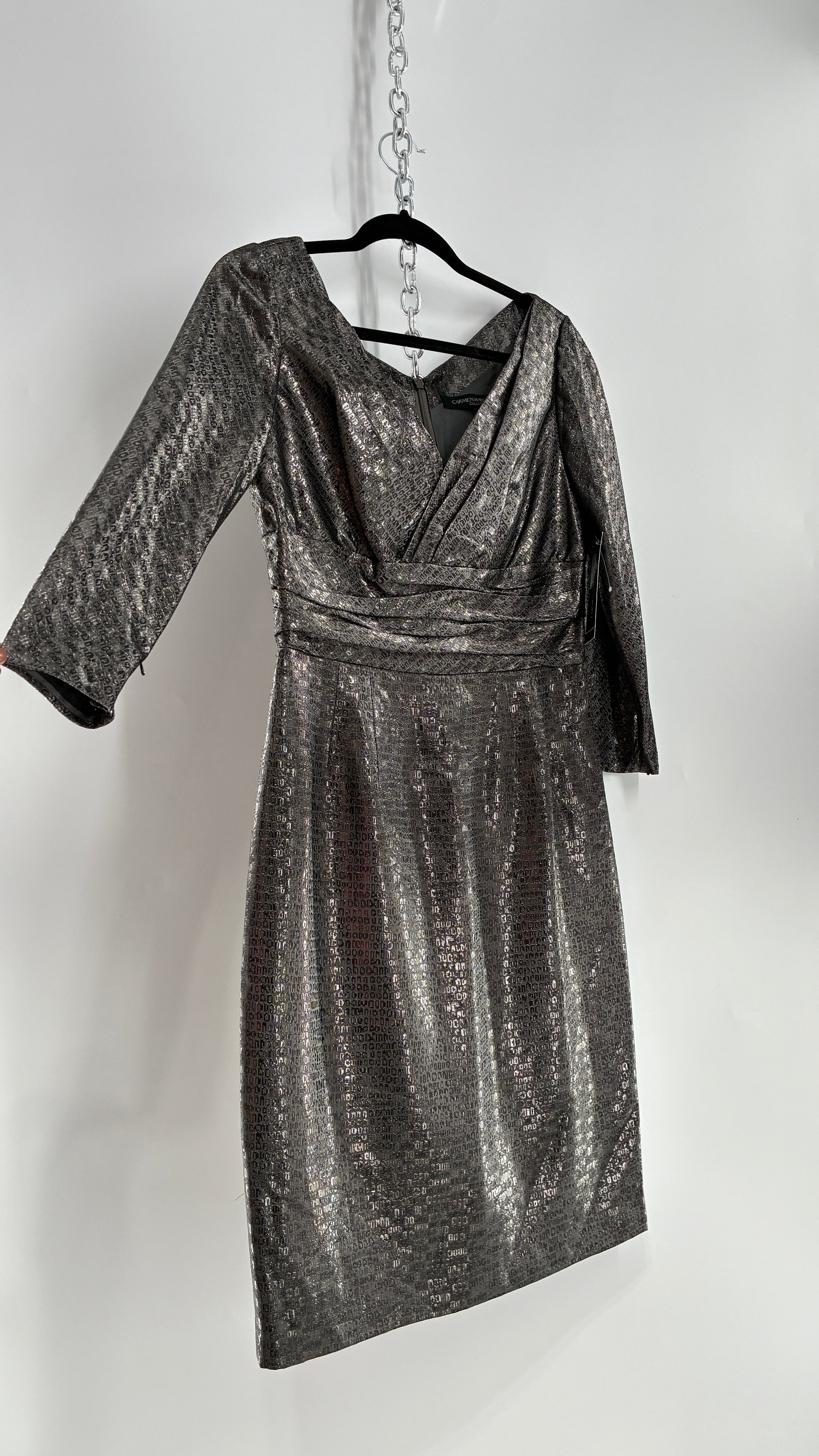 Vintage CARMEN MARC VALVO Metallic Liquid Silver Dress with Tags Attached (6)