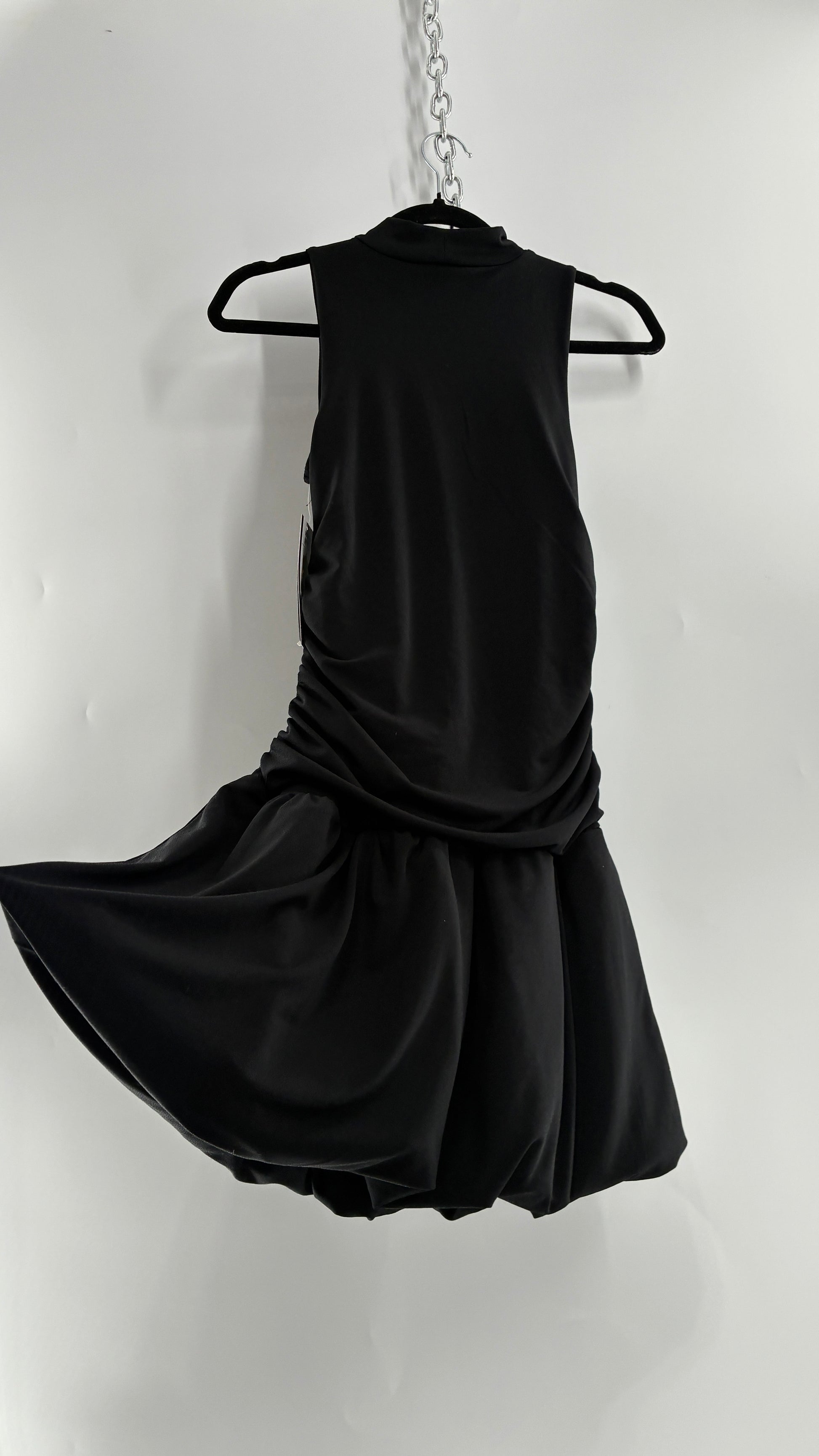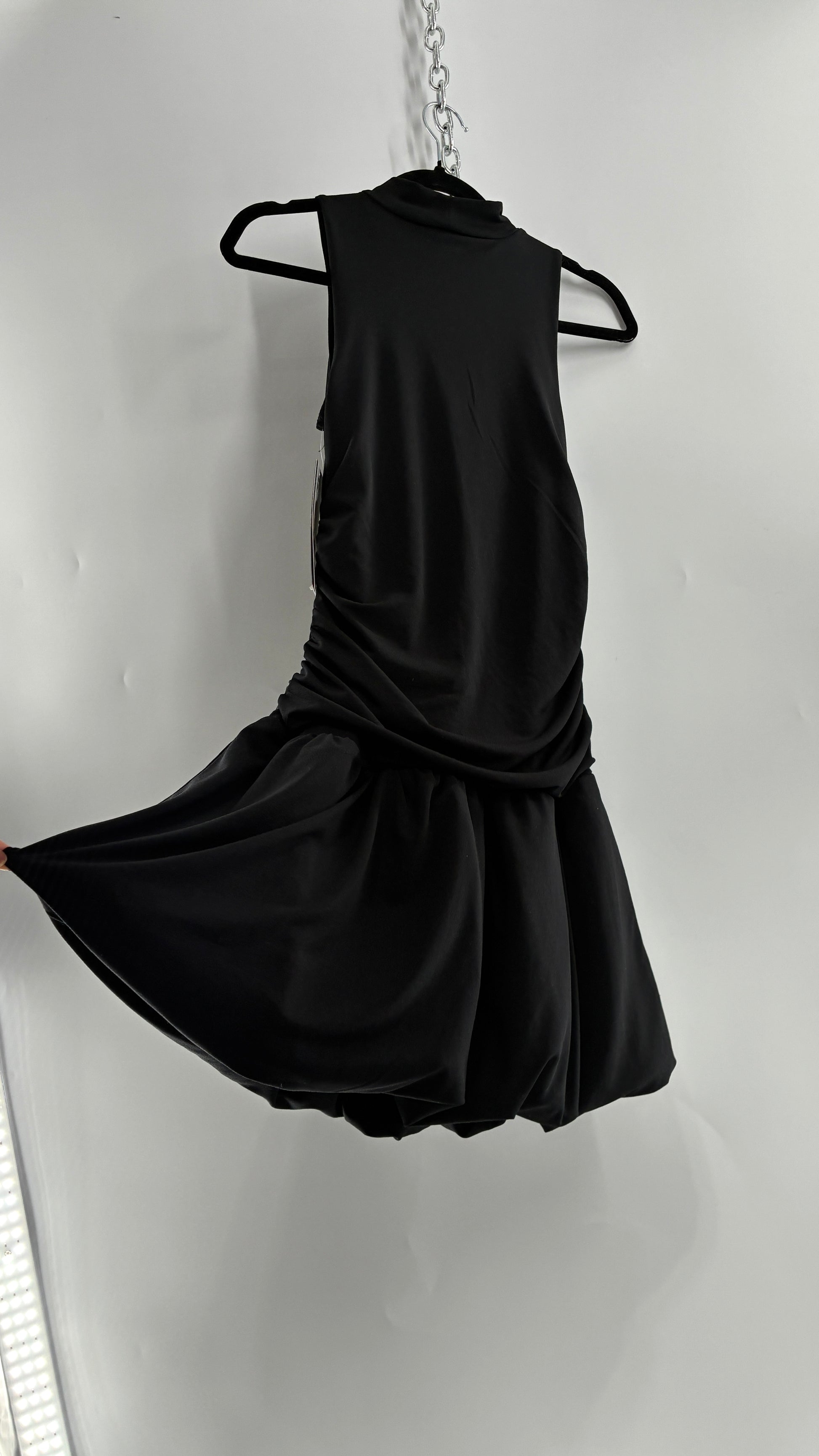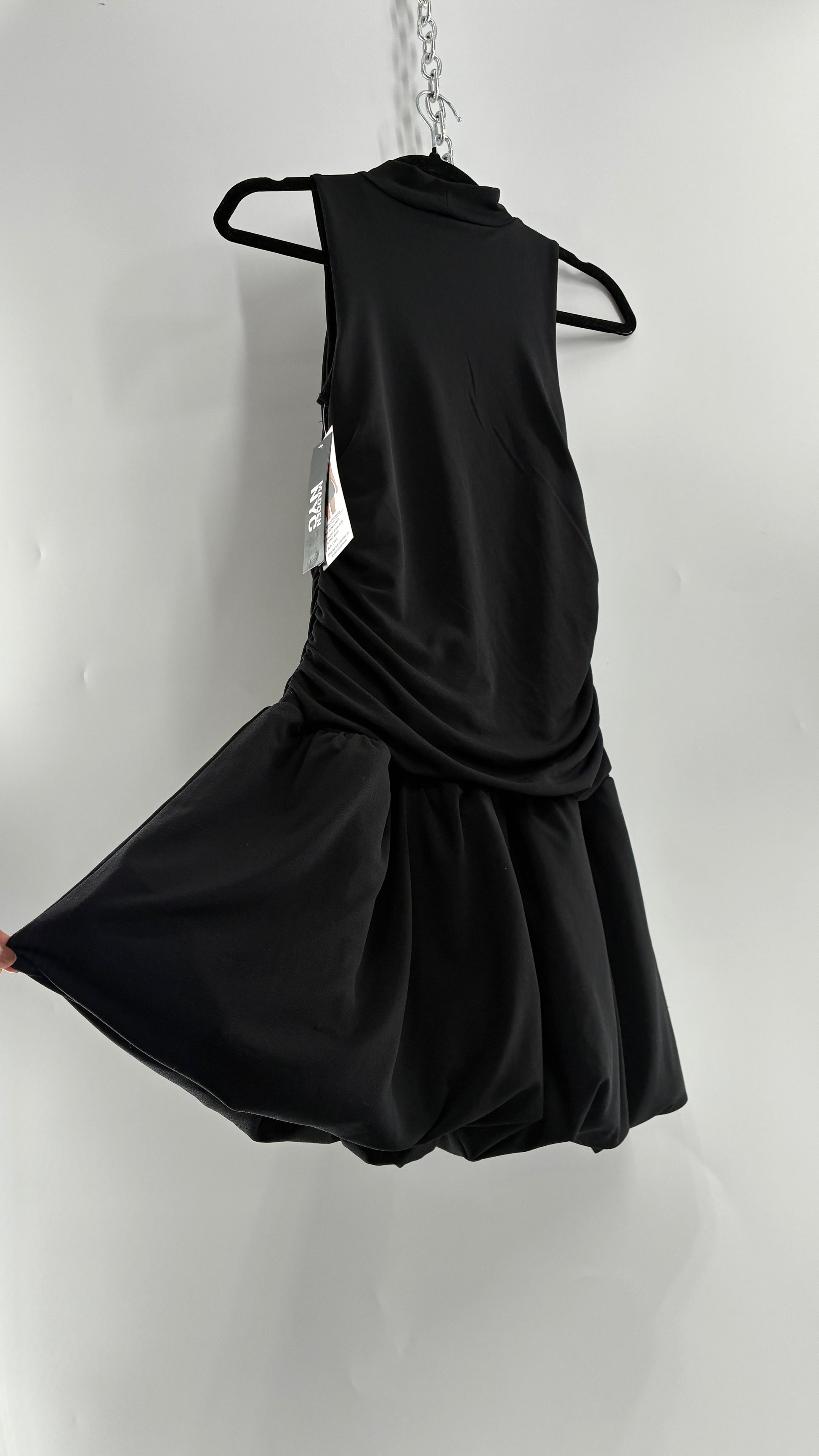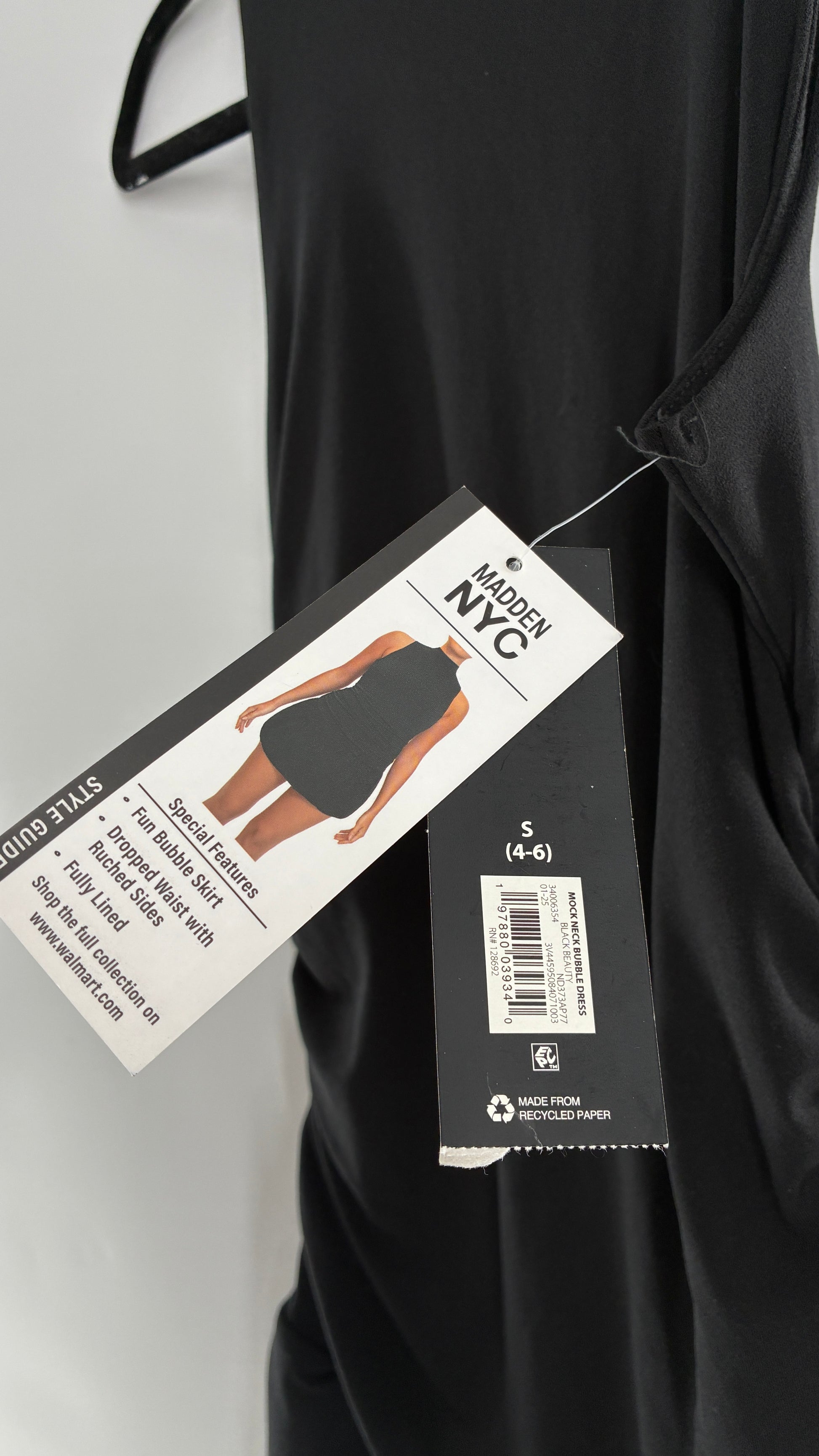 MADDEN NYC Black High Neck, Drop Waist, Bubble Hem Mini Dress with Tags Attached (XS-S)