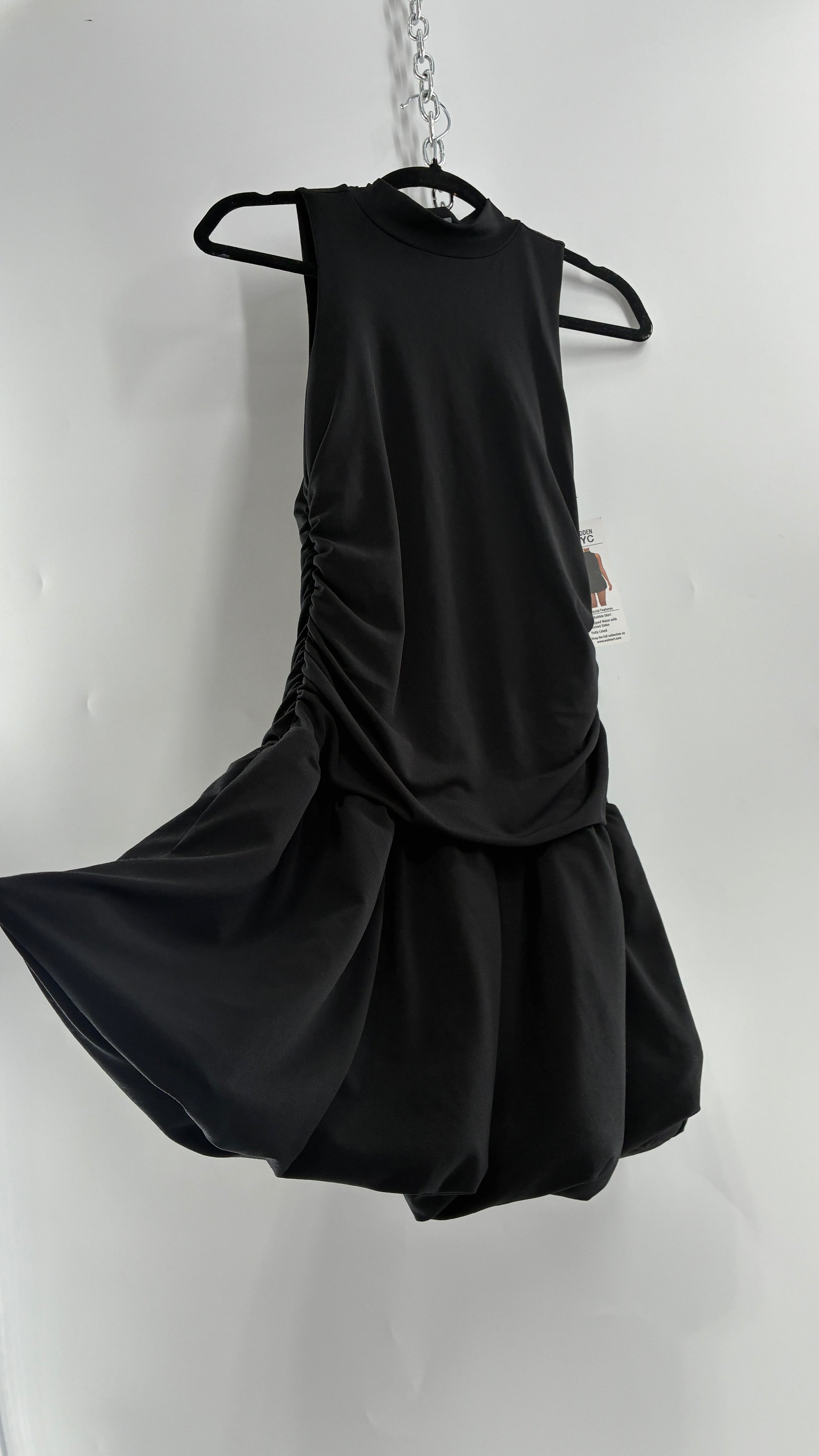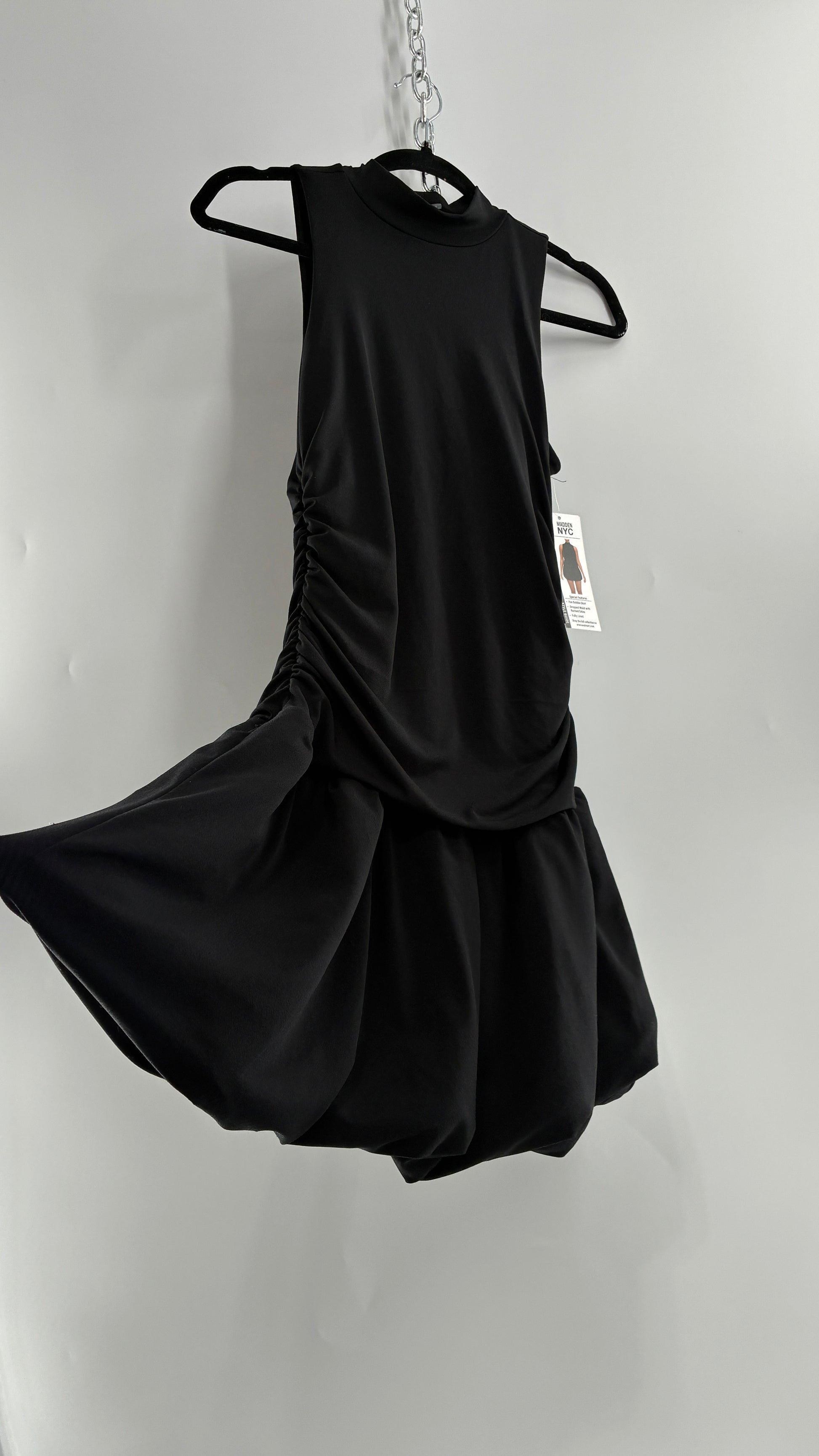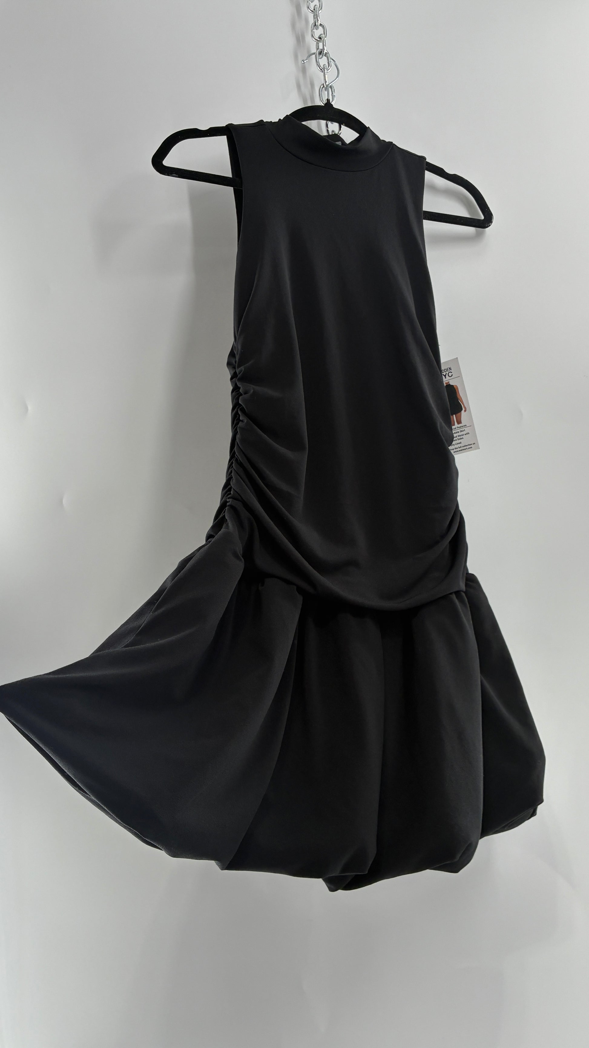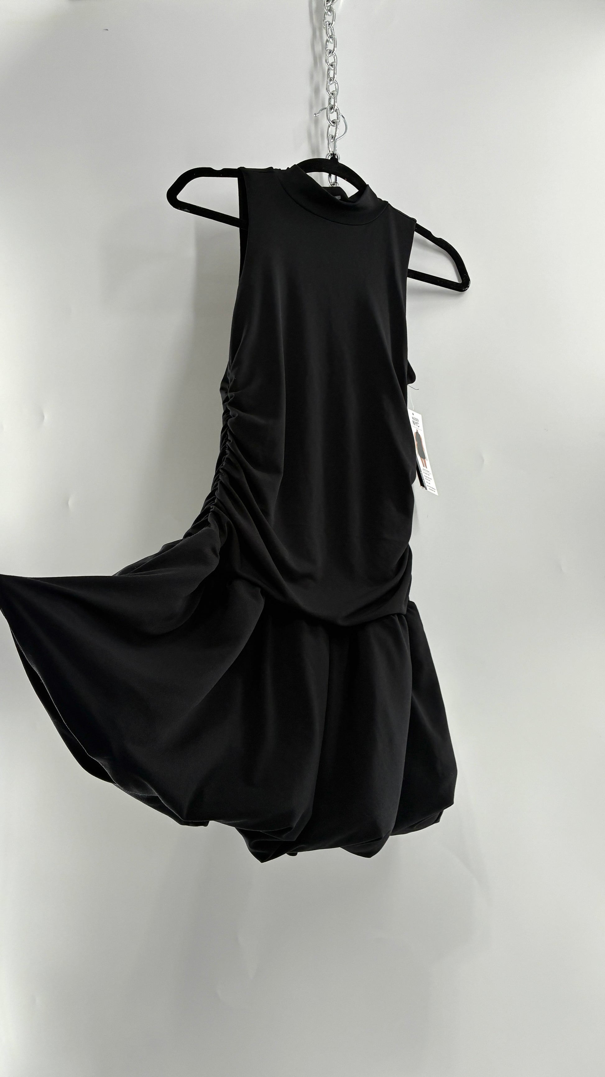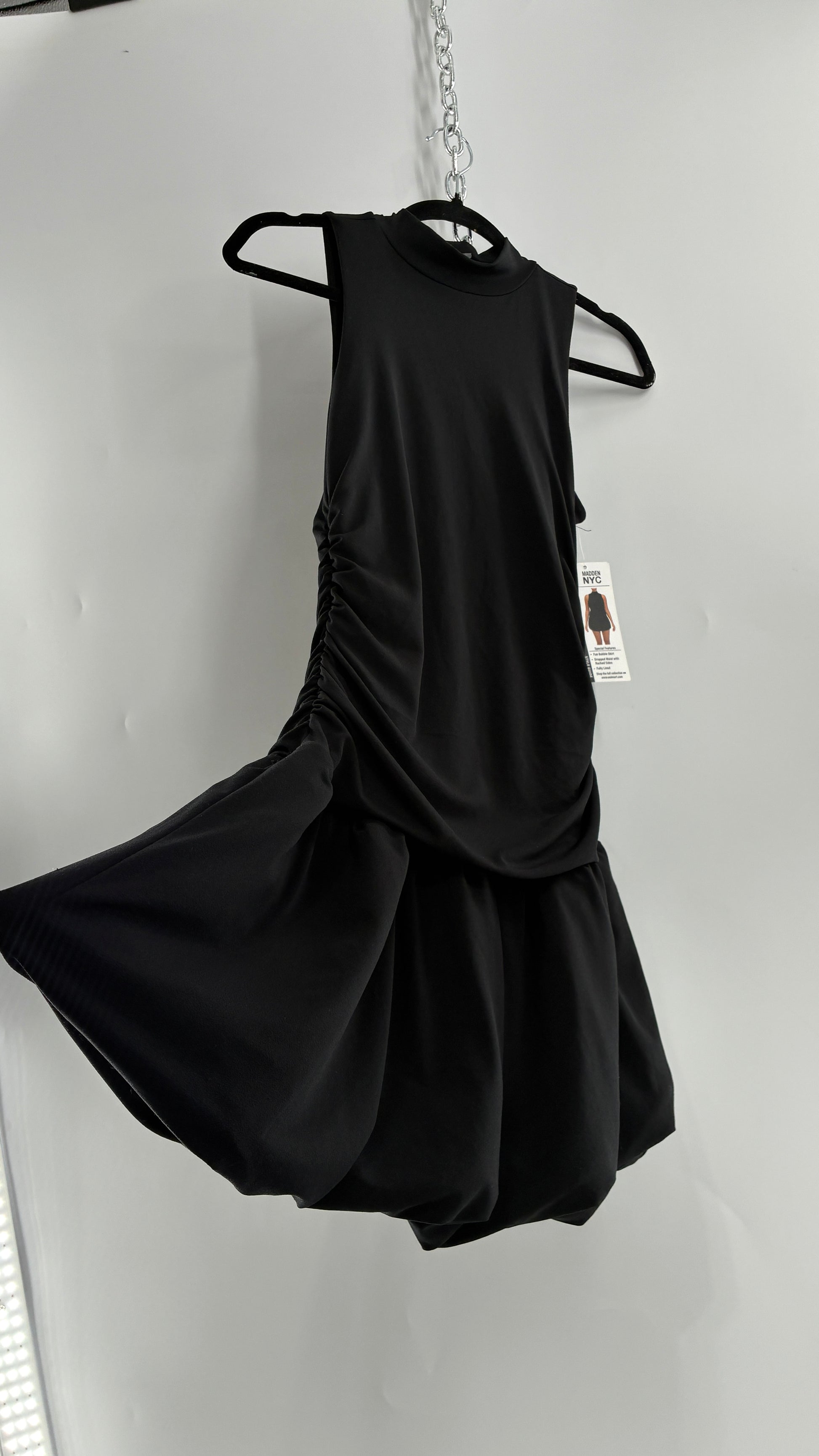 MADDEN NYC Black High Neck, Drop Waist, Bubble Hem Mini Dress with Tags Attached (XS-S)