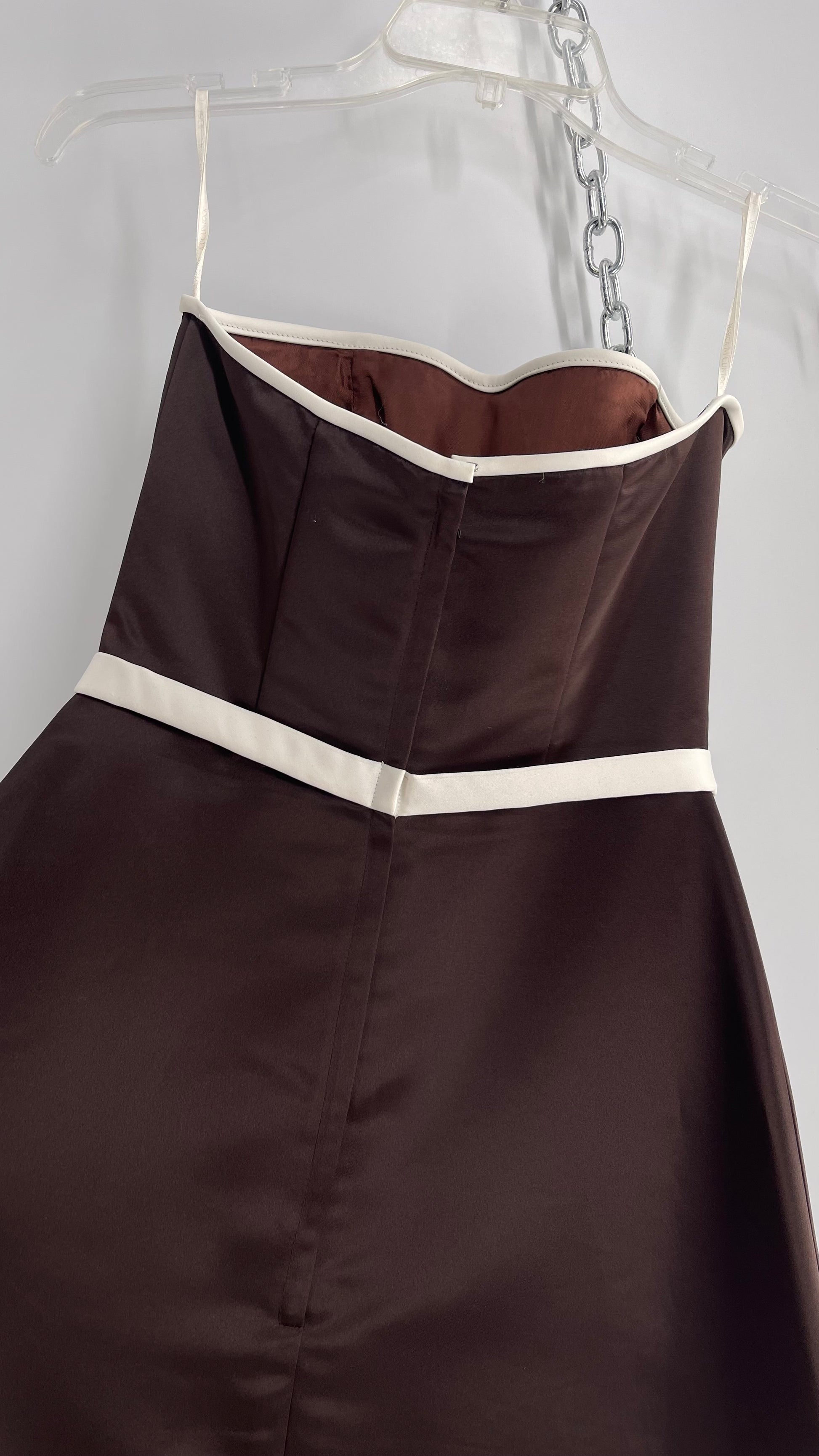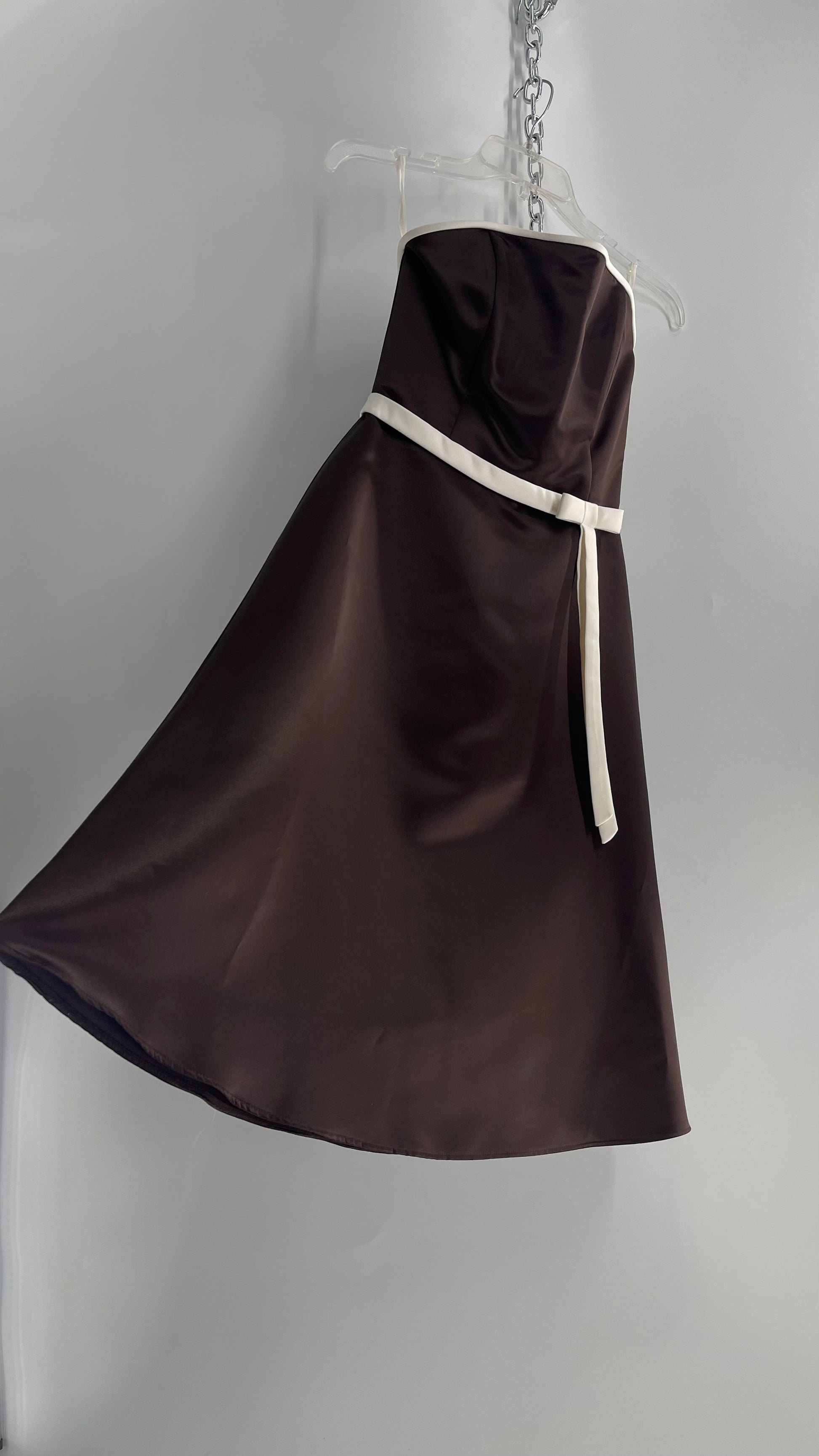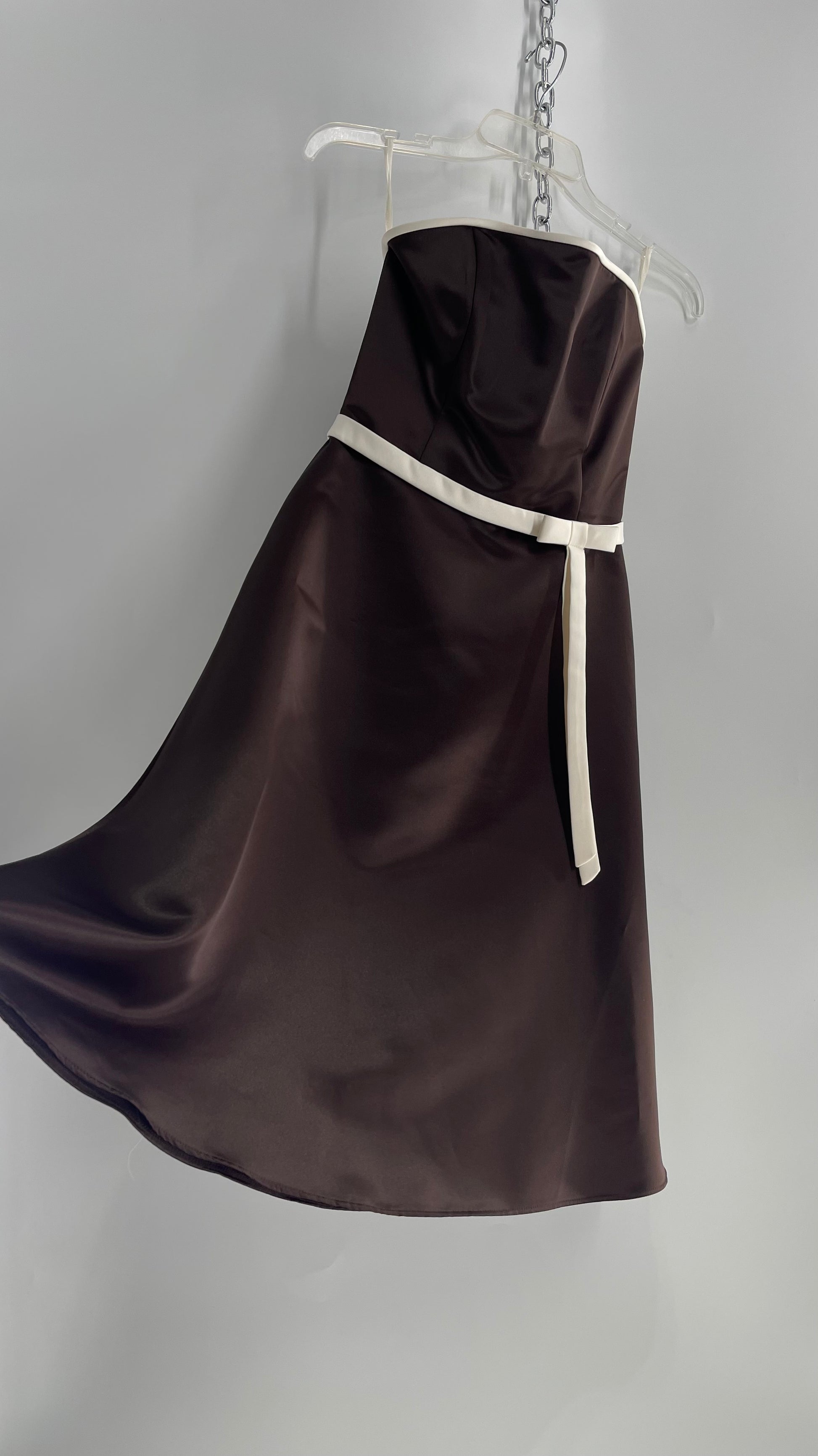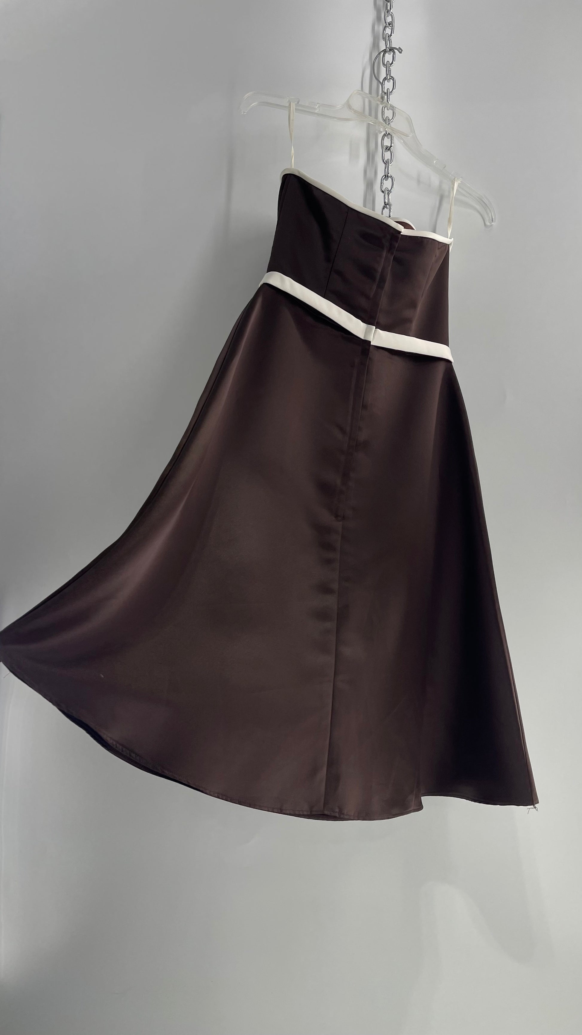 Vintage 90s Style Scott McClintock Dark Brown Satin A-Line Dress with Straight Bust Line (6)