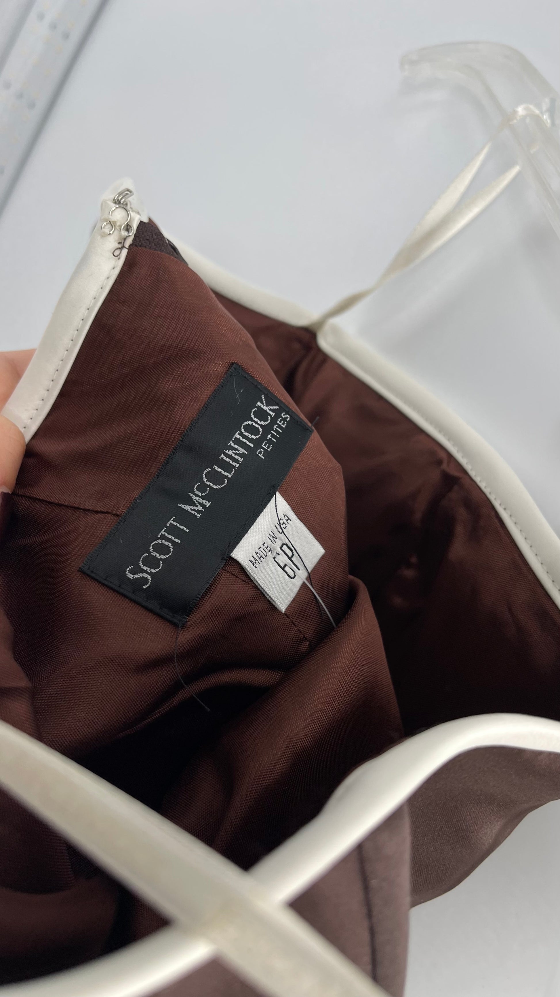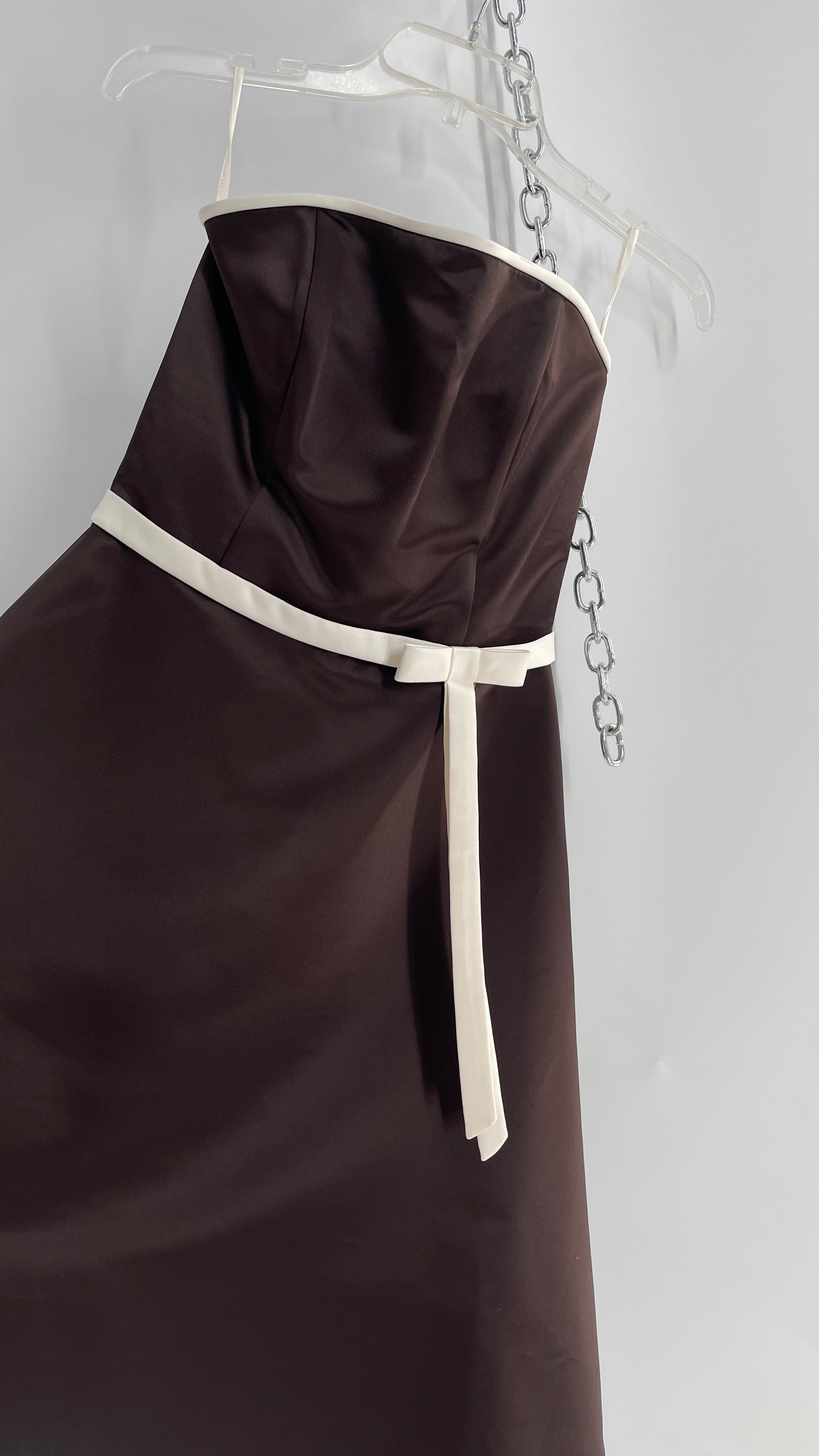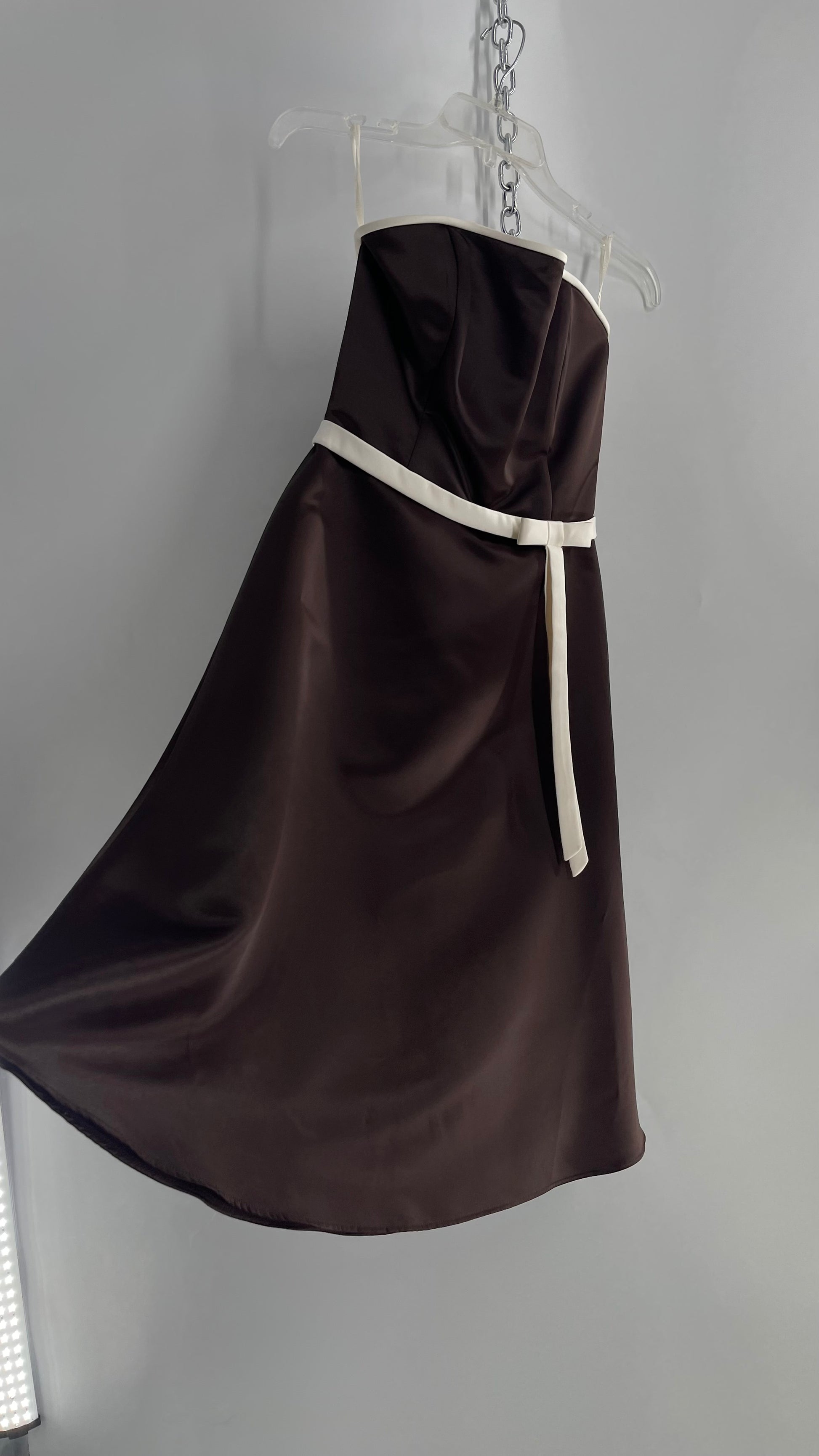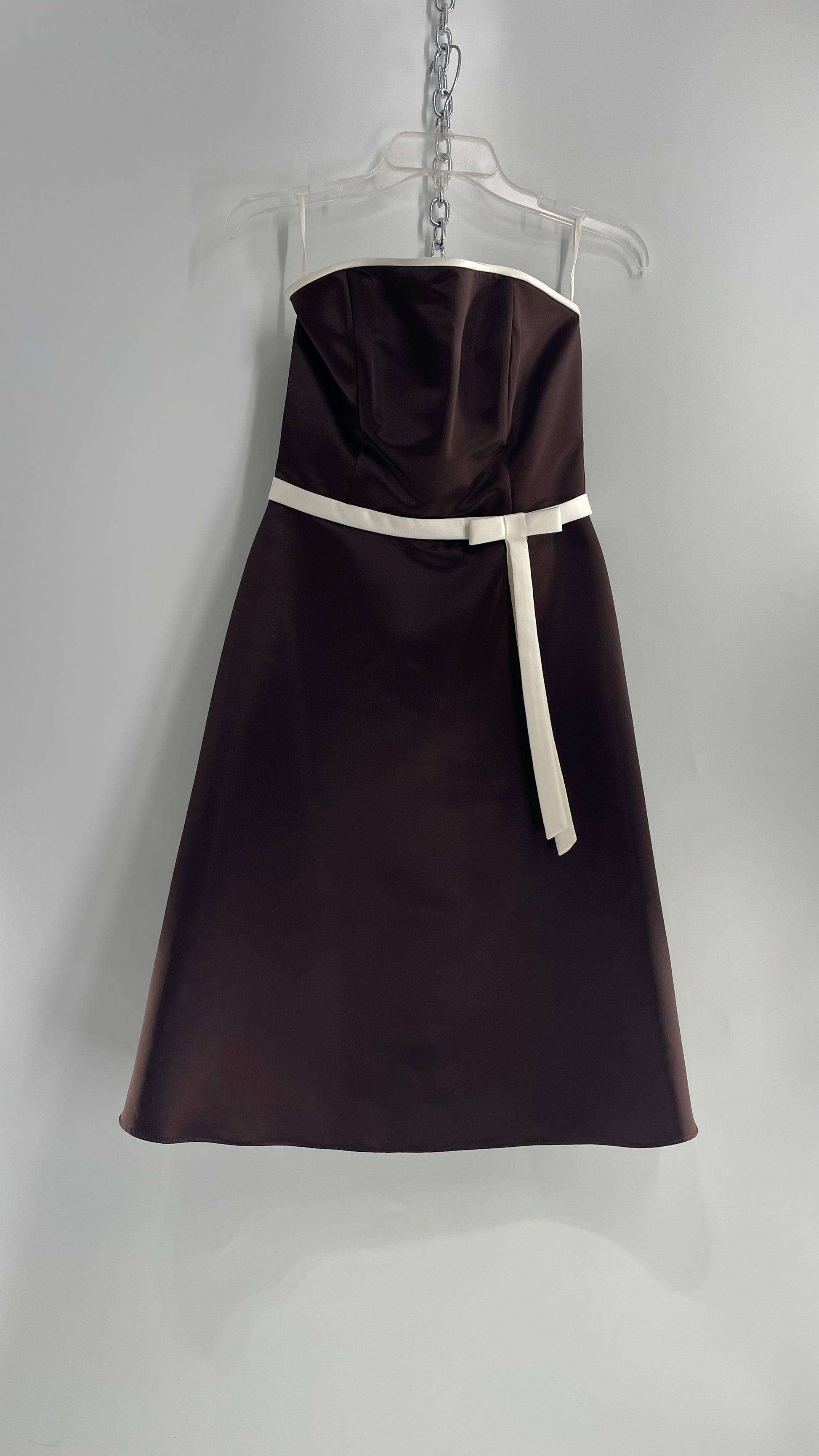 Vintage 90s Style Scott McClintock Dark Brown Satin A-Line Dress with Straight Bust Line (6)