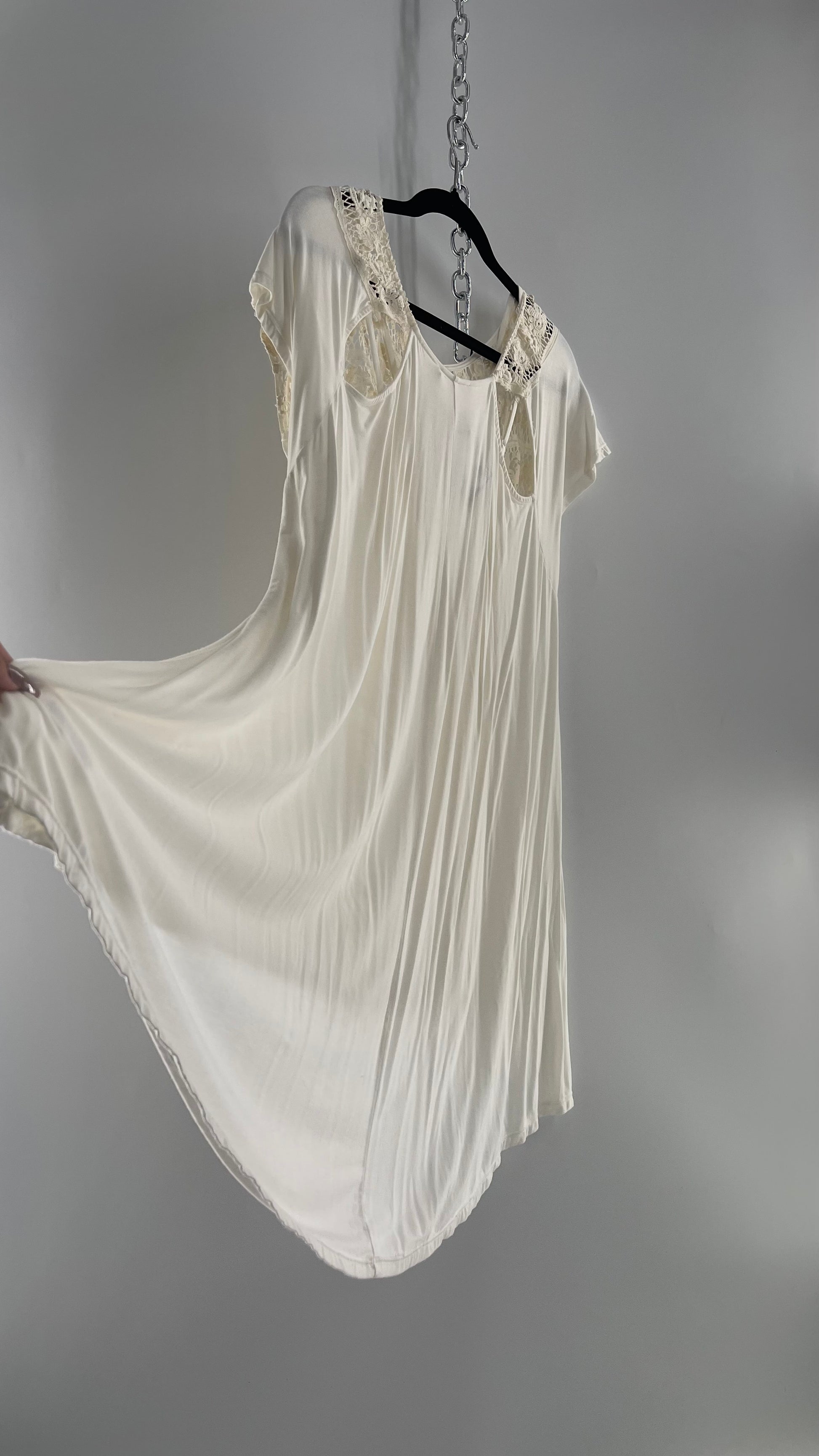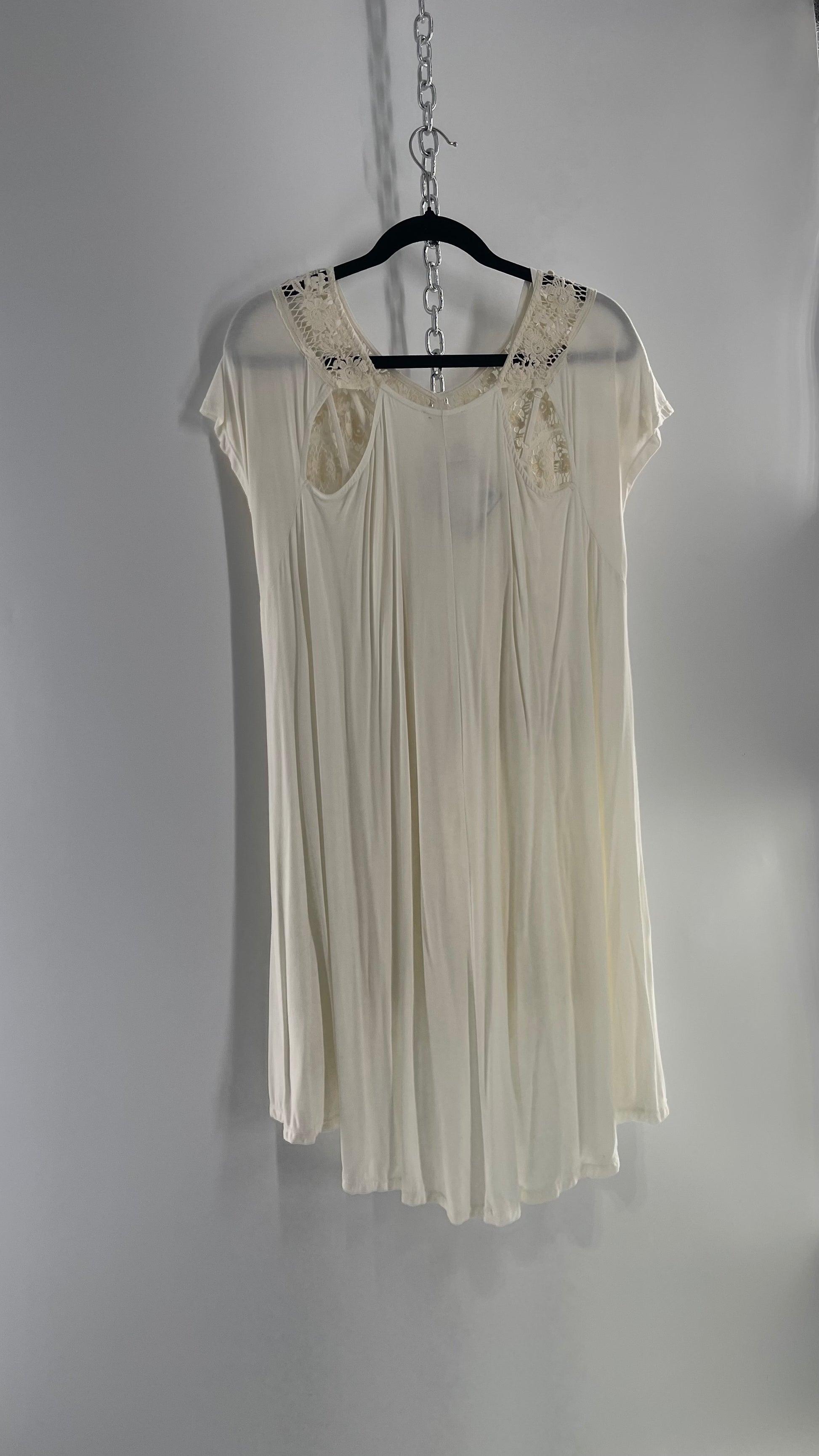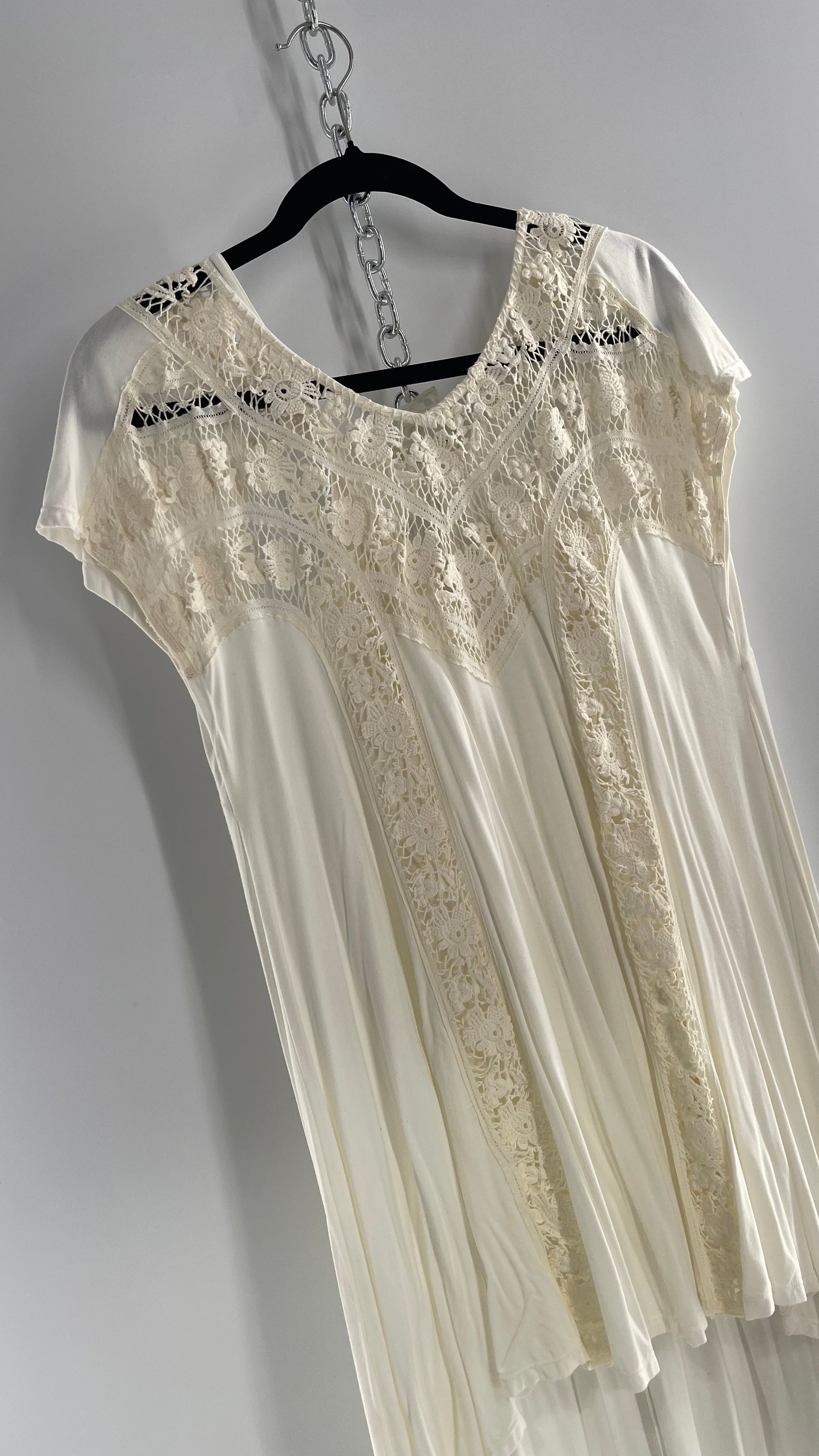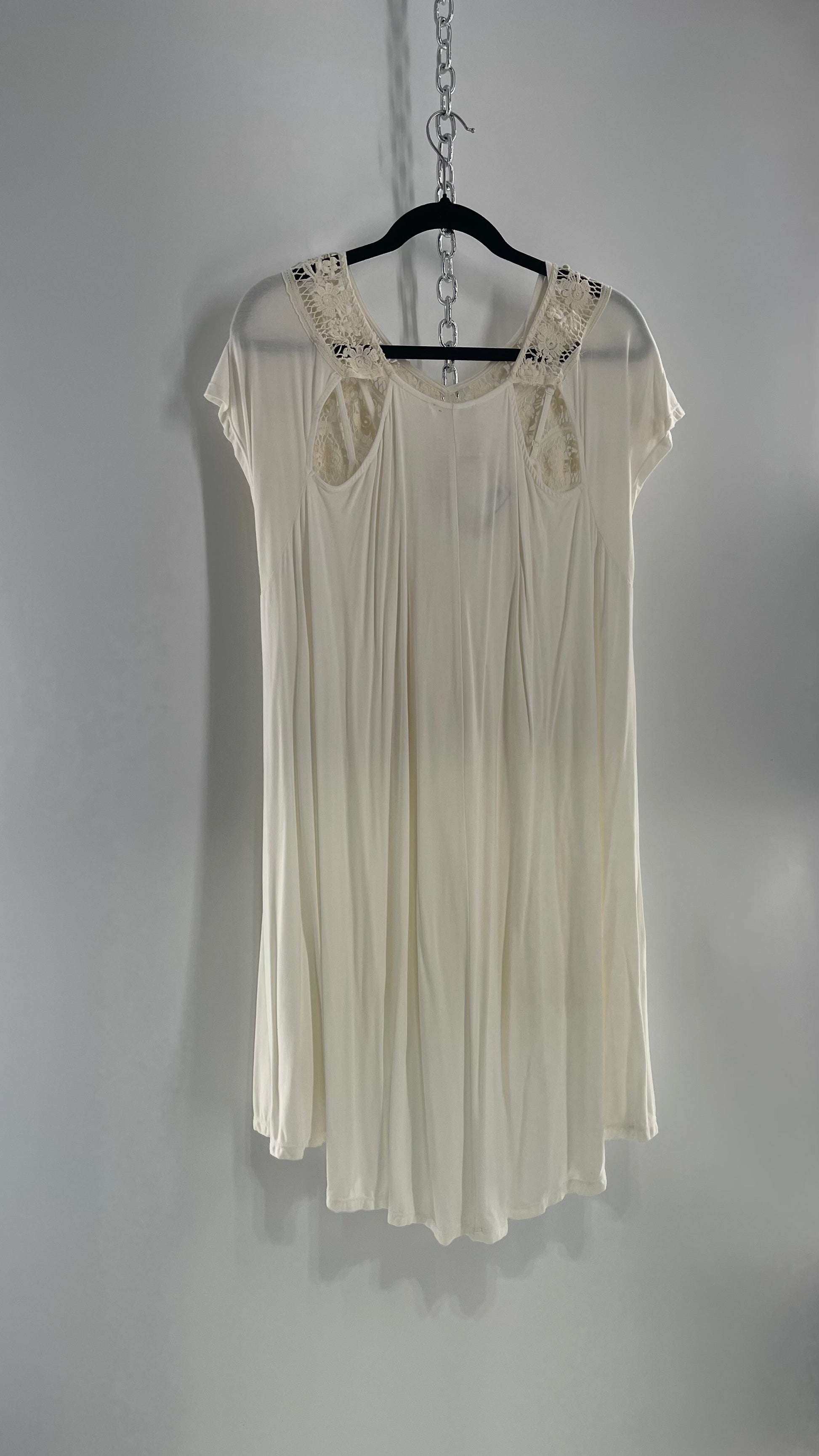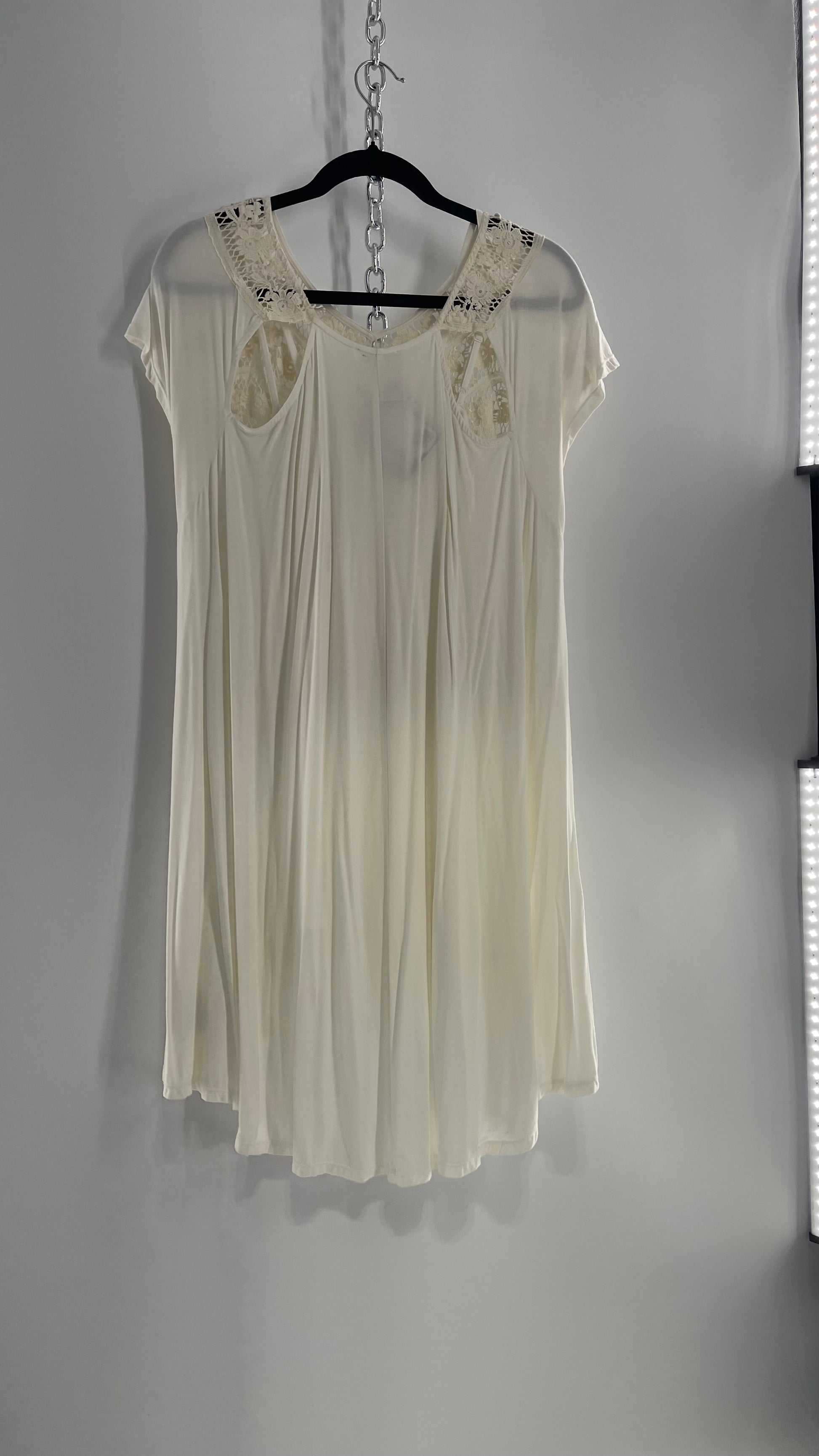 Free People Off White Voluminous Jersey Knit Dress with Lace Detailing (XS)