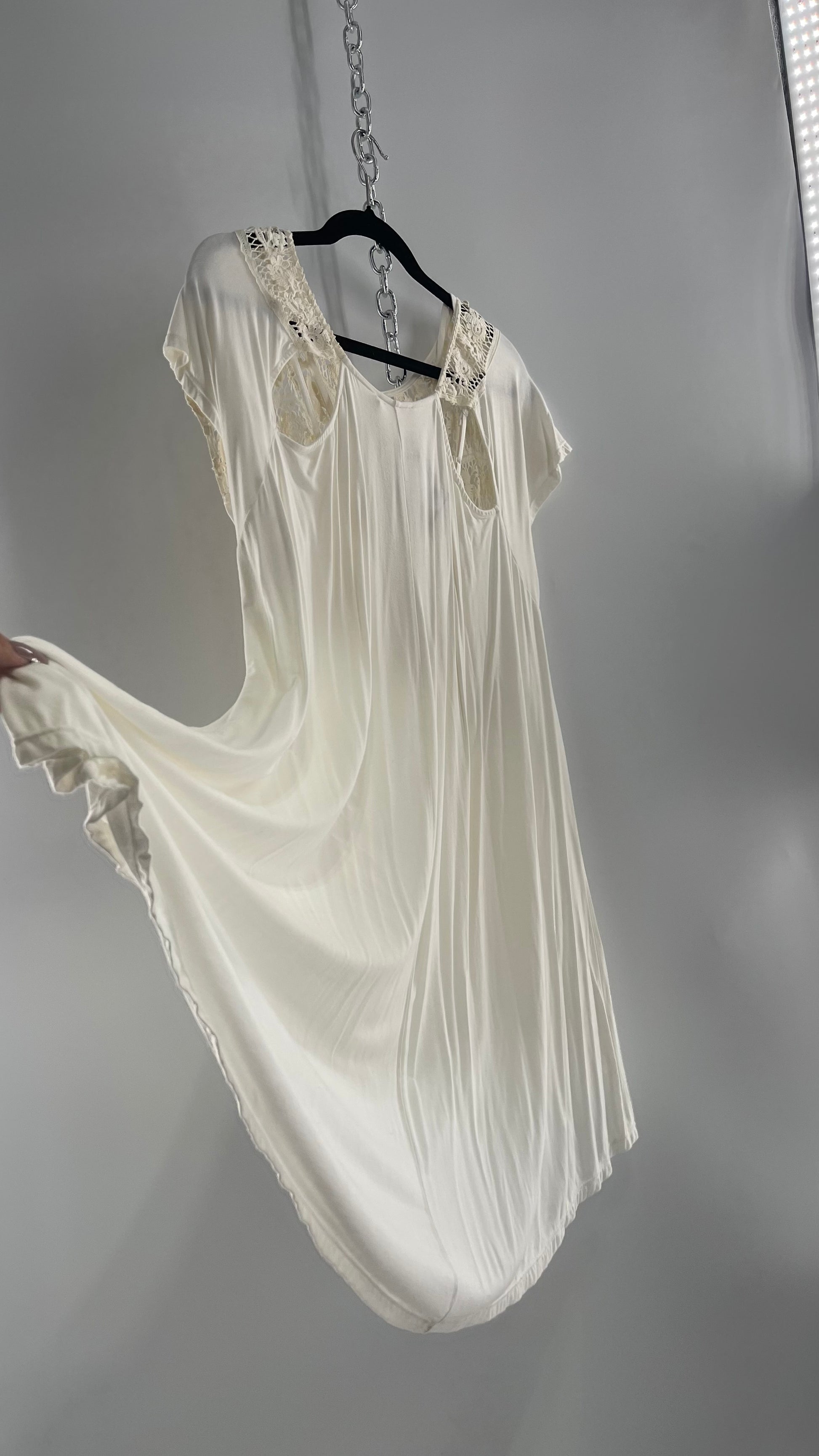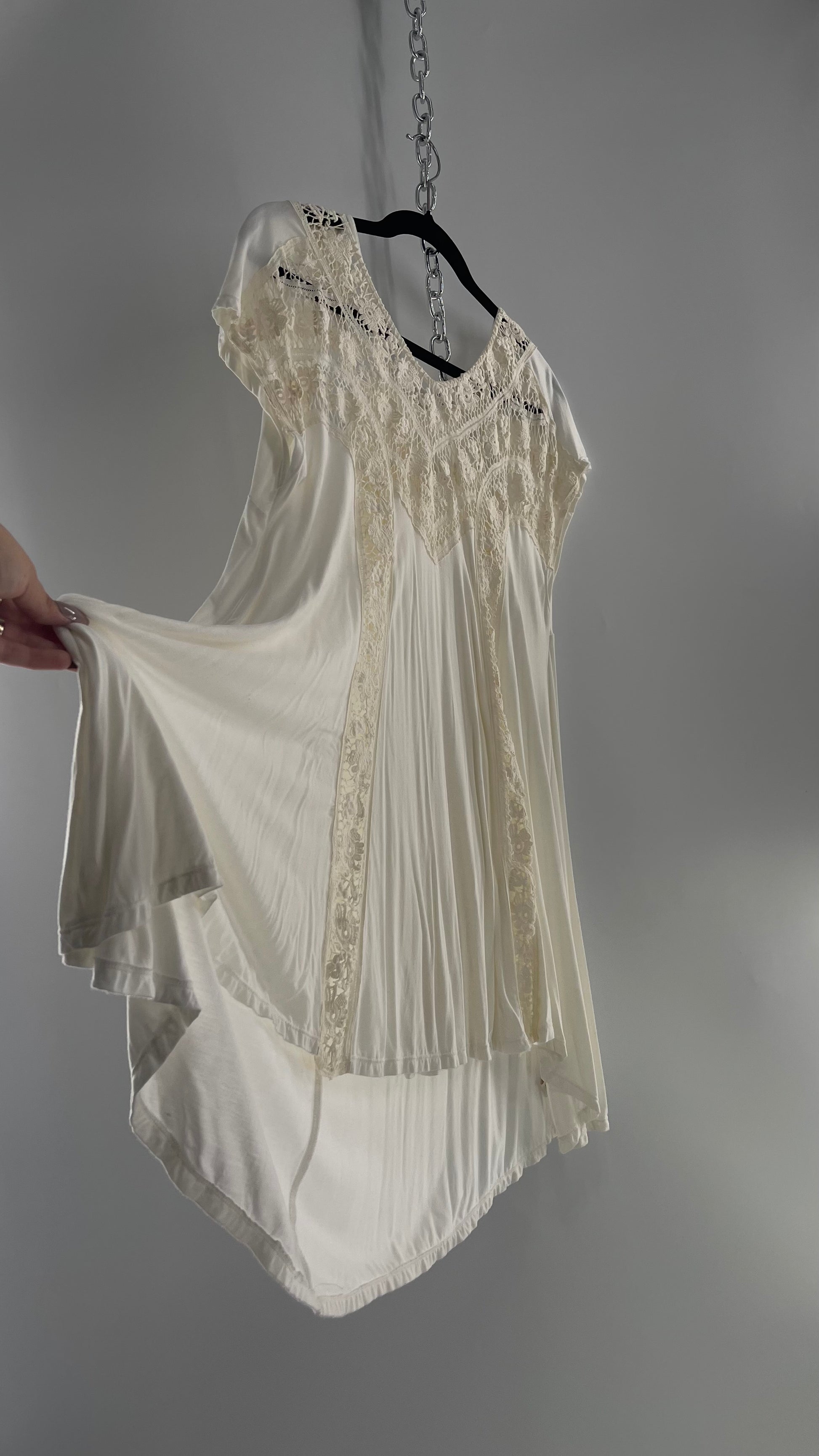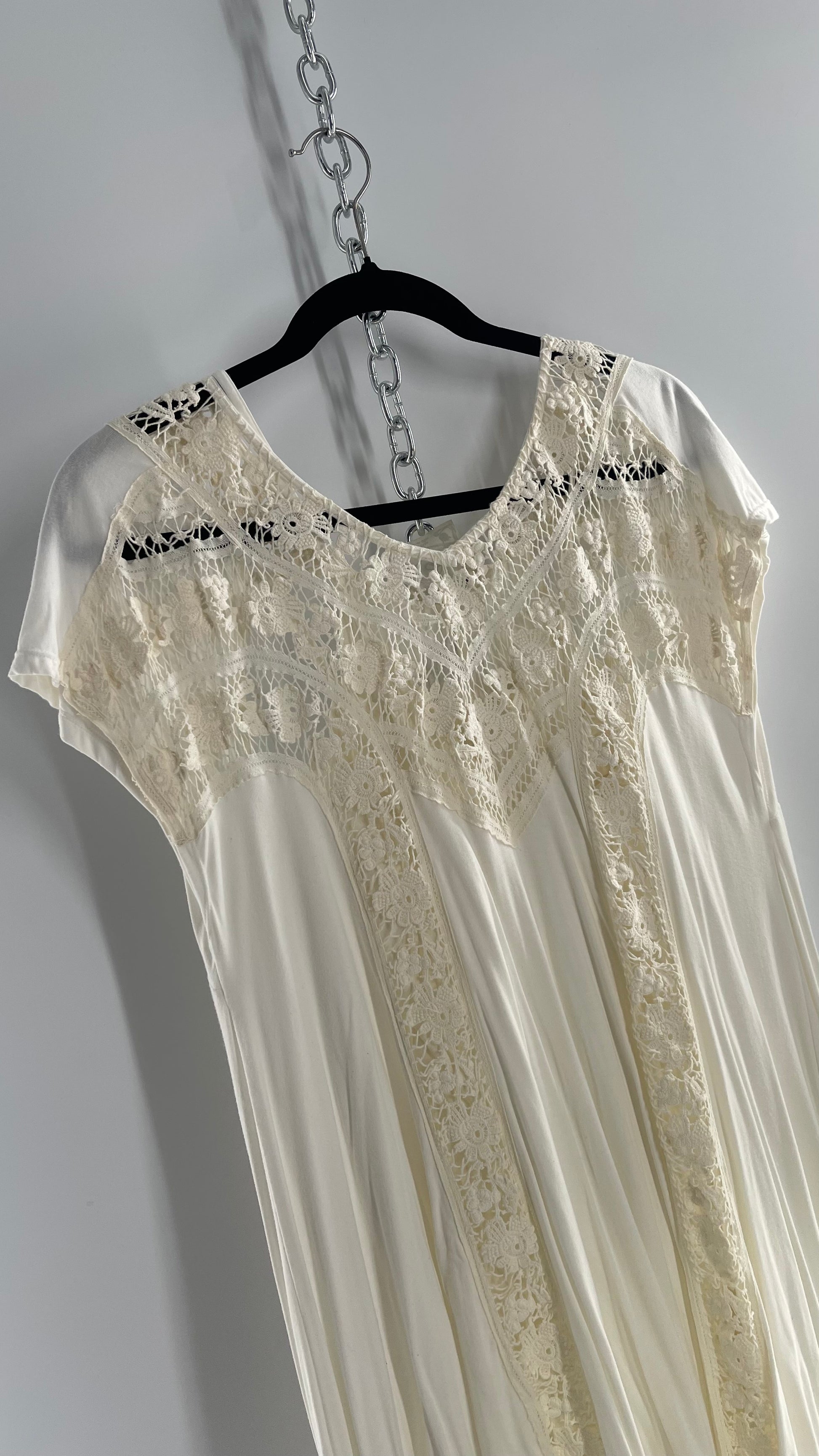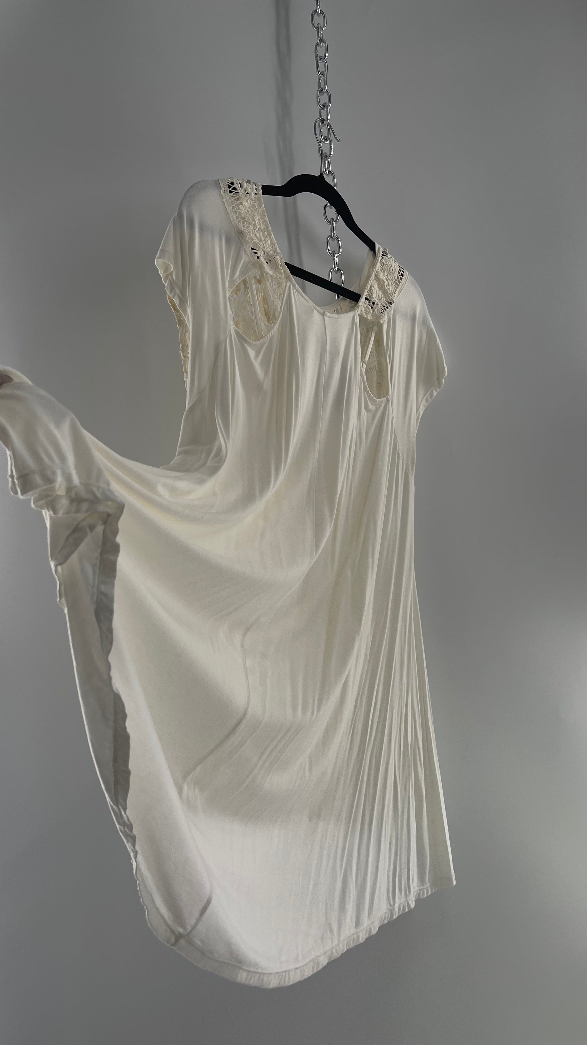 Free People Off White Voluminous Jersey Knit Dress with Lace Detailing (XS)