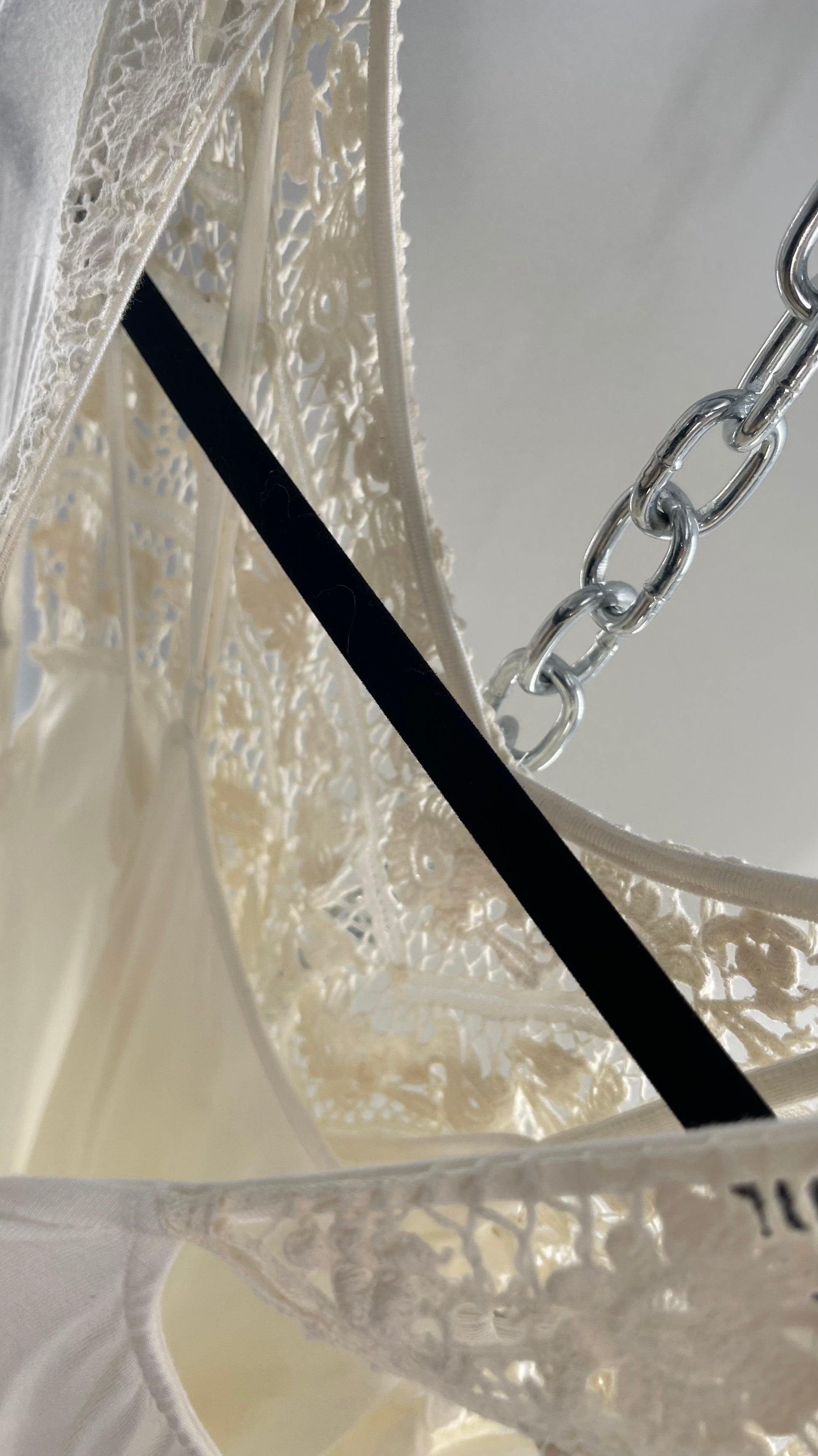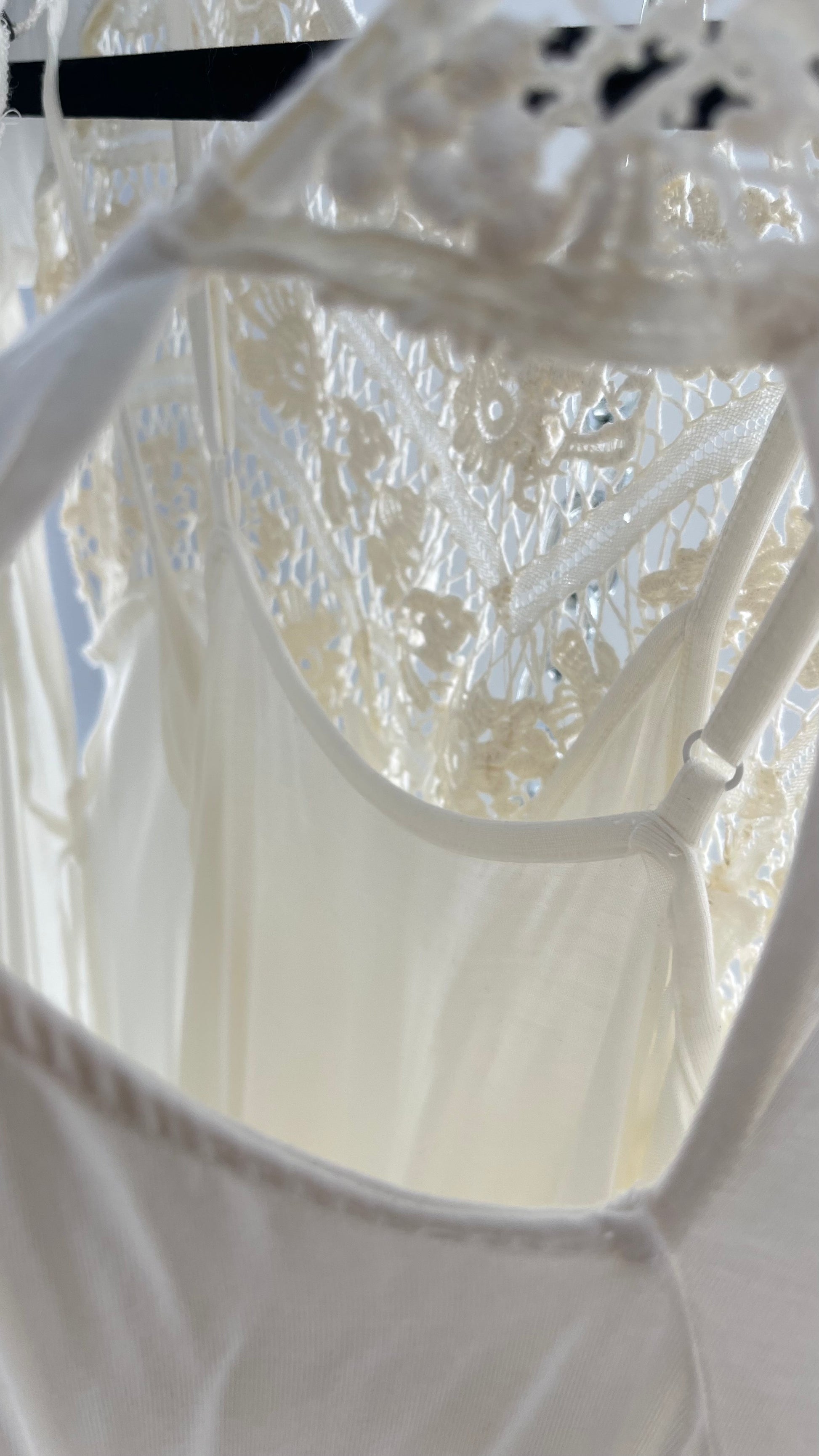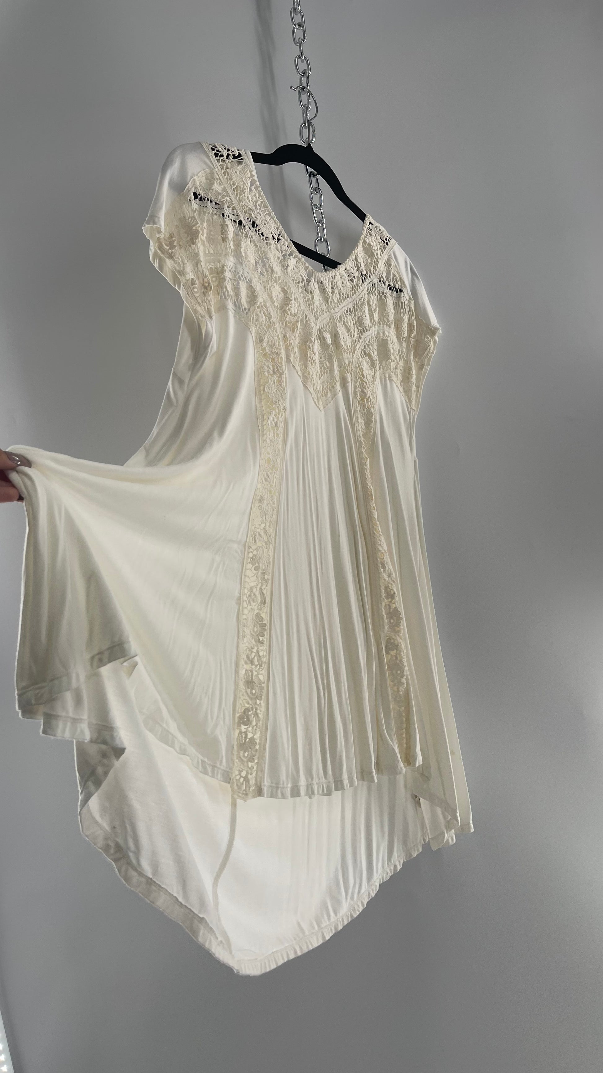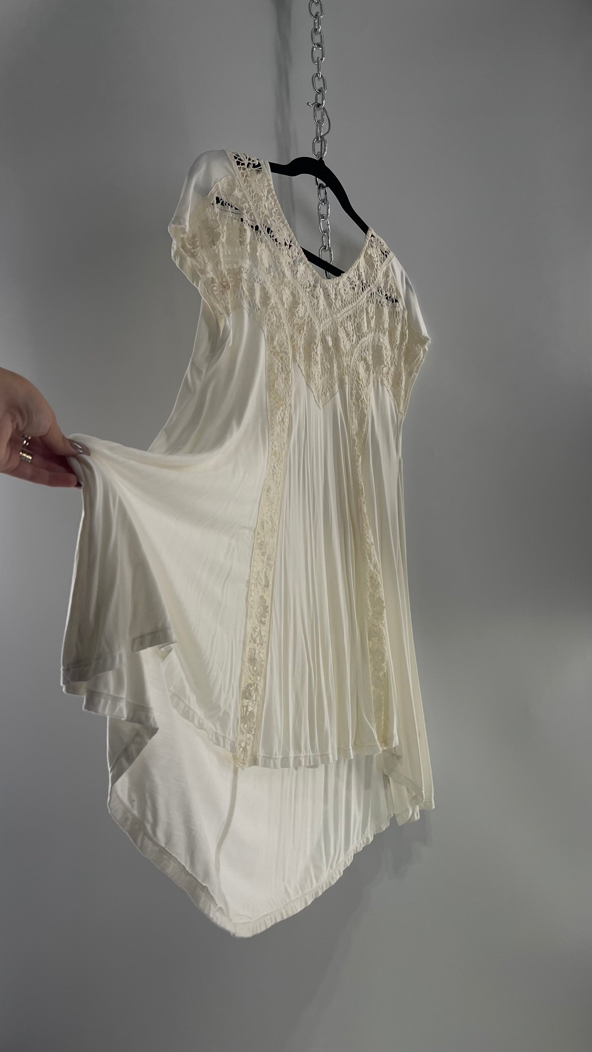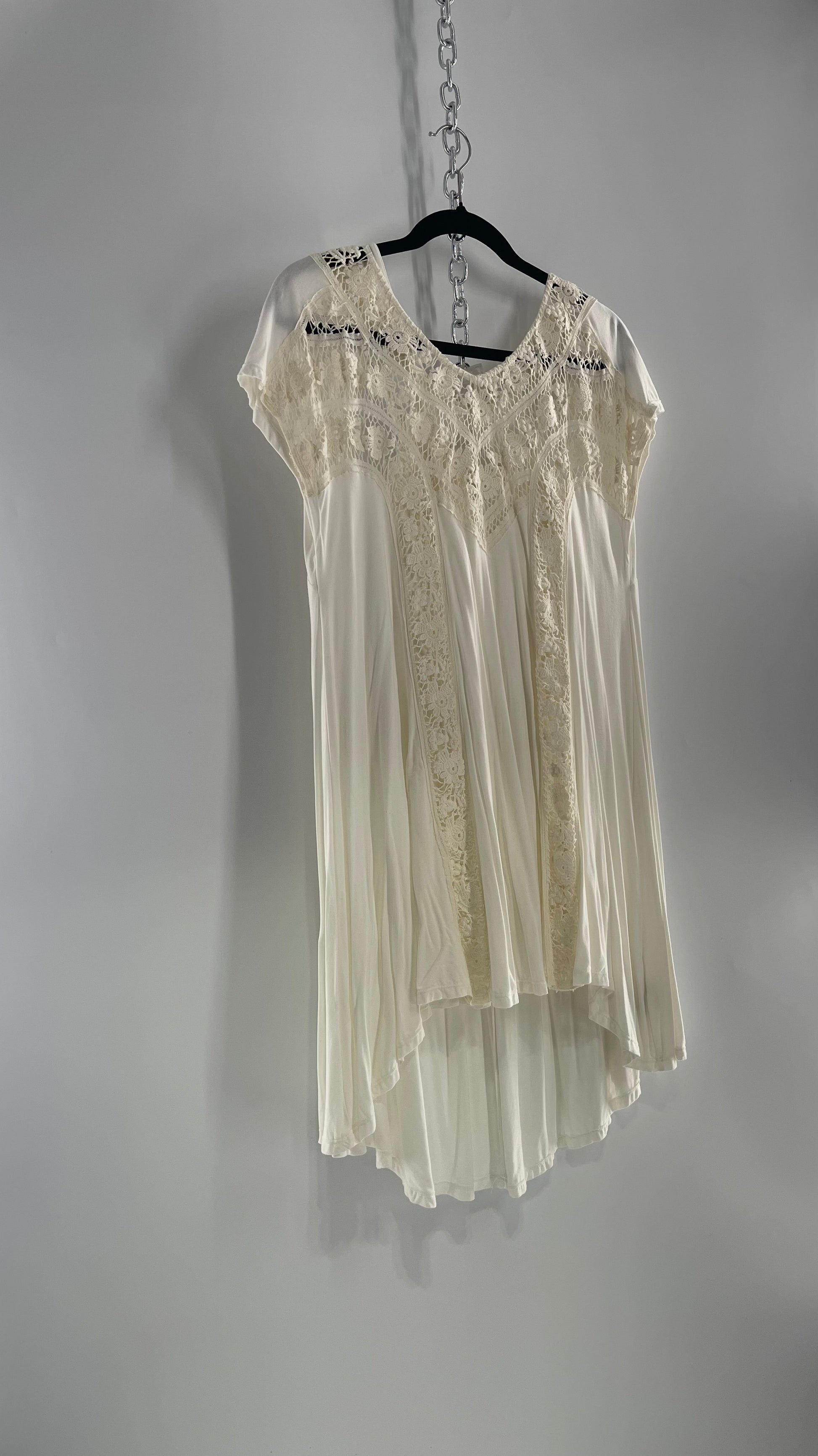 Free People Off White Voluminous Jersey Knit Dress with Lace Detailing (XS)