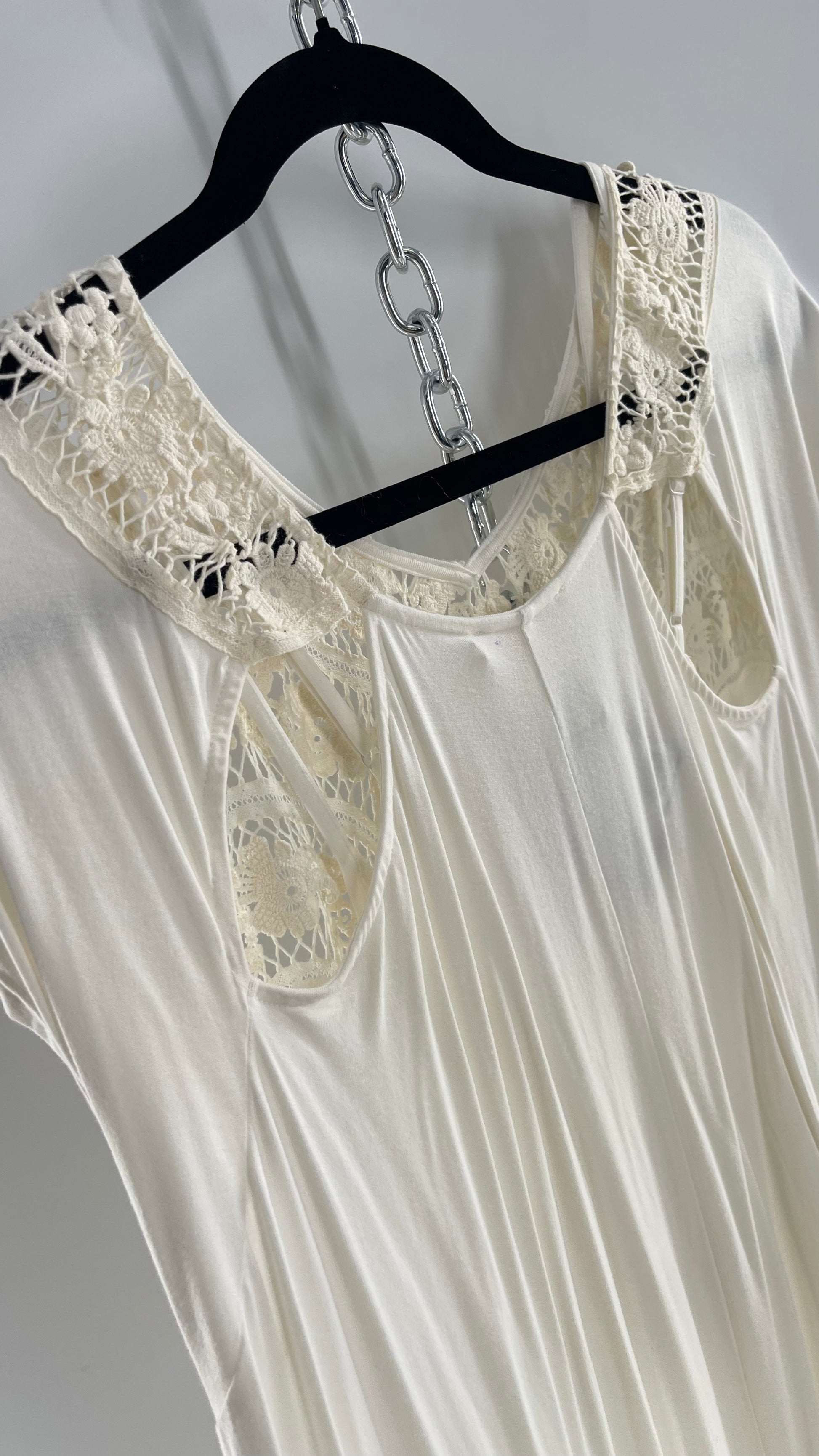 Free People Off White Voluminous Jersey Knit Dress with Lace Detailing