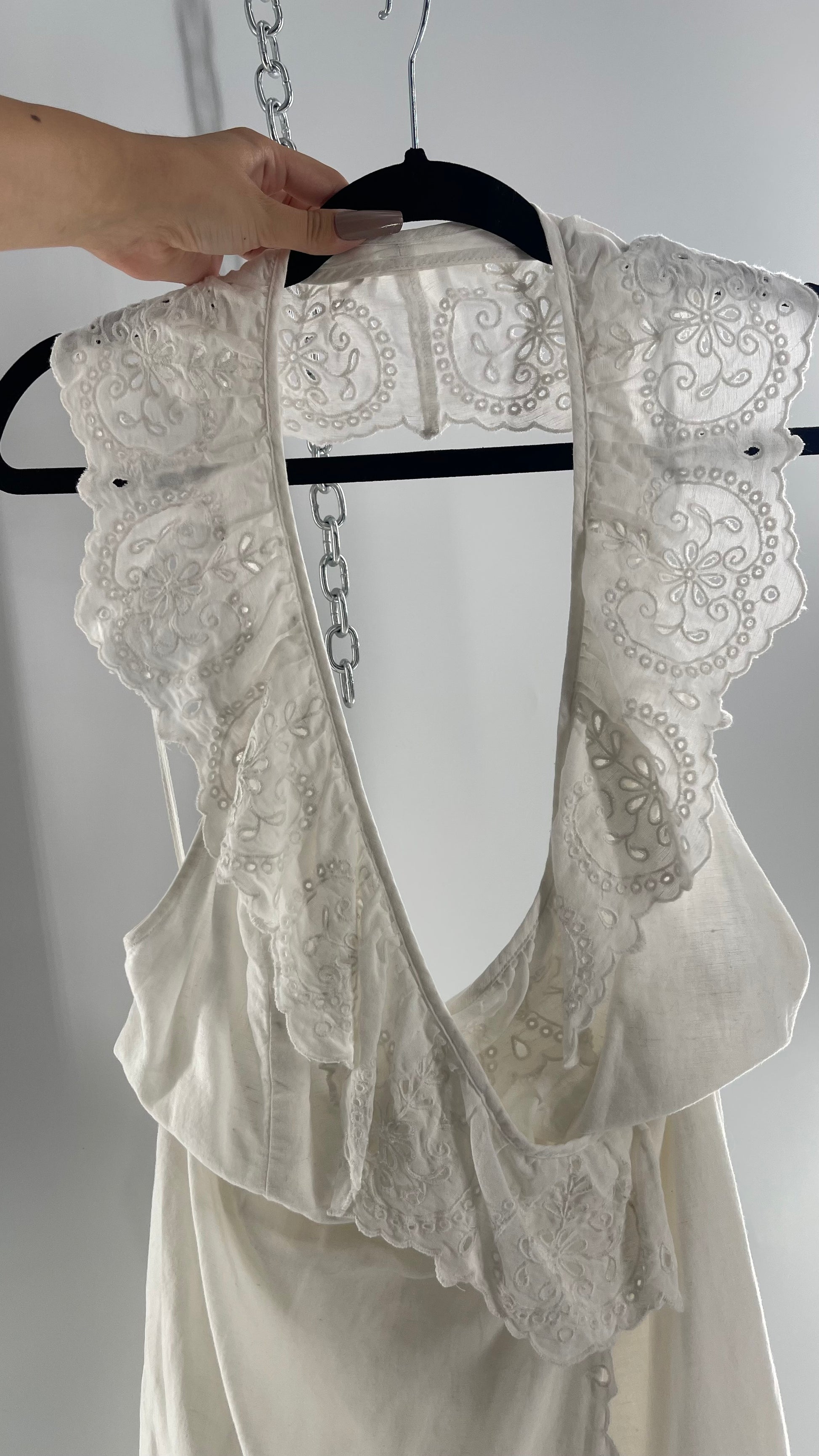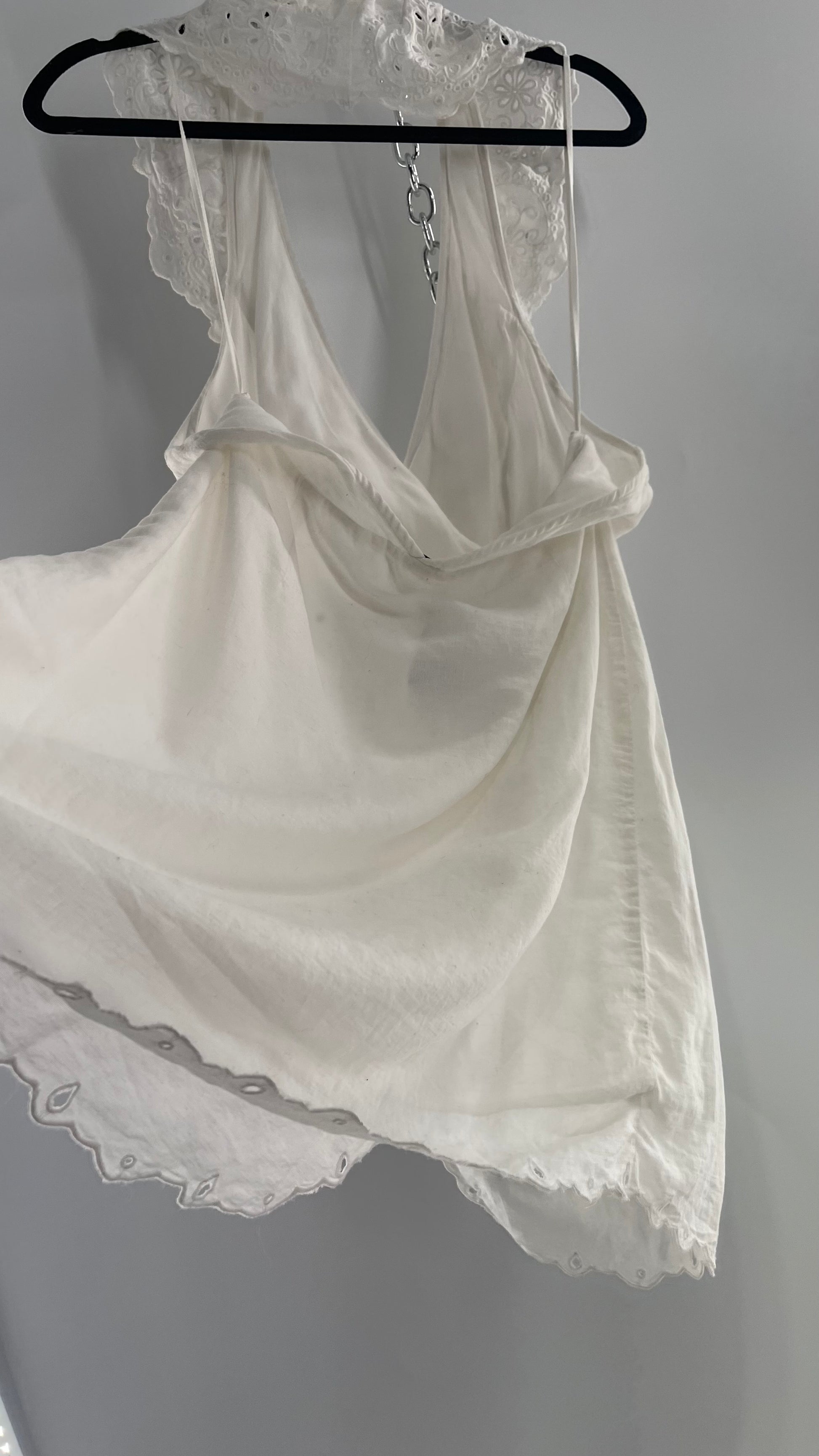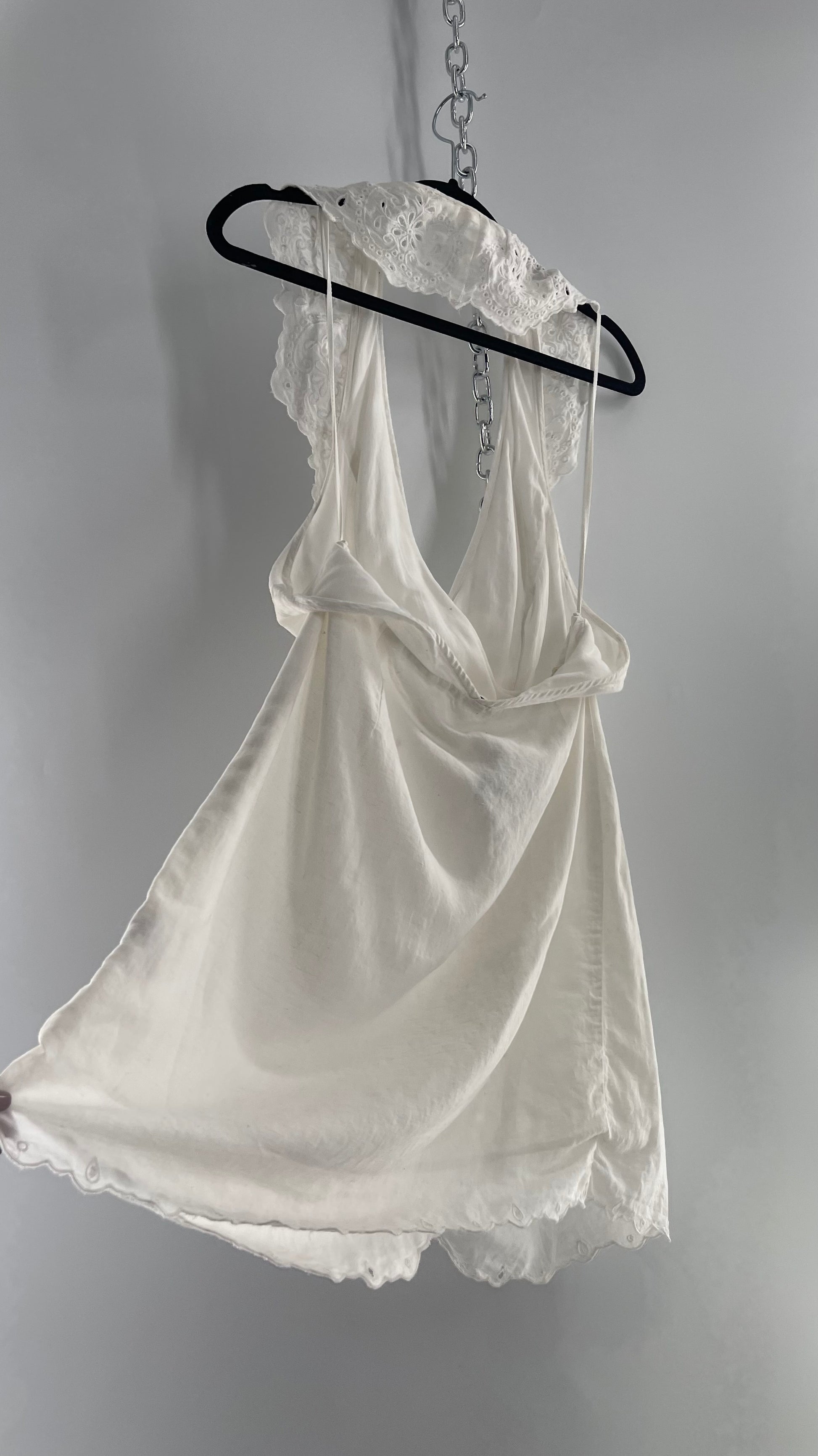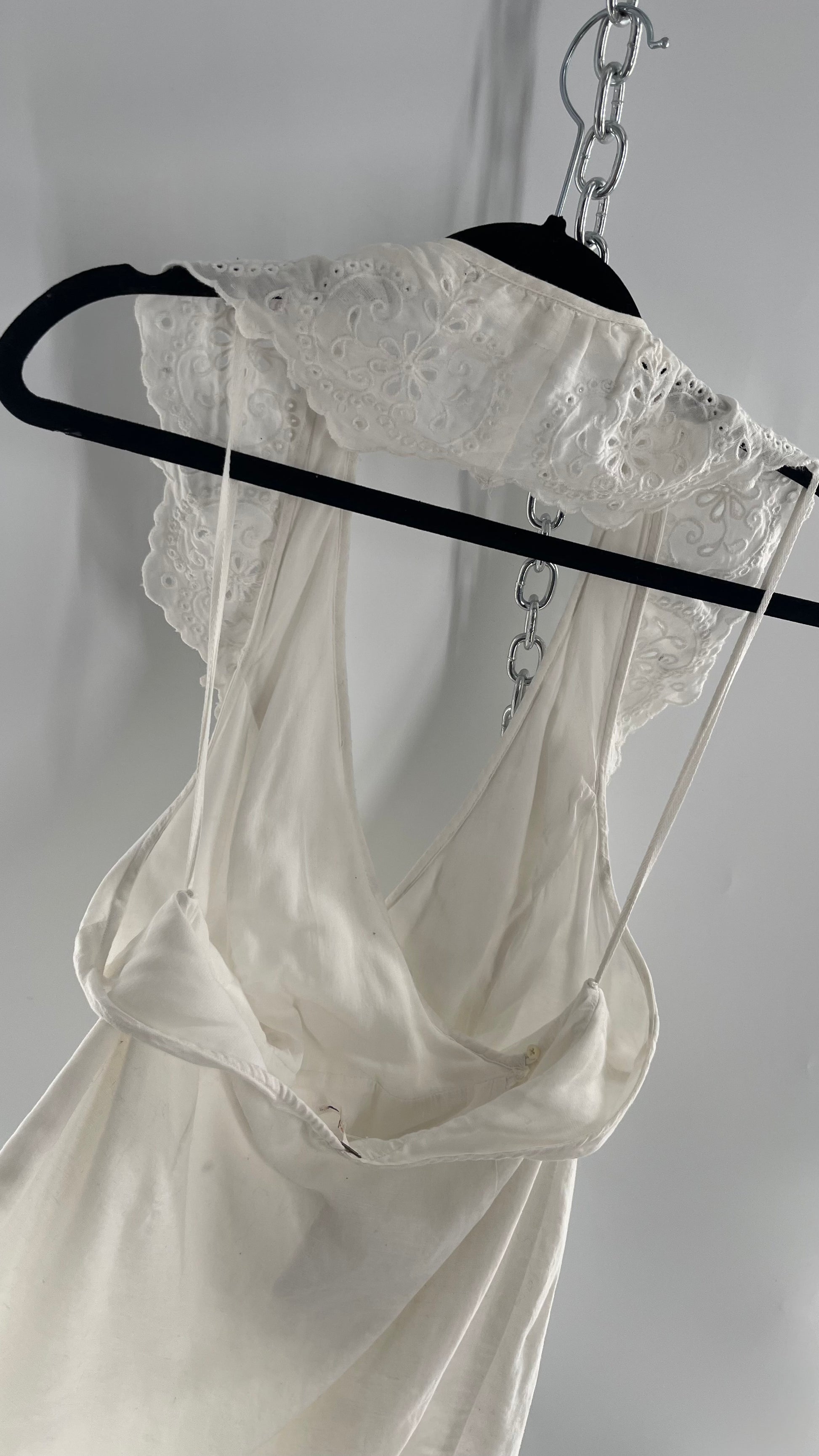Free People White Cotton Dress with Eyelet Lace Trim Halter (Medium)