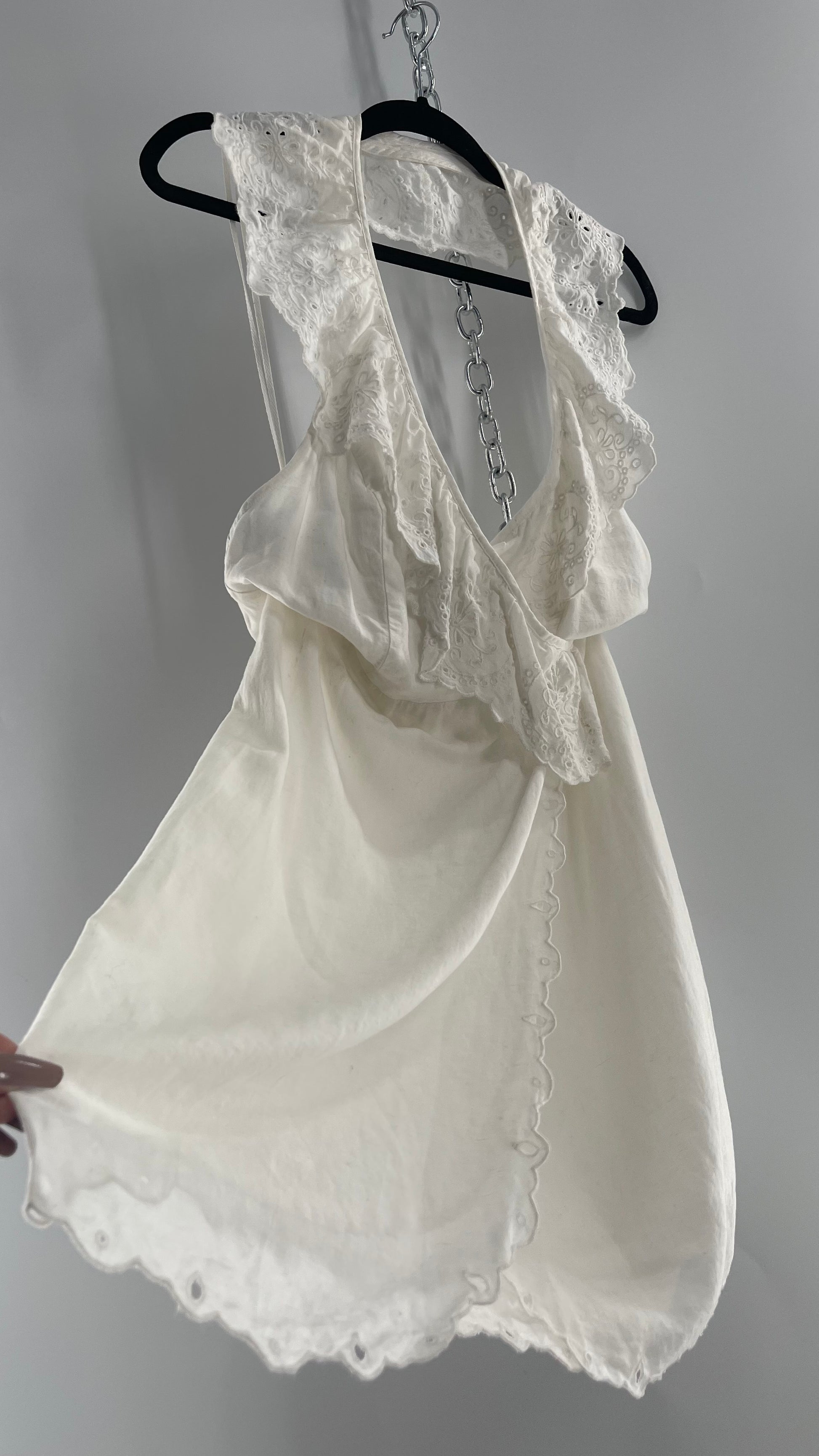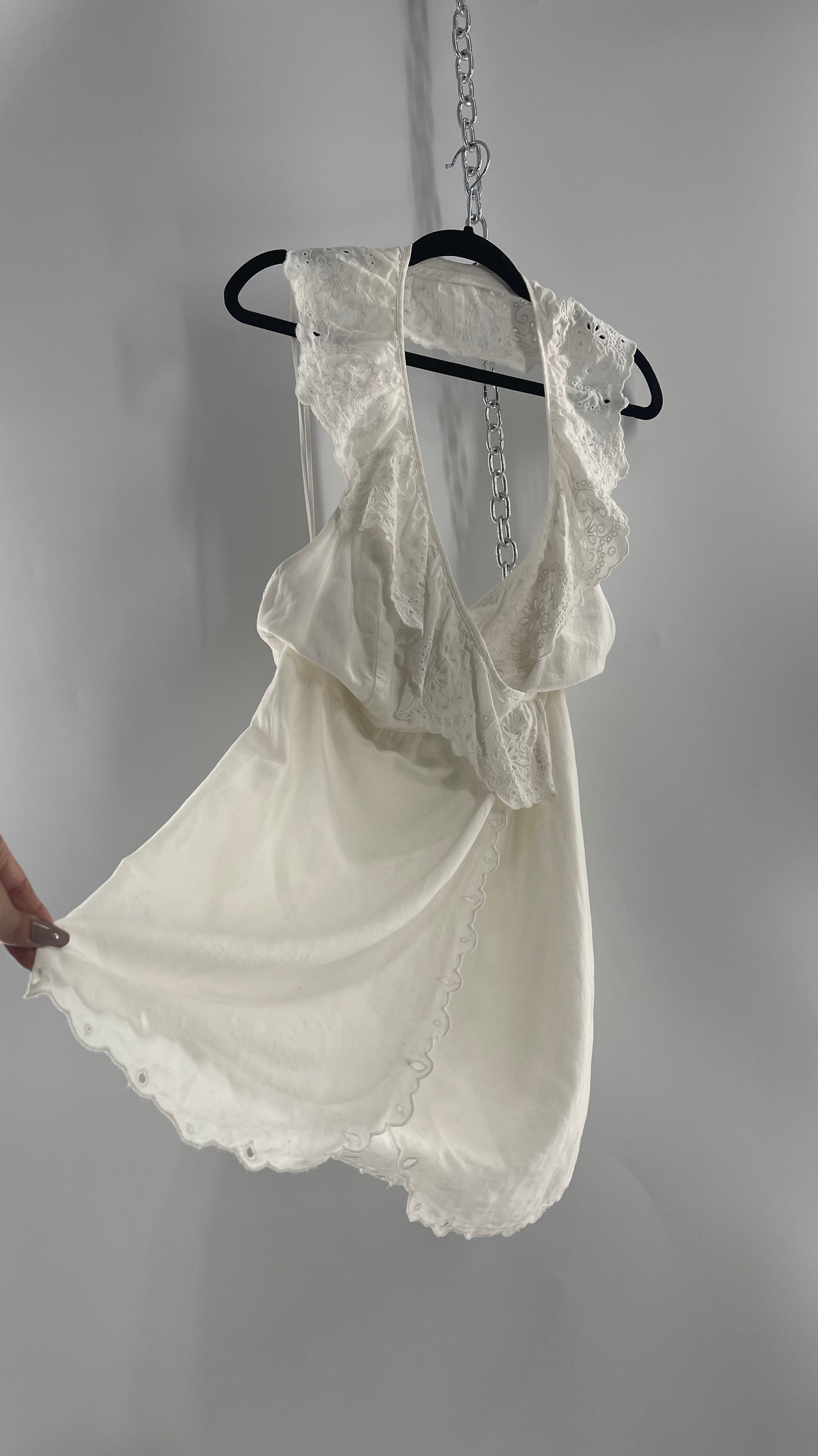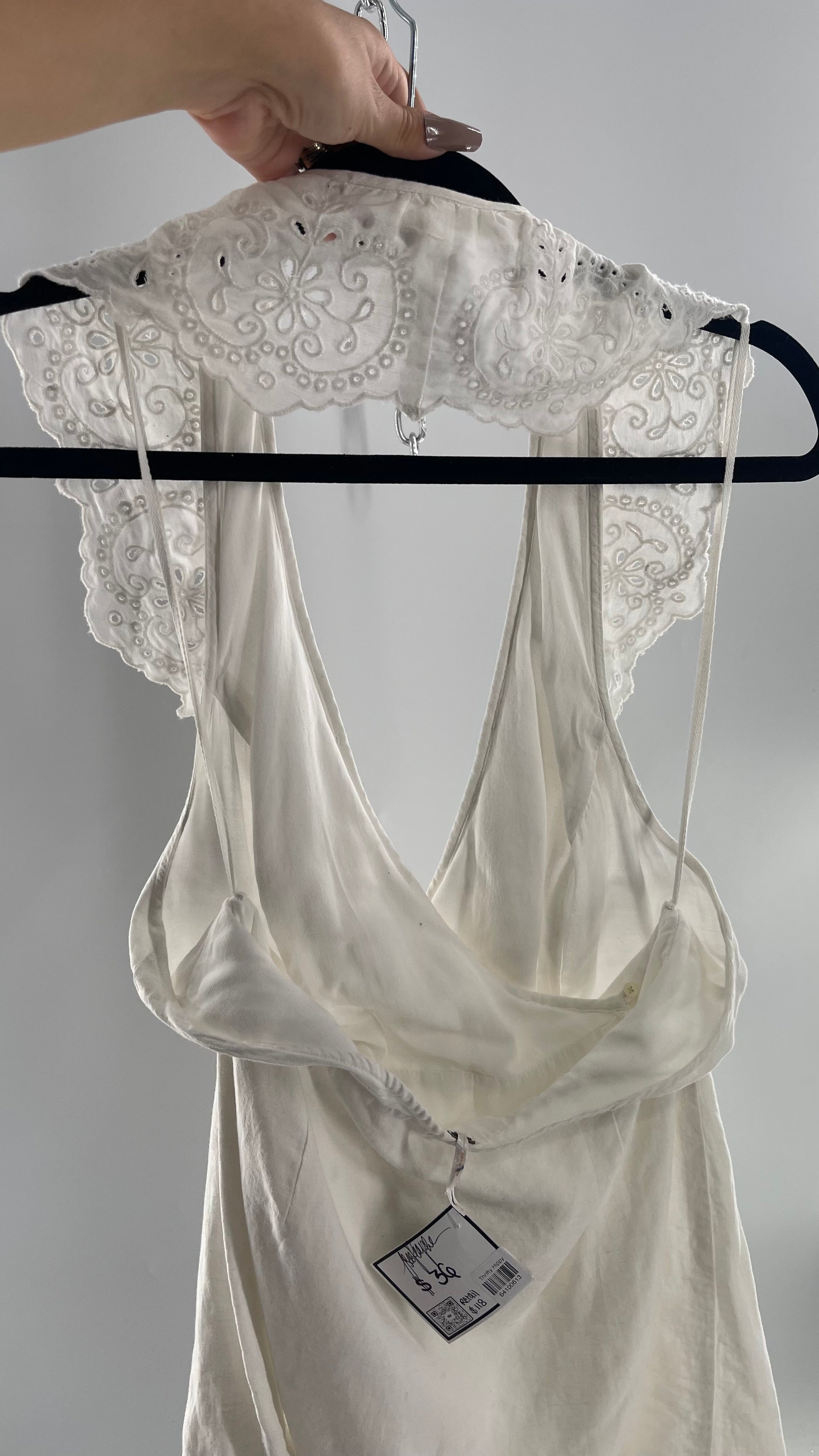 Free People White Cotton Dress with Eyelet Lace Trim Halter (Medium)