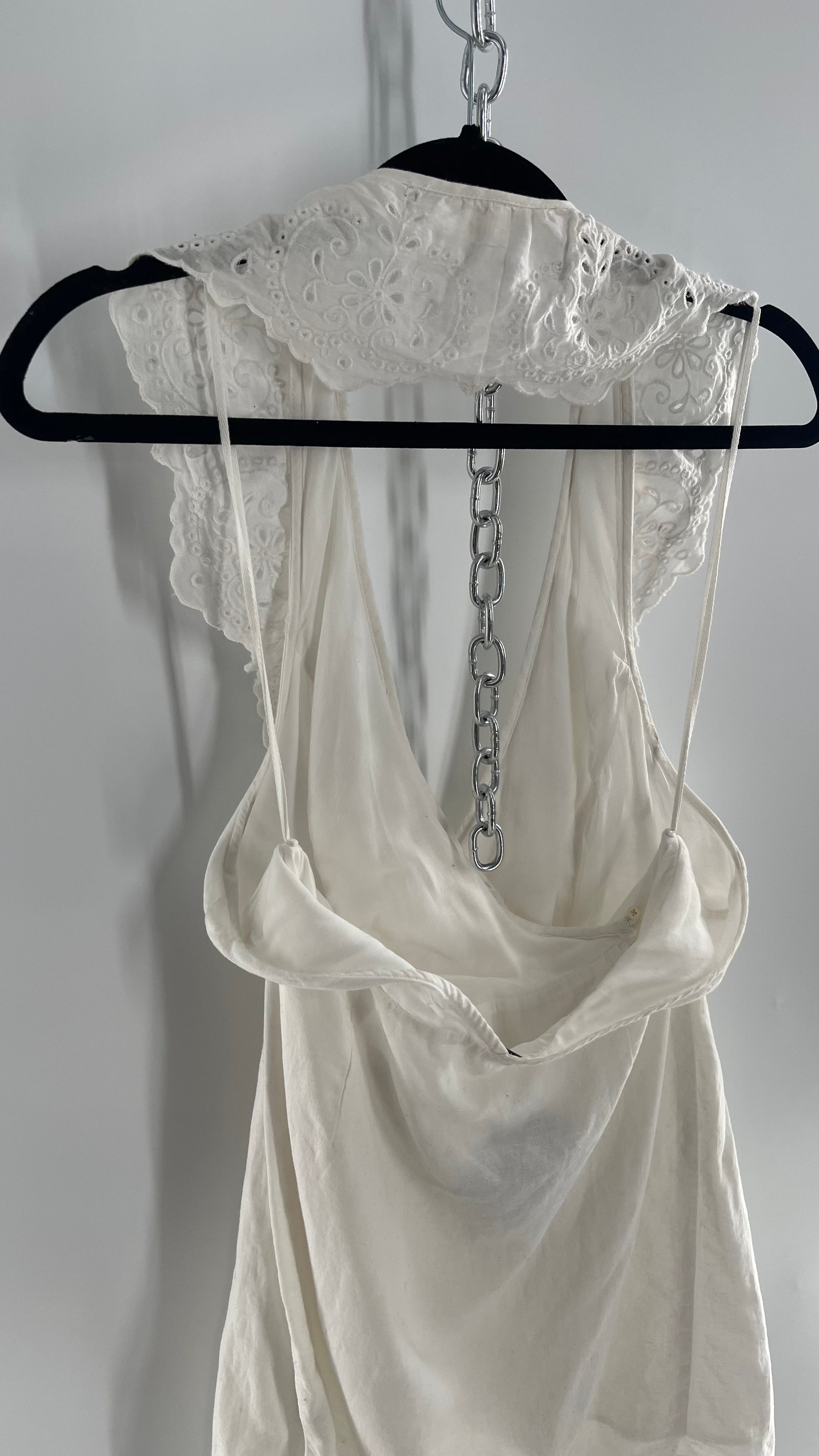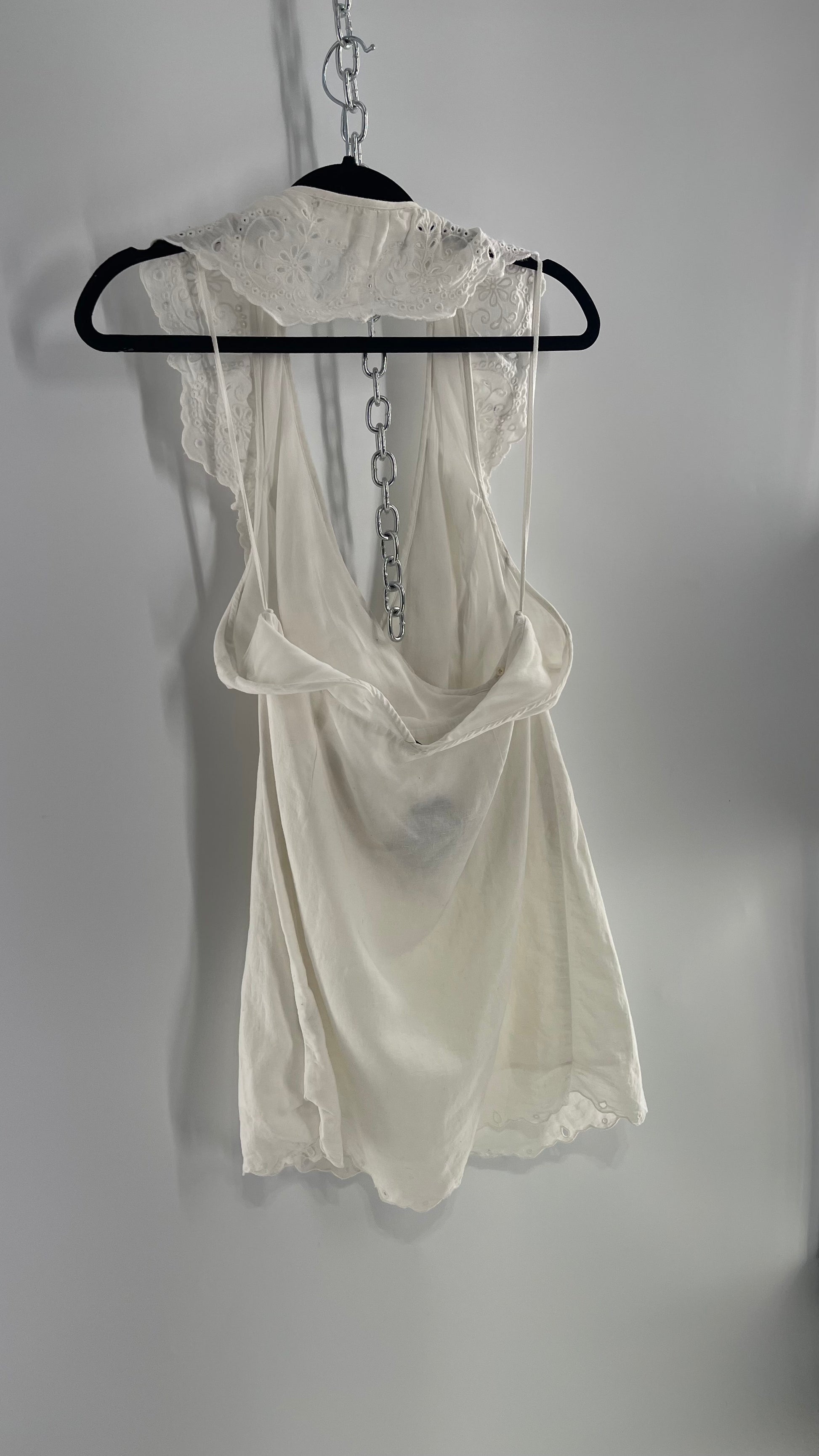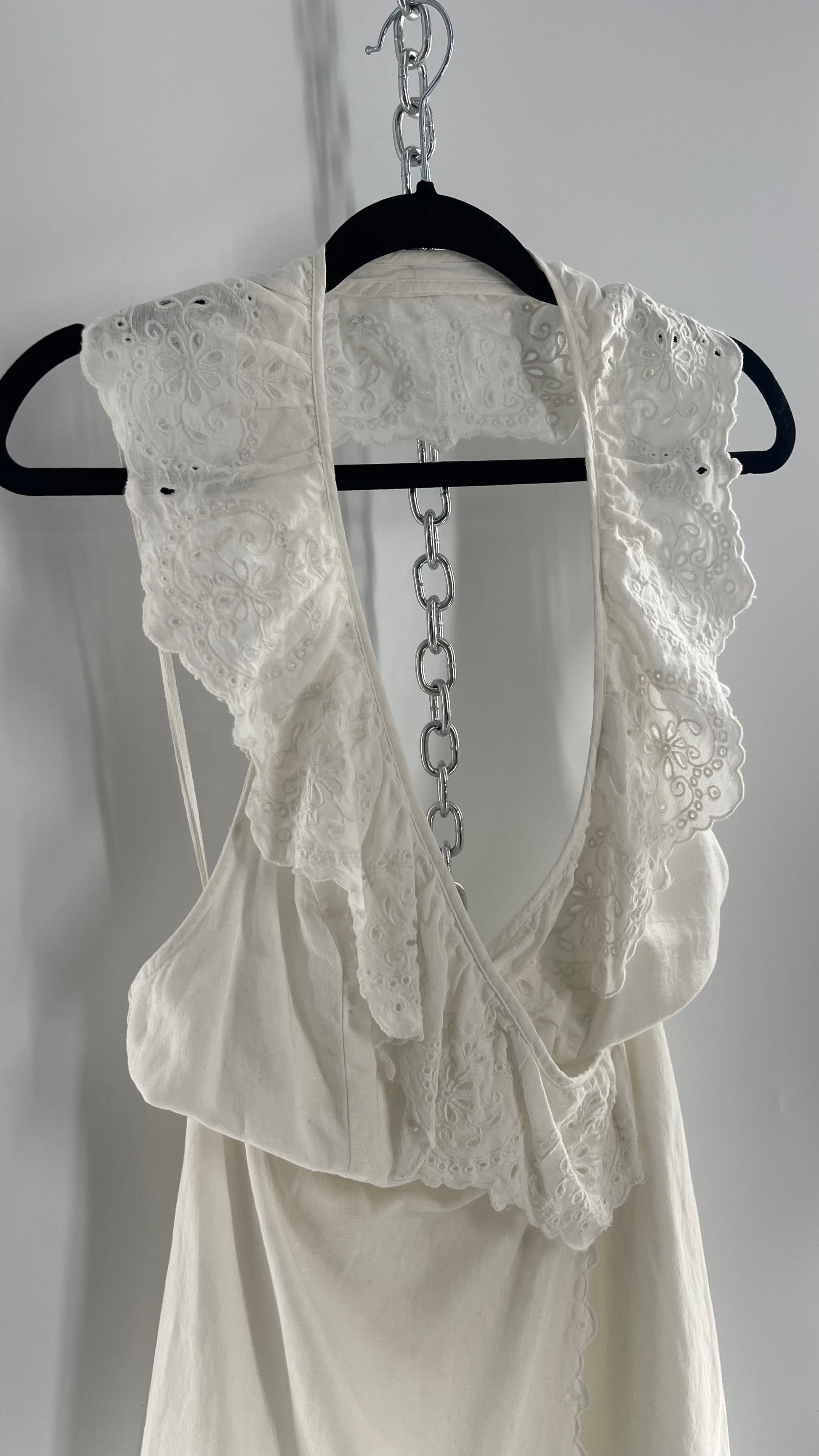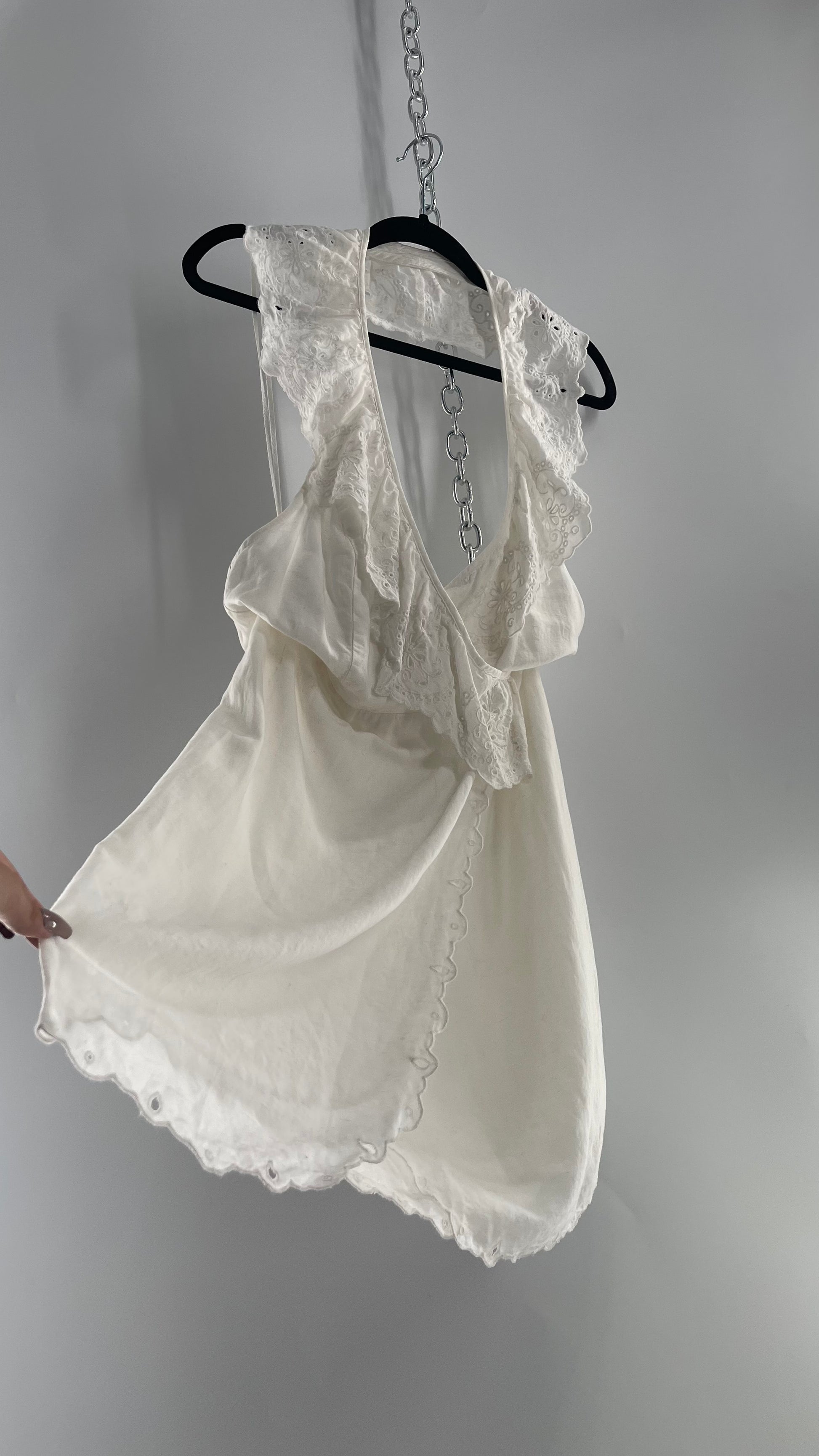 Free People White Cotton Dress with Eyelet Lace Trim Halter (Medium)