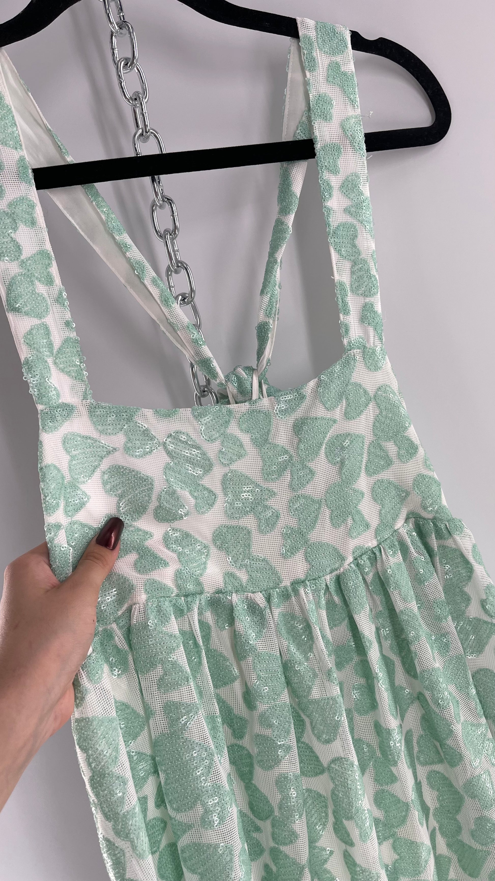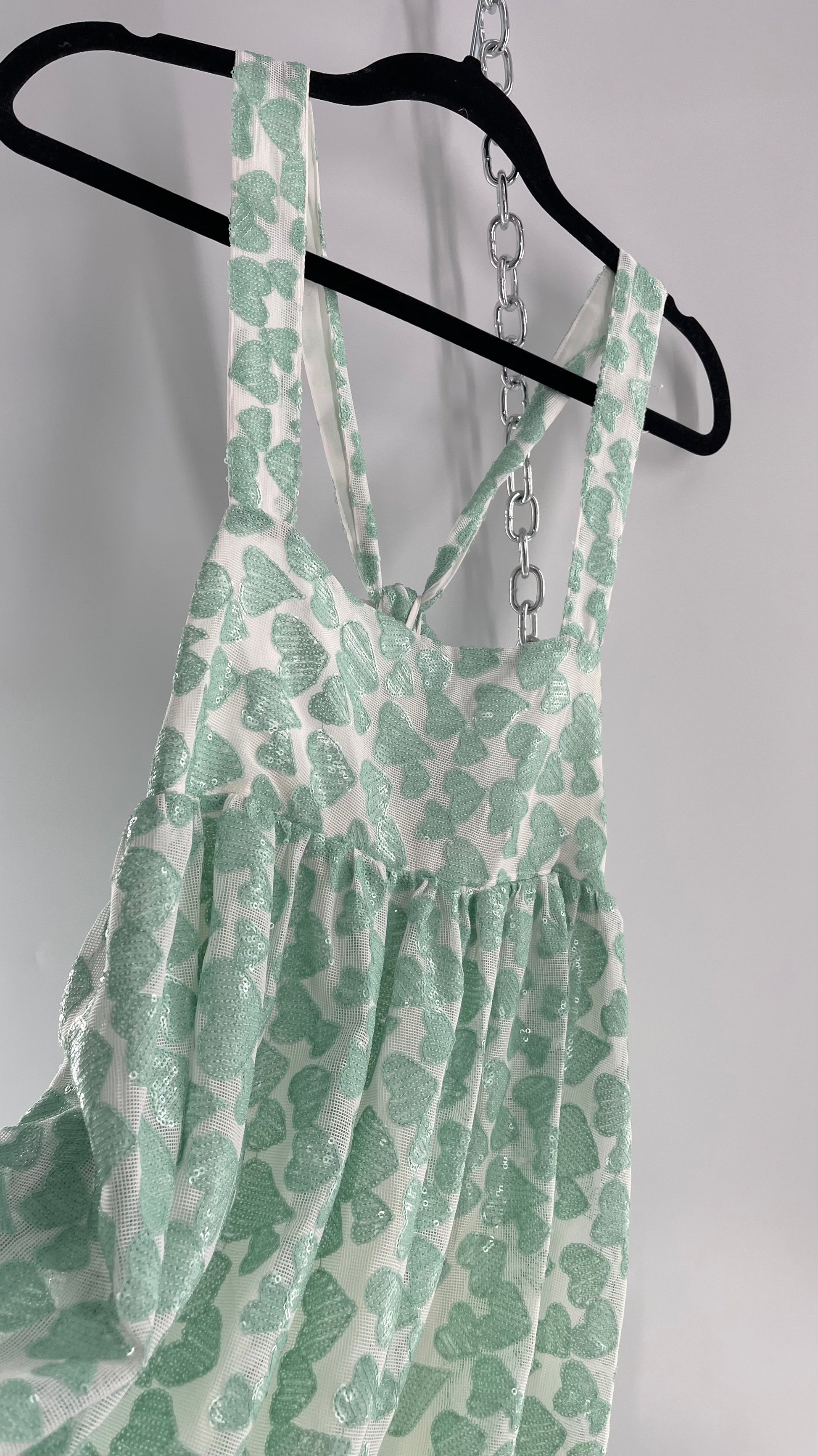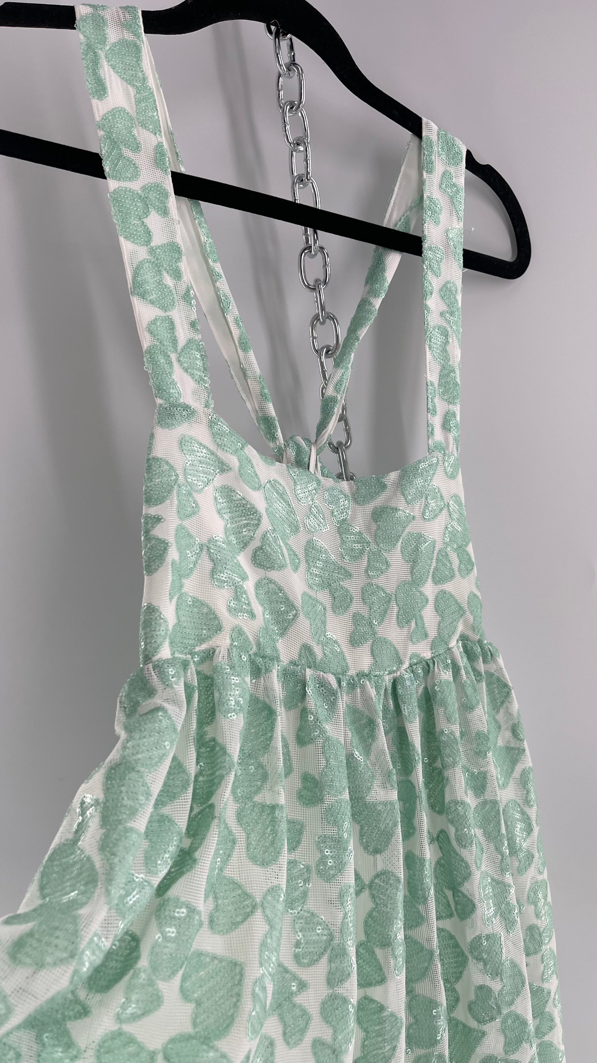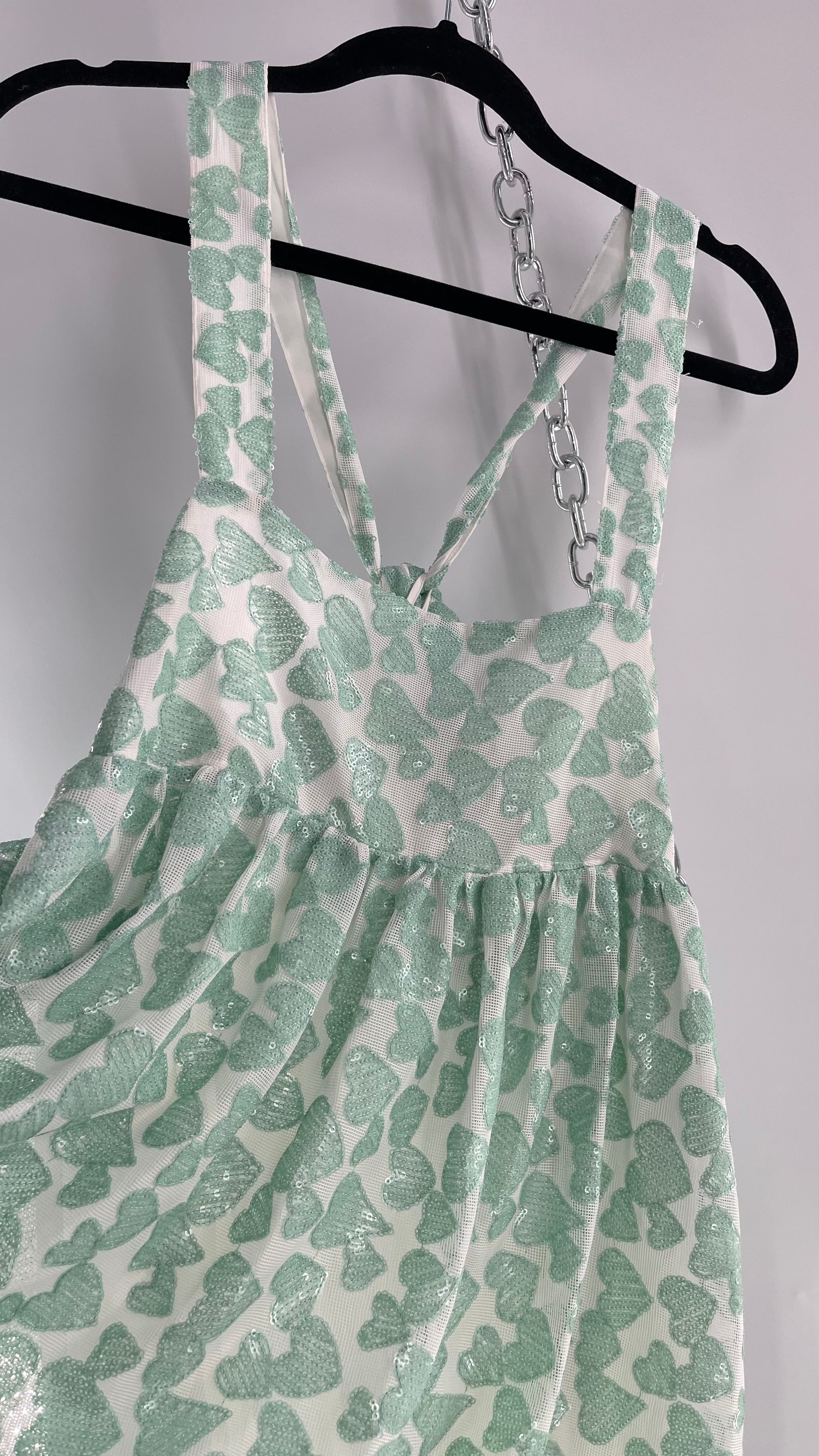Kimchi Blue Babydoll Dress Covered in Sequin Teal/Mint Hearts (Medium)