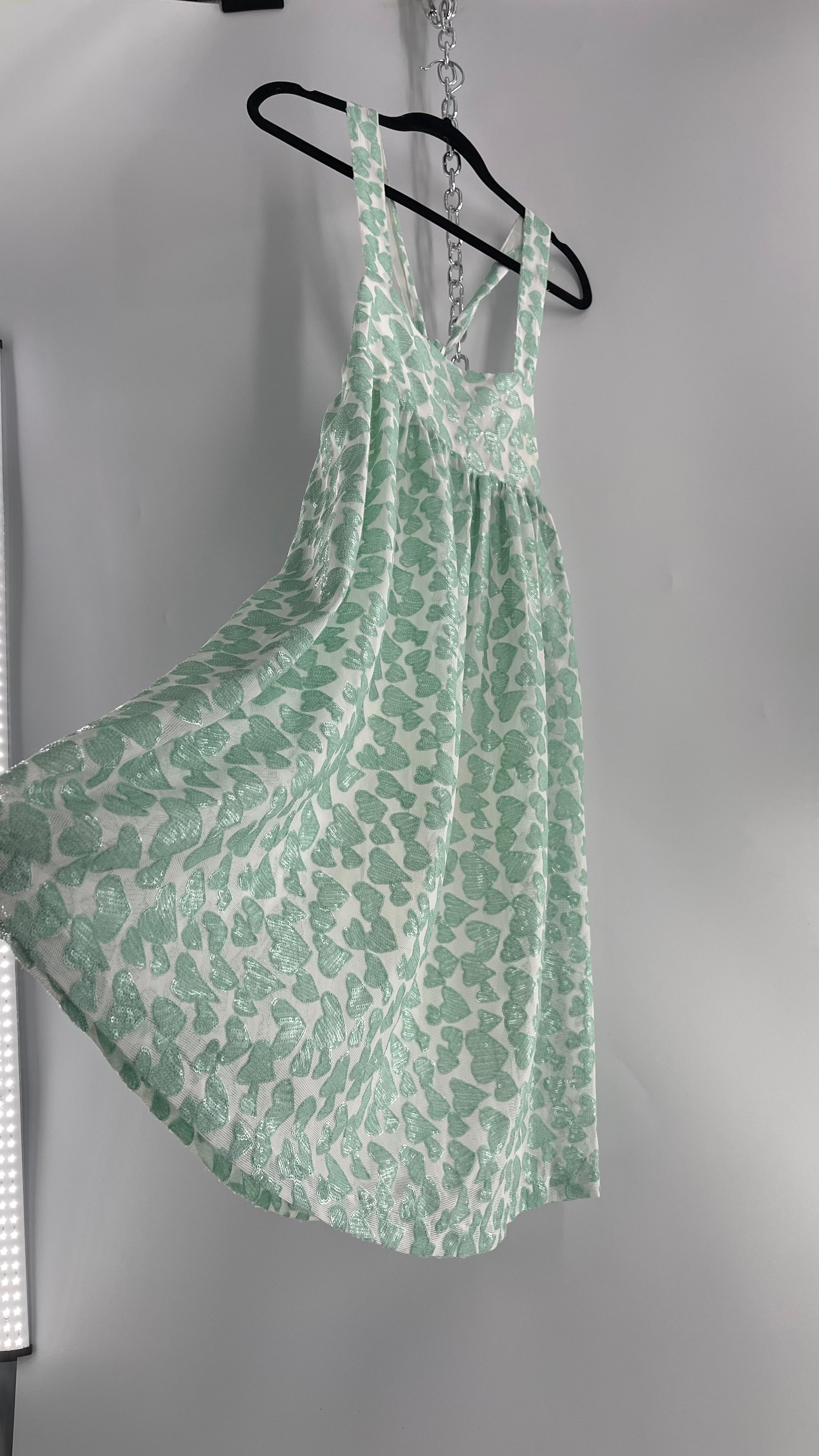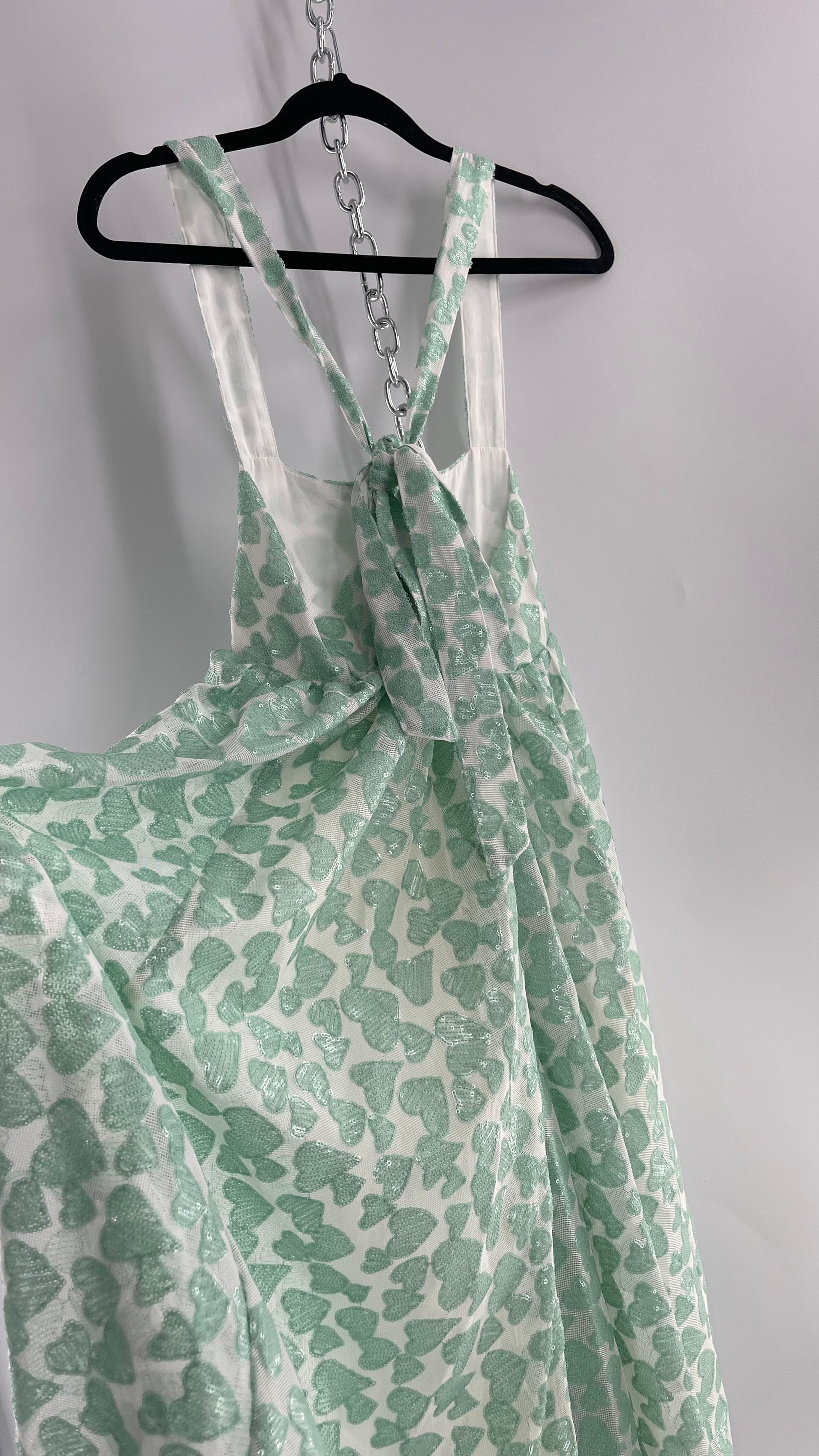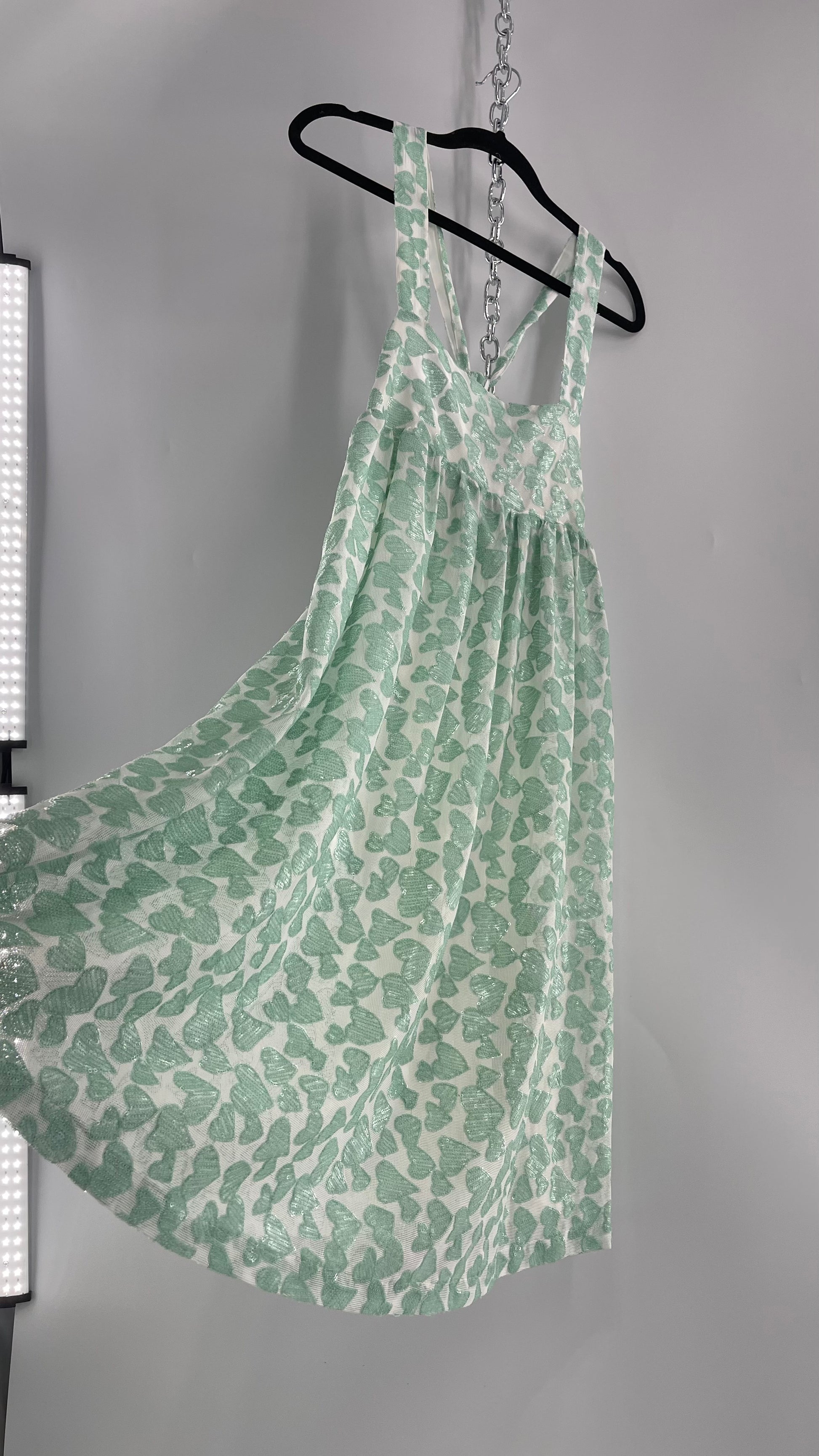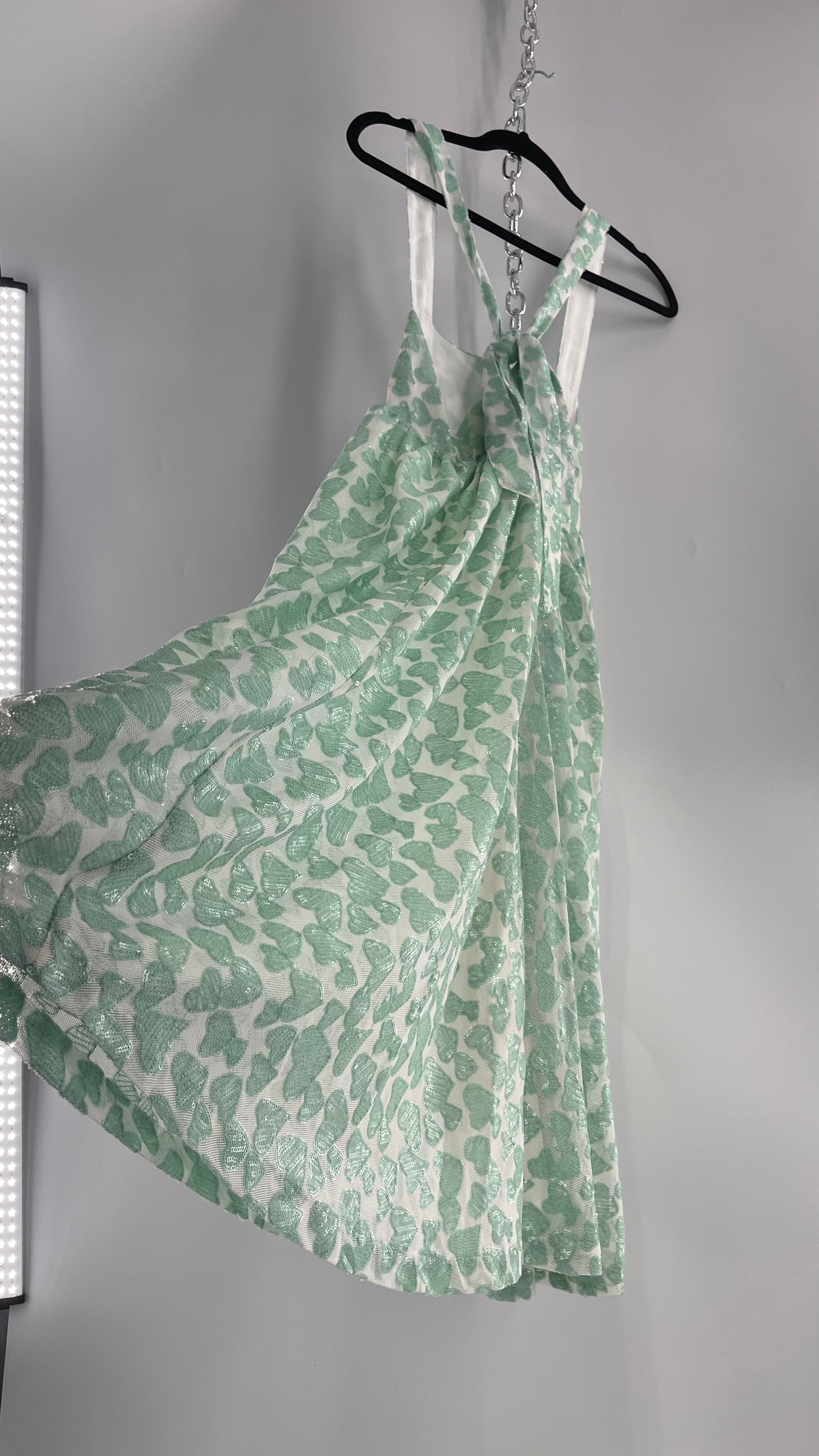 Kimchi Blue Babydoll Dress Covered in Sequin Teal/Mint Hearts (Medium)