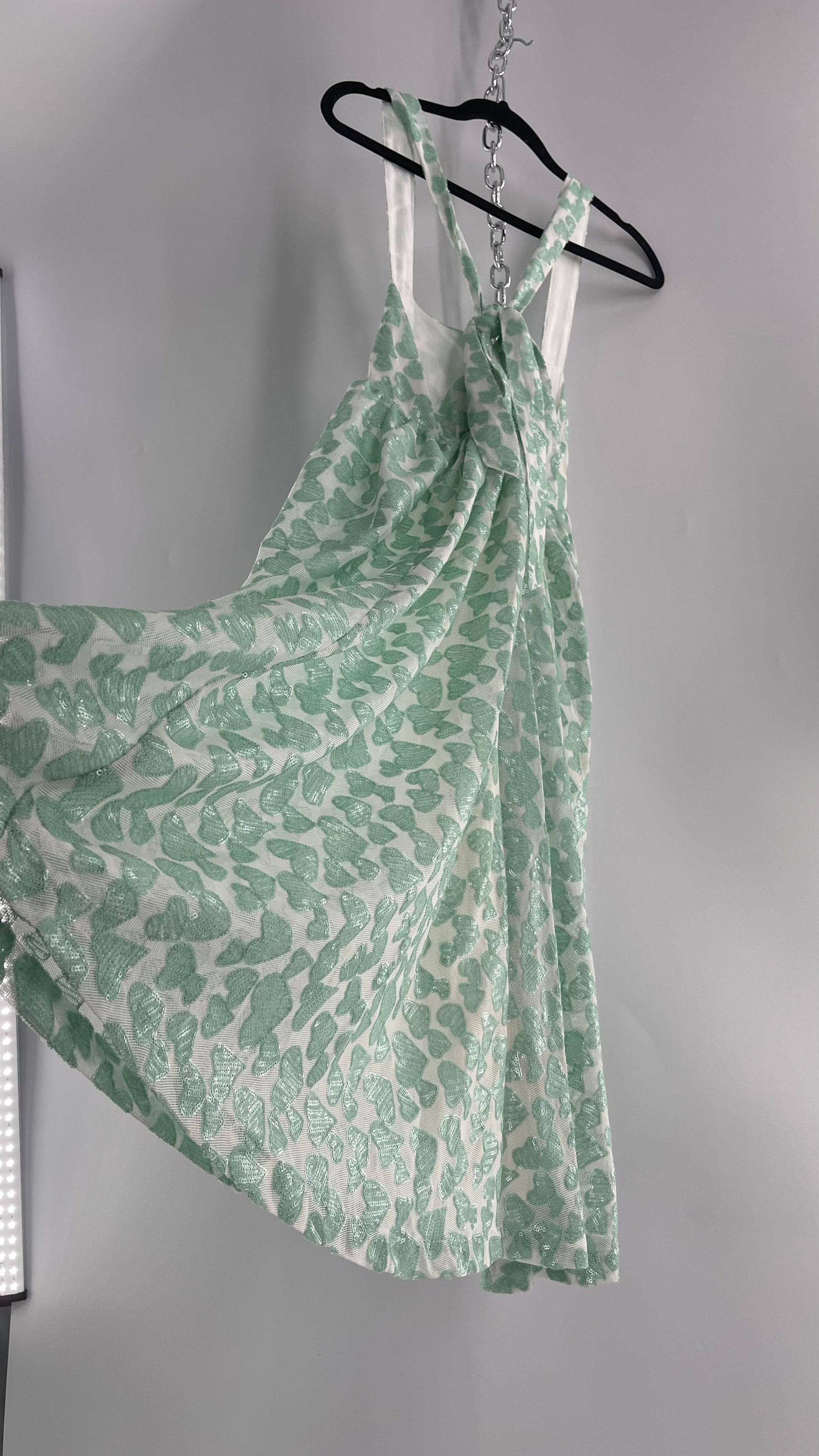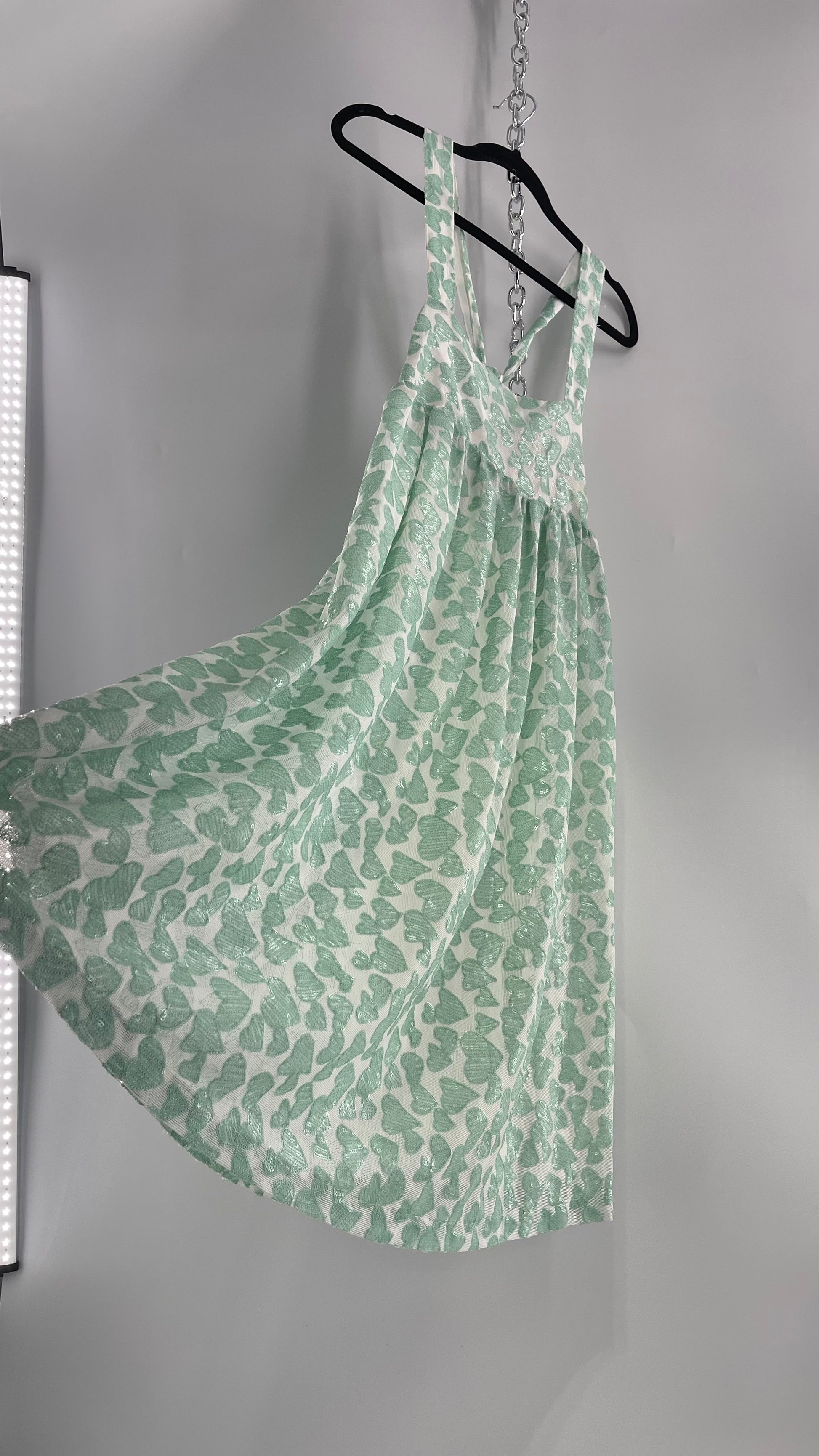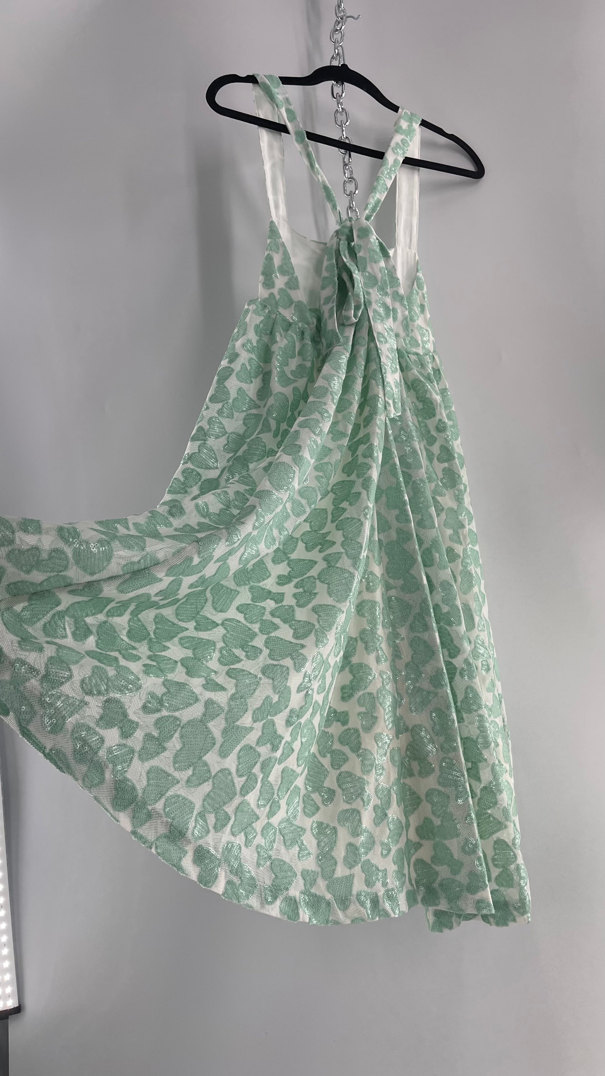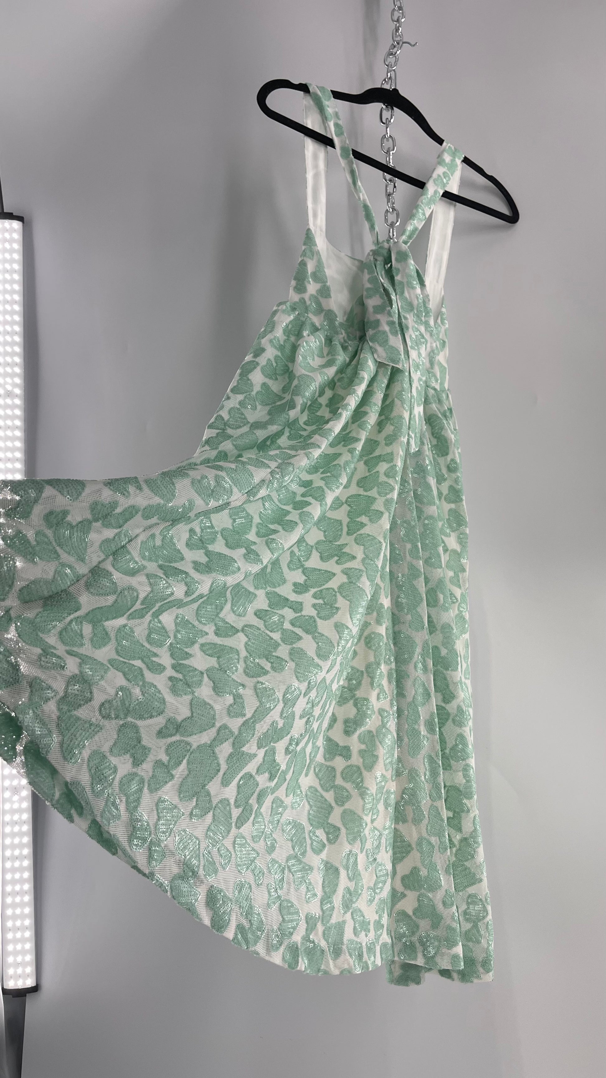 Kimchi Blue Babydoll Dress Covered in Sequin Teal/Mint Hearts (Medium)