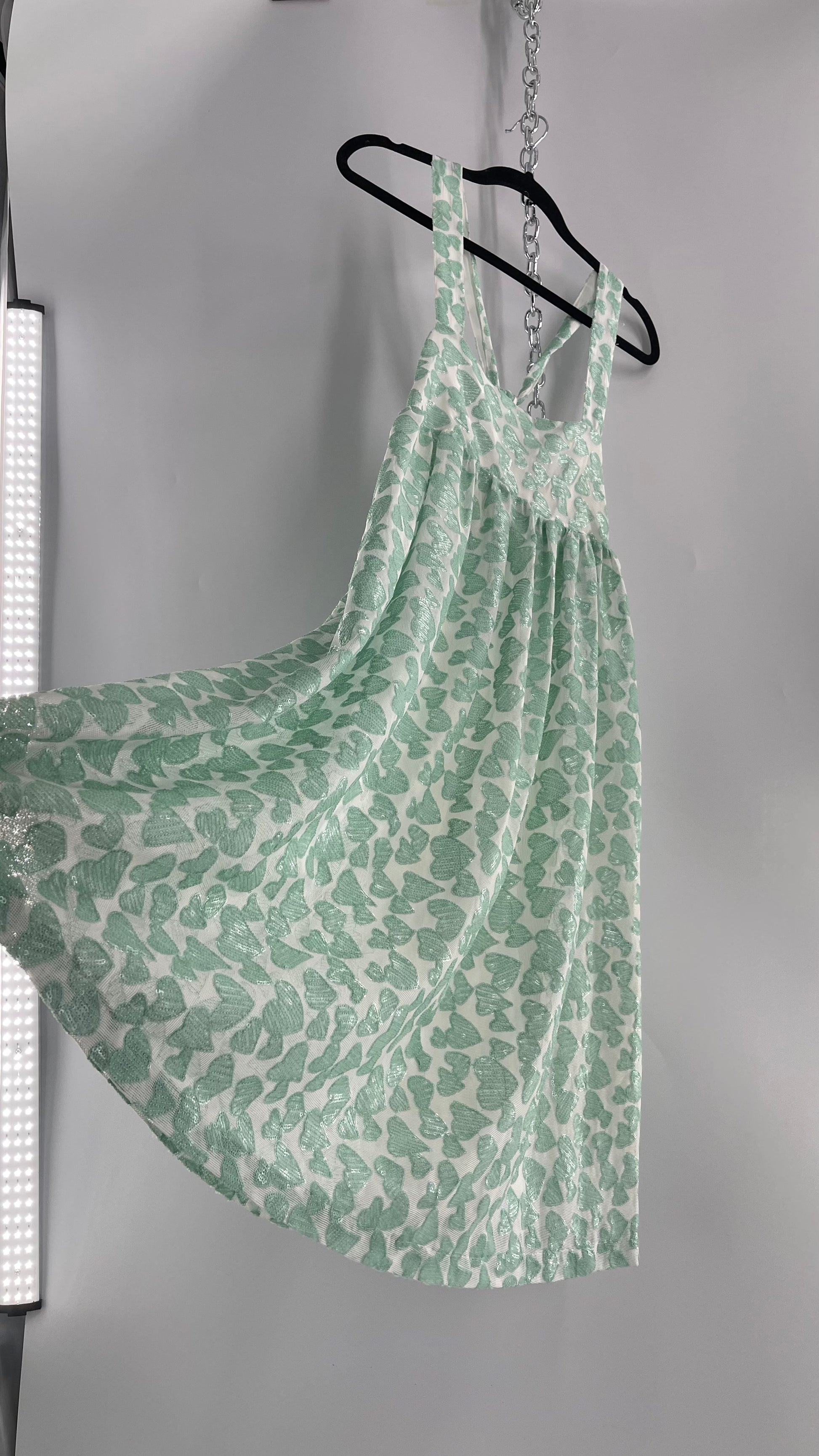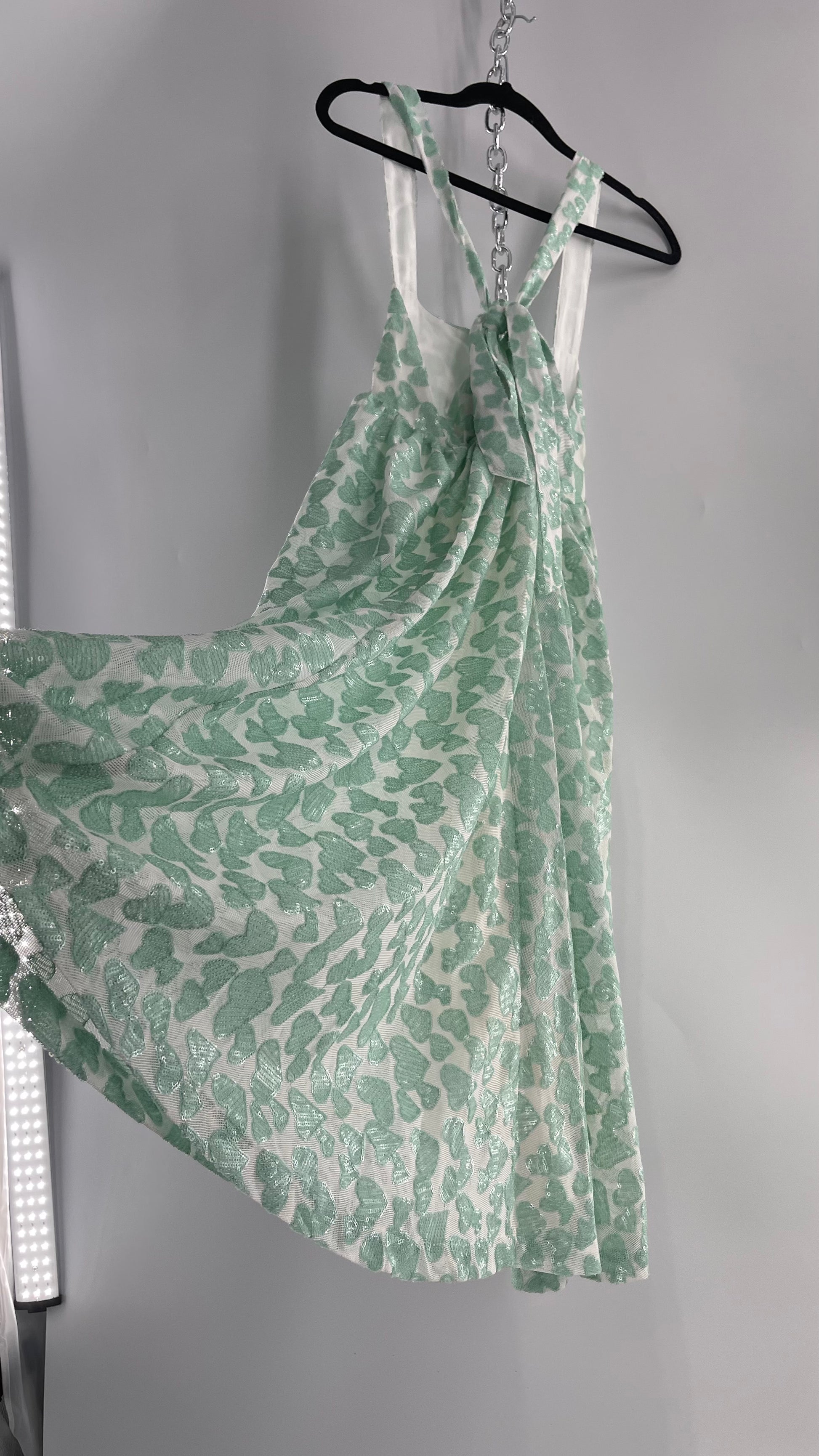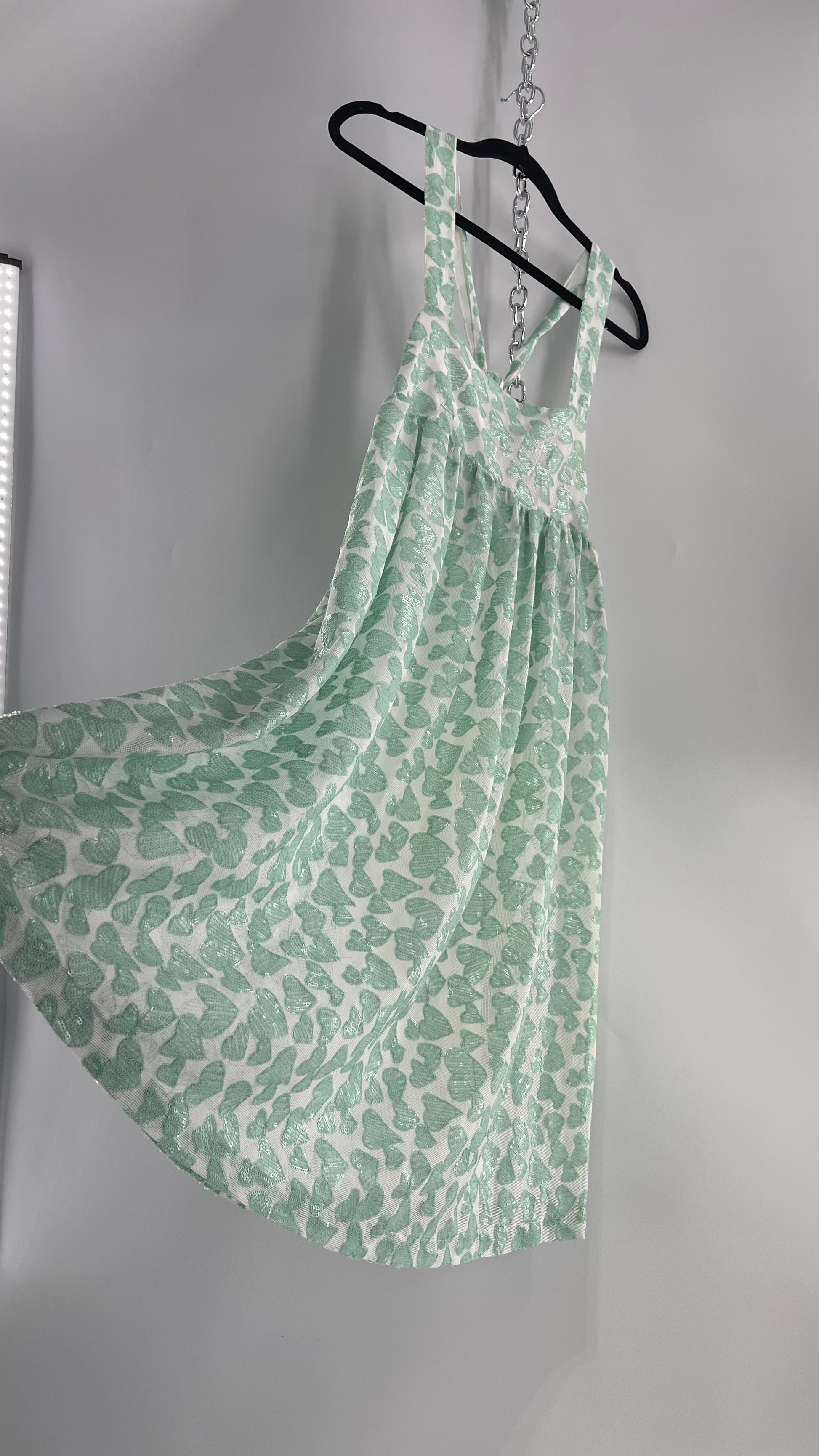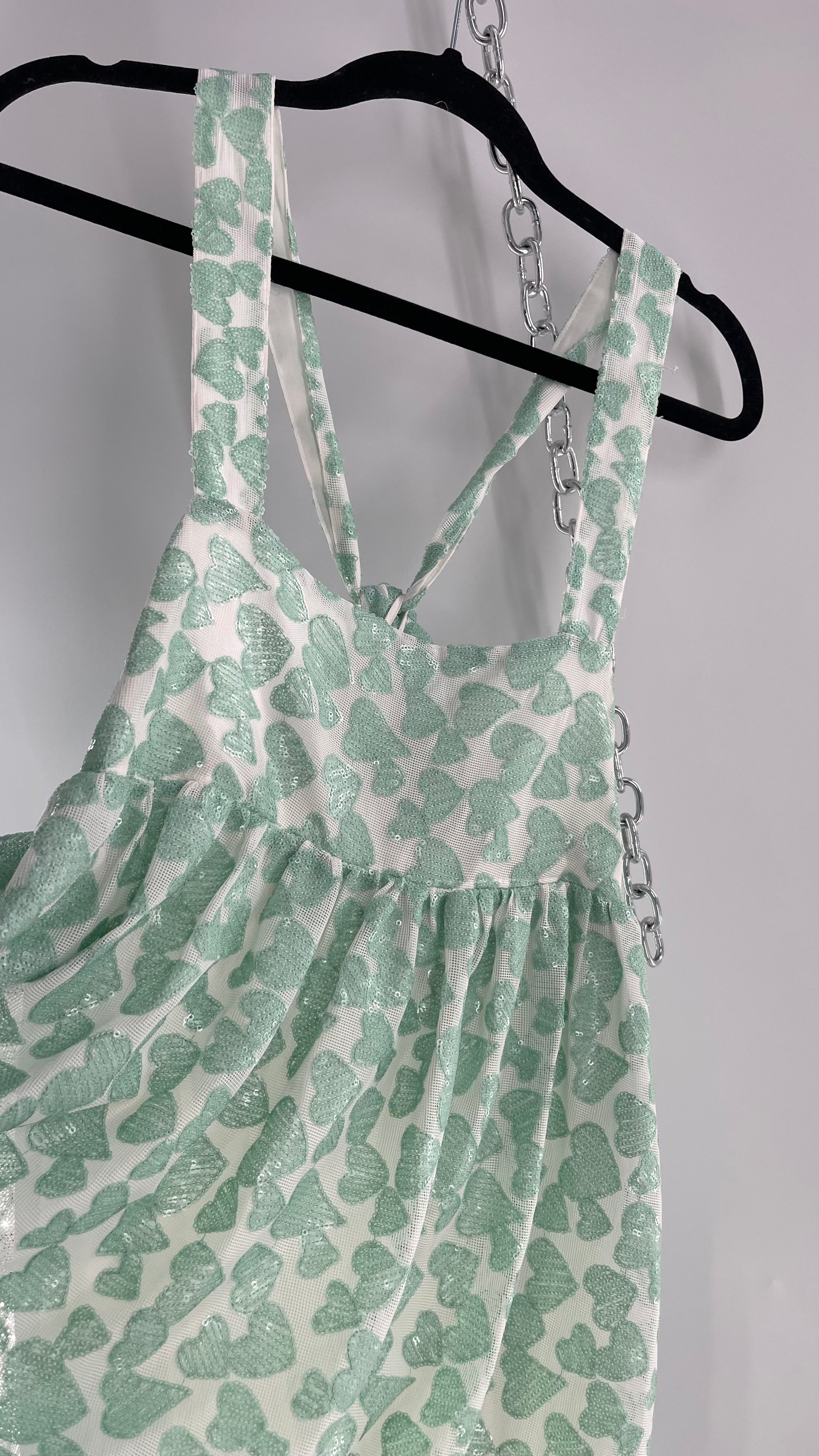 Kimchi Blue Babydoll Dress Covered in Sequin Teal/Mint Hearts (Medium)
