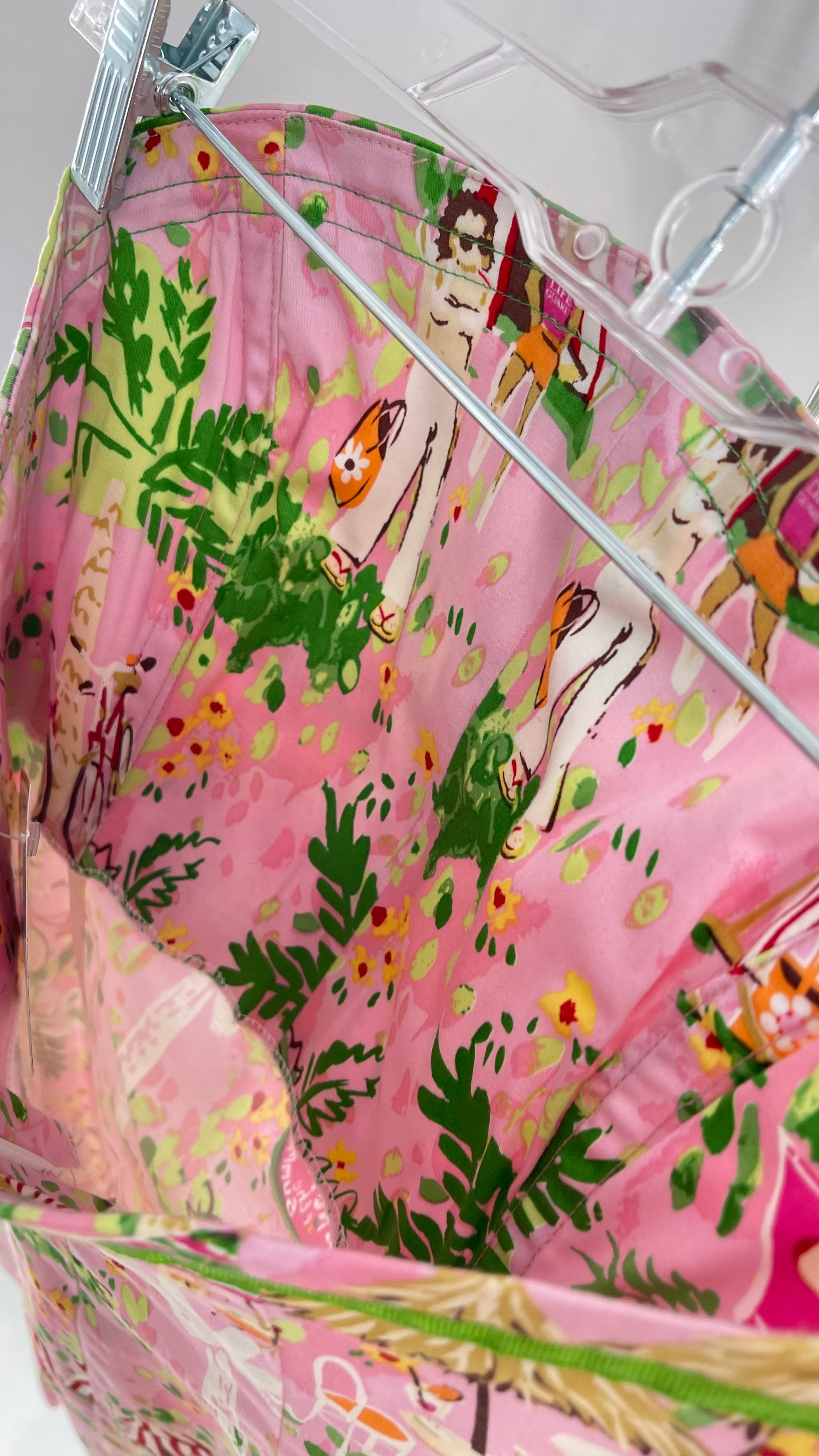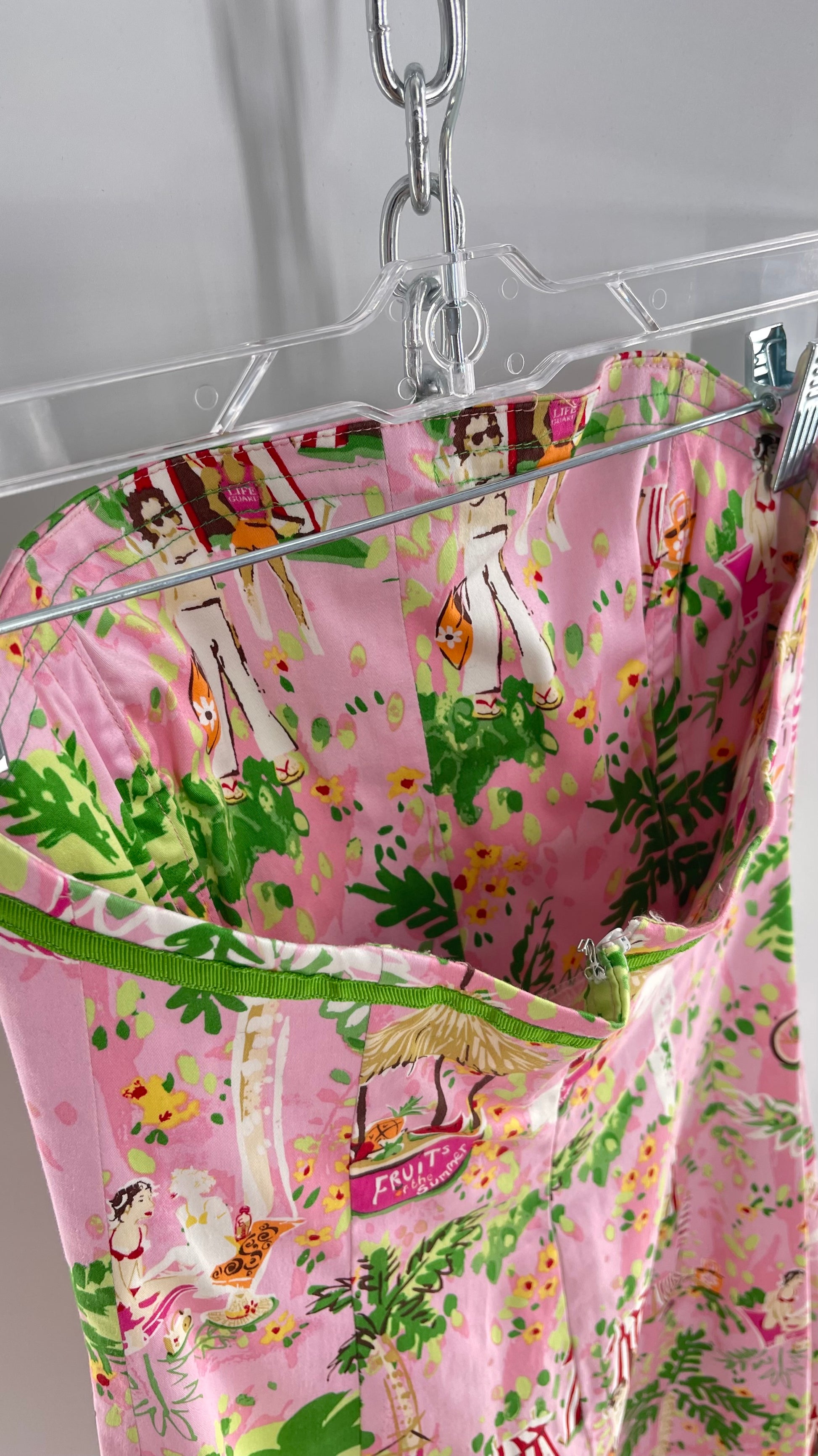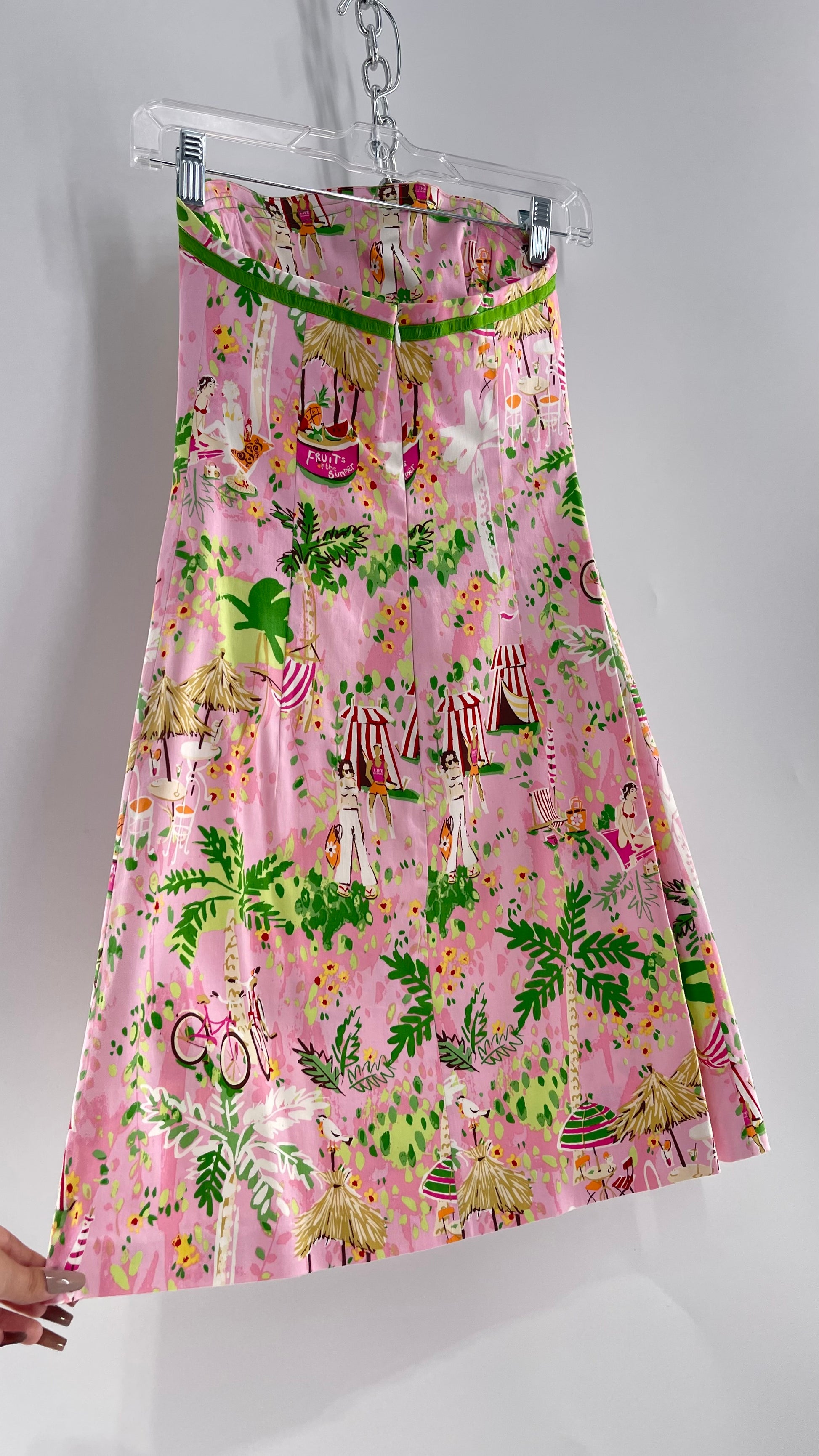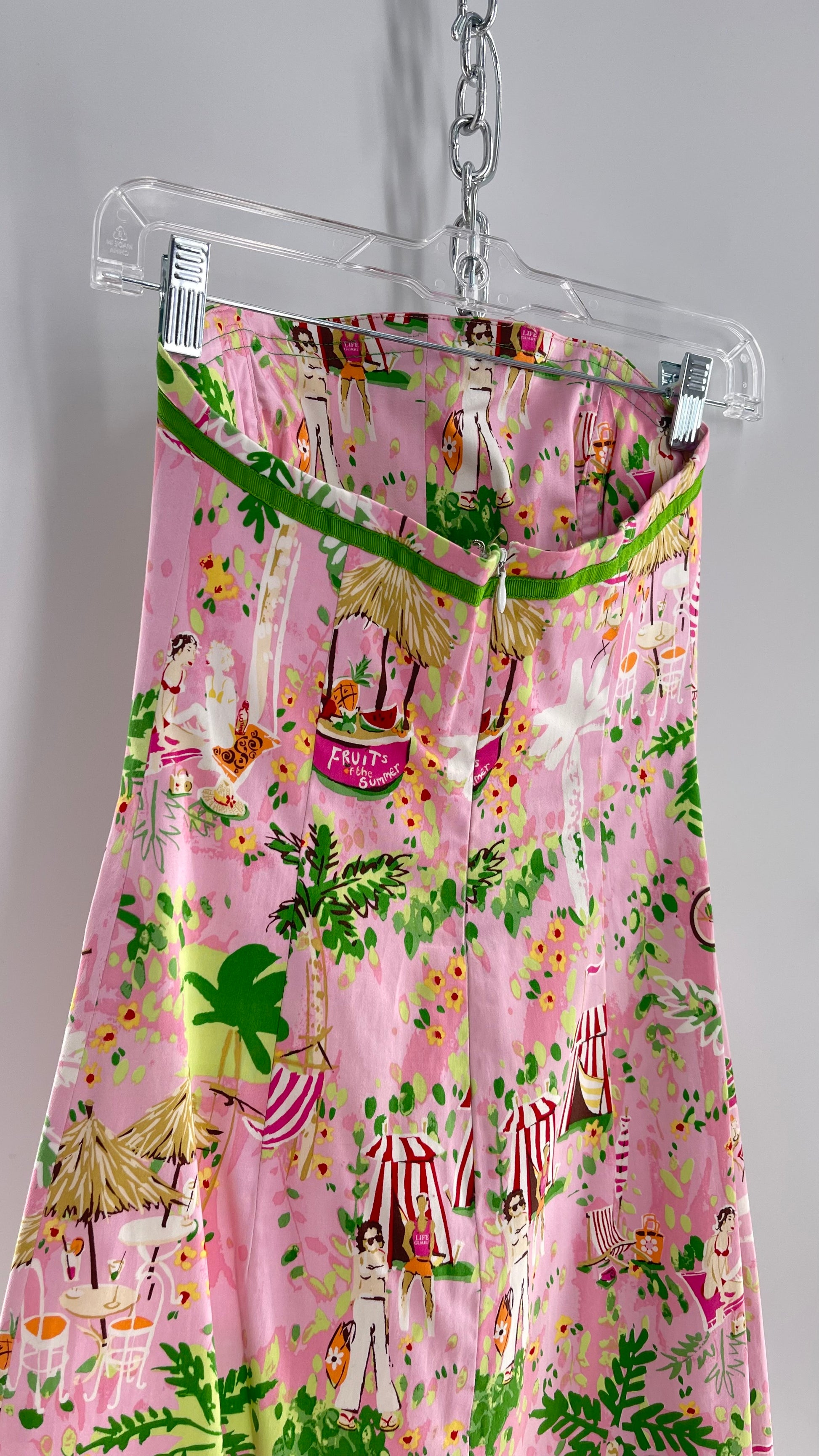 Vintage Handmade Pink Sketchbook 90s Print Mini Dress with Green Ribbon and Built In Boning (XS)