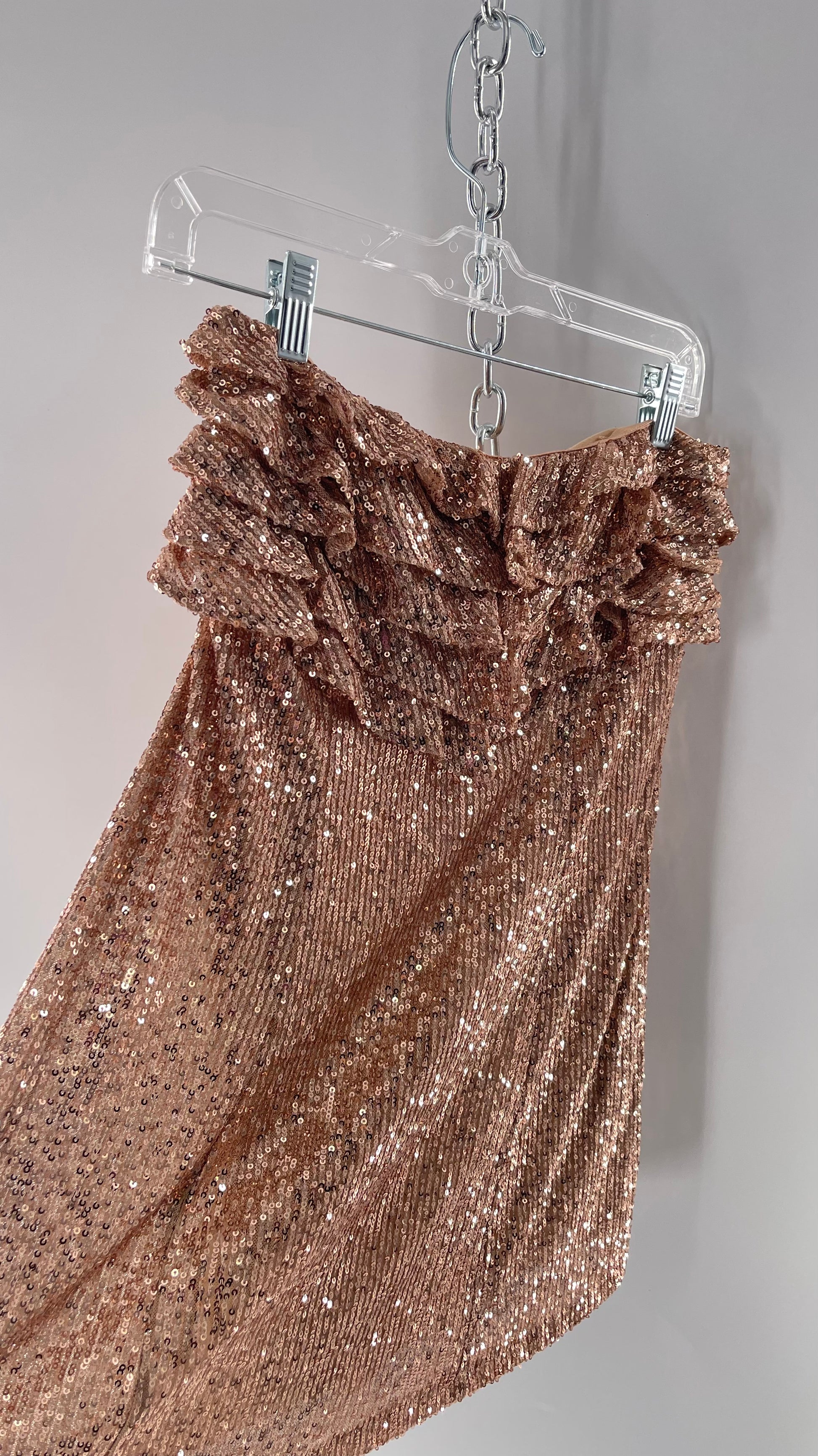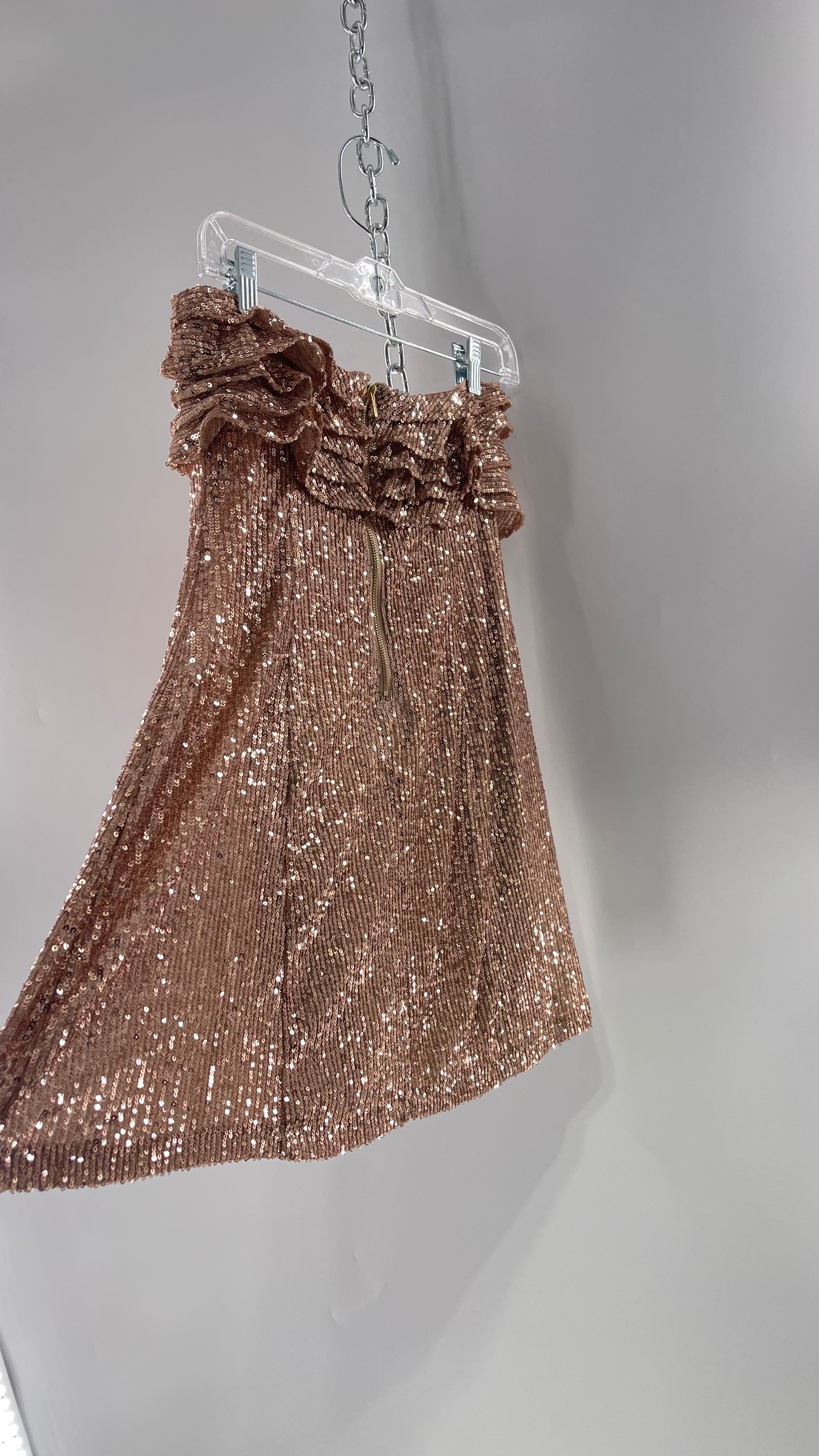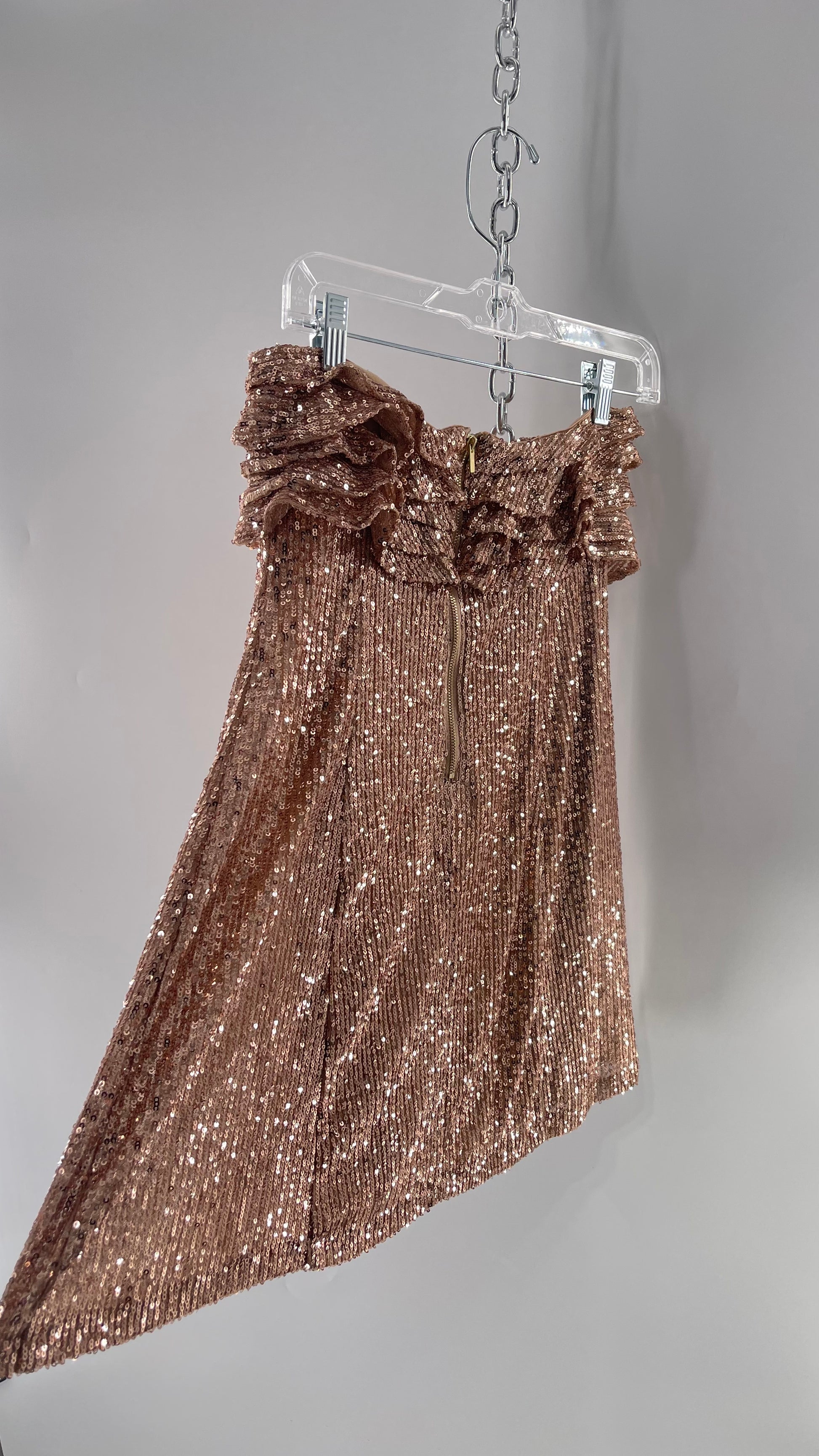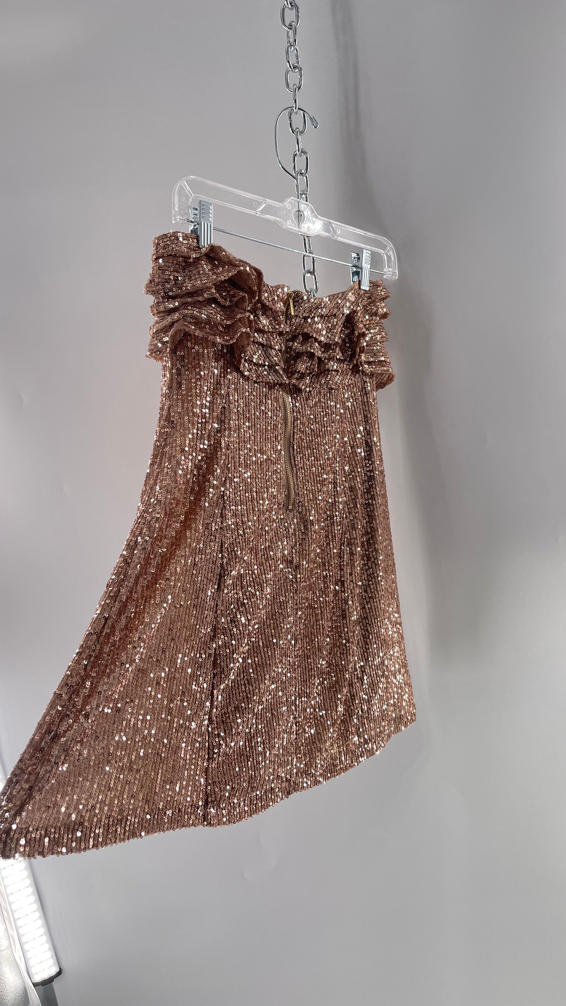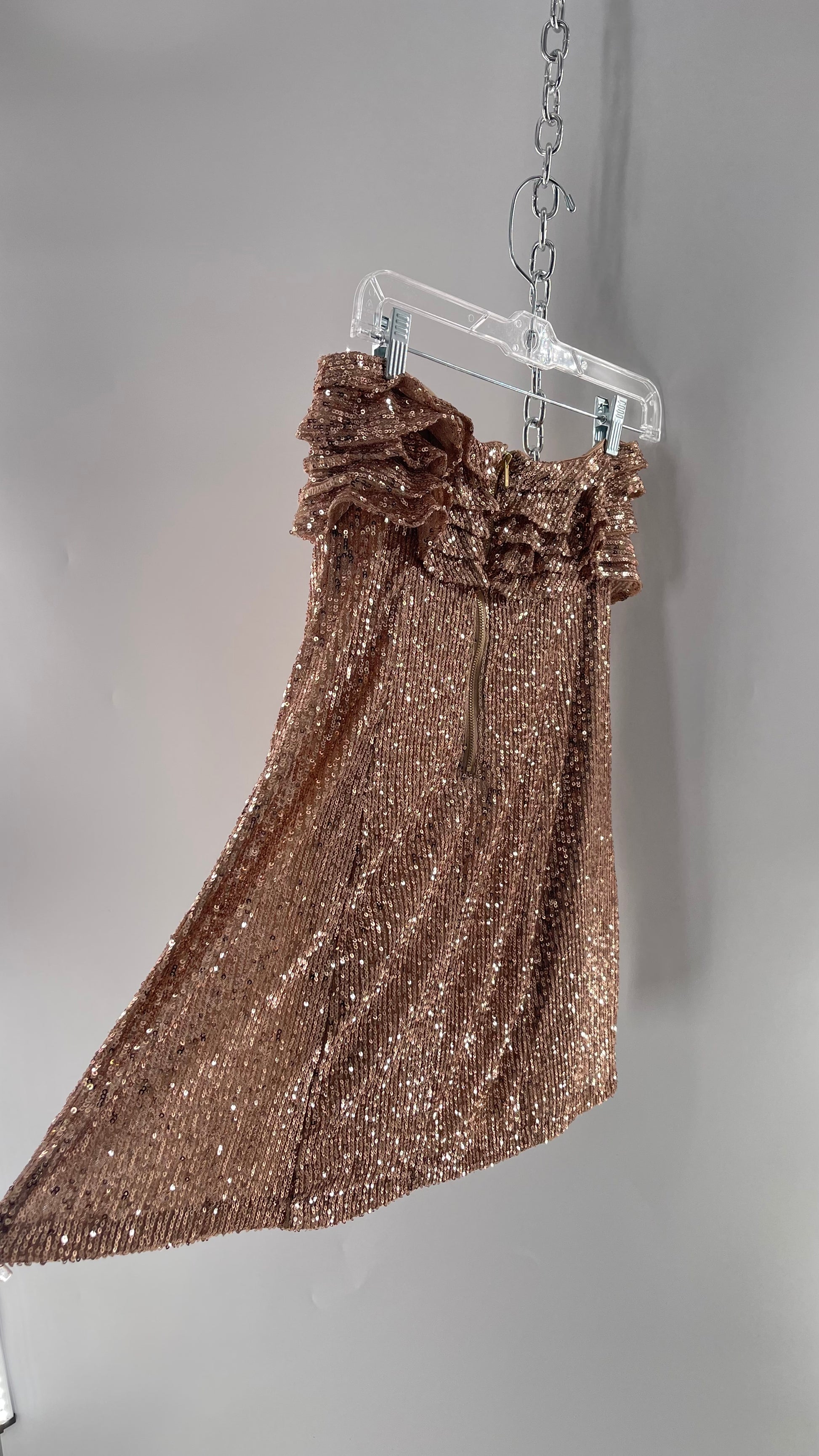 Free People Rose Gold Sequin Mini Dress with Ruffled Bust and Statement Back Zipper (4)