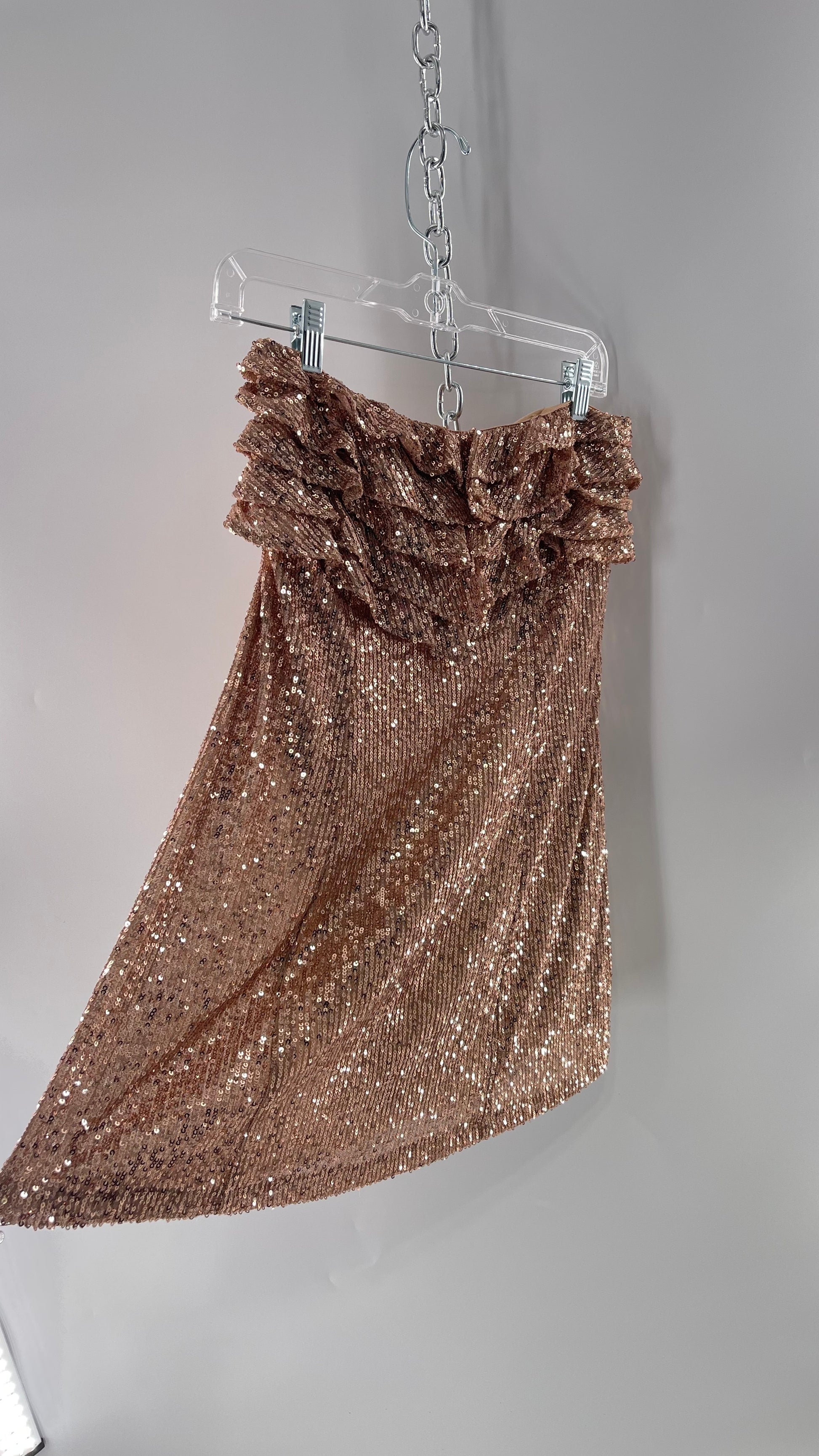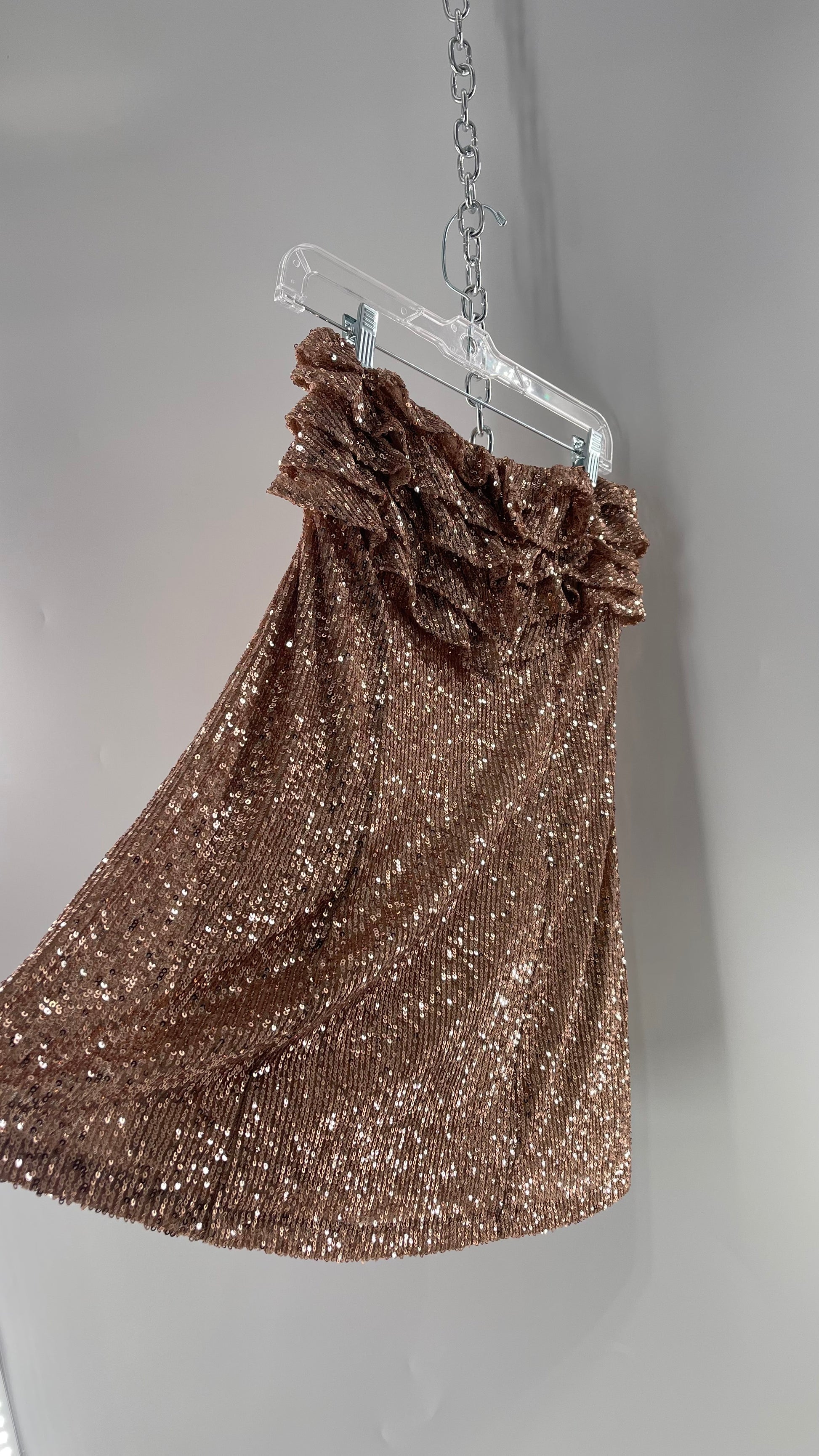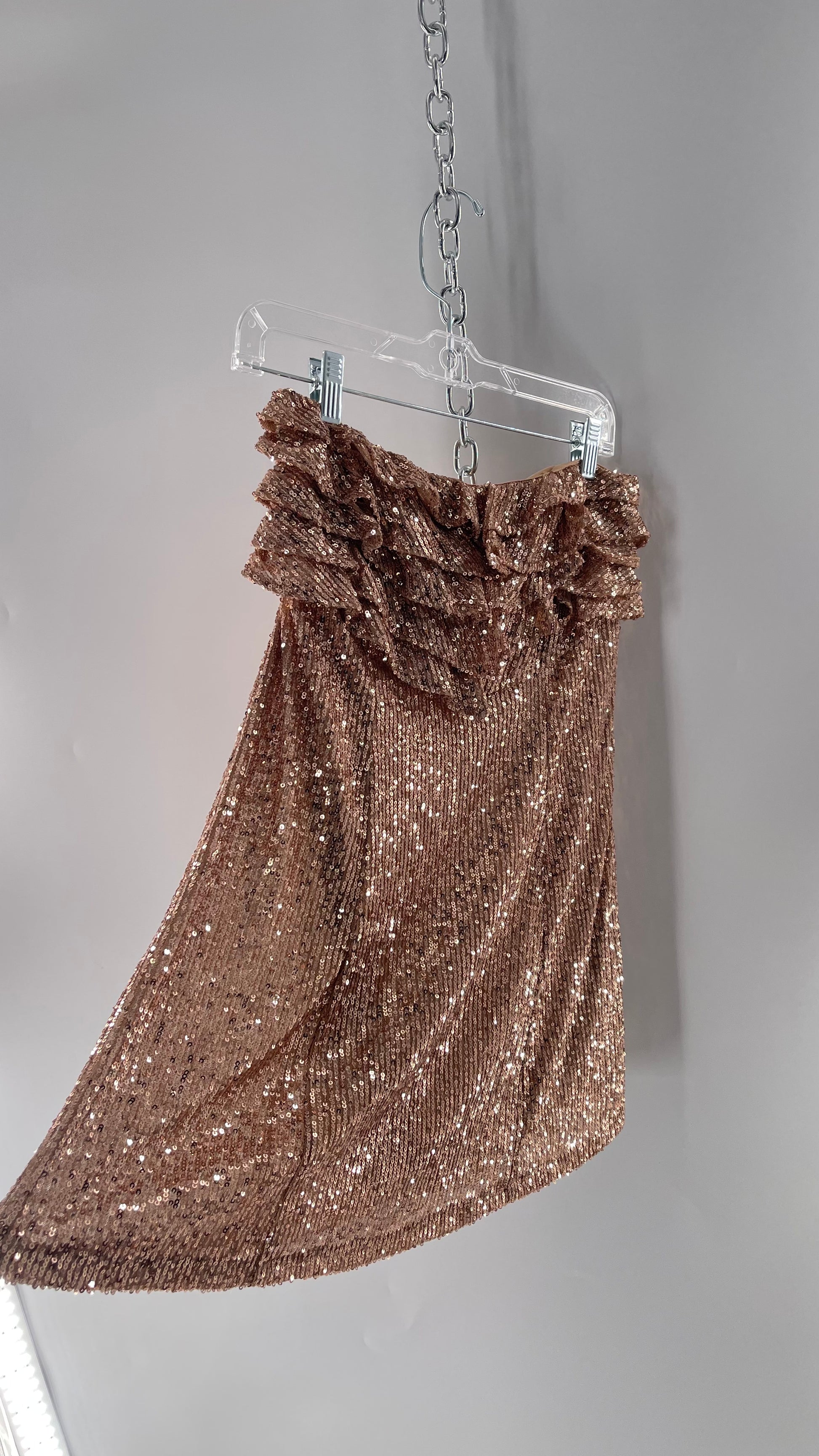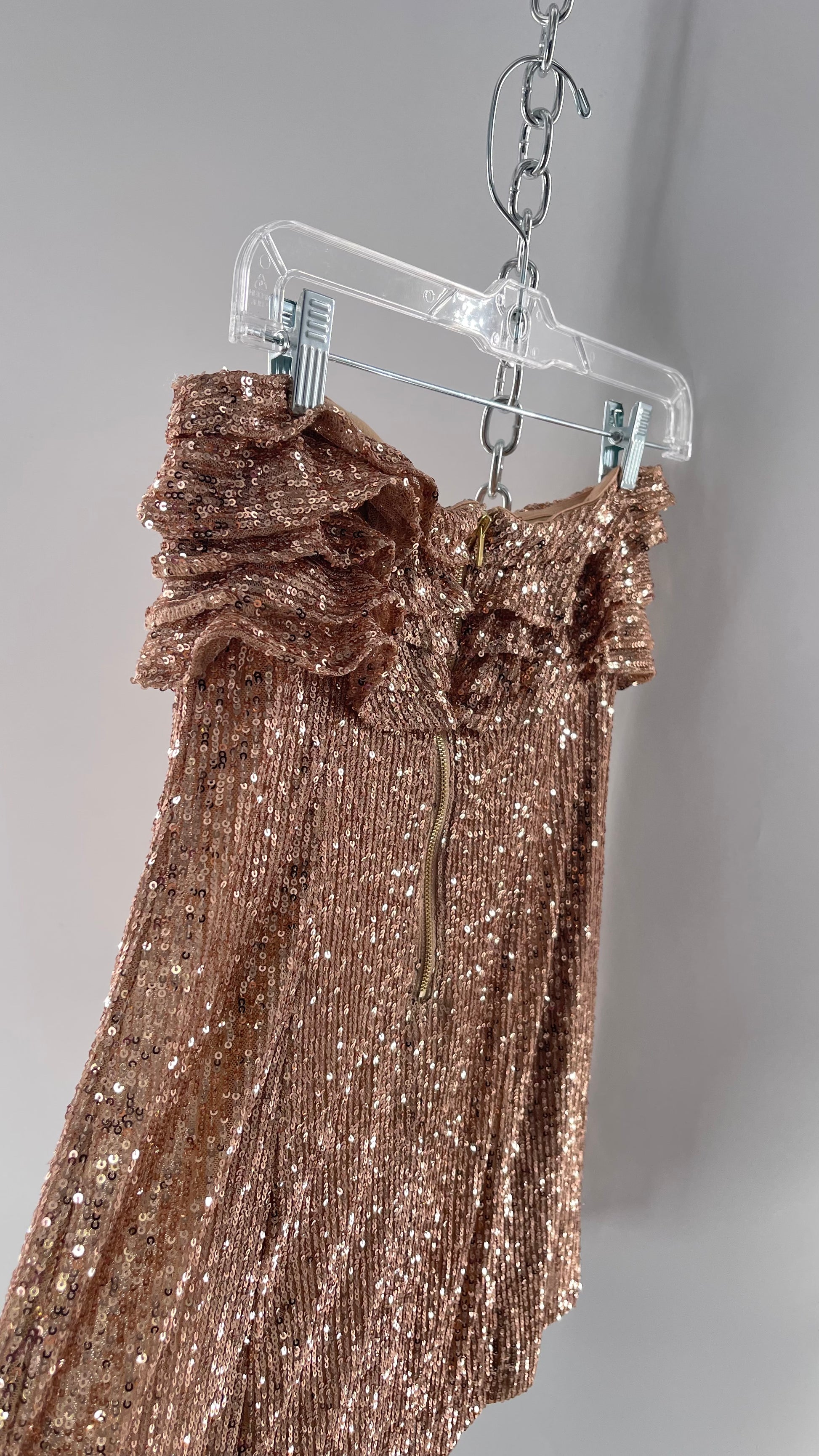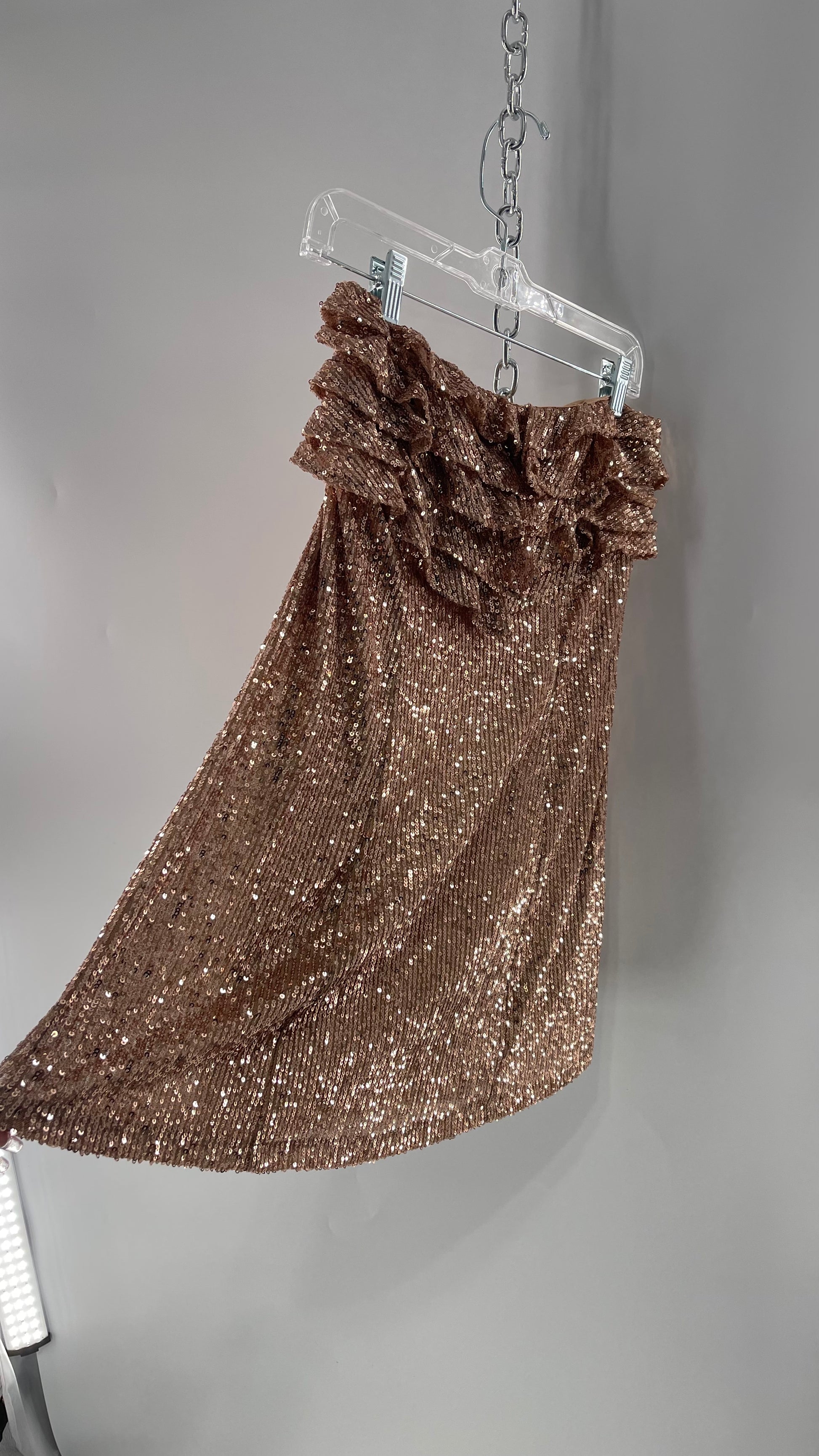 Free People Rose Gold Sequin Mini Dress with Ruffled Bust and Statement Back Zipper (4)
