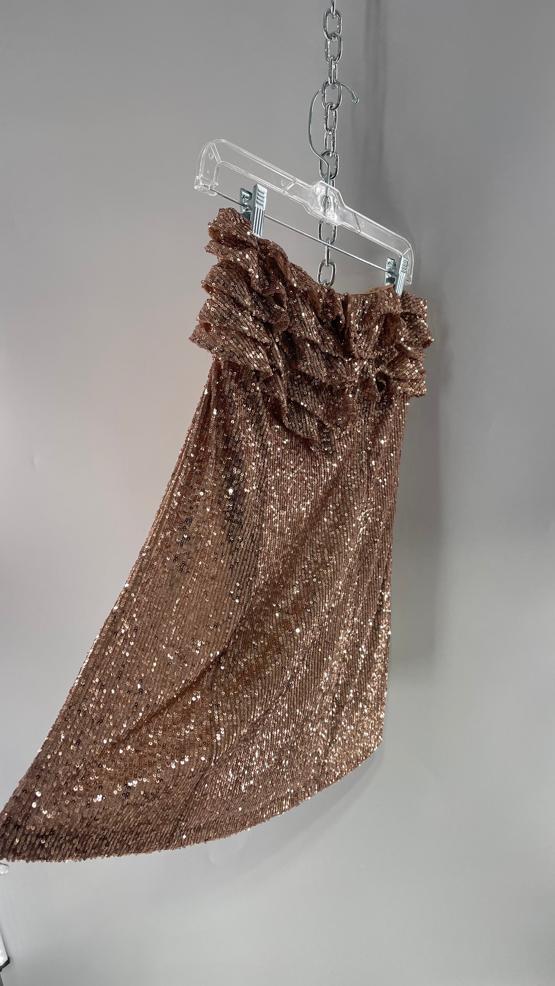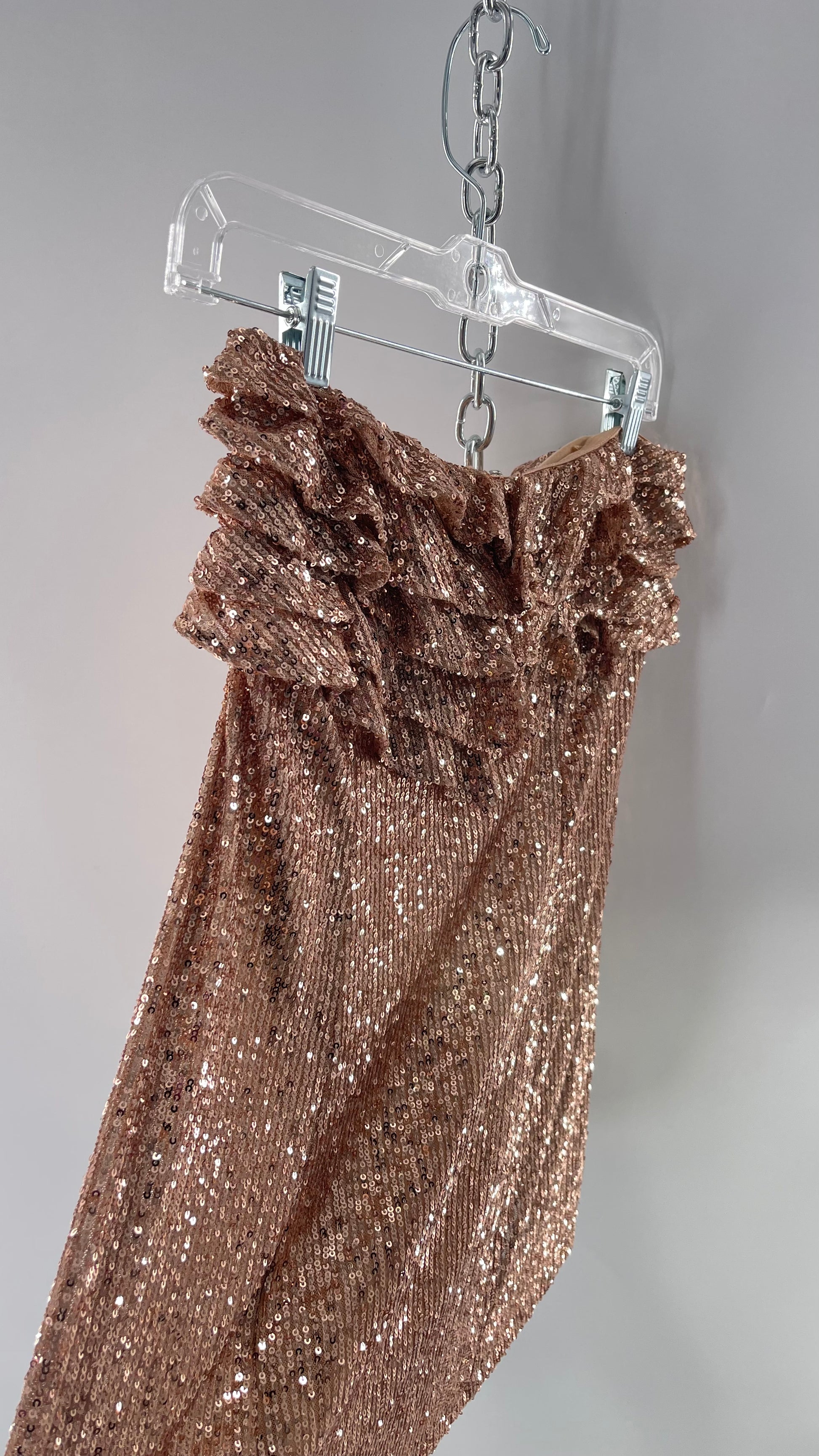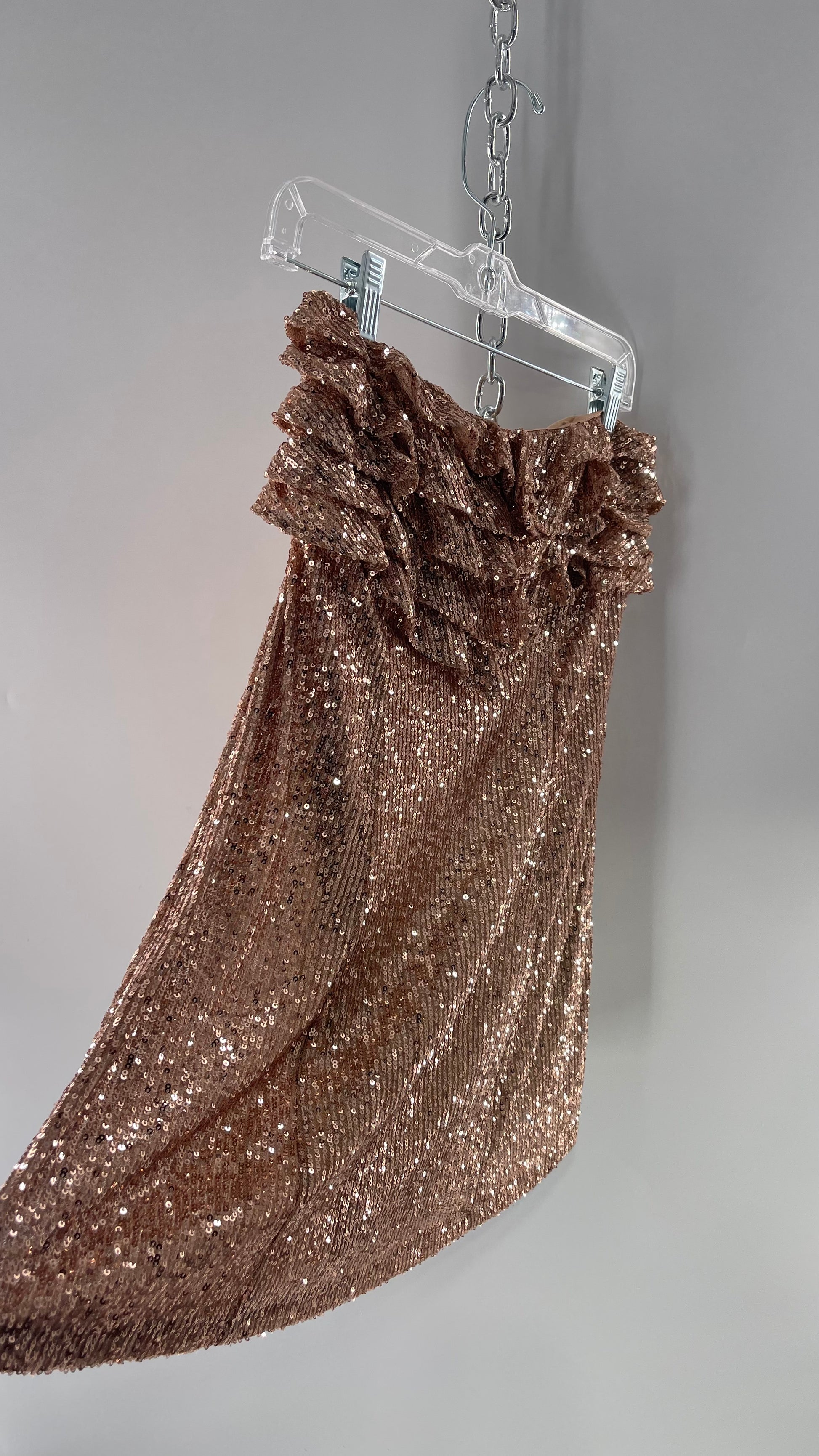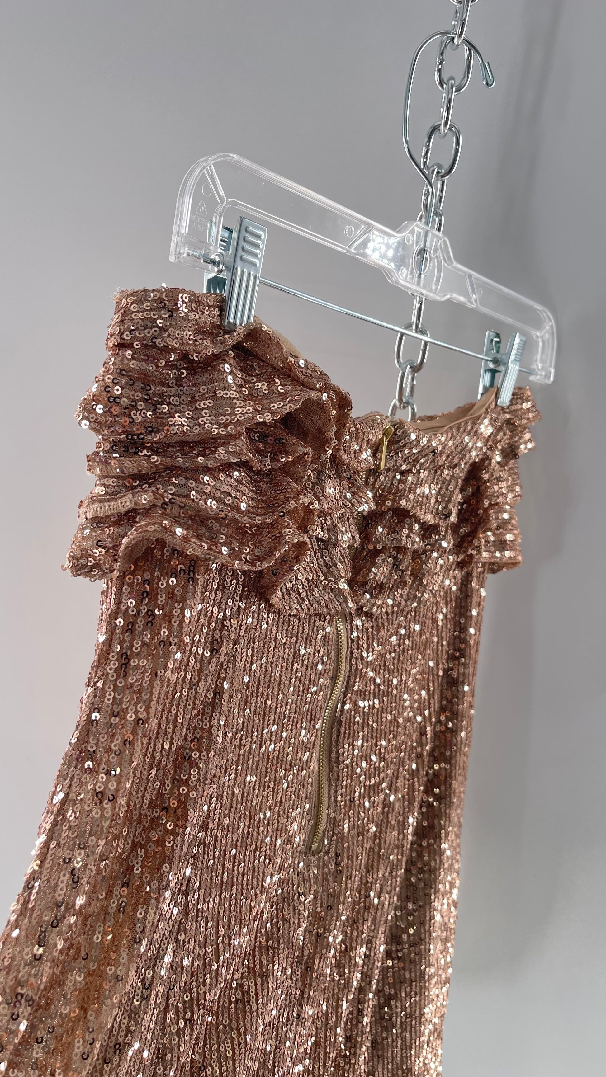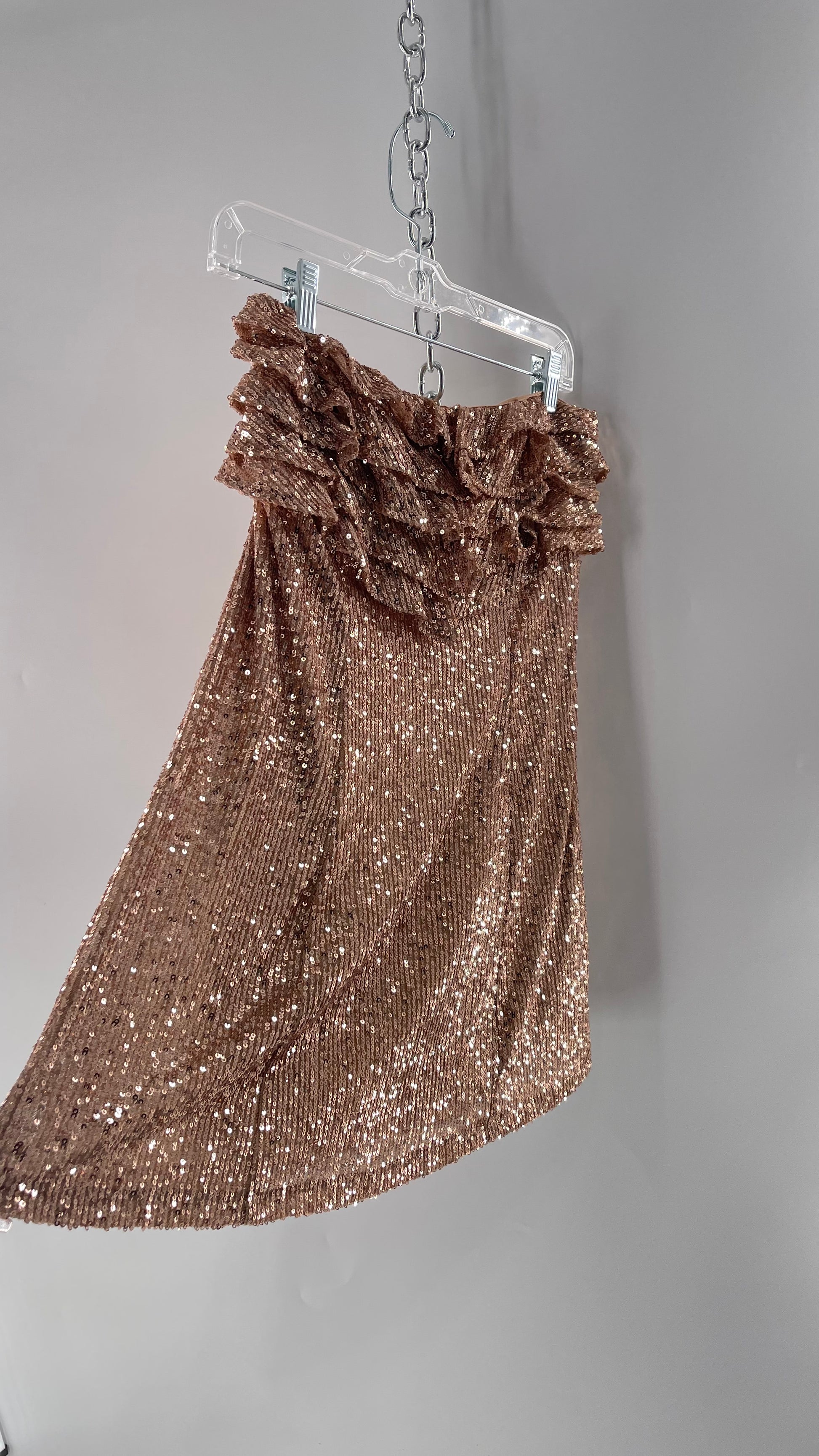 Free People Rose Gold Sequin Mini Dress with Ruffled Bust and Statement Back Zipper (4)