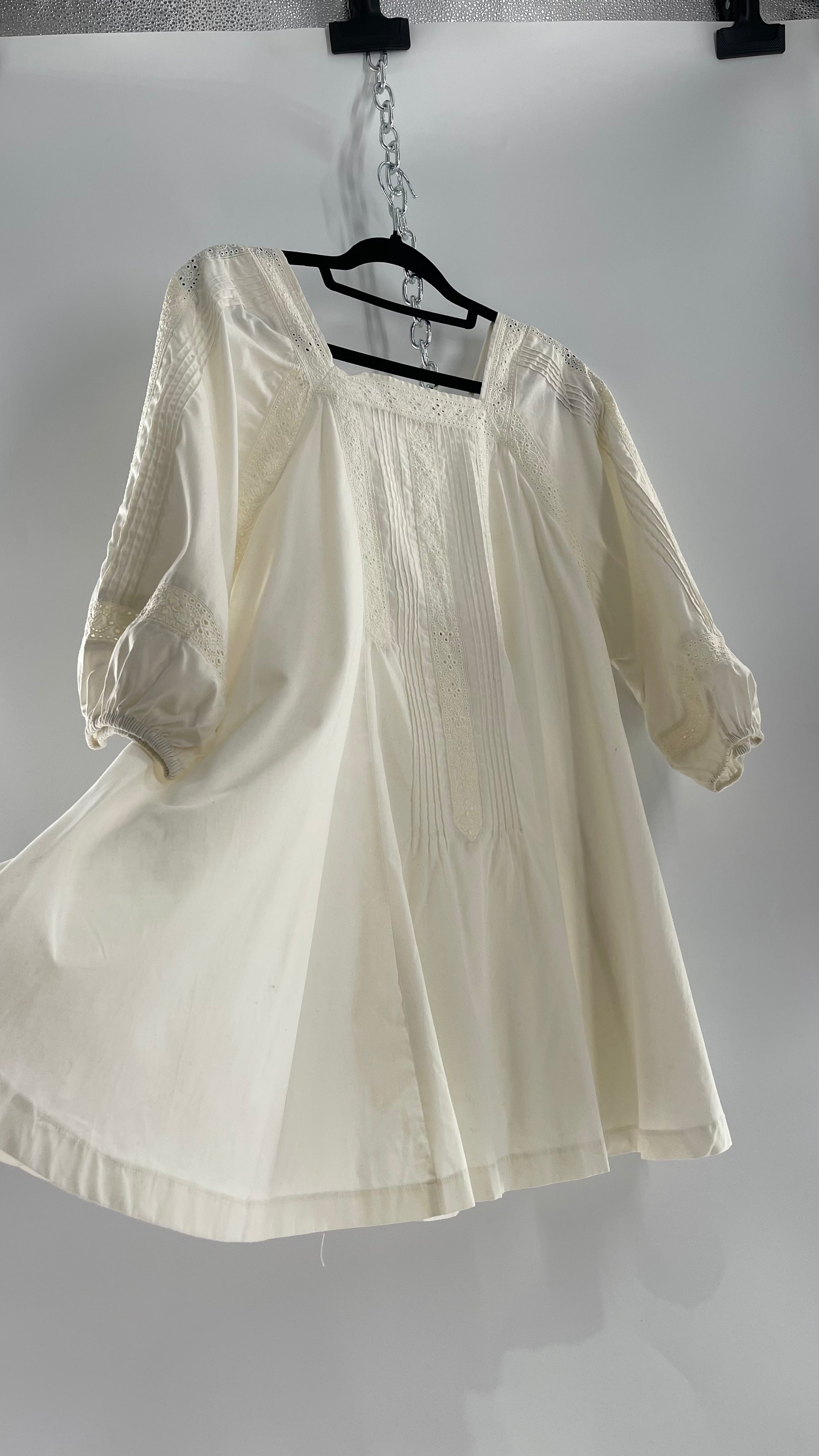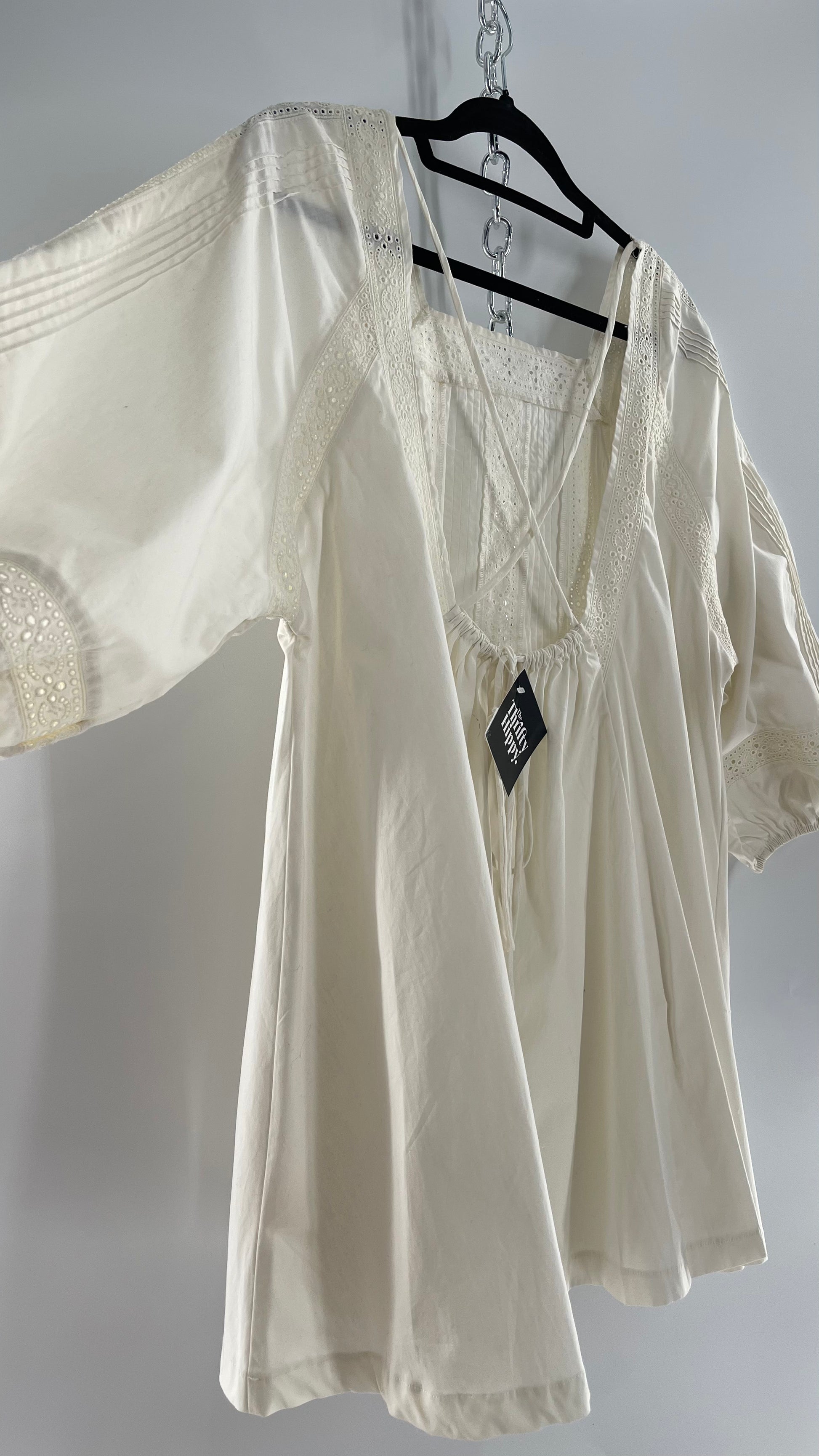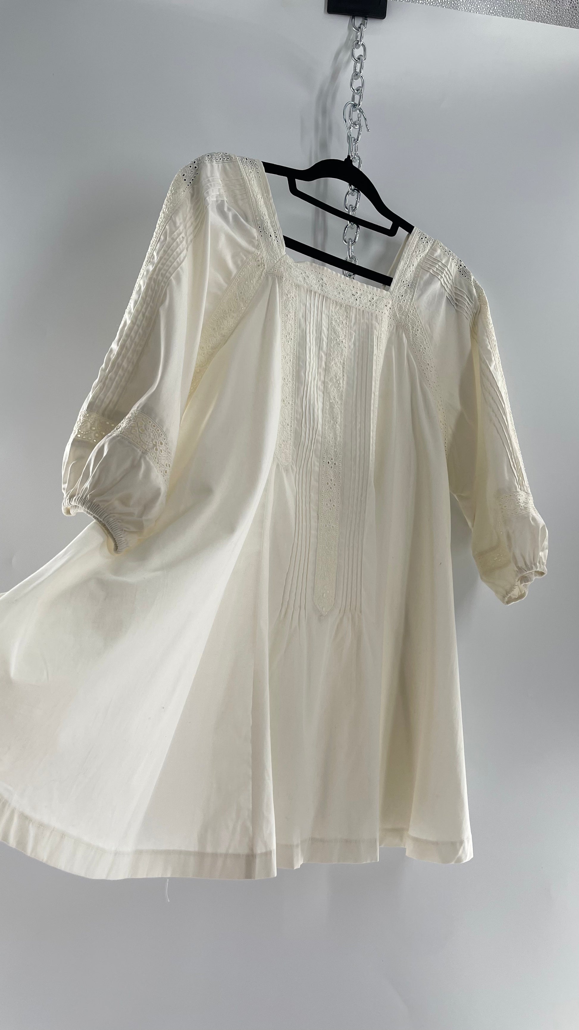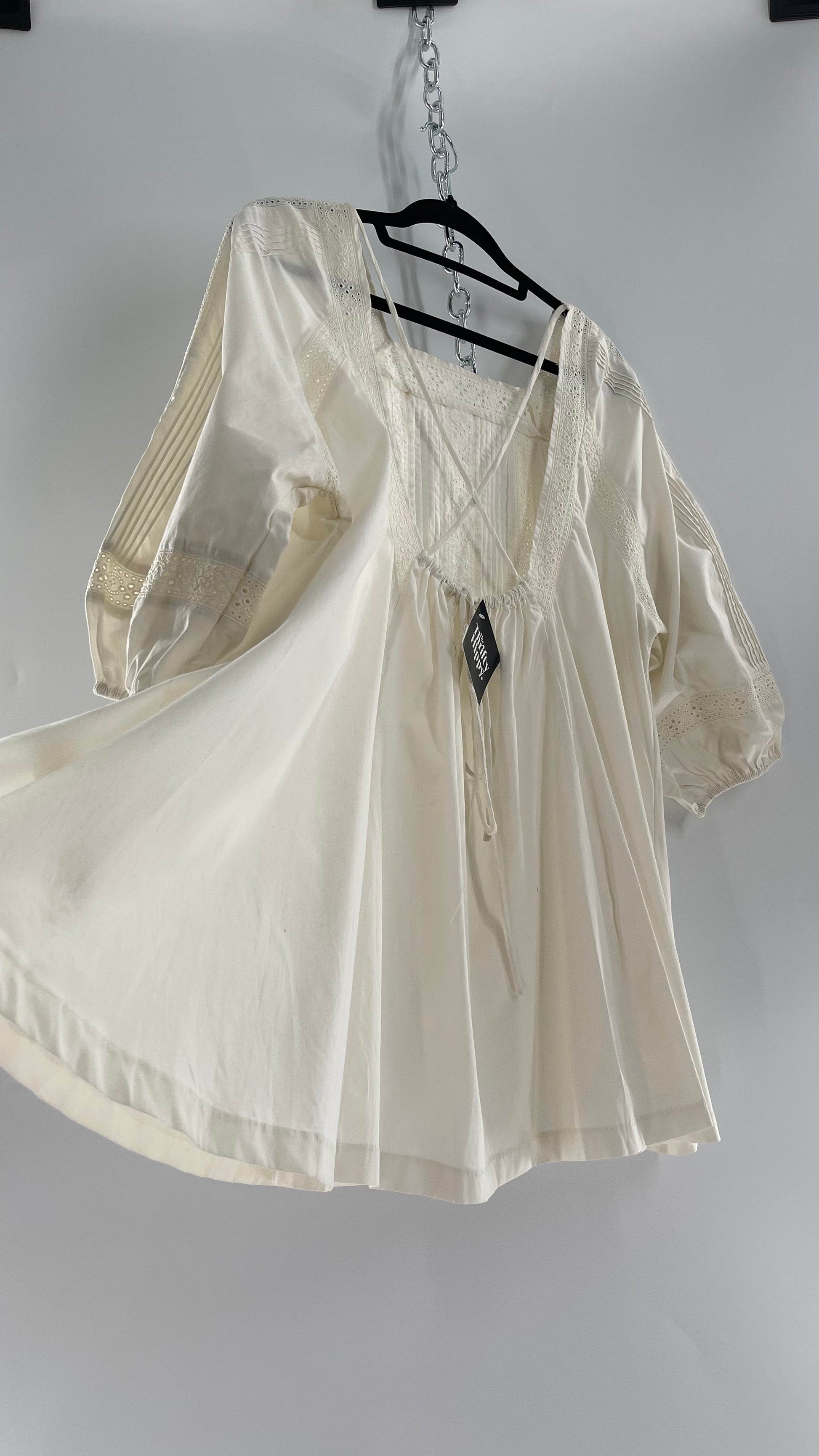 Free People White Long Sleeve Mini with Open Back and Lace Detailing (Small)
