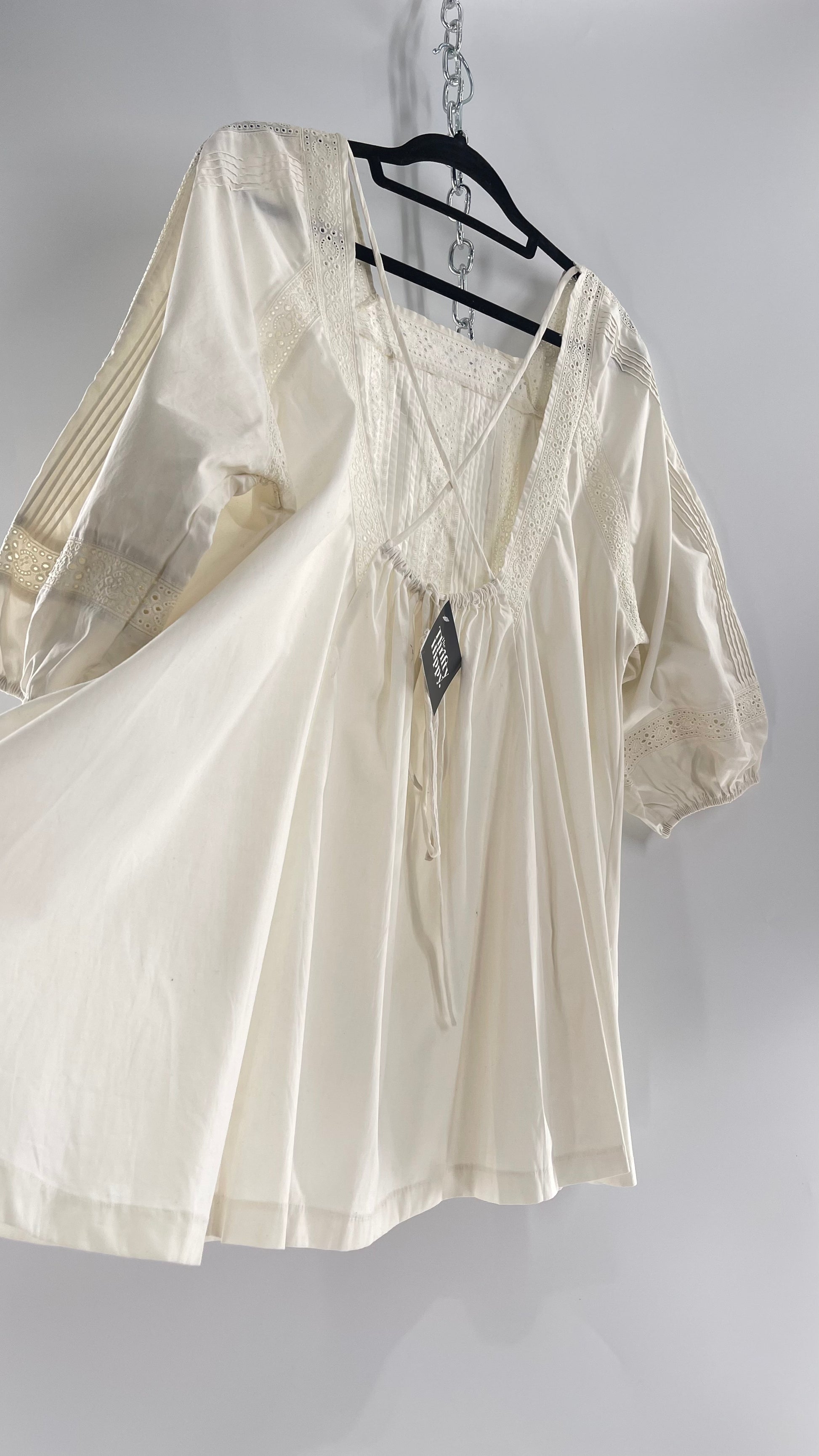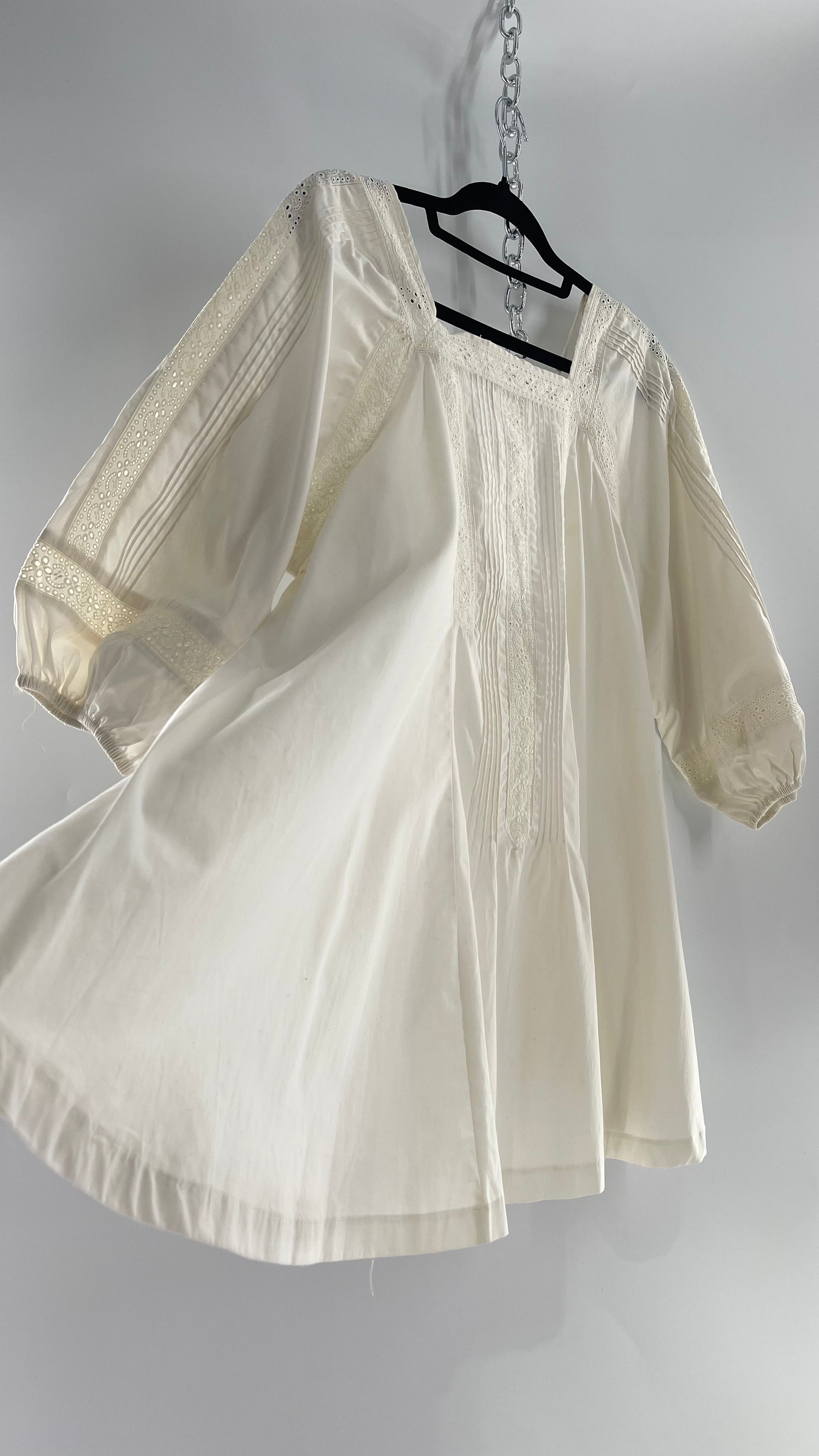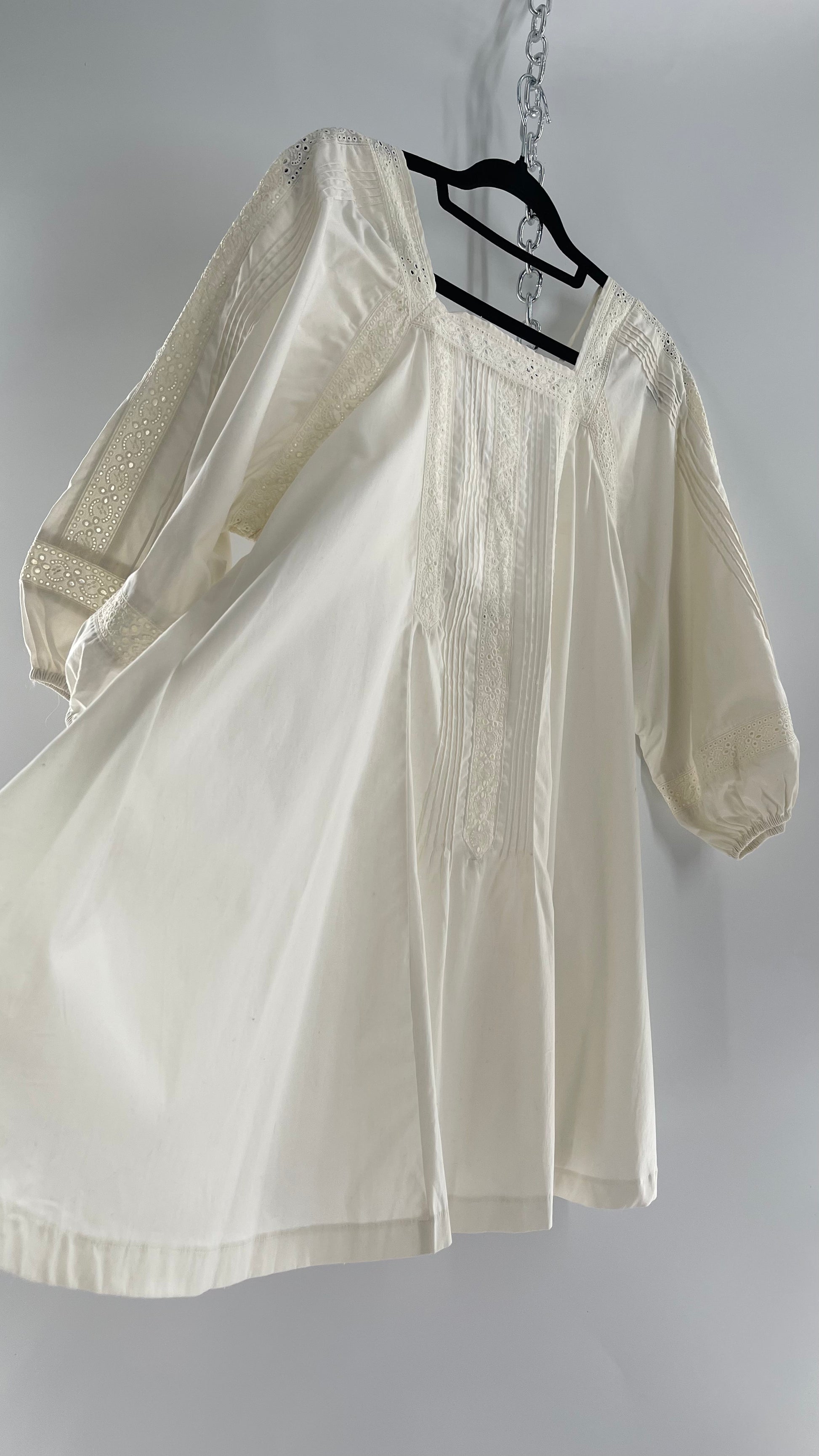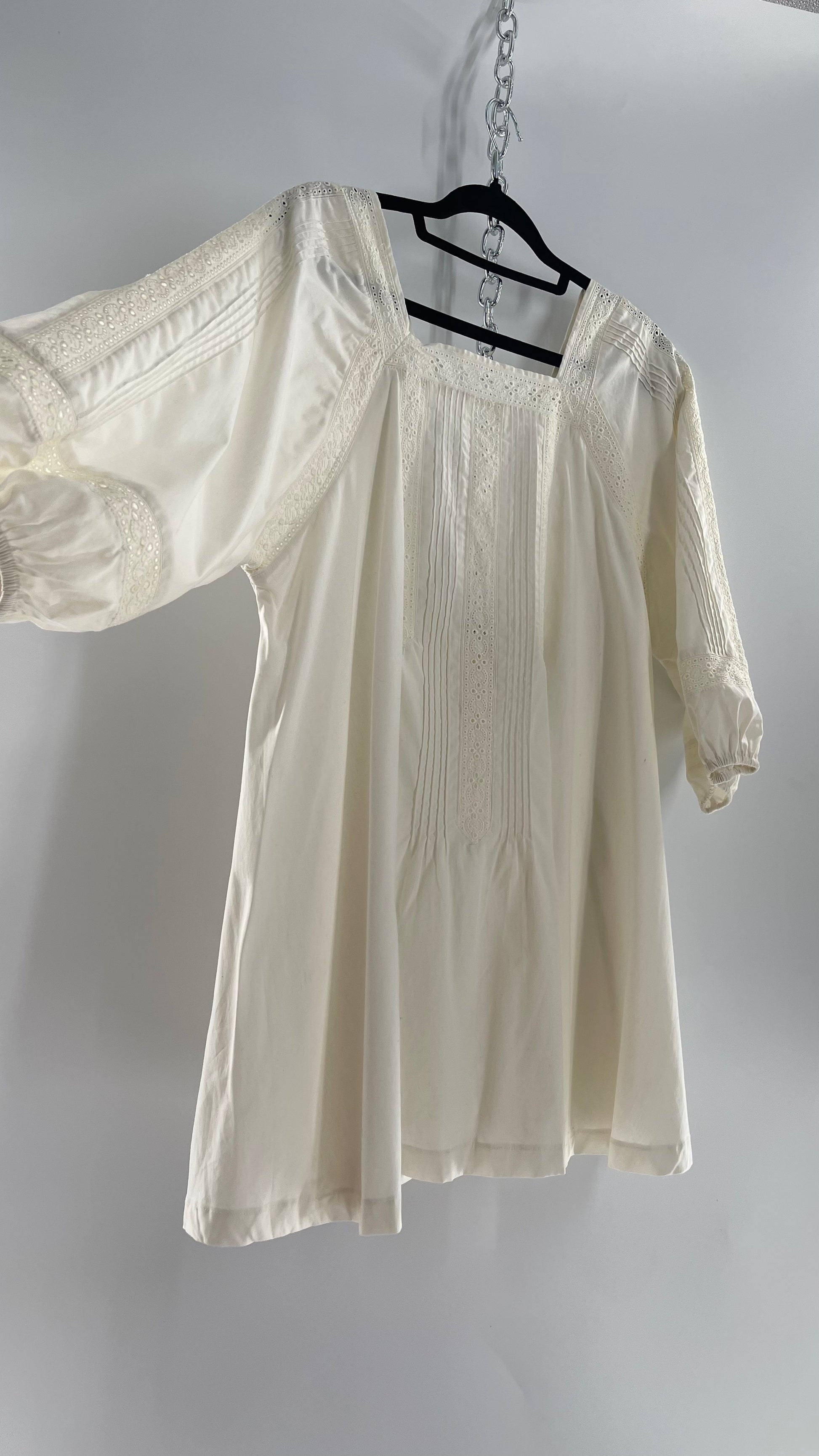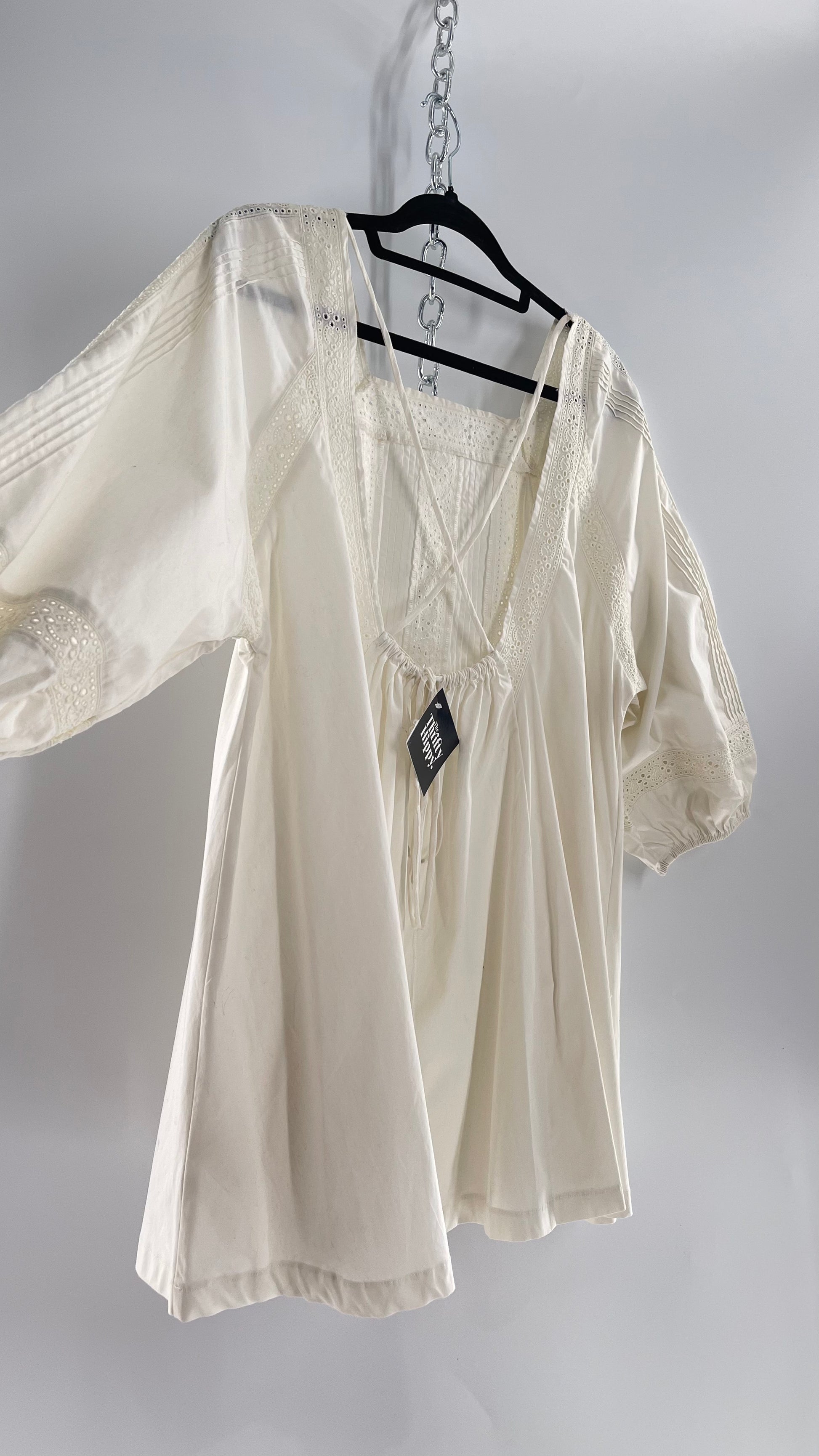 Free People White Long Sleeve Mini with Open Back and Lace Detailing (Small)
