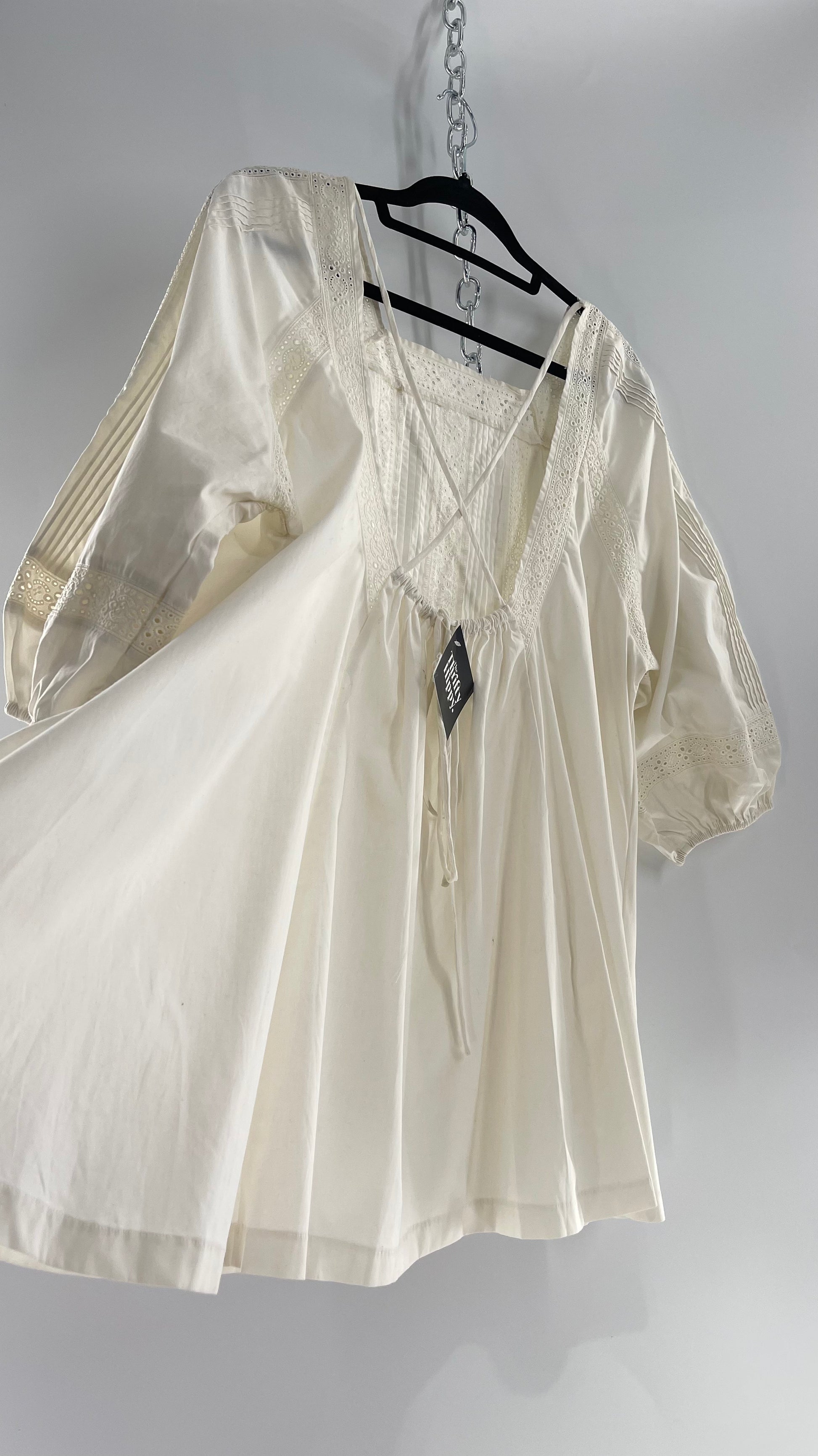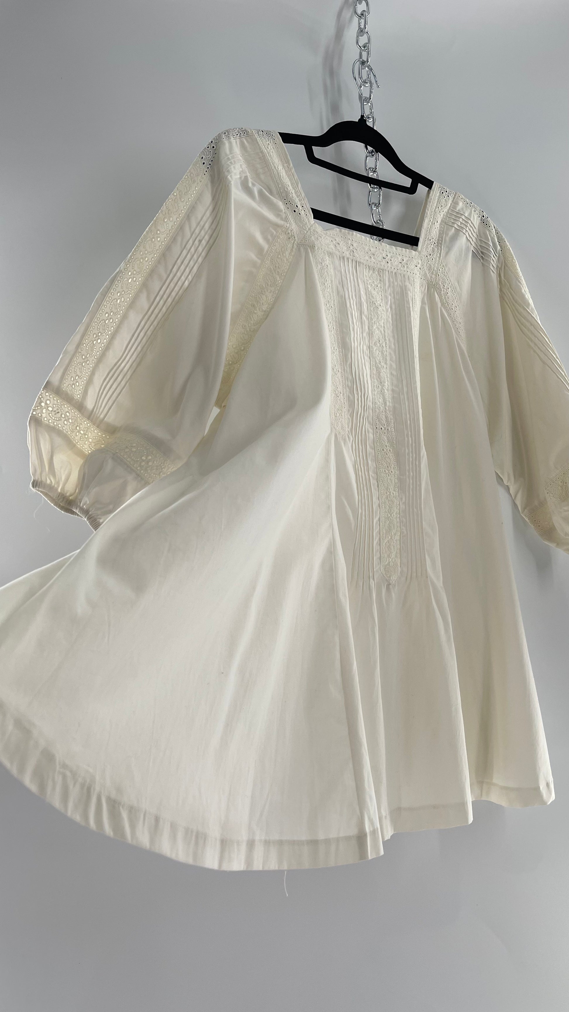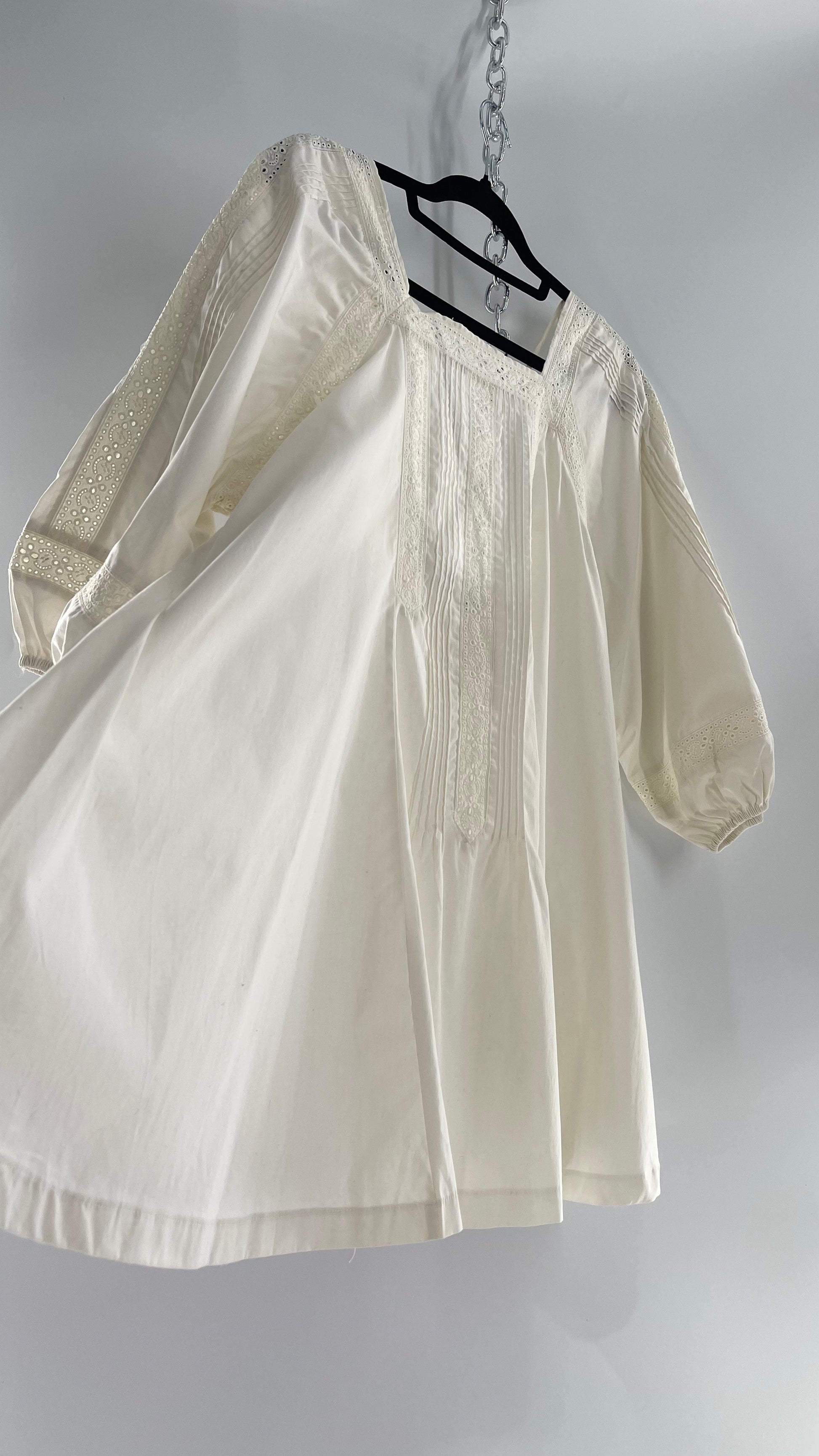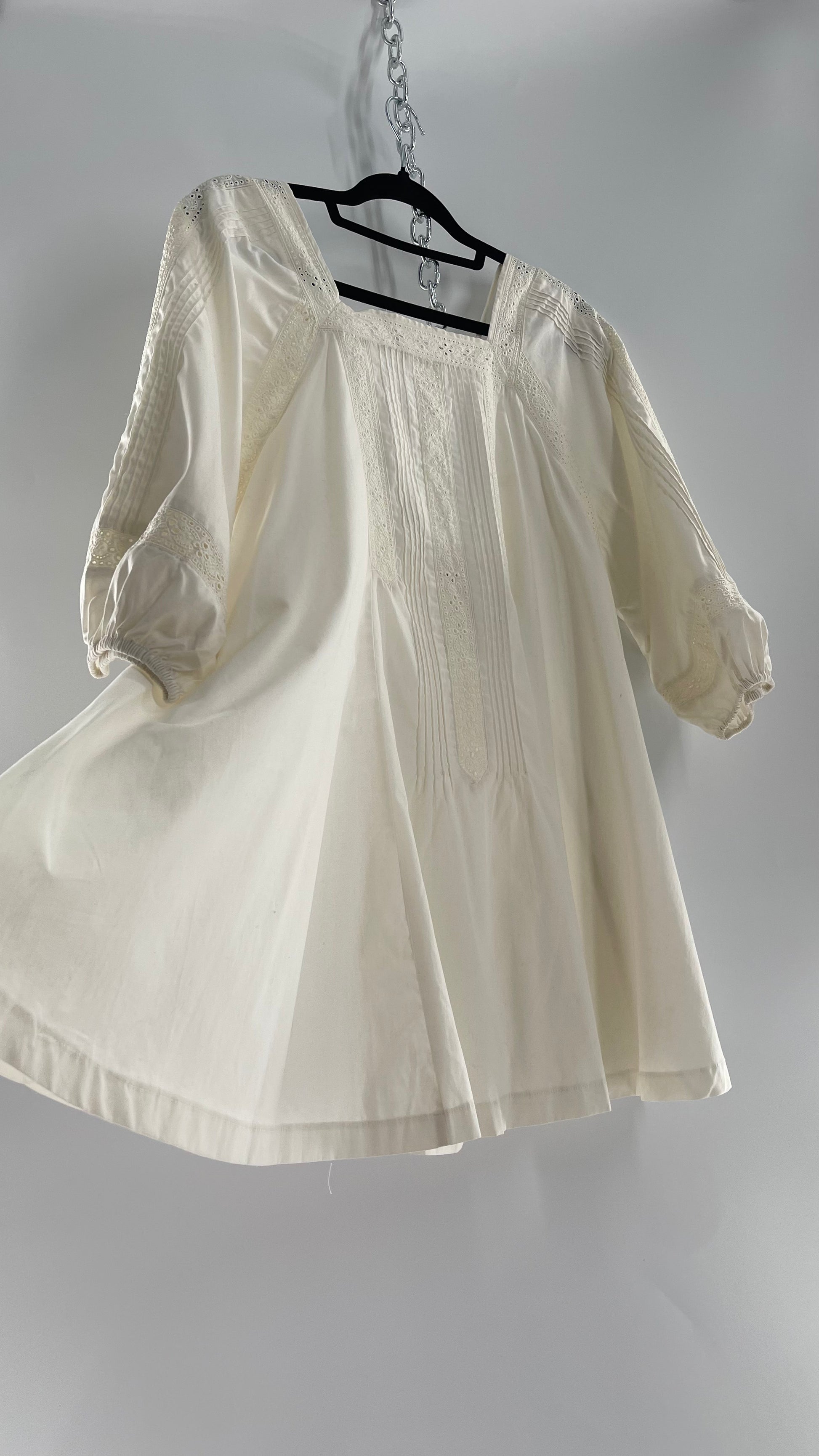Free People White Long Sleeve Mini with Open Back and Lace Detailing (Small)