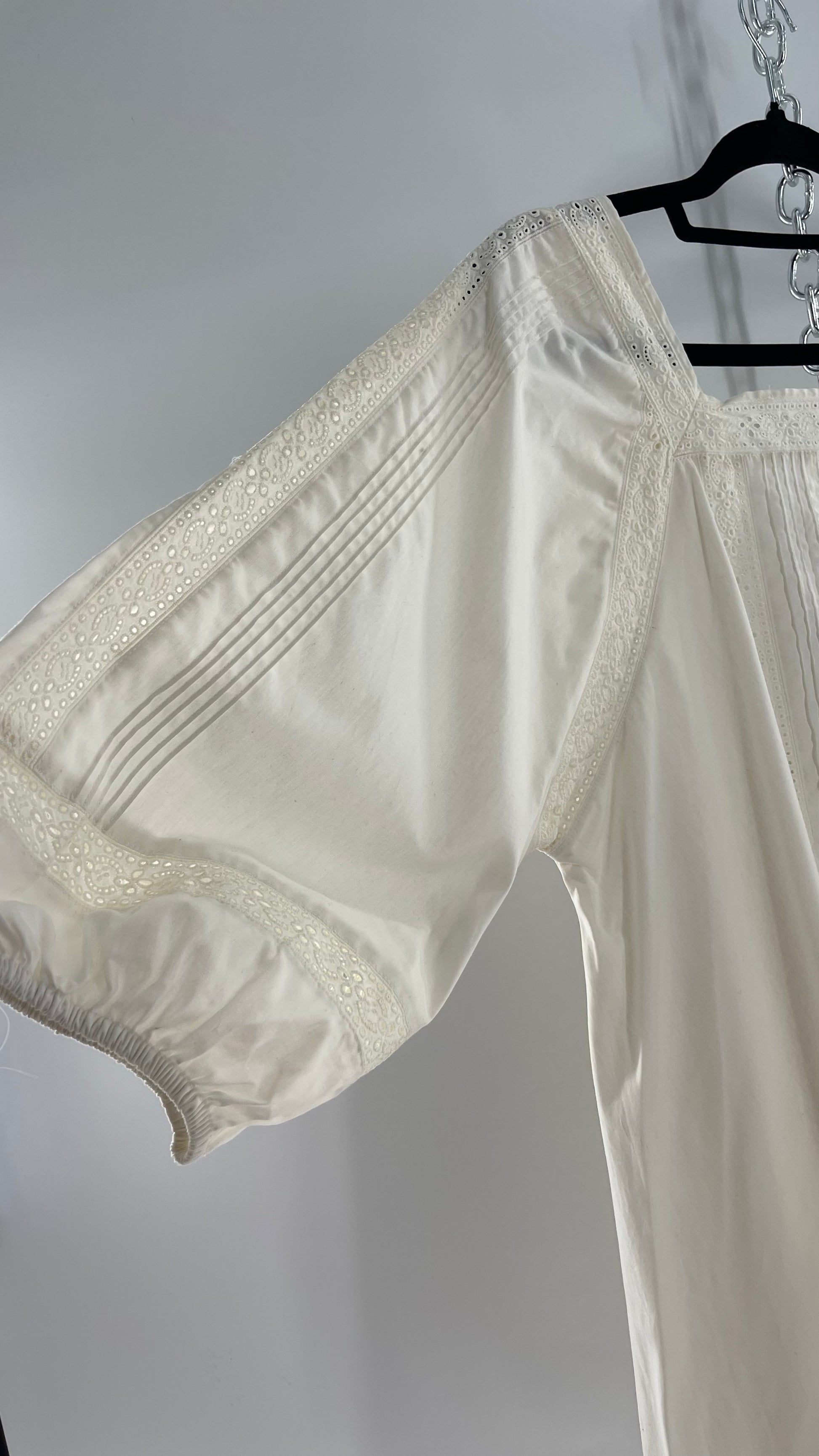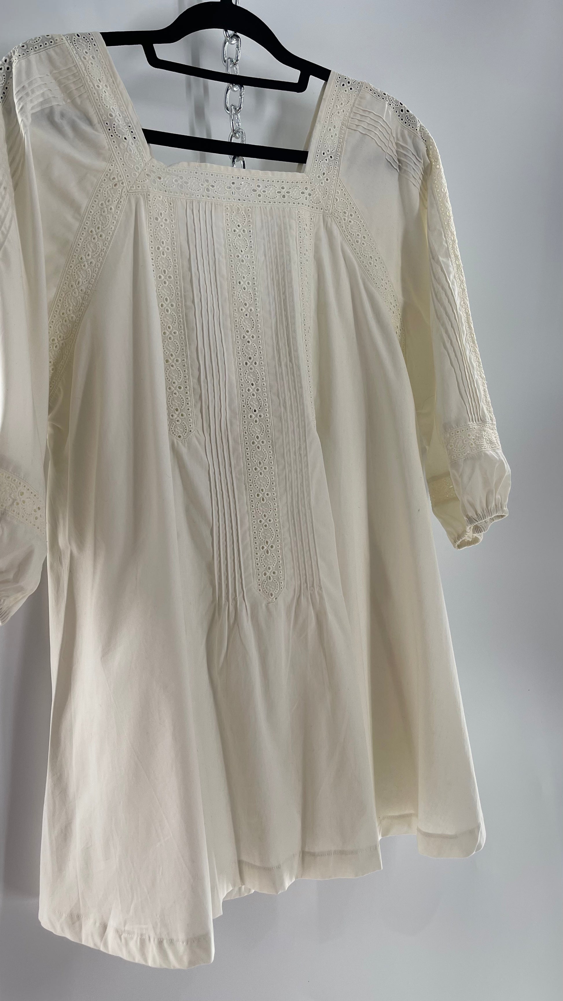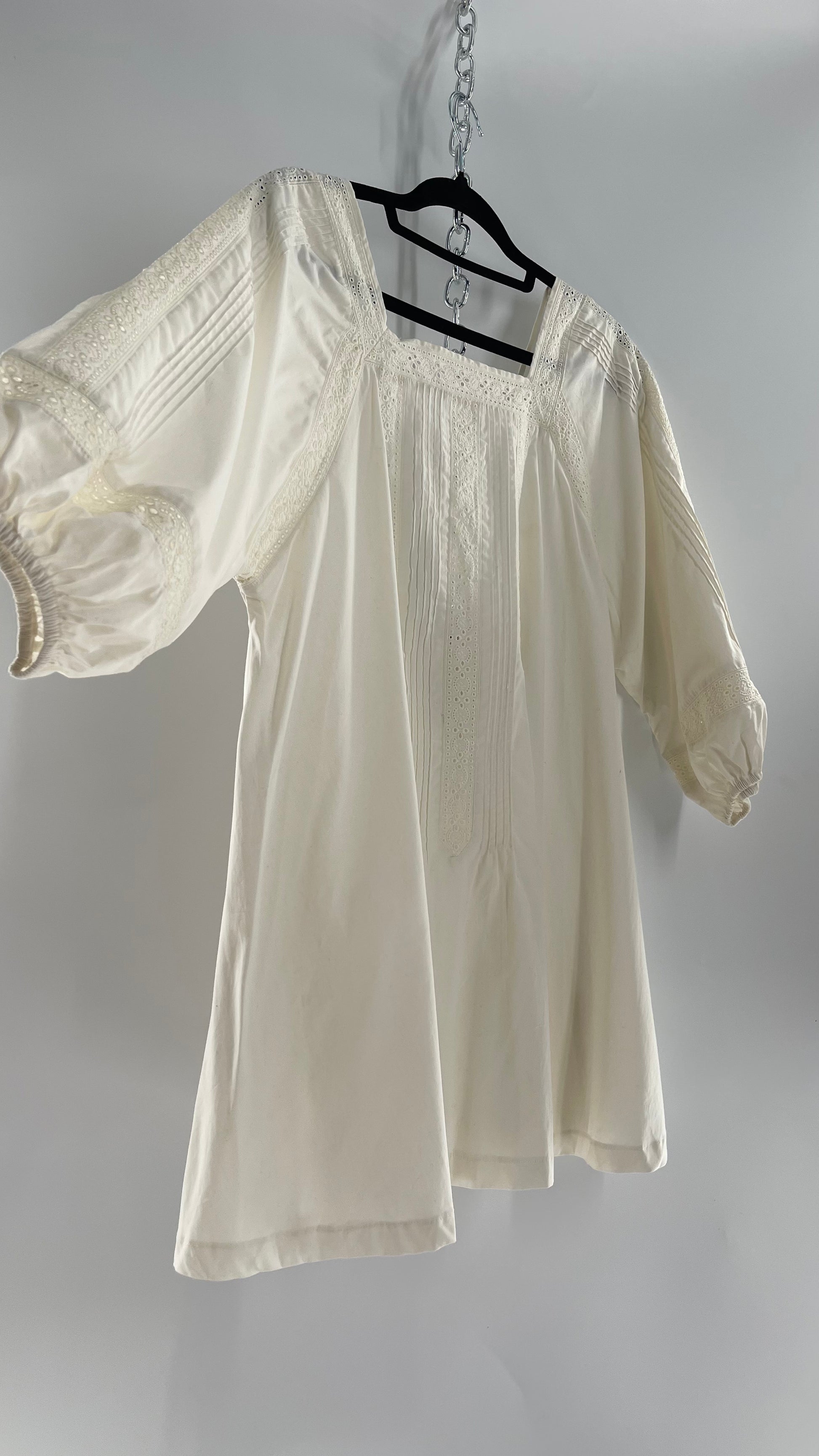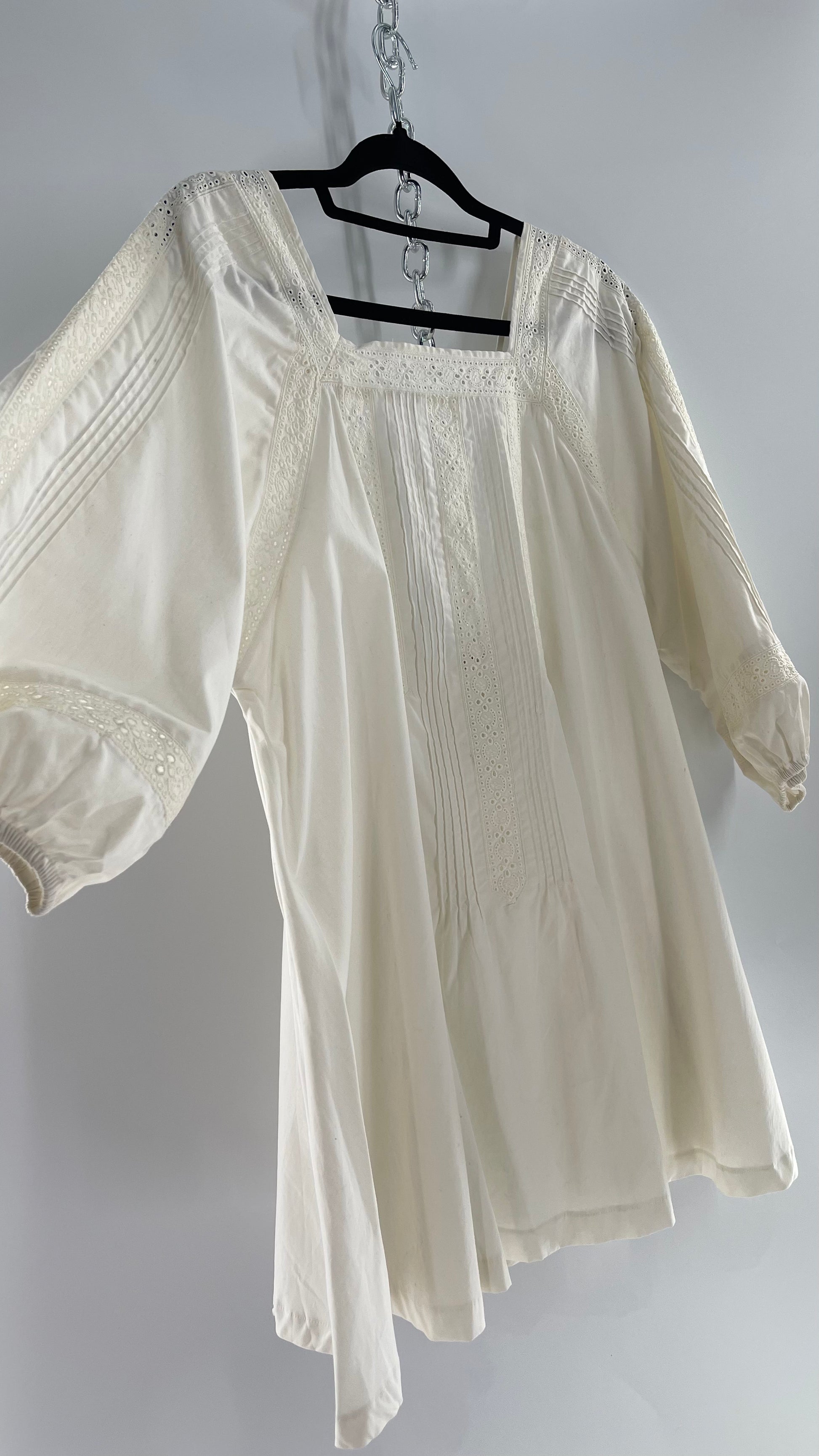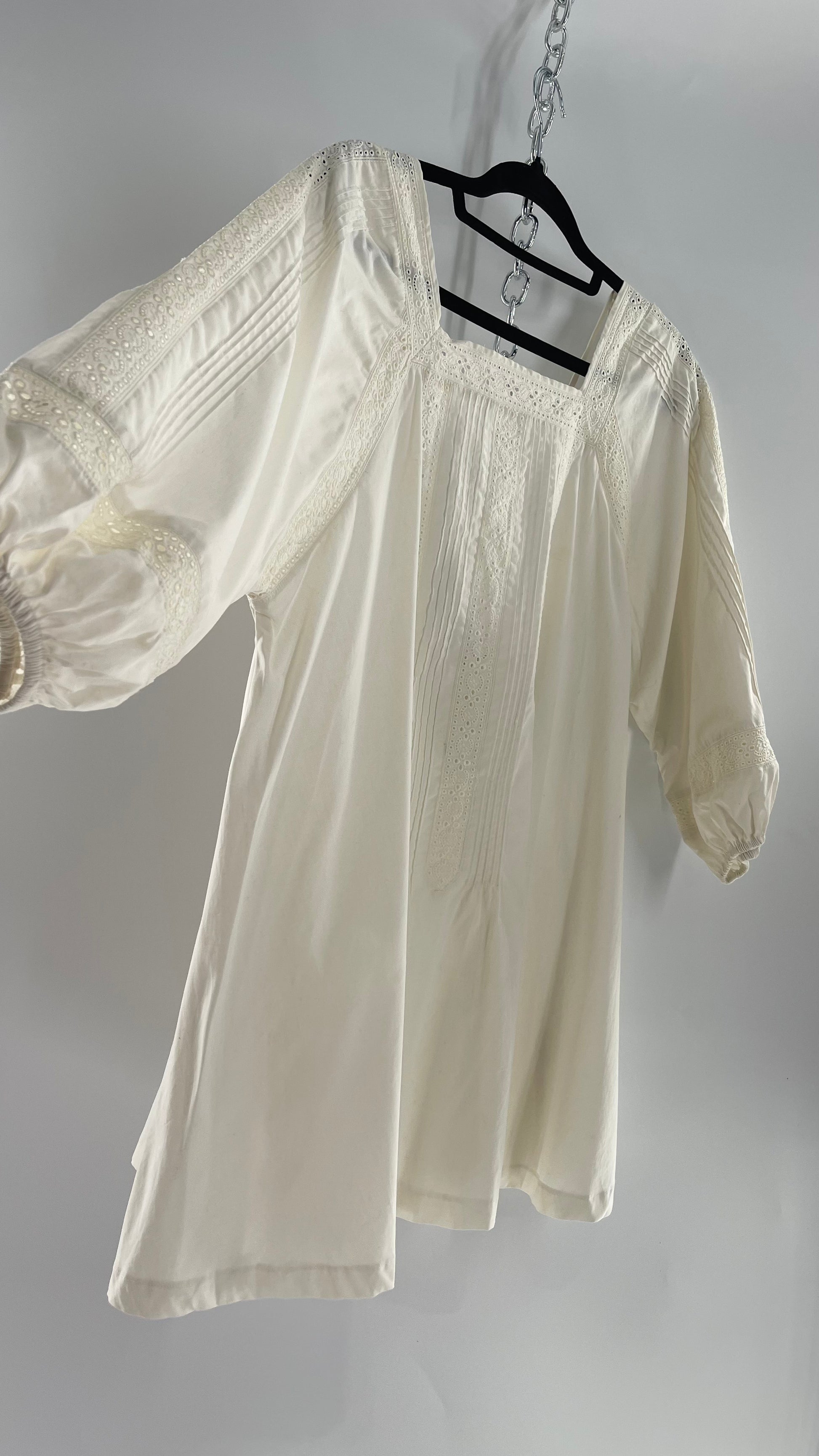 Free People White Long Sleeve Mini with Open Back and Lace Detailing (Small)