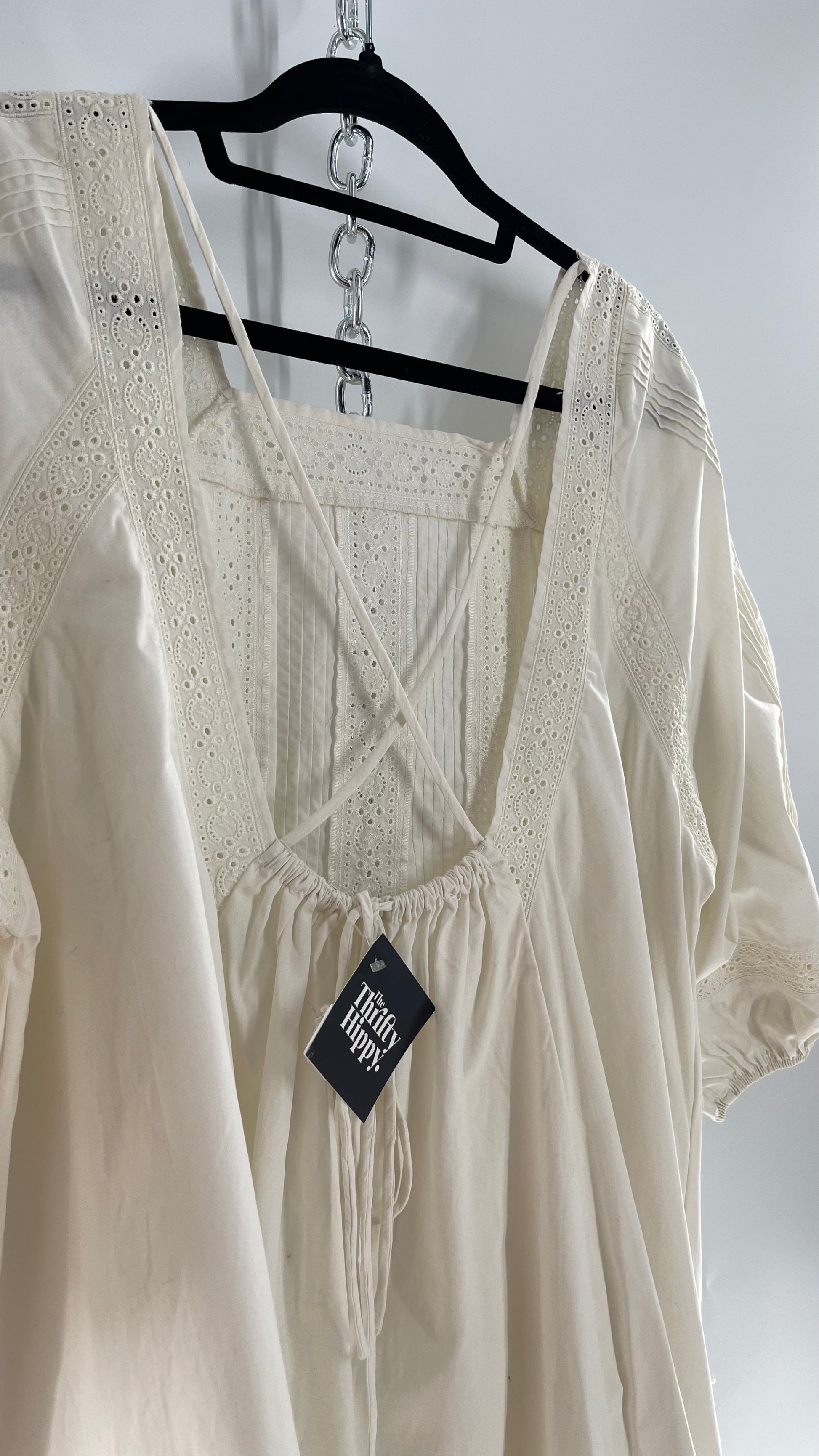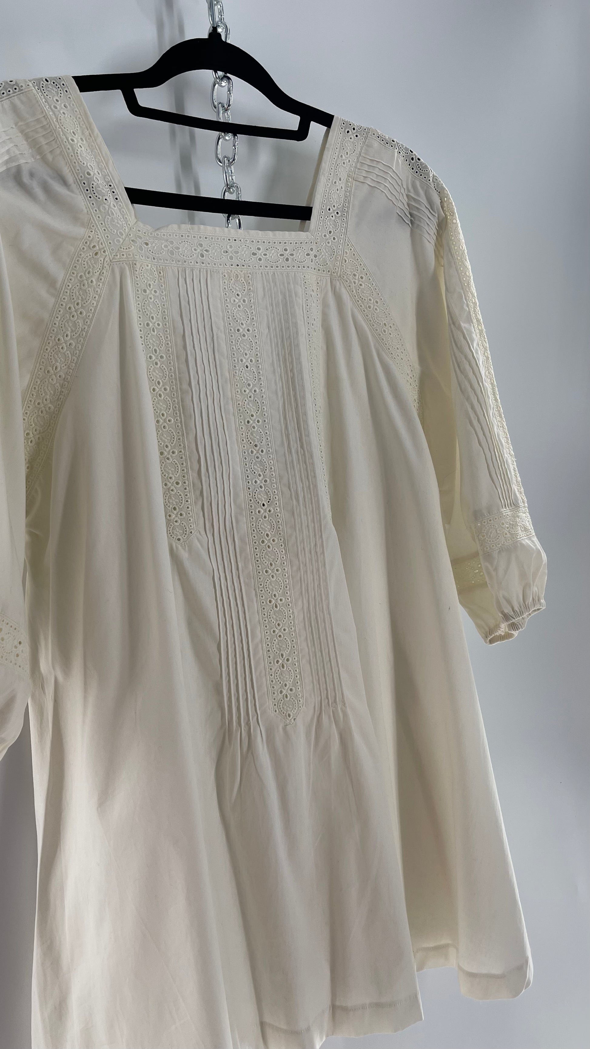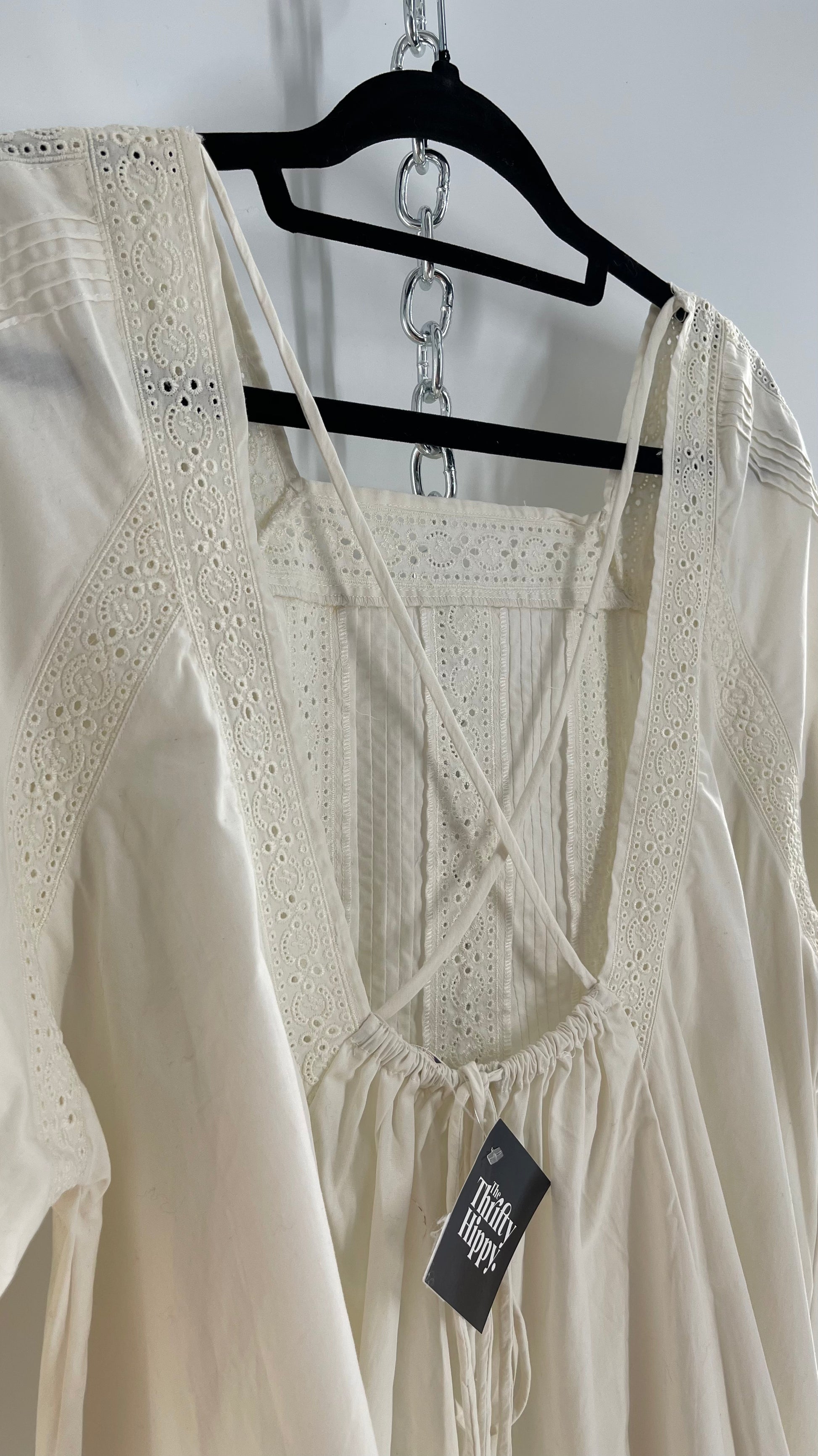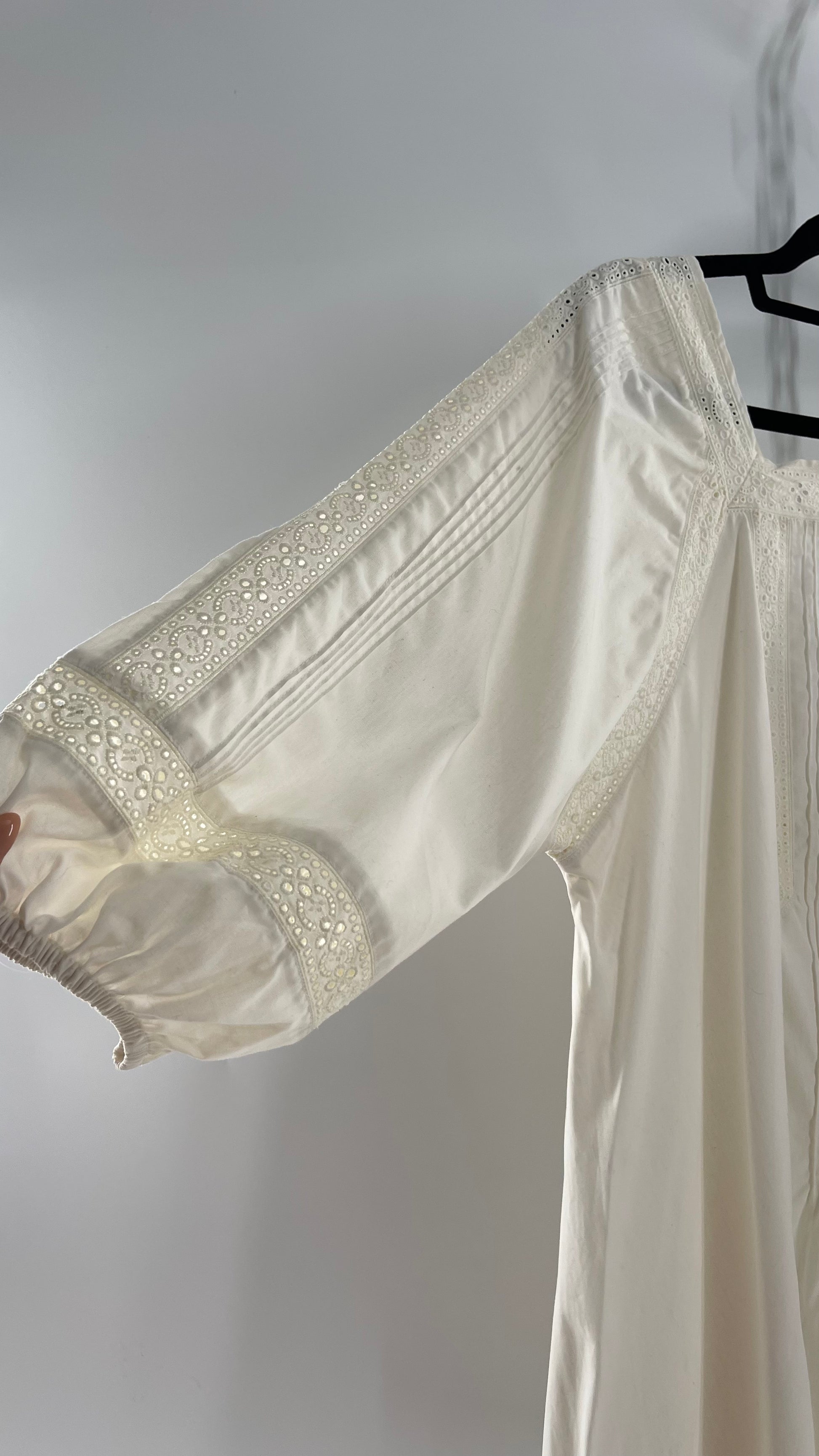 Free People White Long Sleeve Mini with Open Back and Lace Detailing (Small)