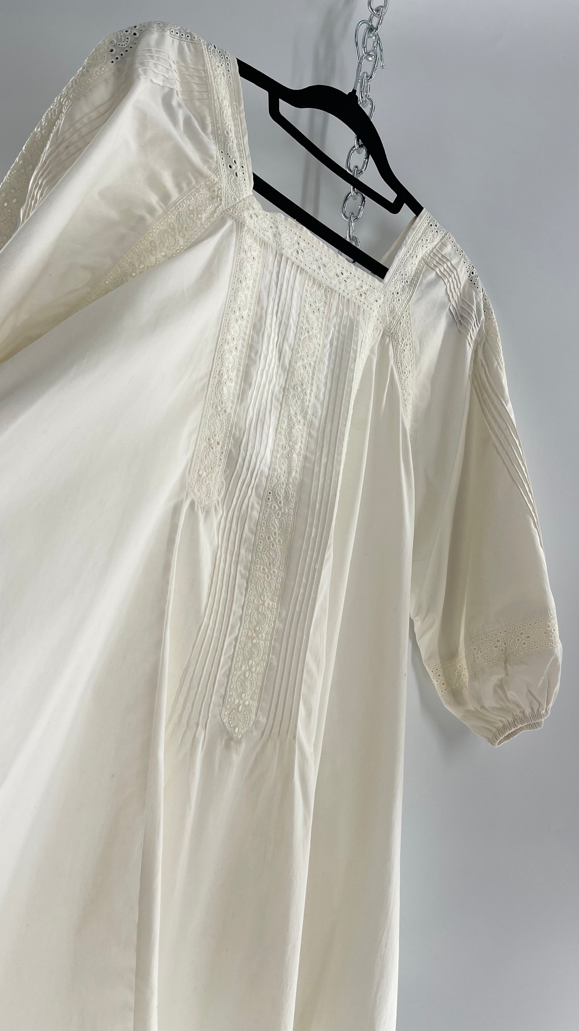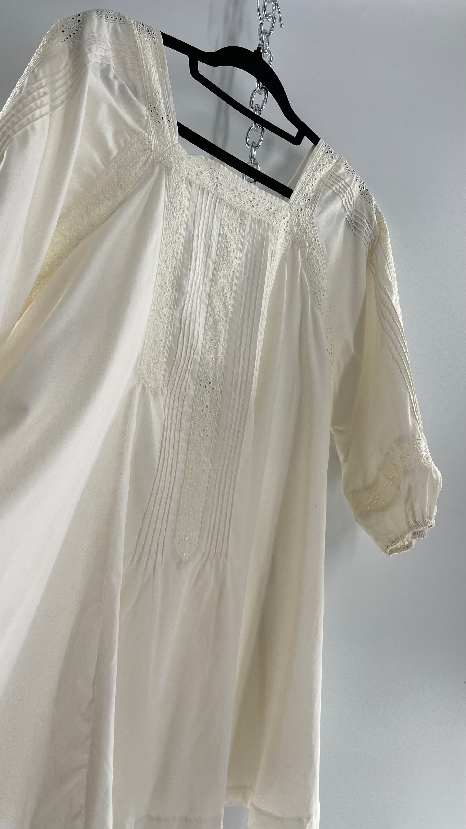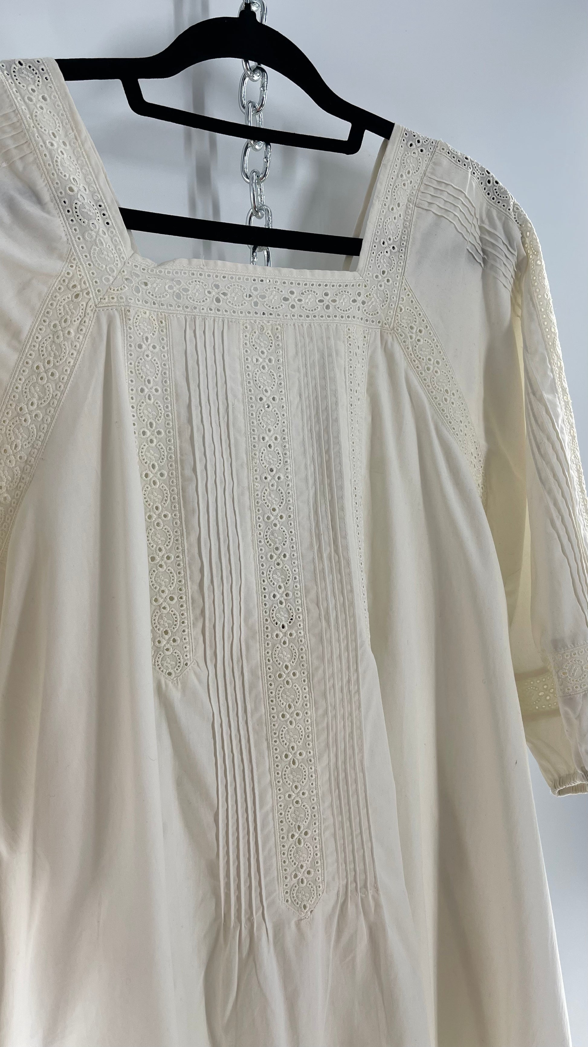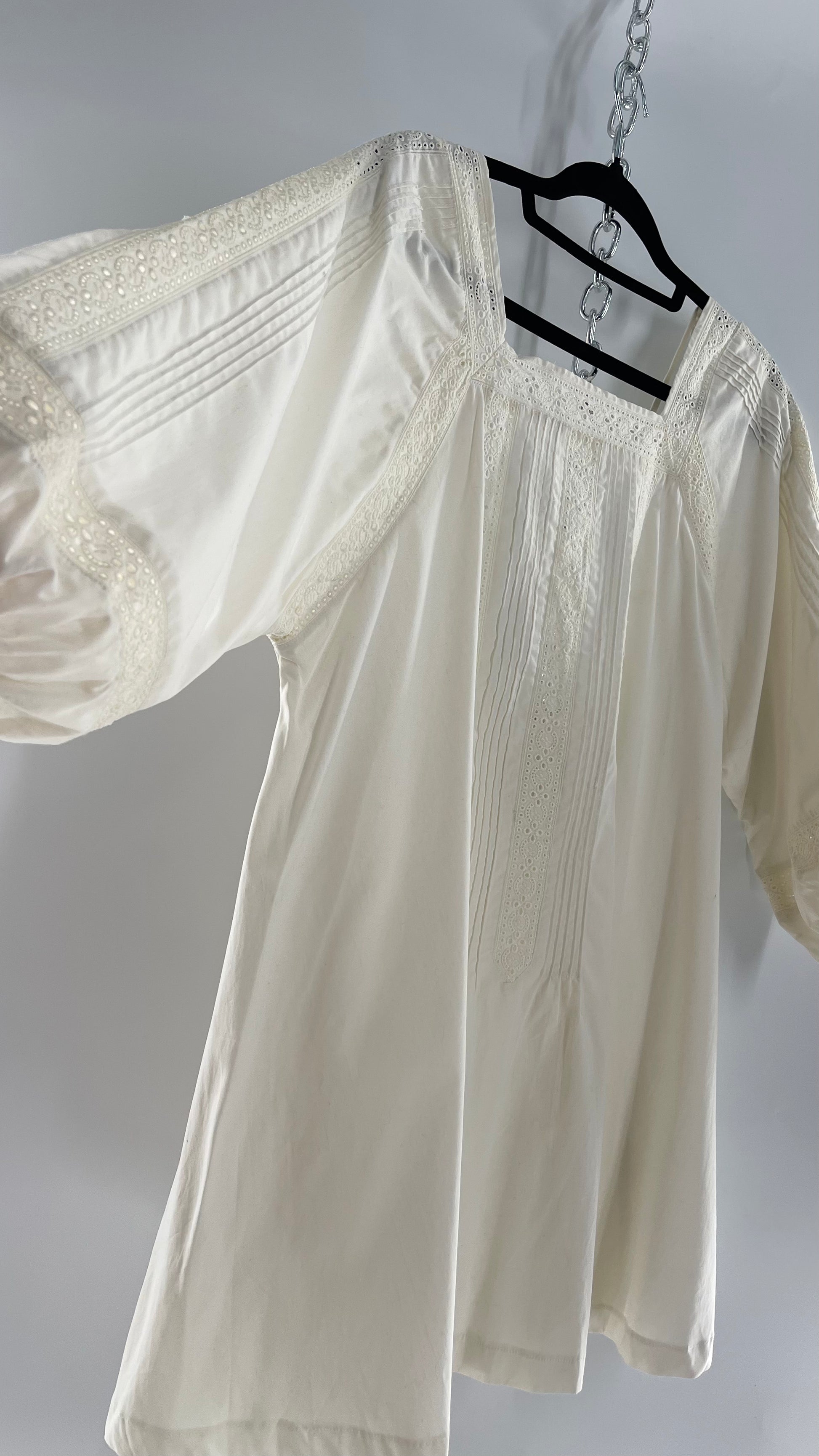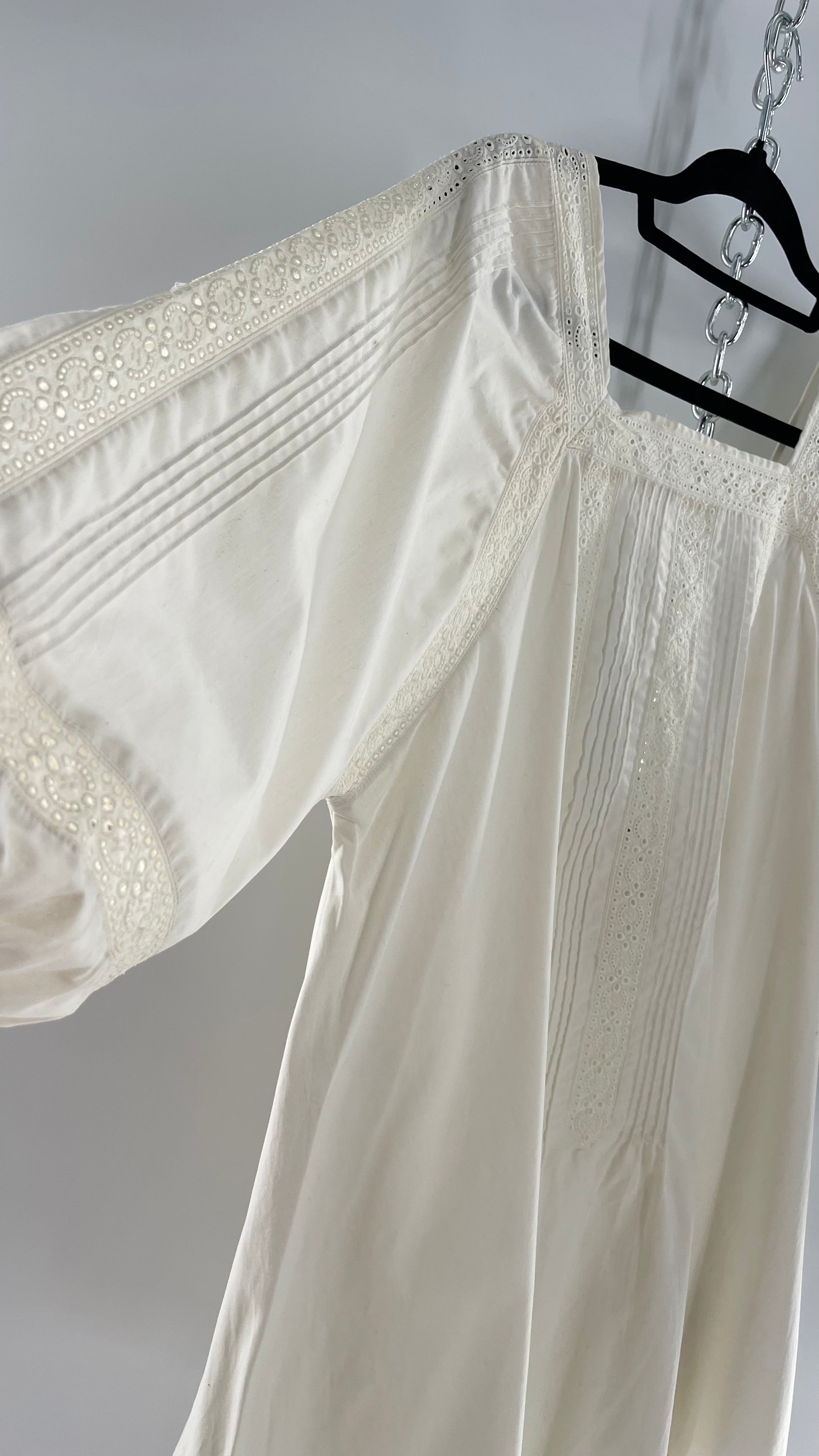 Free People White Long Sleeve Mini with Open Back and Lace Detailing (Small)
