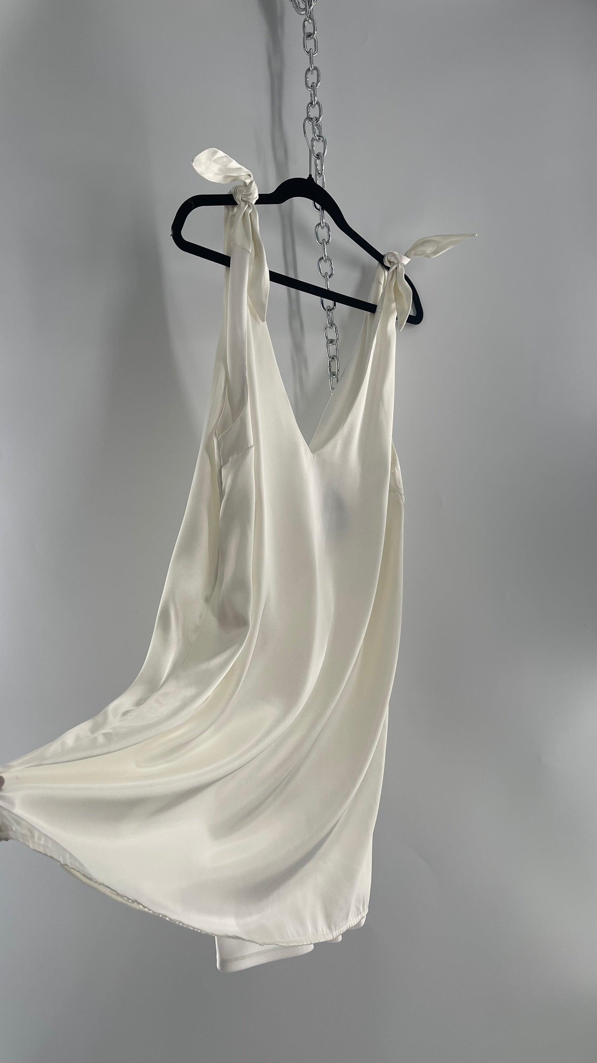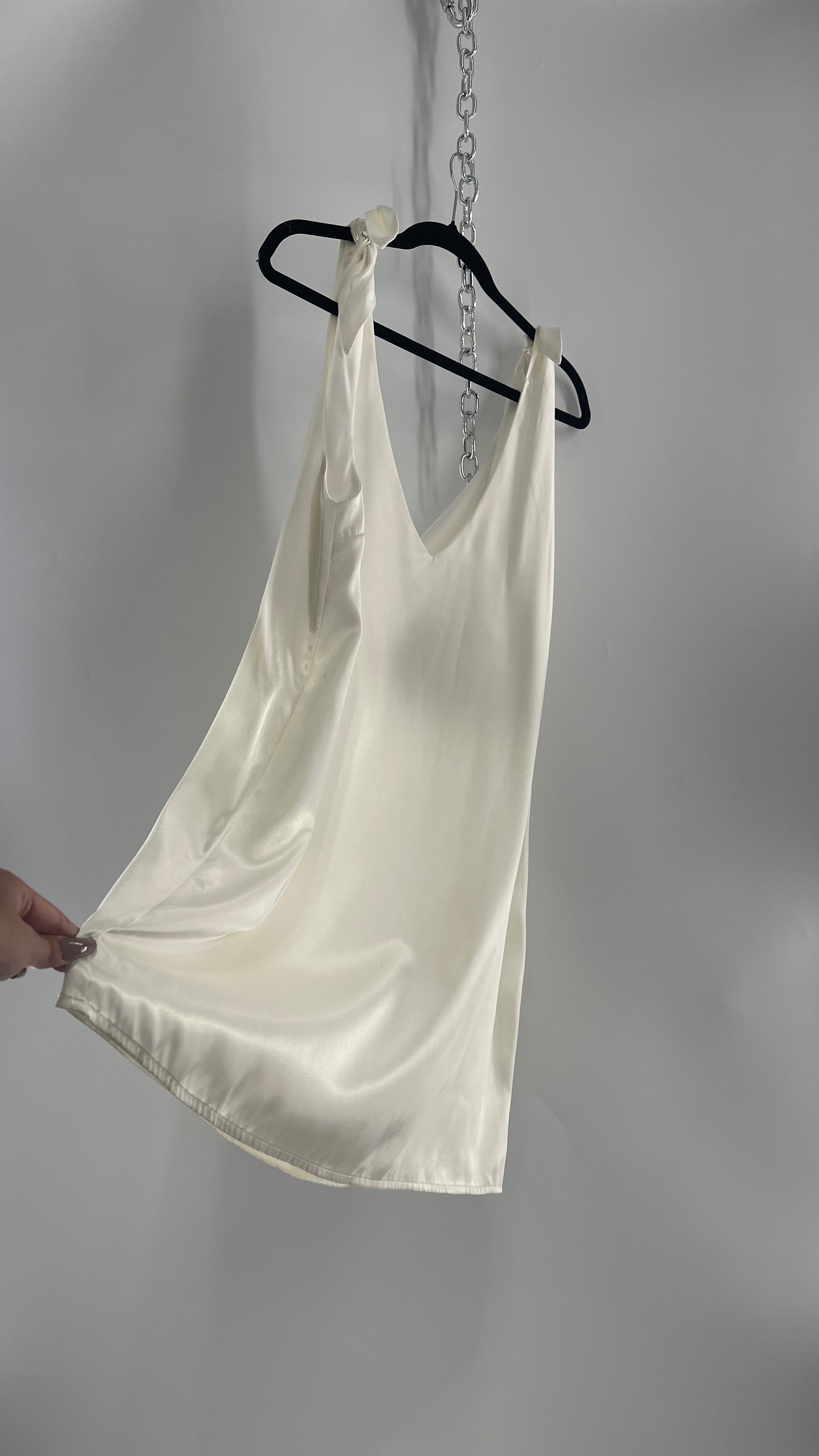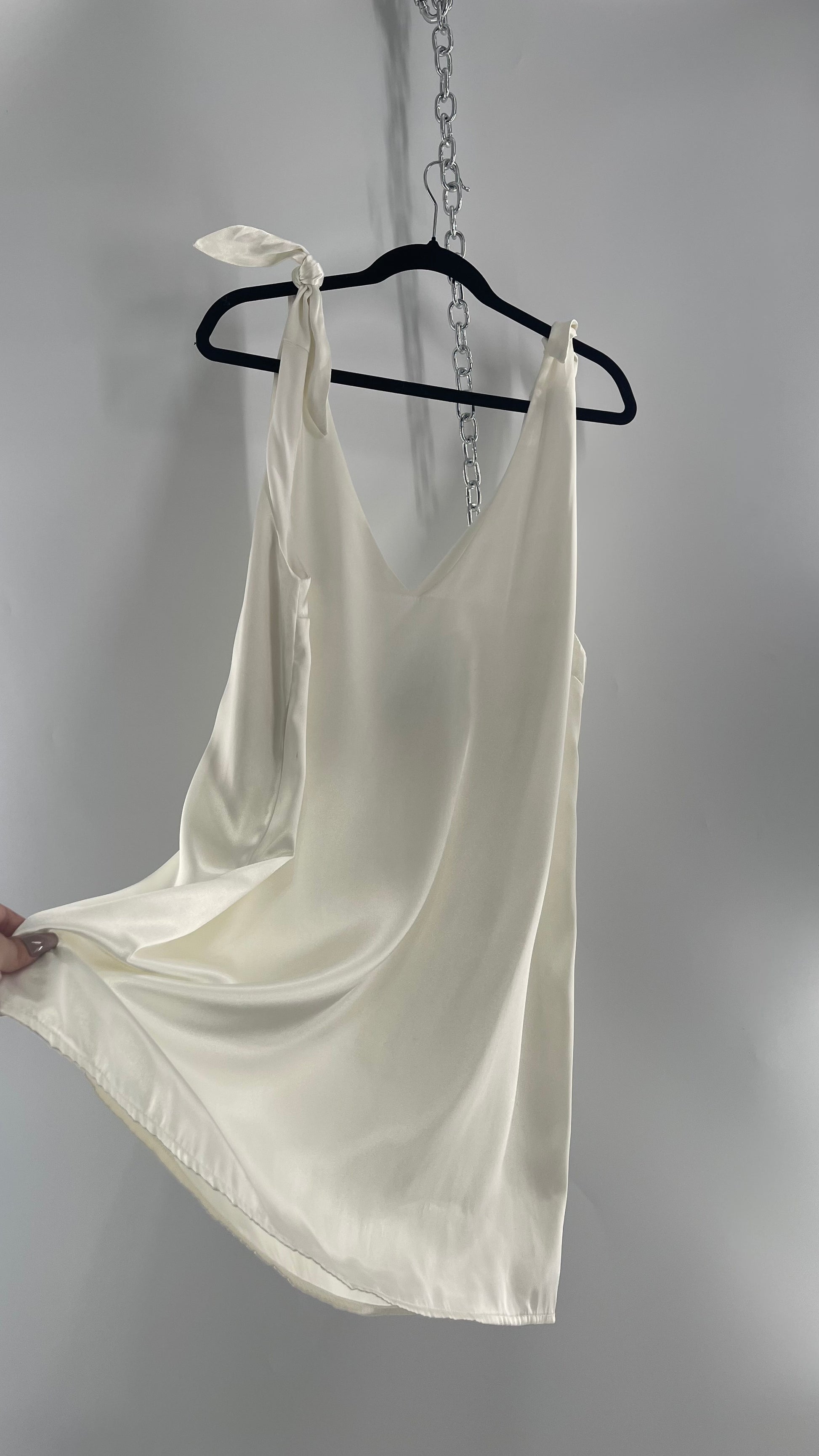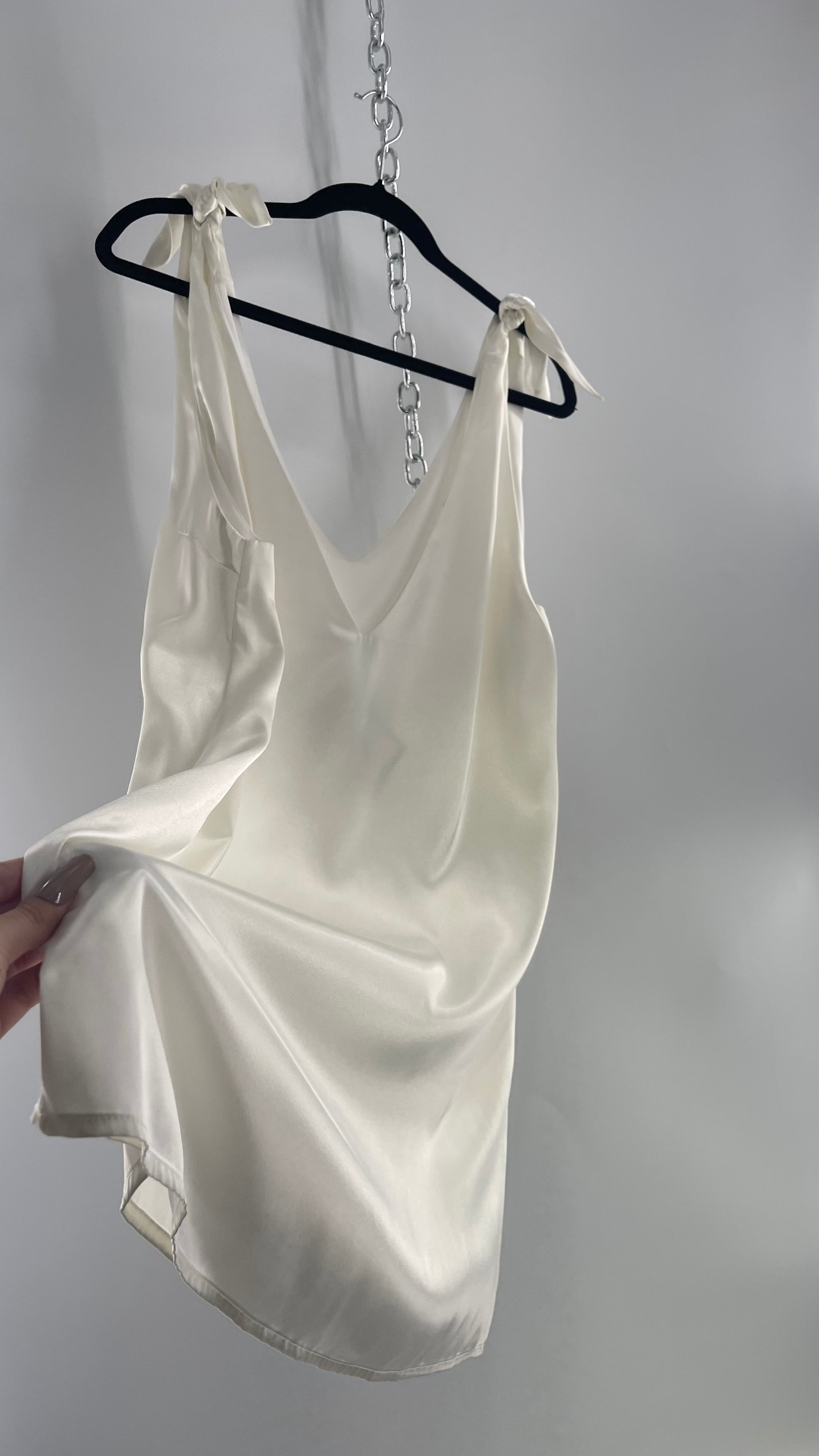 Kimchi Blue White Silky Slinky Tie Shoulder Mini Dress (Large)