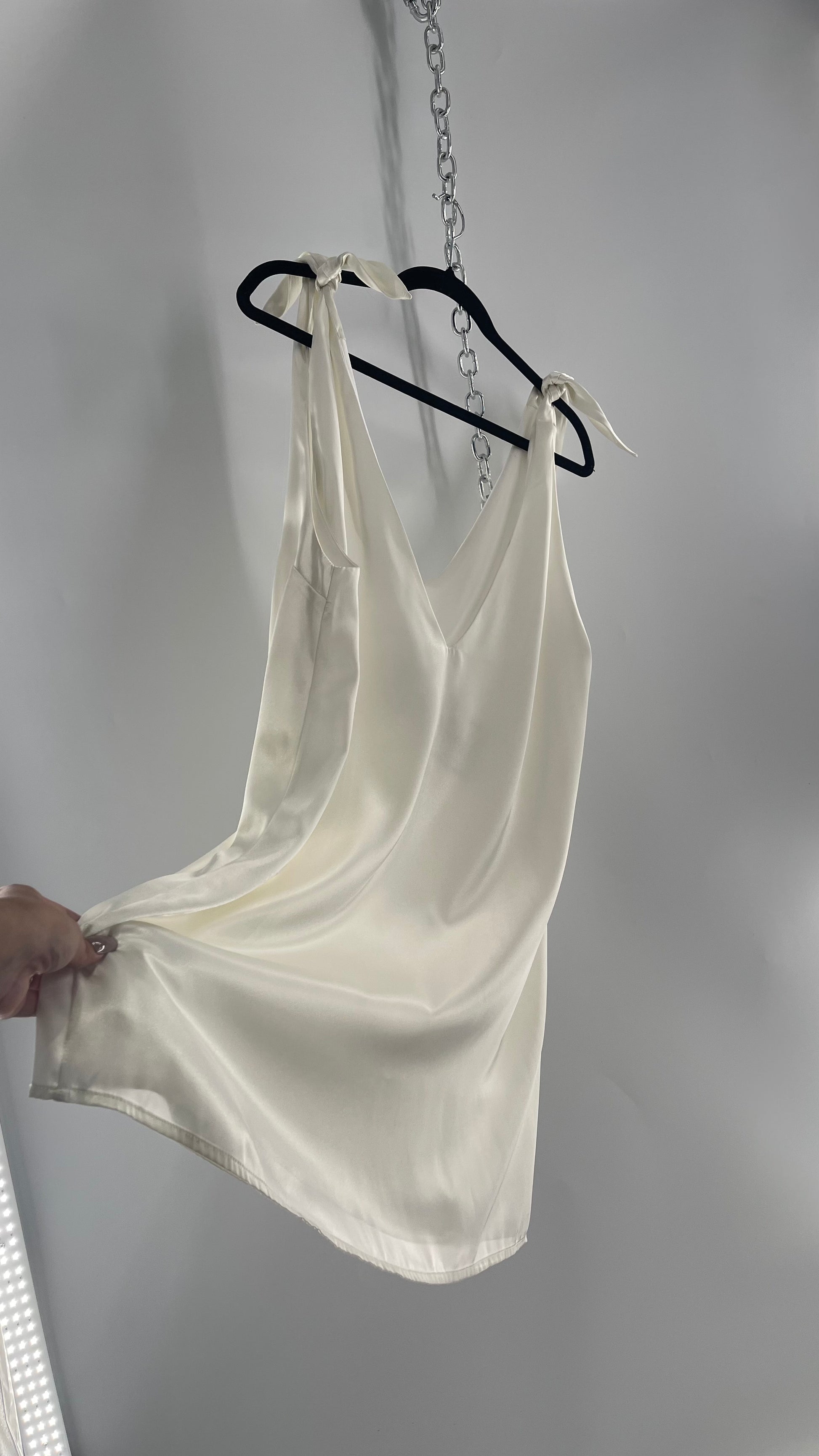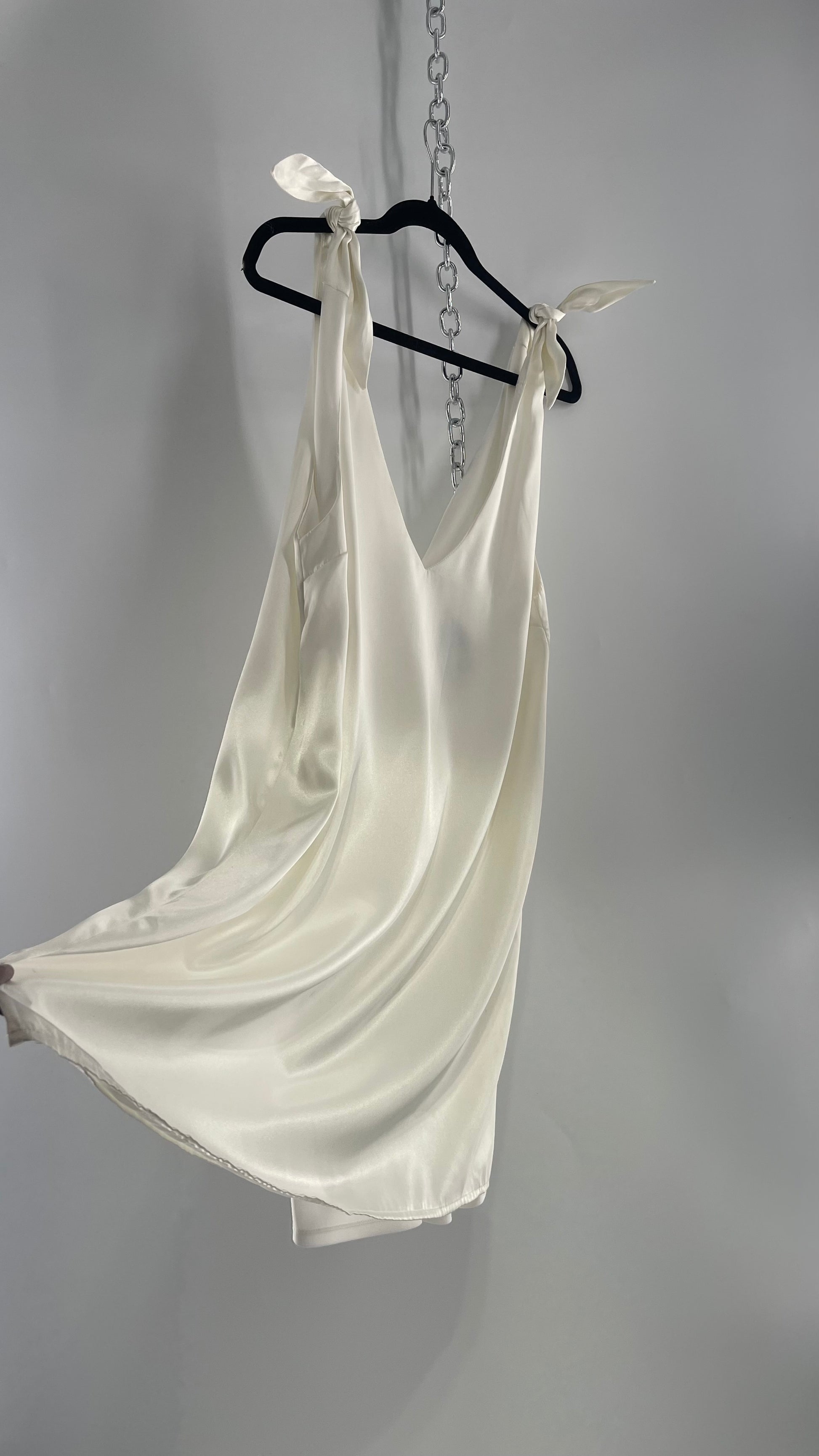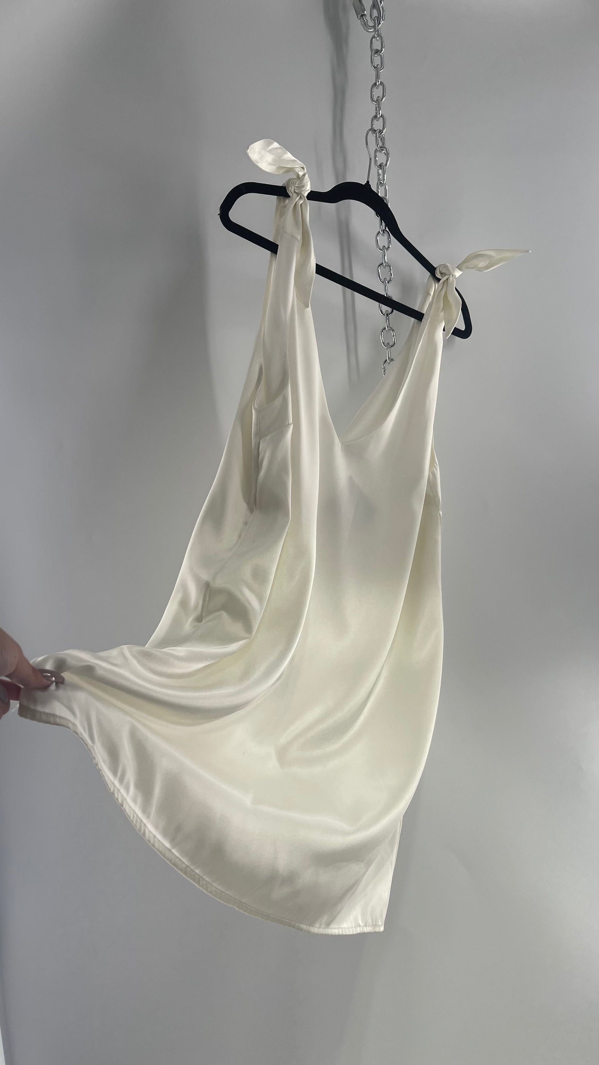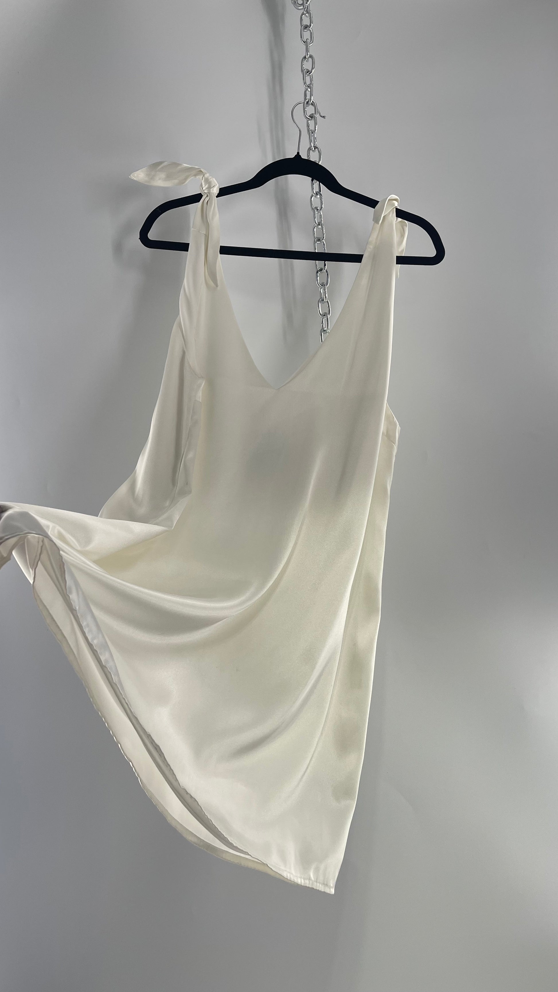 Kimchi Blue White Silky Slinky Tie Shoulder Mini Dress (Large)