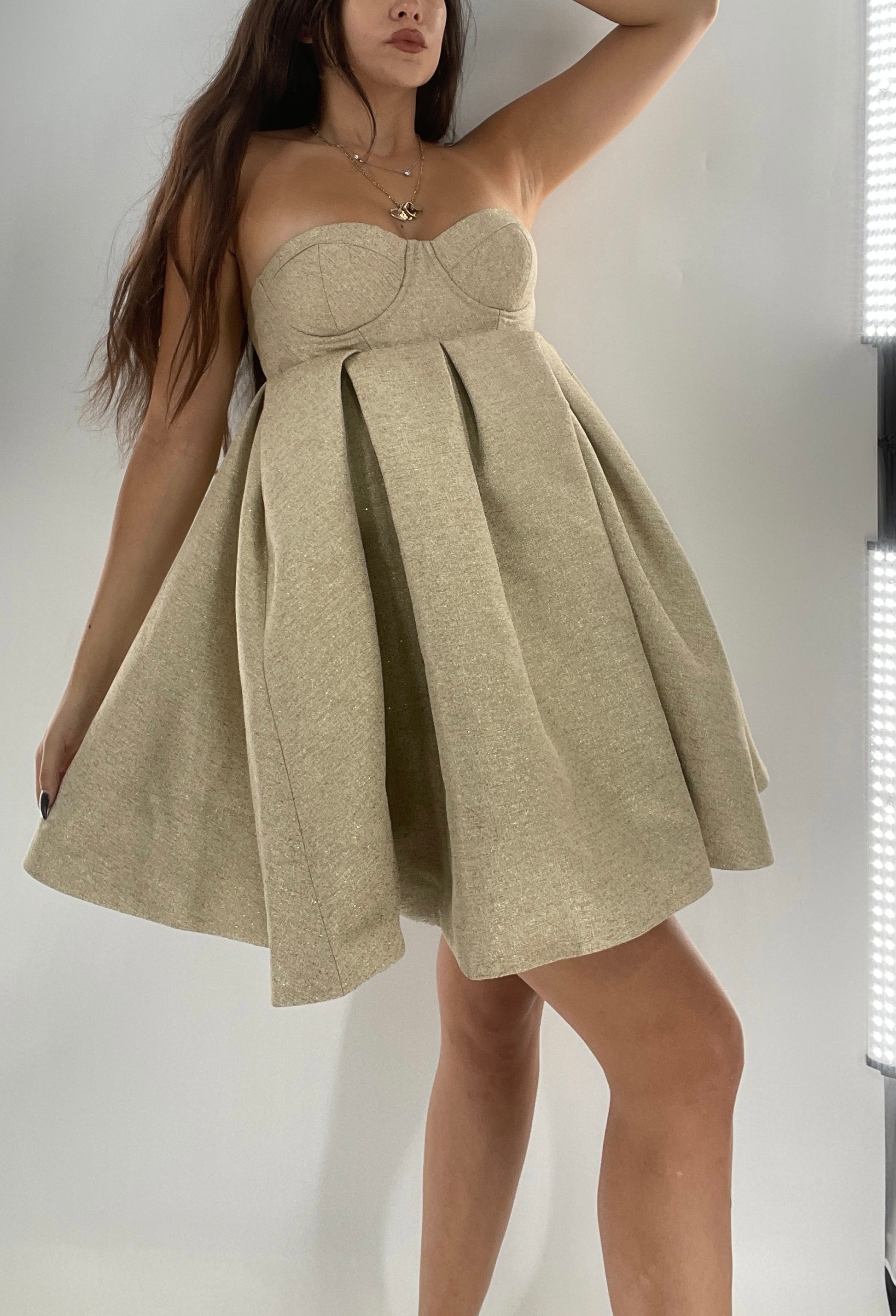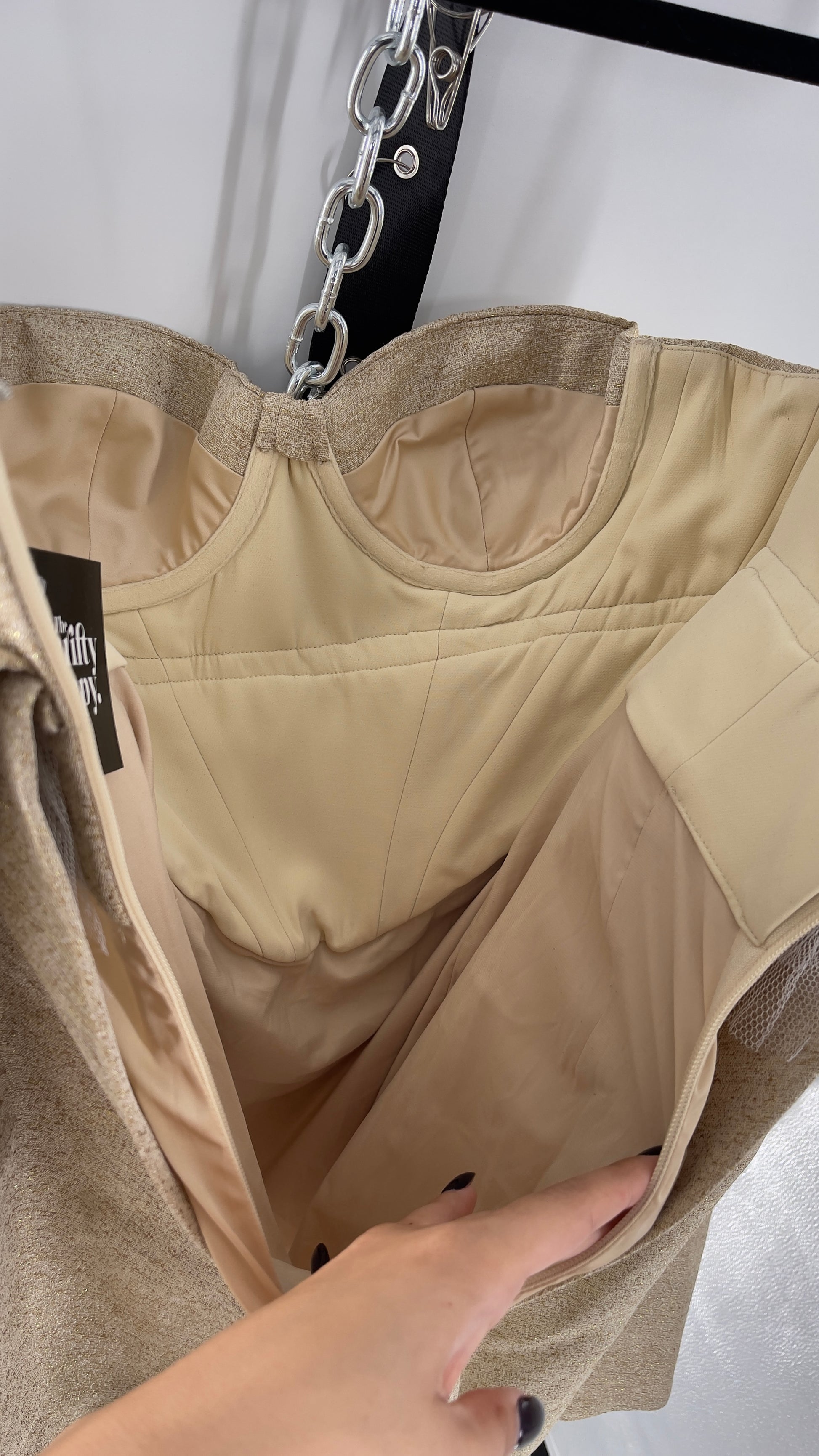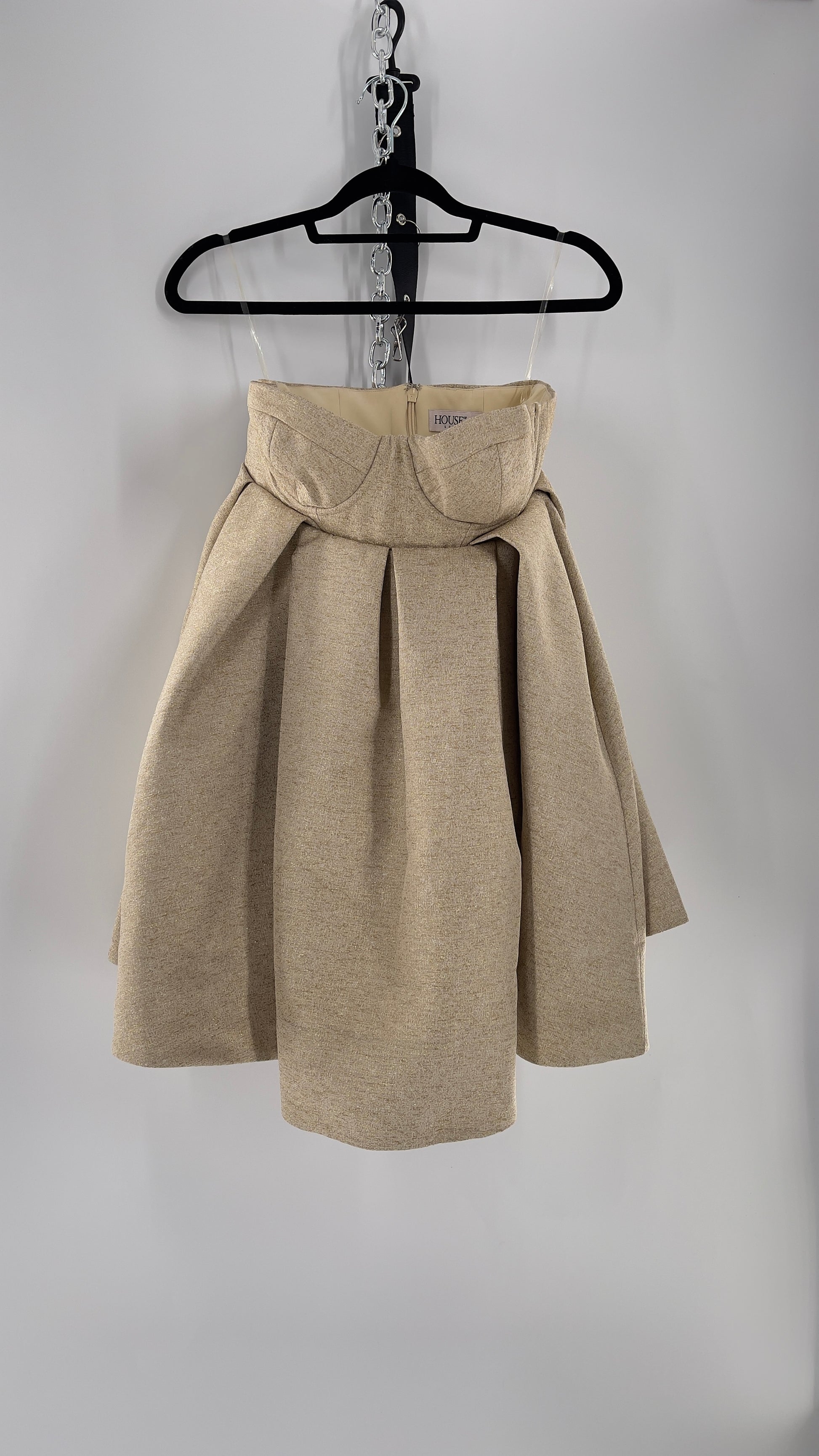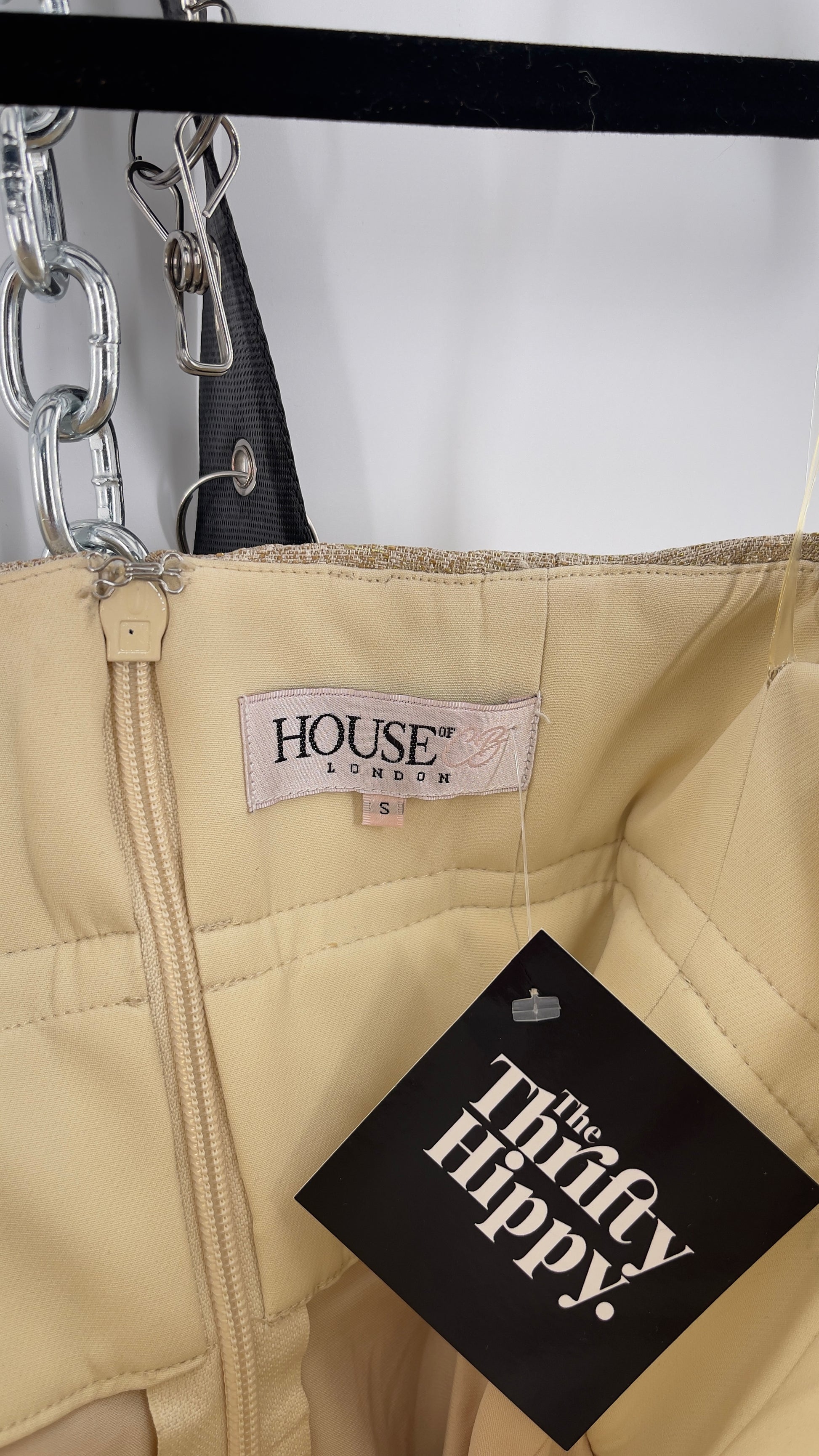 House of CB Gold Glitter Poof Mini Dress with Built in Corset (Small) |