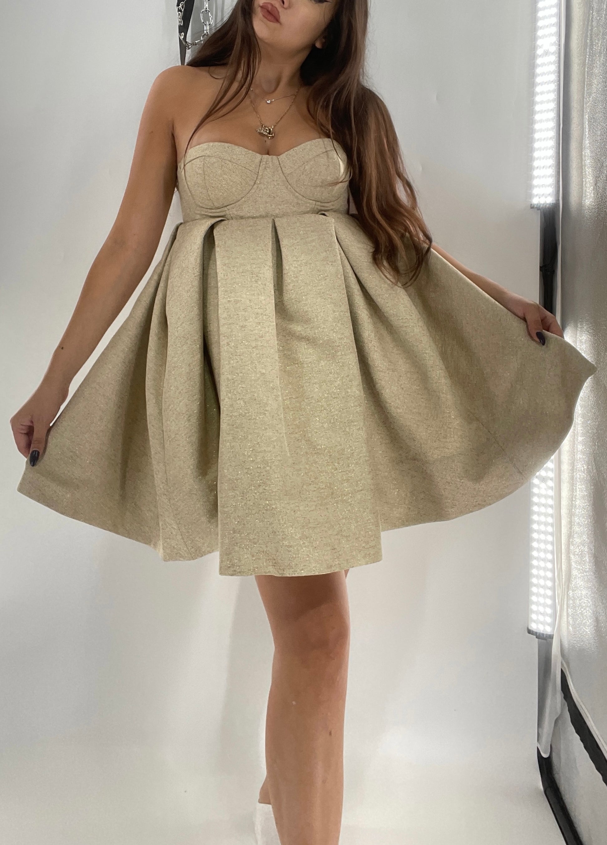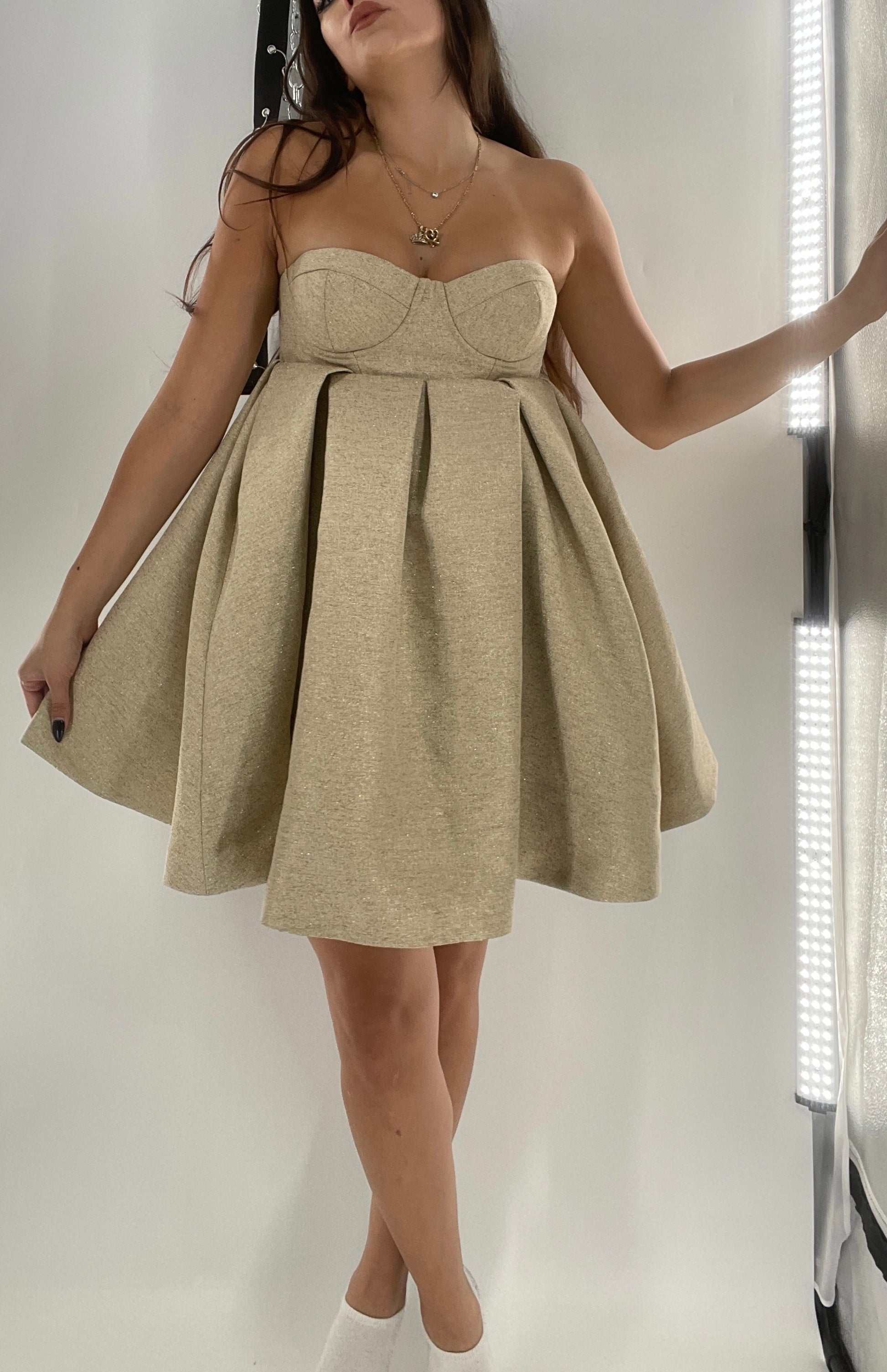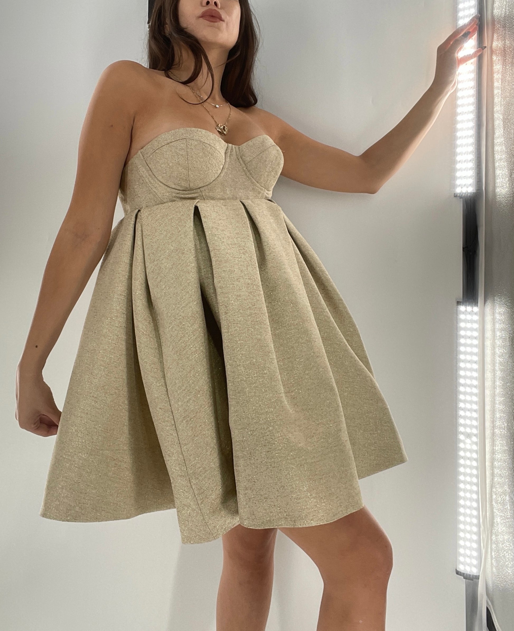 House of CB Gold Glitter Poof Mini Dress with Built in Corset (Small) |