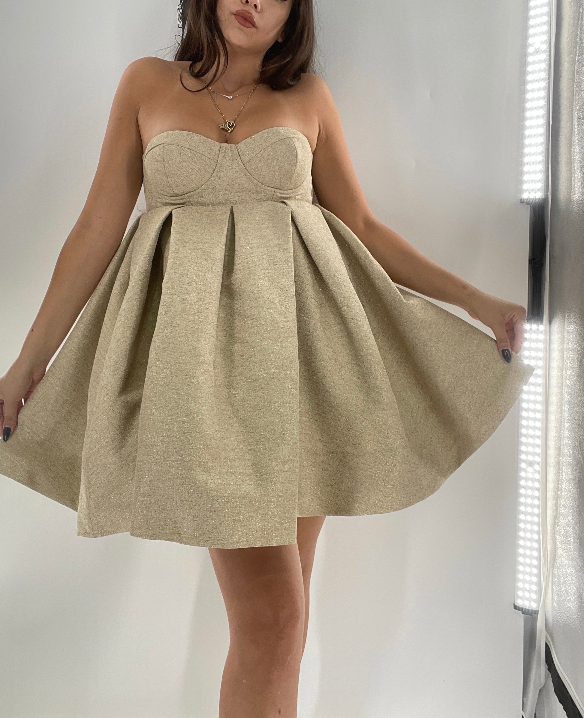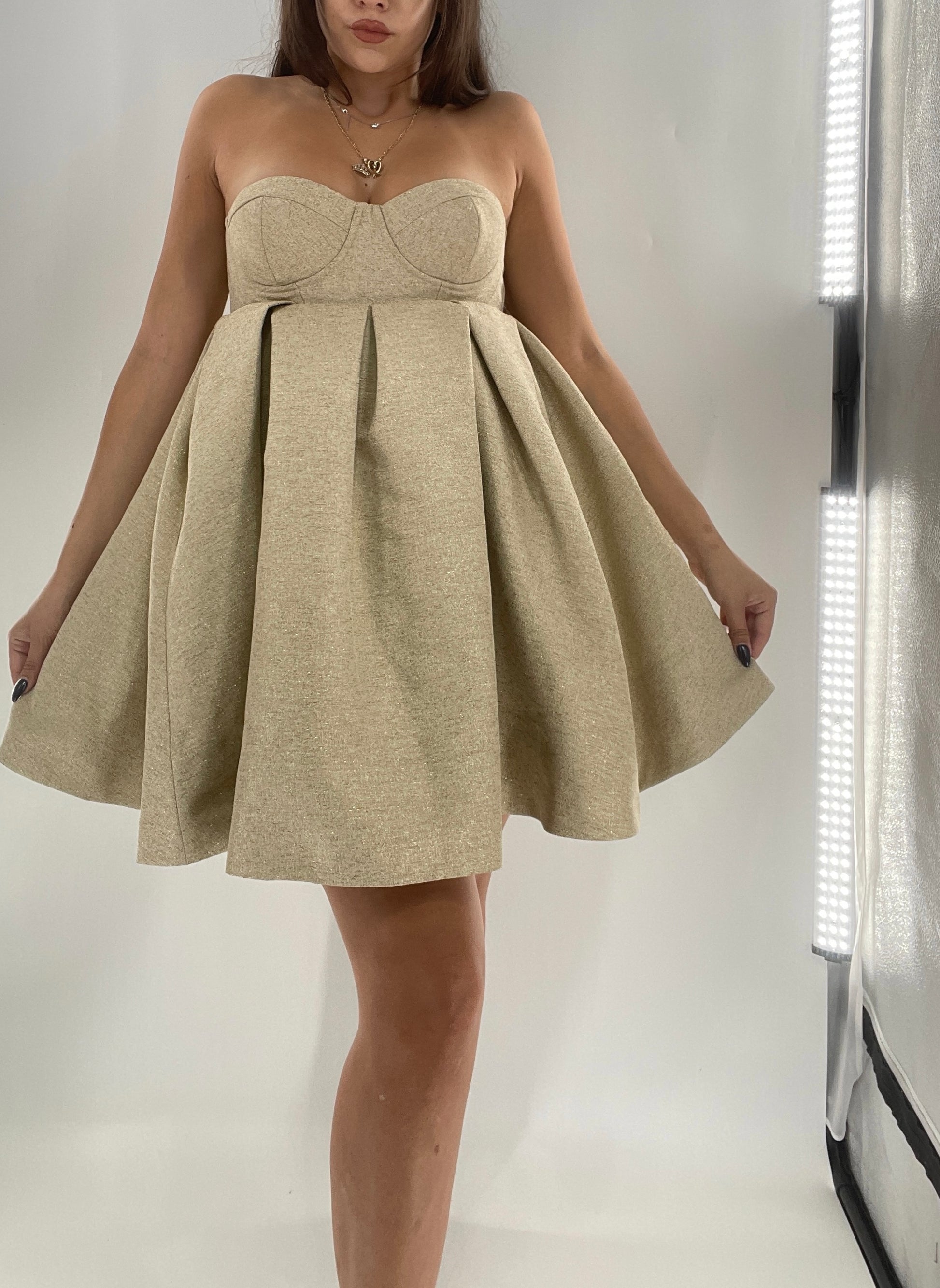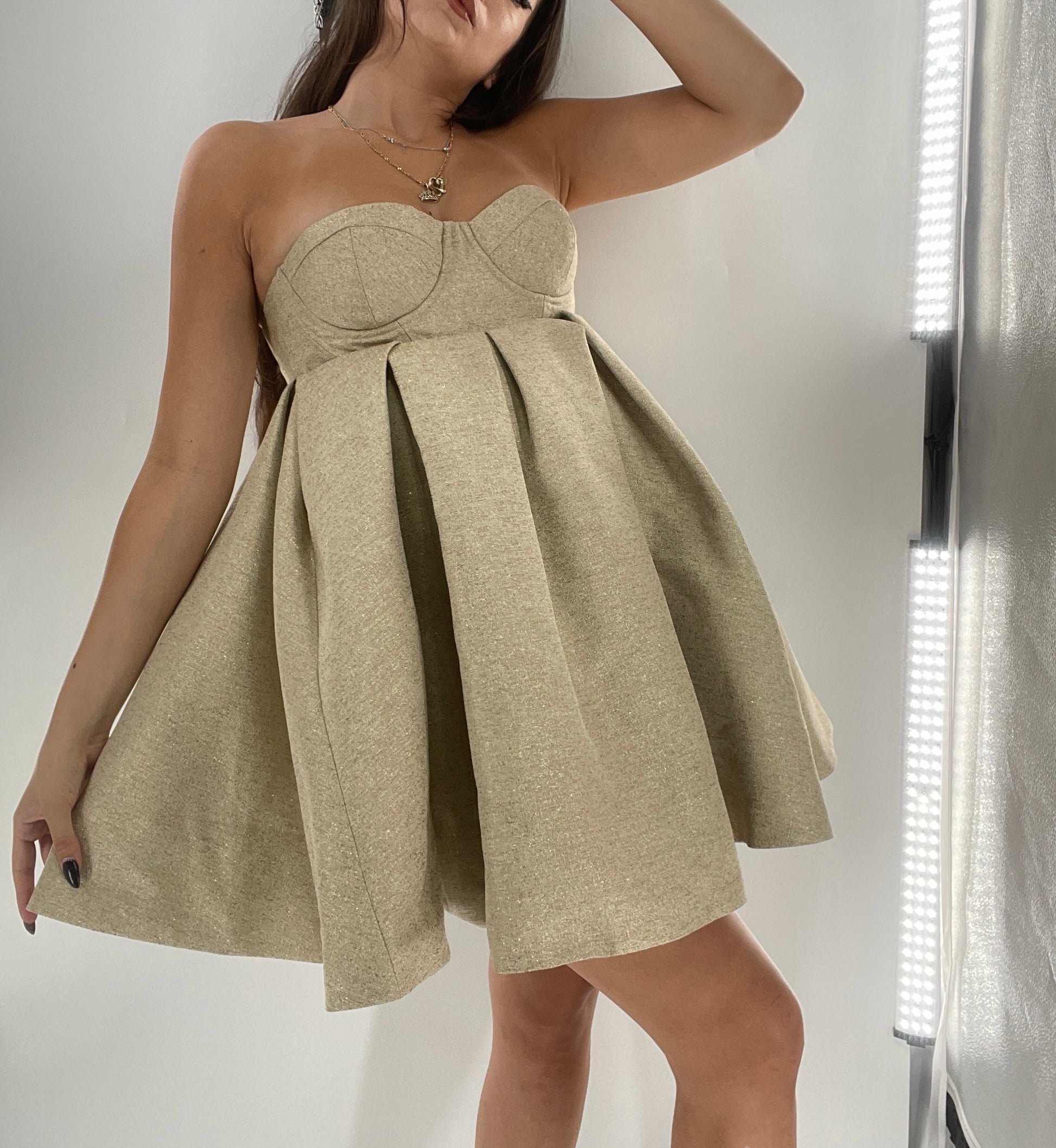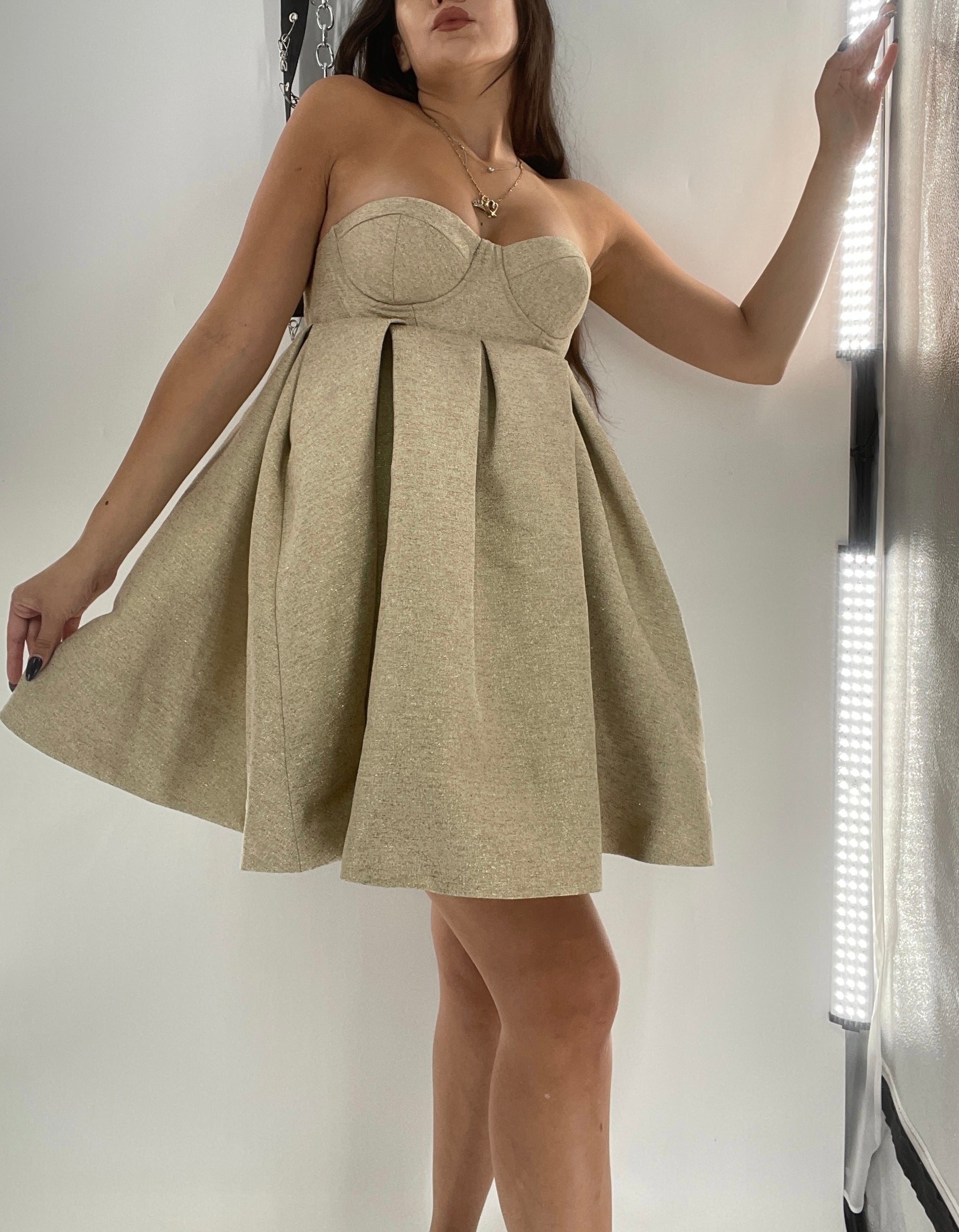 House of CB Gold Glitter Poof Mini Dress with Built in Corset (Small) |