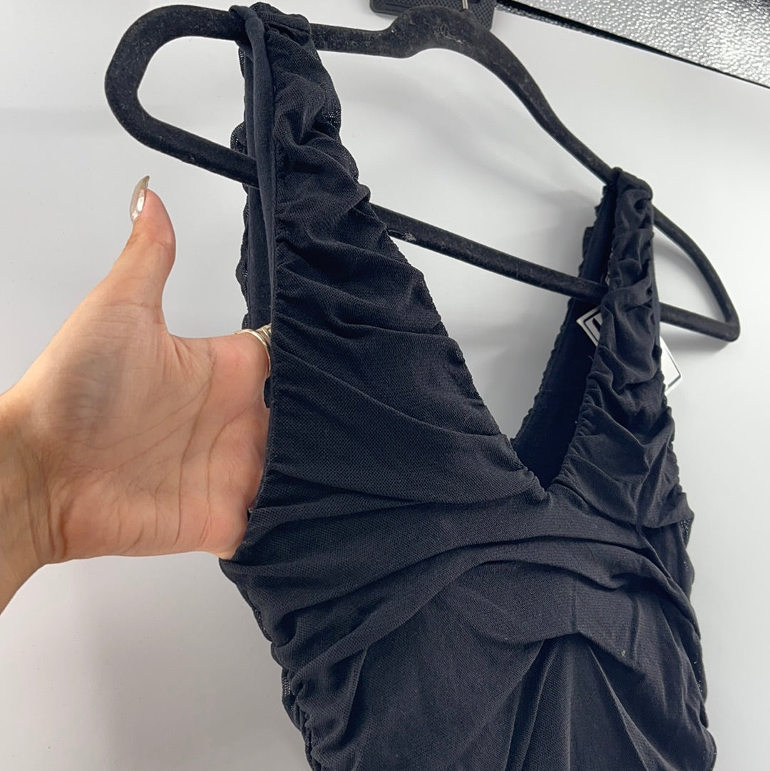 Express - Black Body-con Ruched Mesh Mini Dress (Size XS)