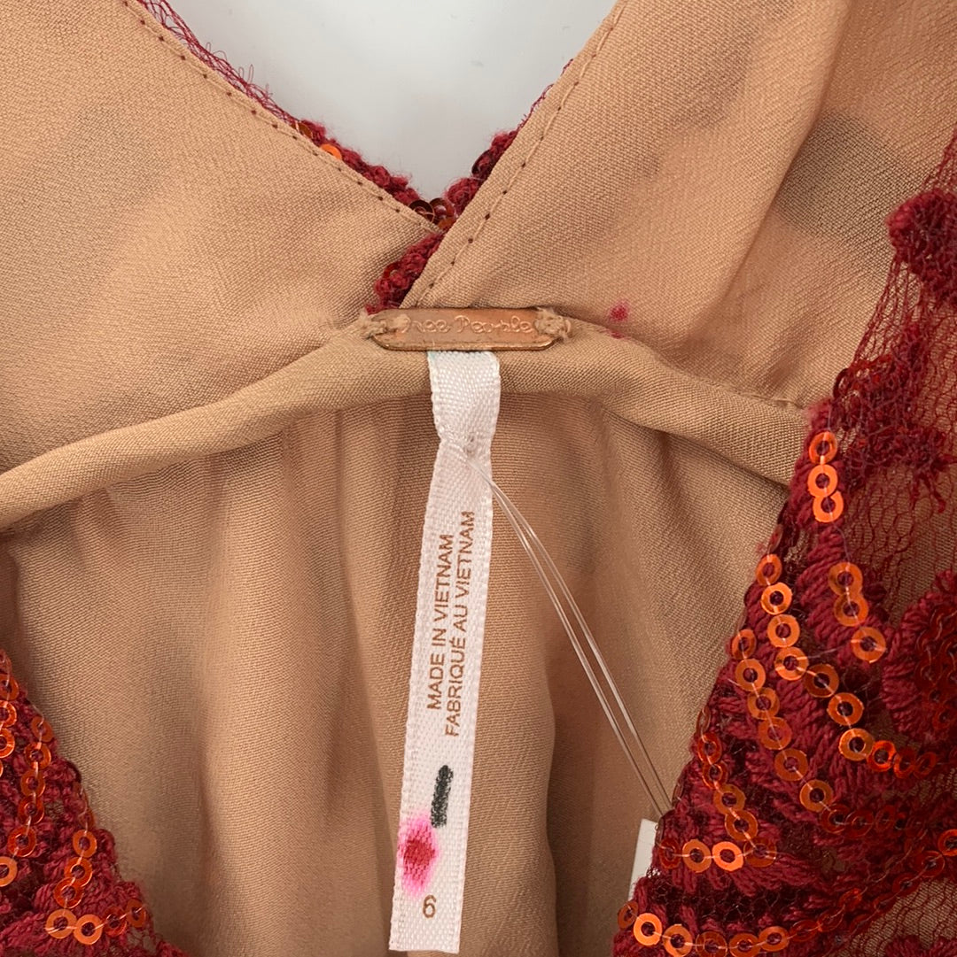 Free People Red Sequin Lace Mini Dress (Sz6)