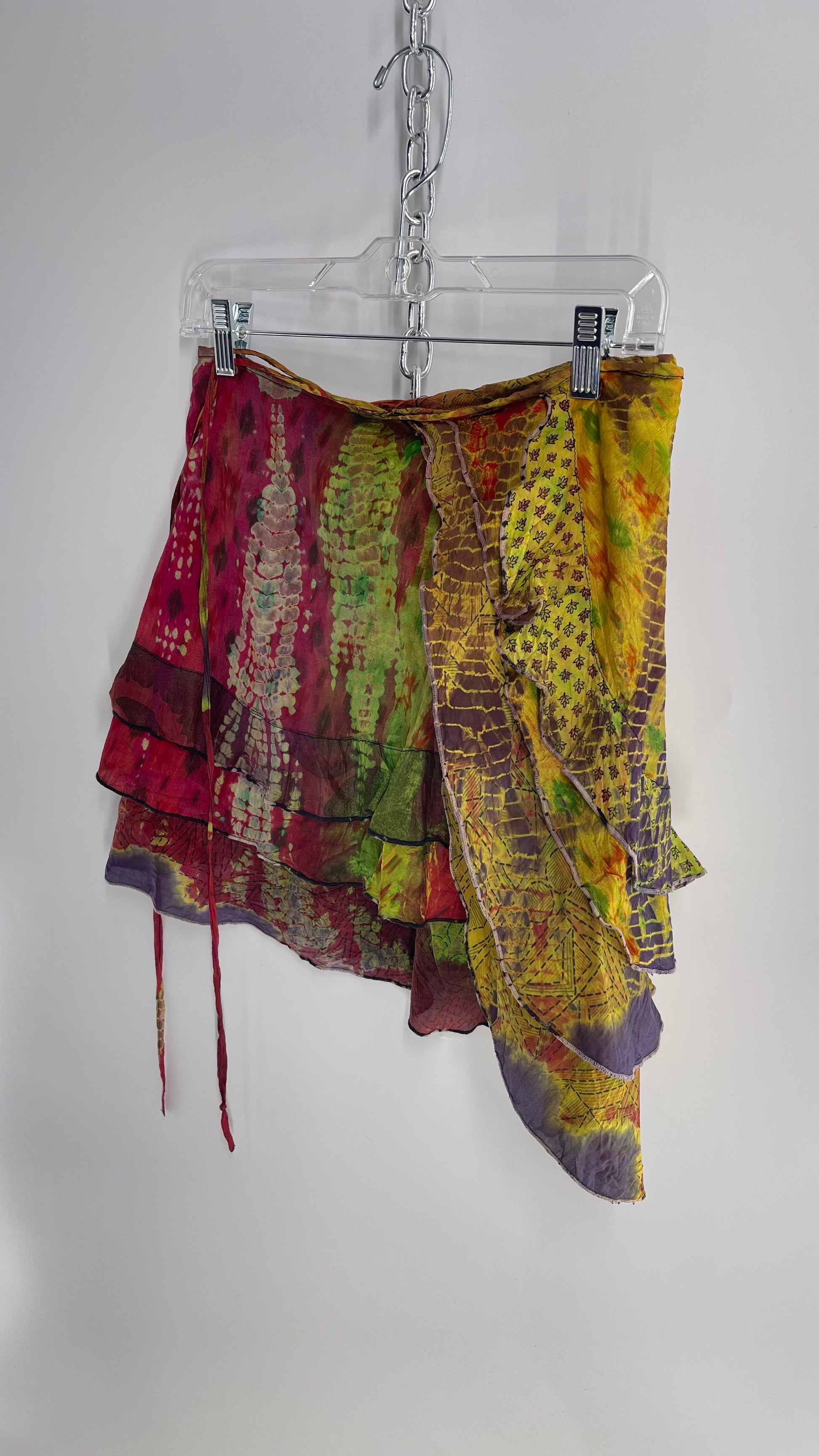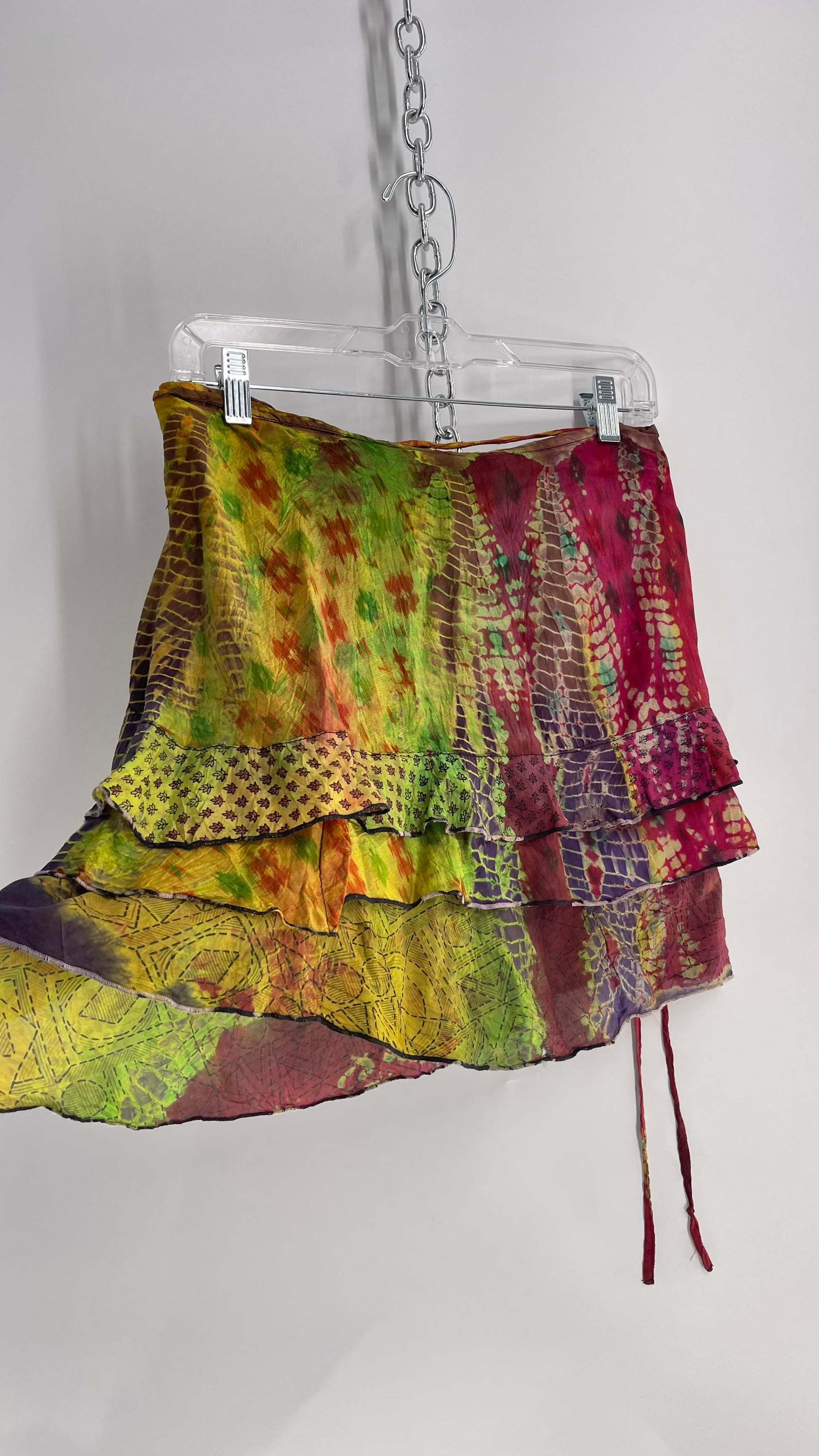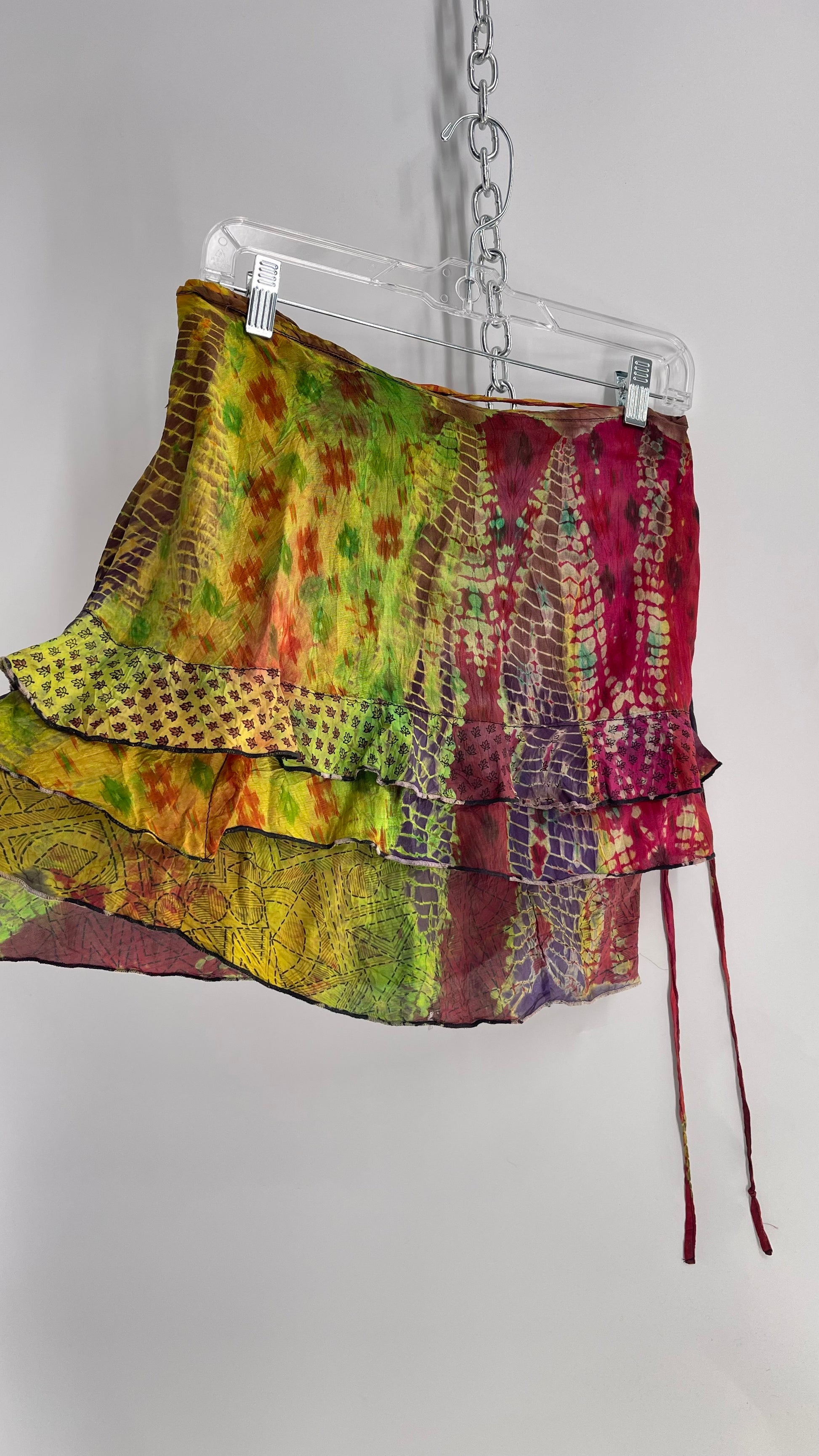 Deadstock Vintage Chic Thing Tie Dye Ruffle Skirt 100% Silk (One Size)