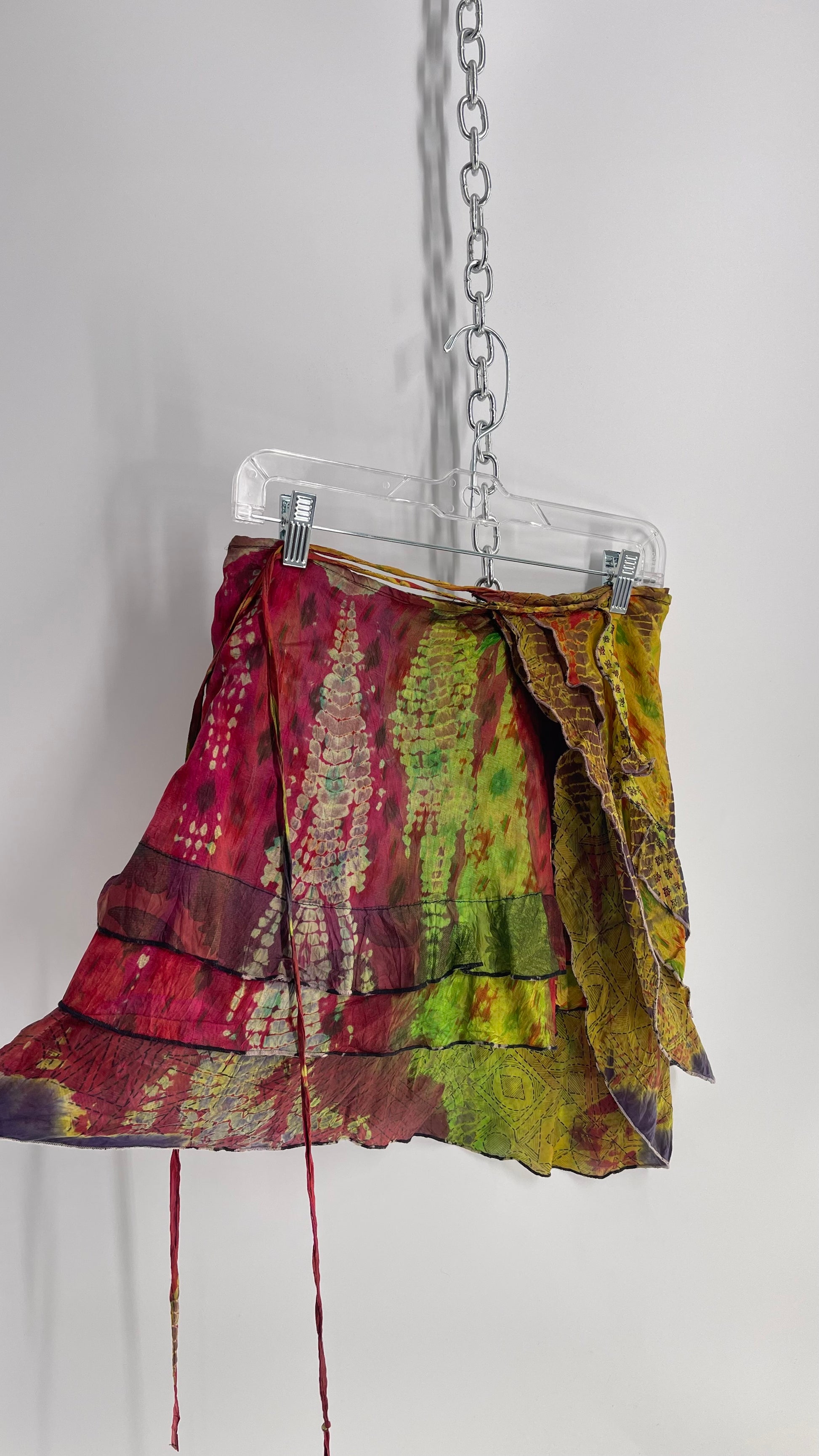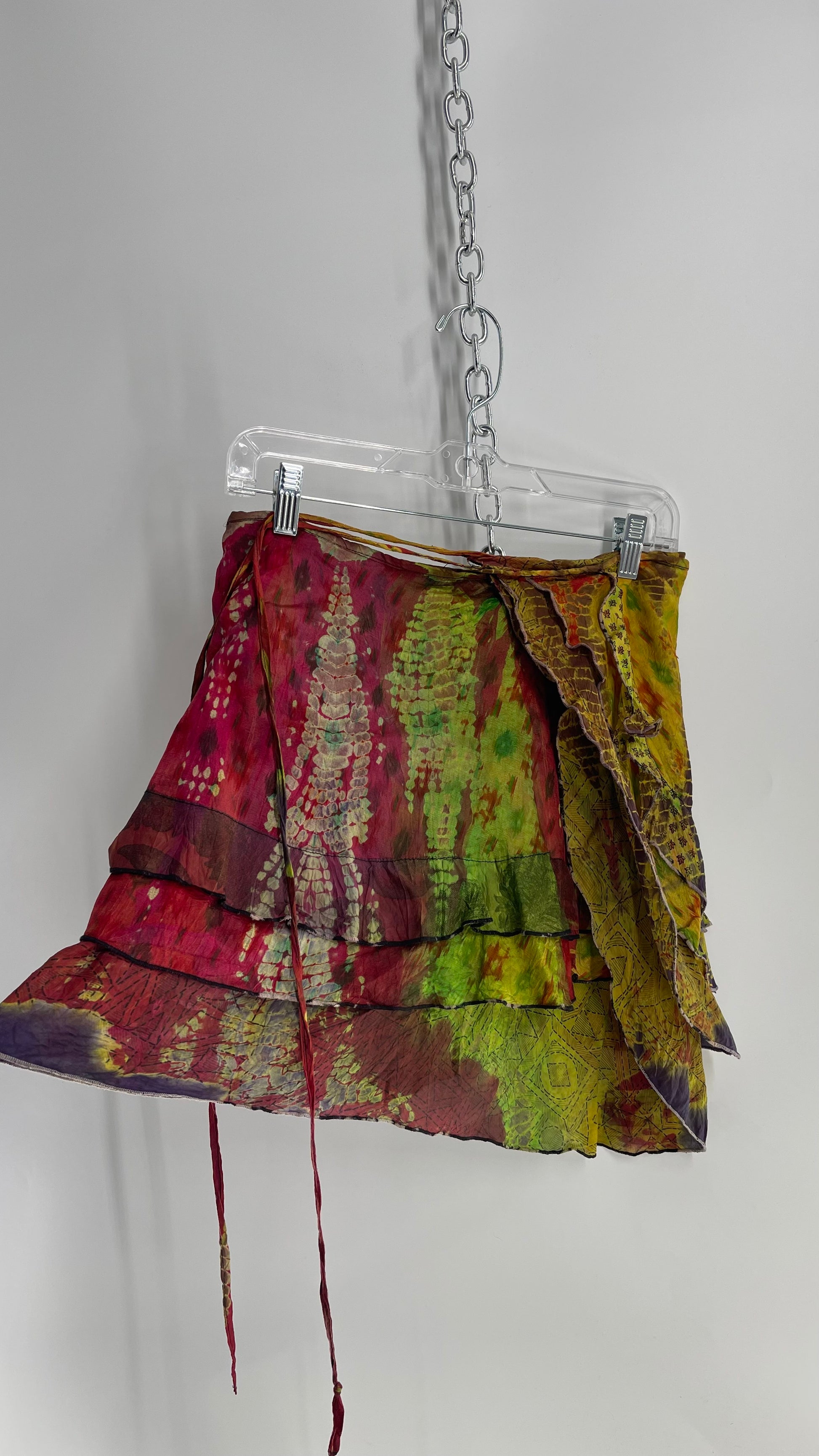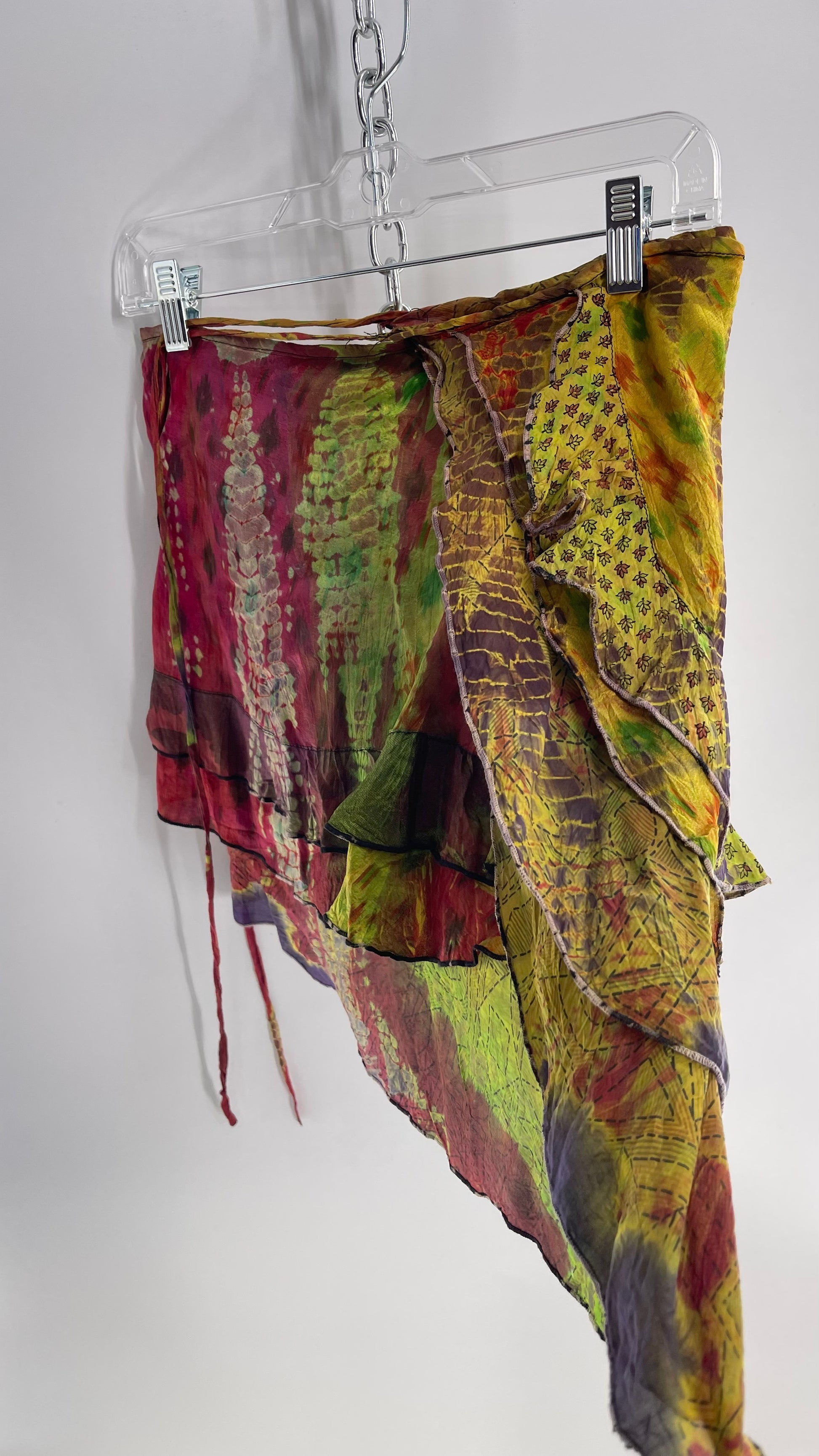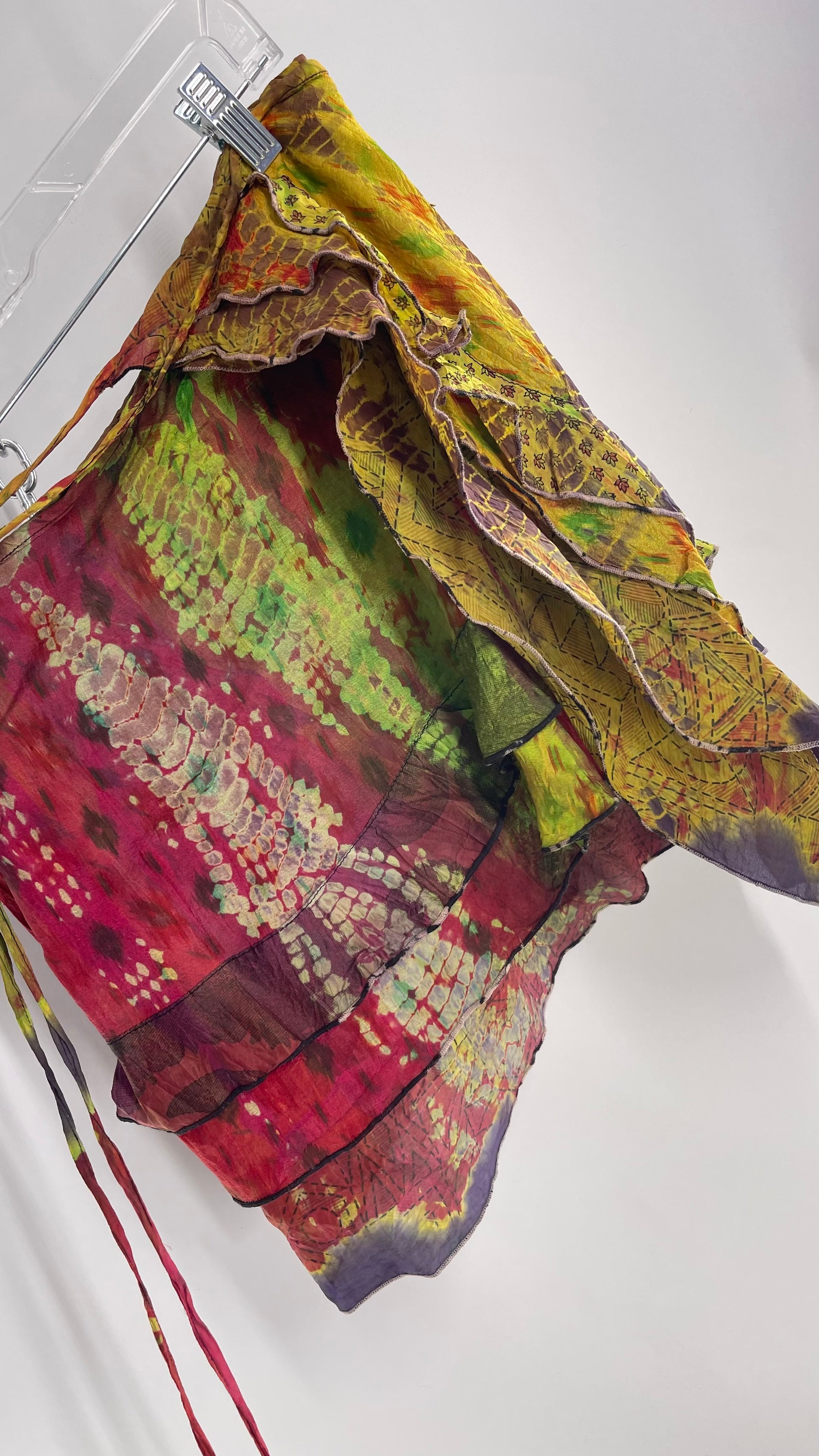 Deadstock Vintage Chic Thing Tie Dye Ruffle Skirt 100% Silk (One Size)