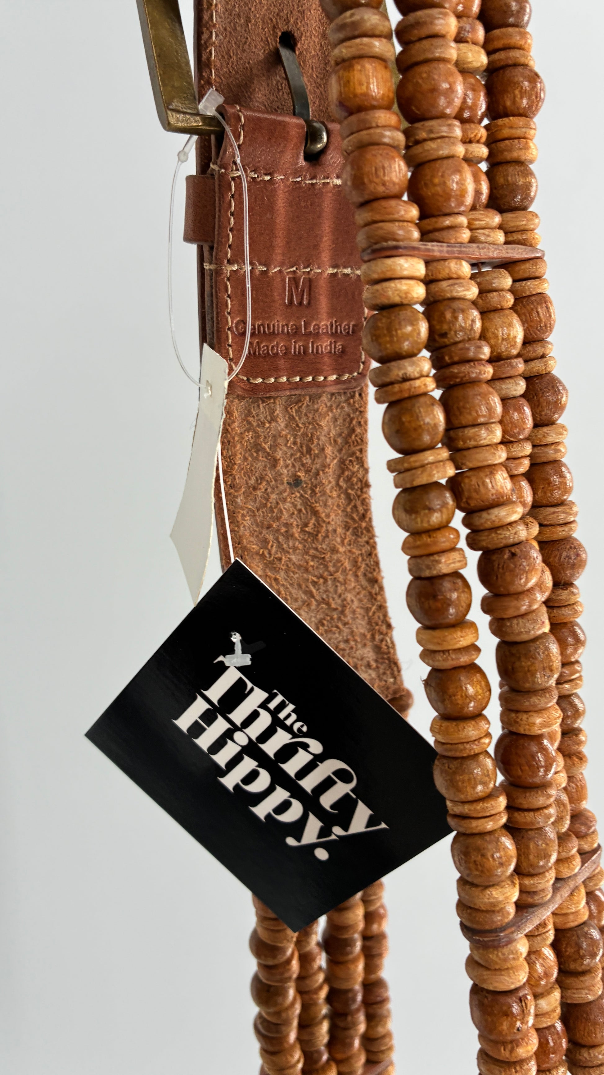 Vintage Leather, Beaded Belt with Tags Attached (Medium)