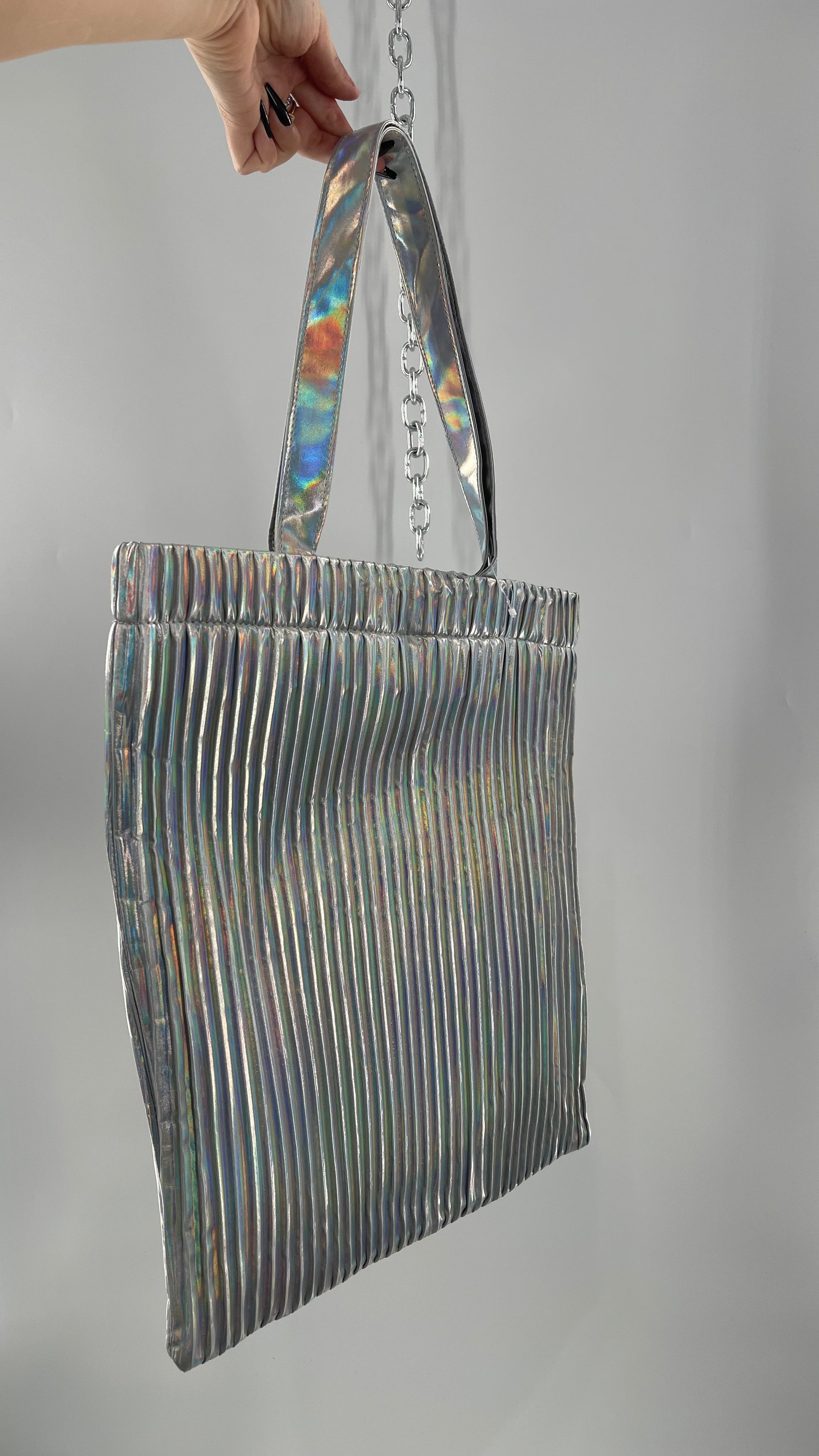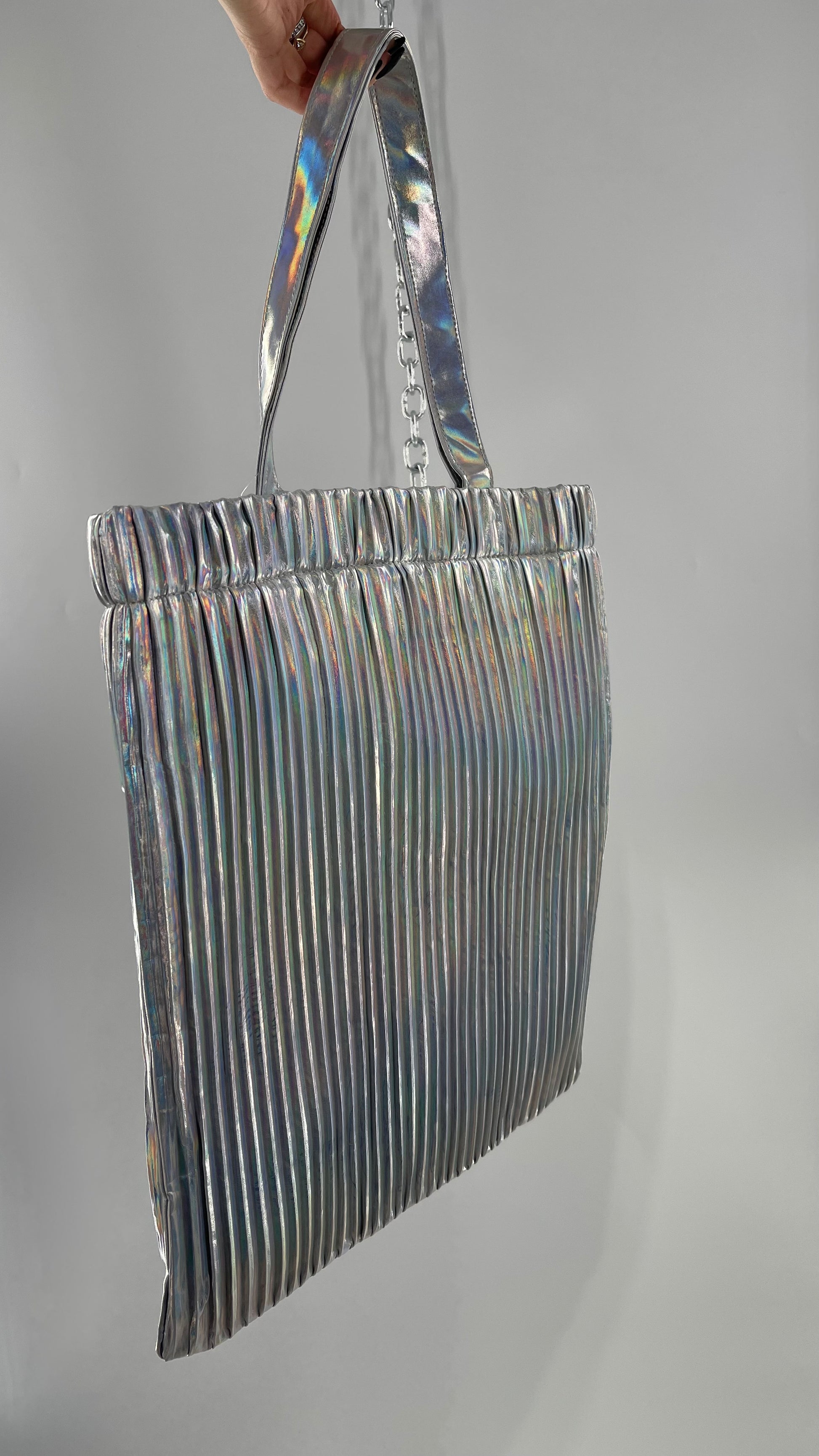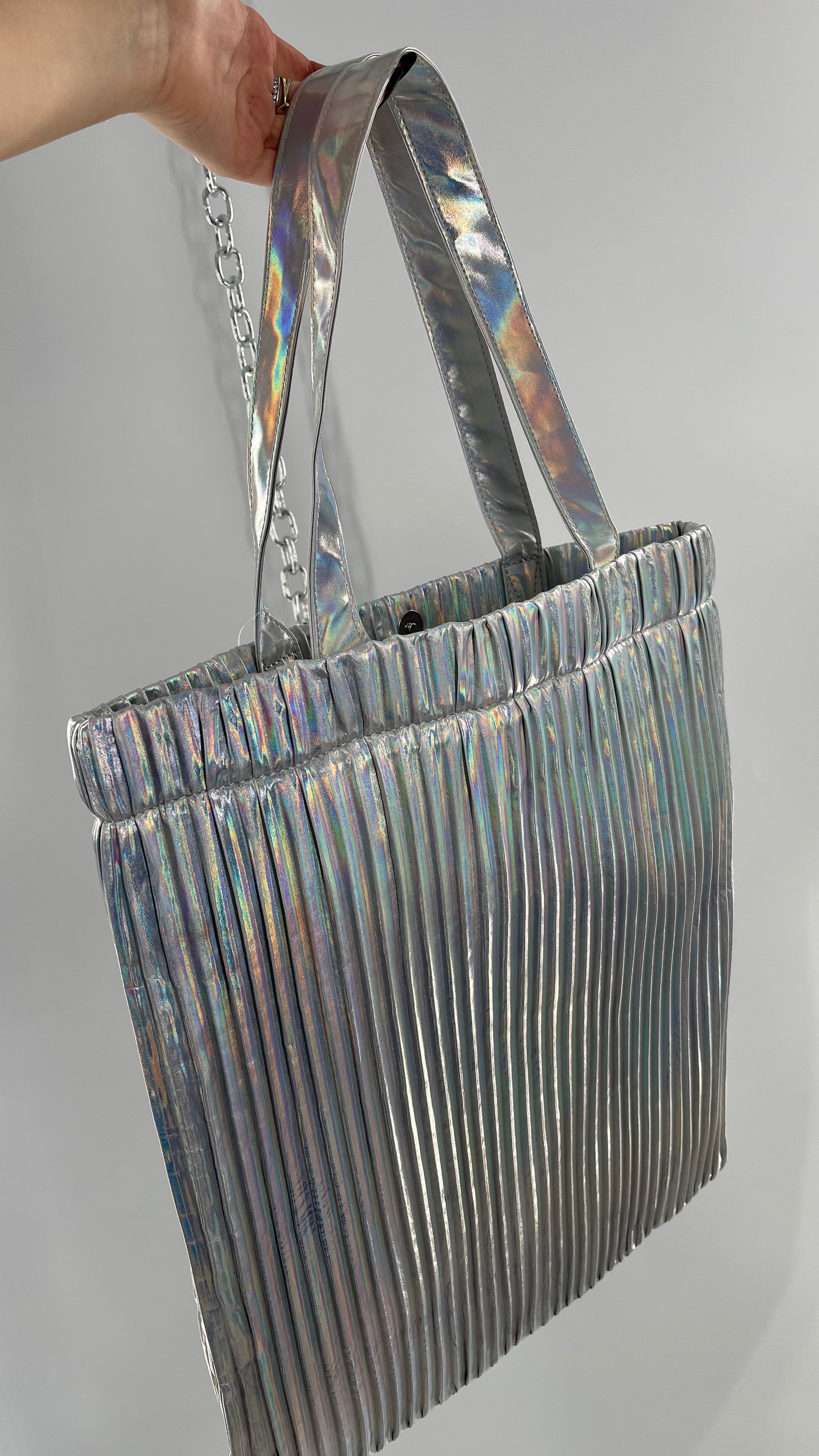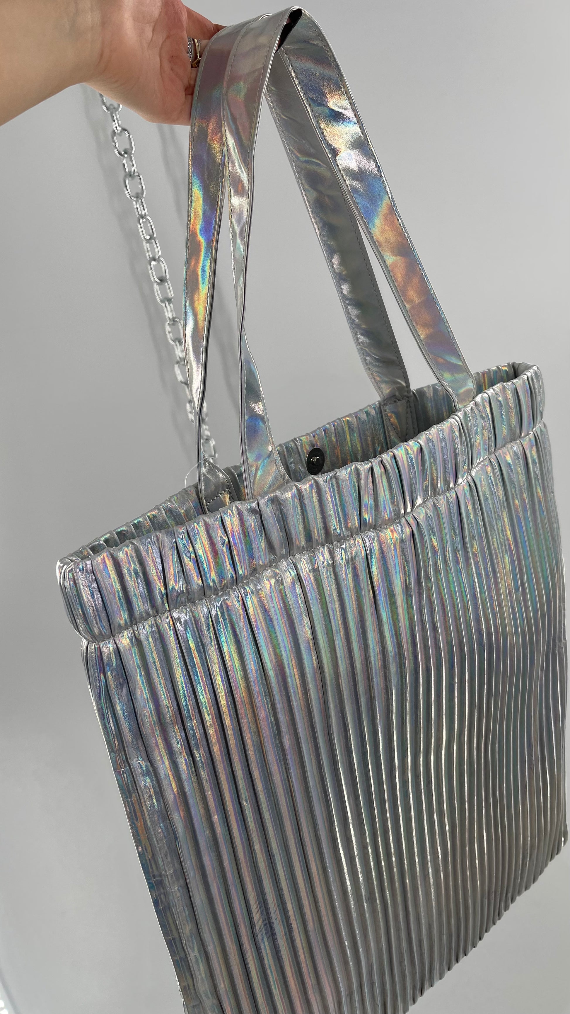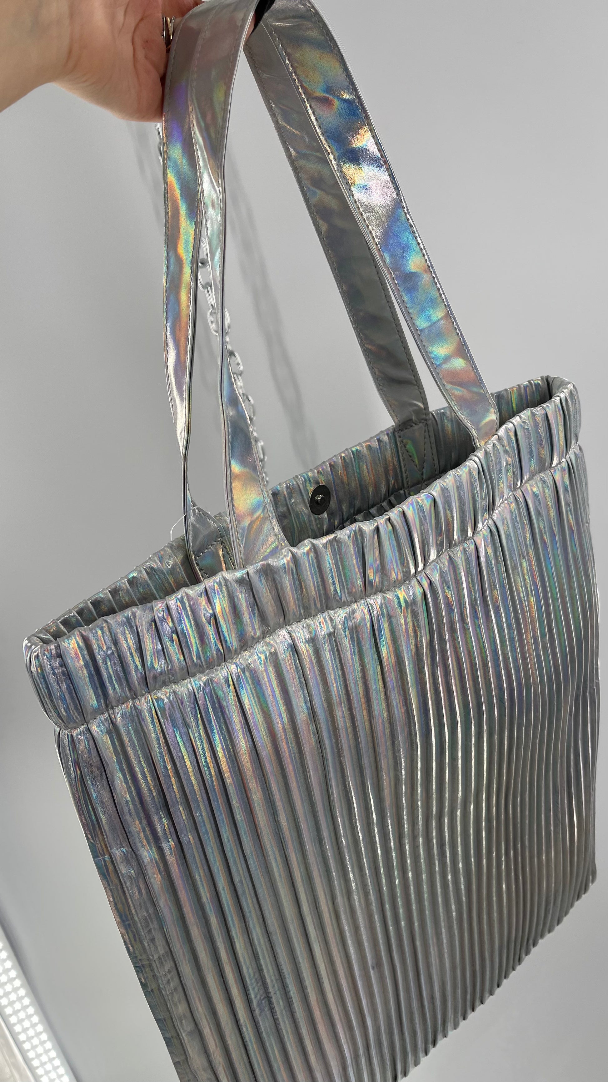 Urban Outfitters Silver Iridescent Fluted Tote Bag