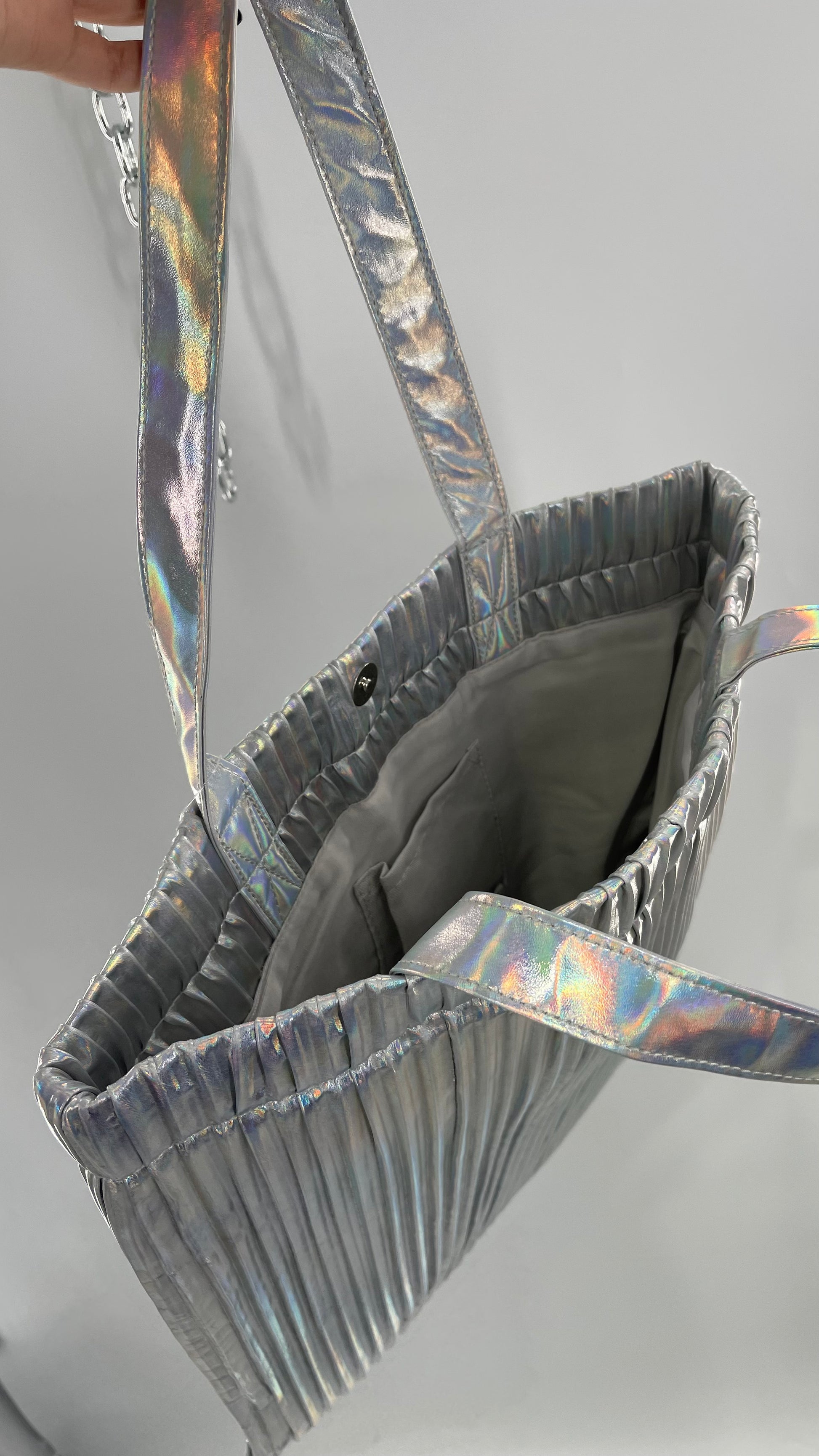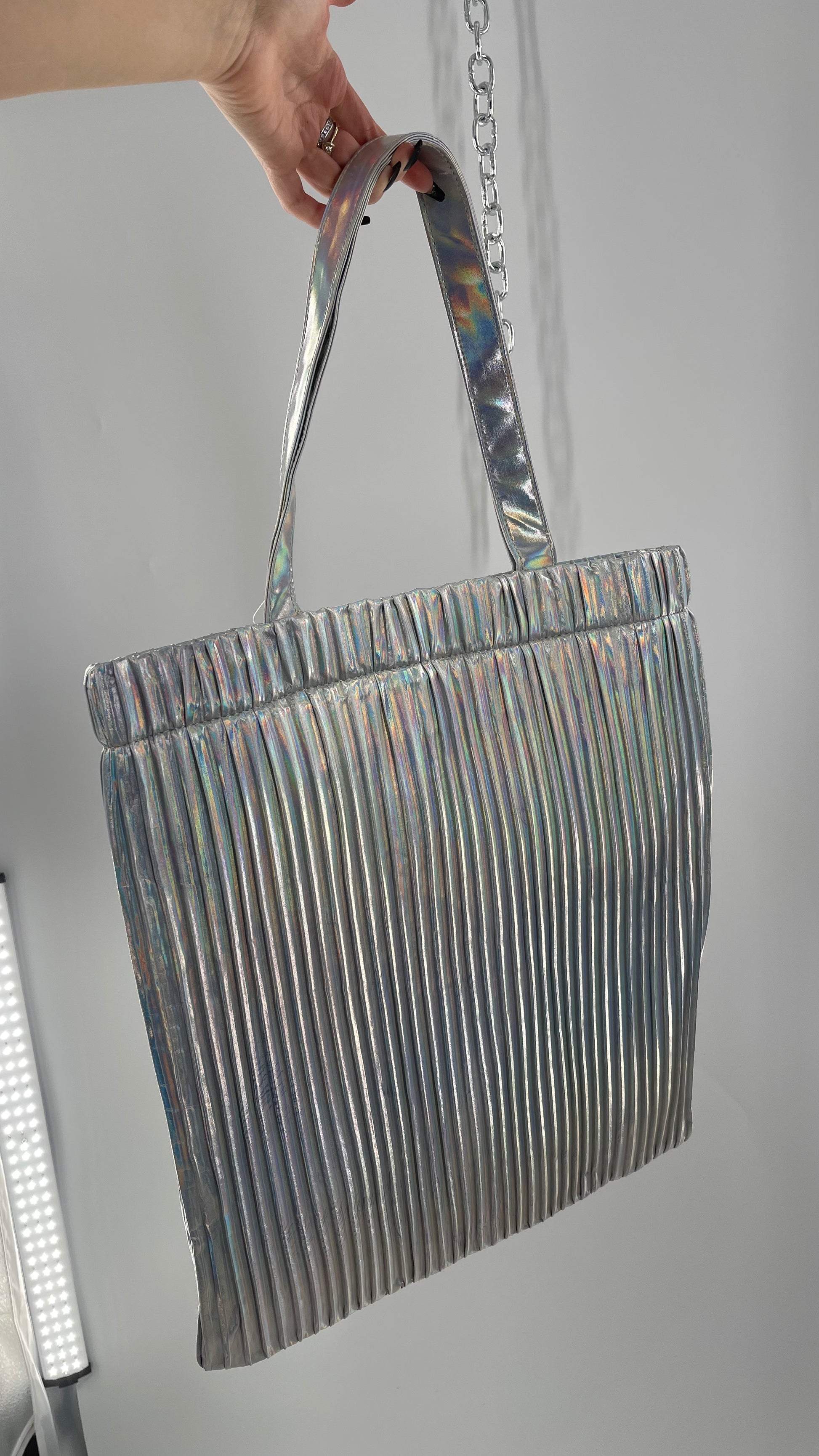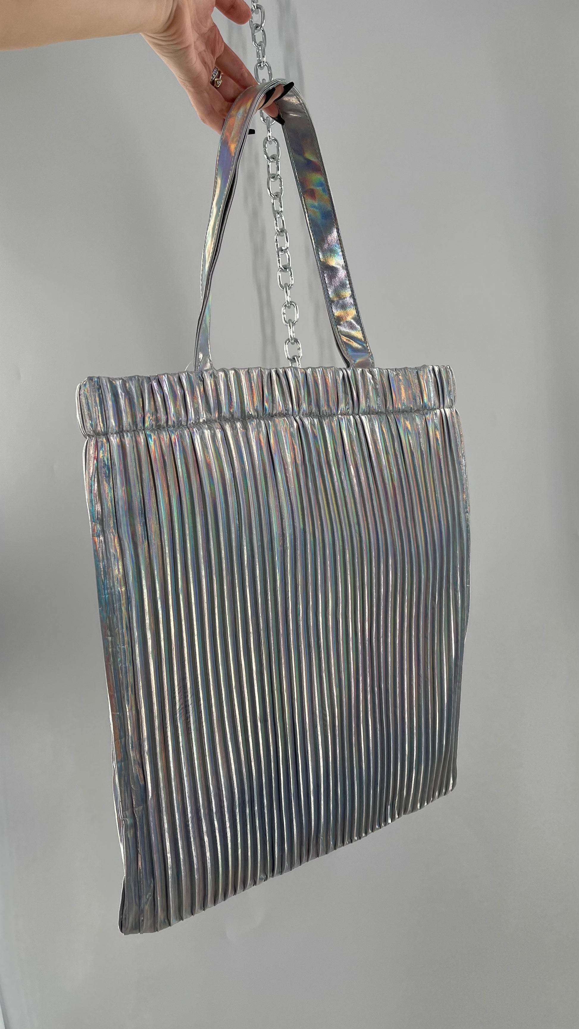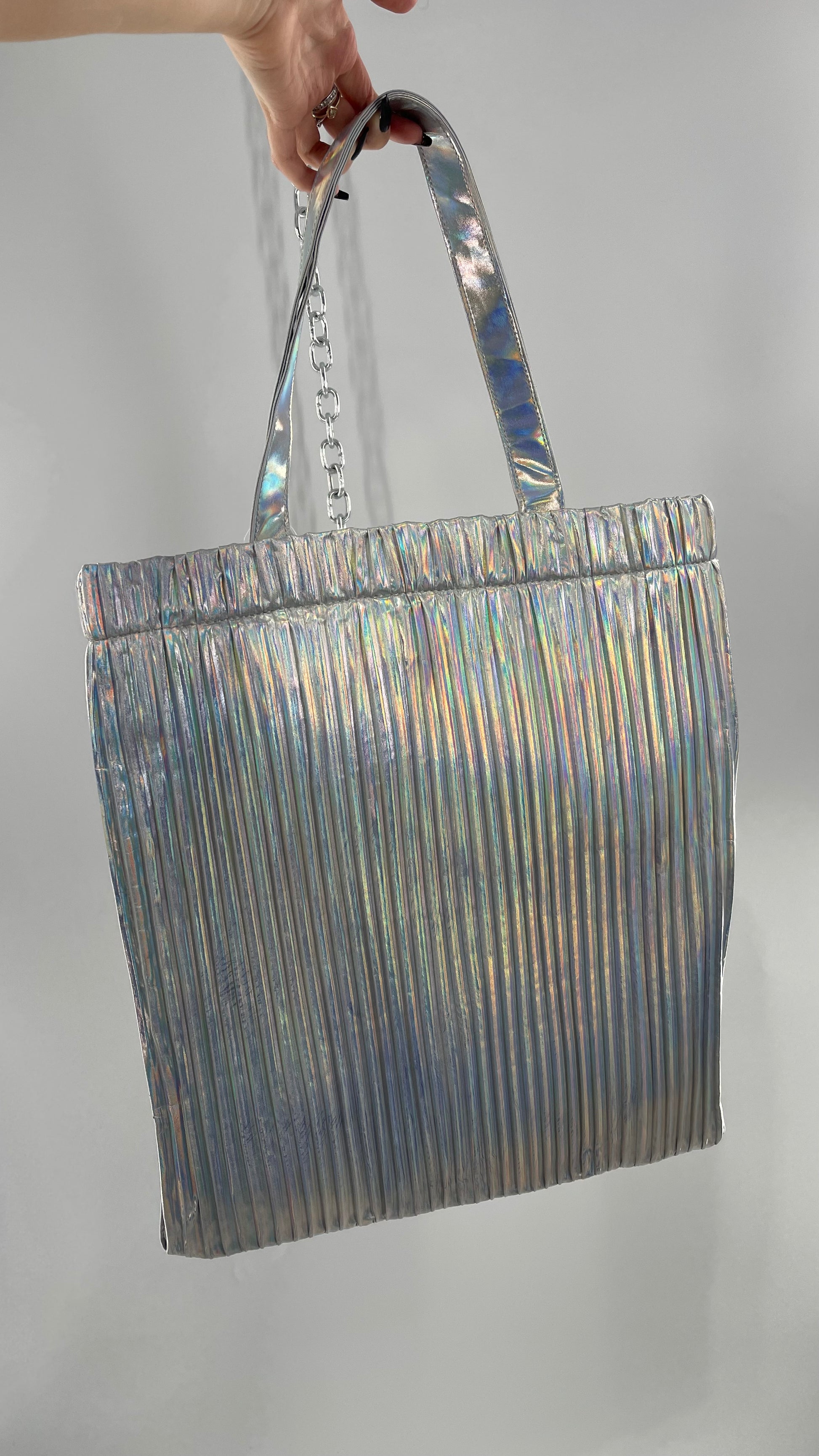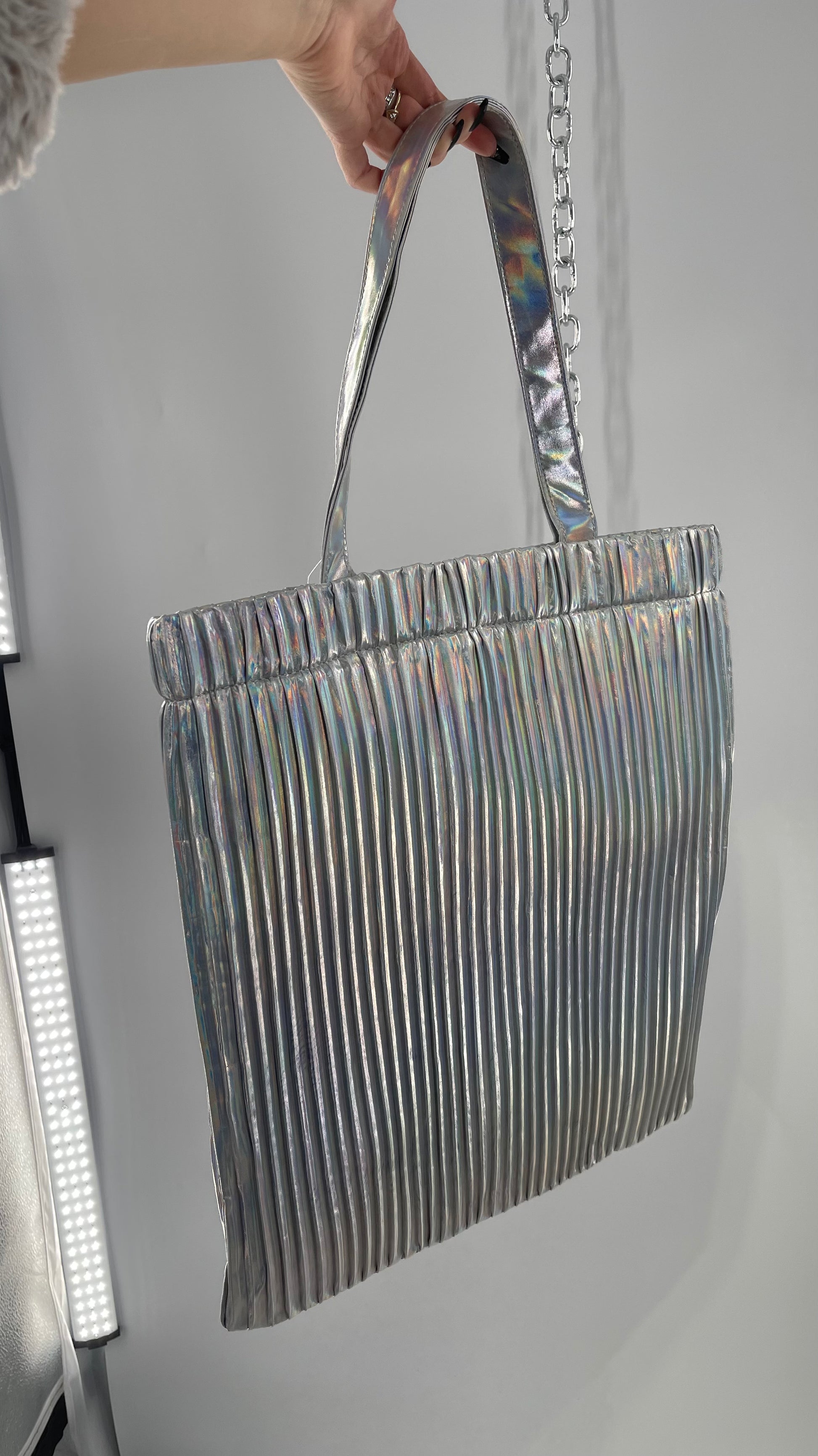 Urban Outfitters Silver Iridescent Fluted Tote Bag