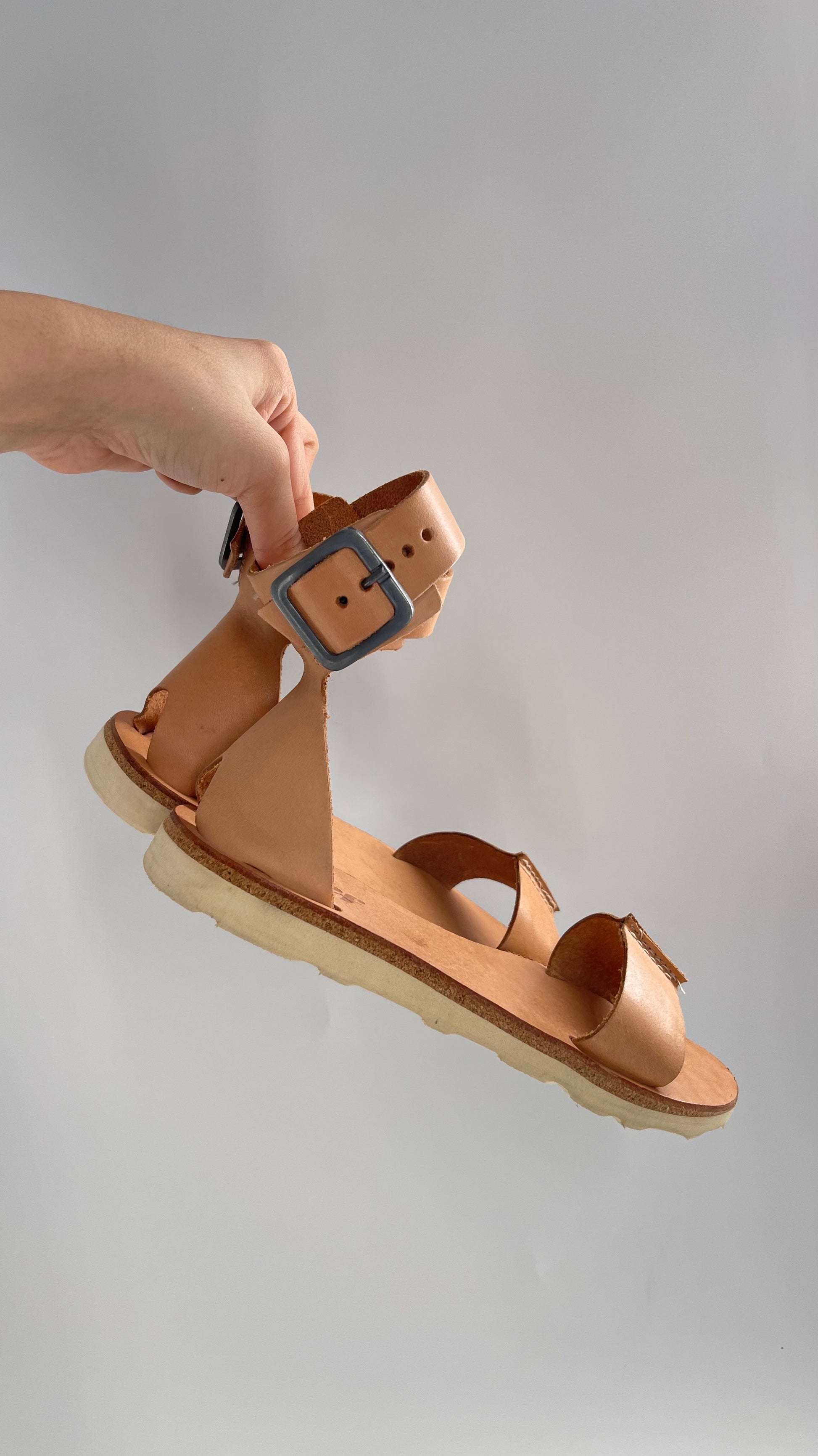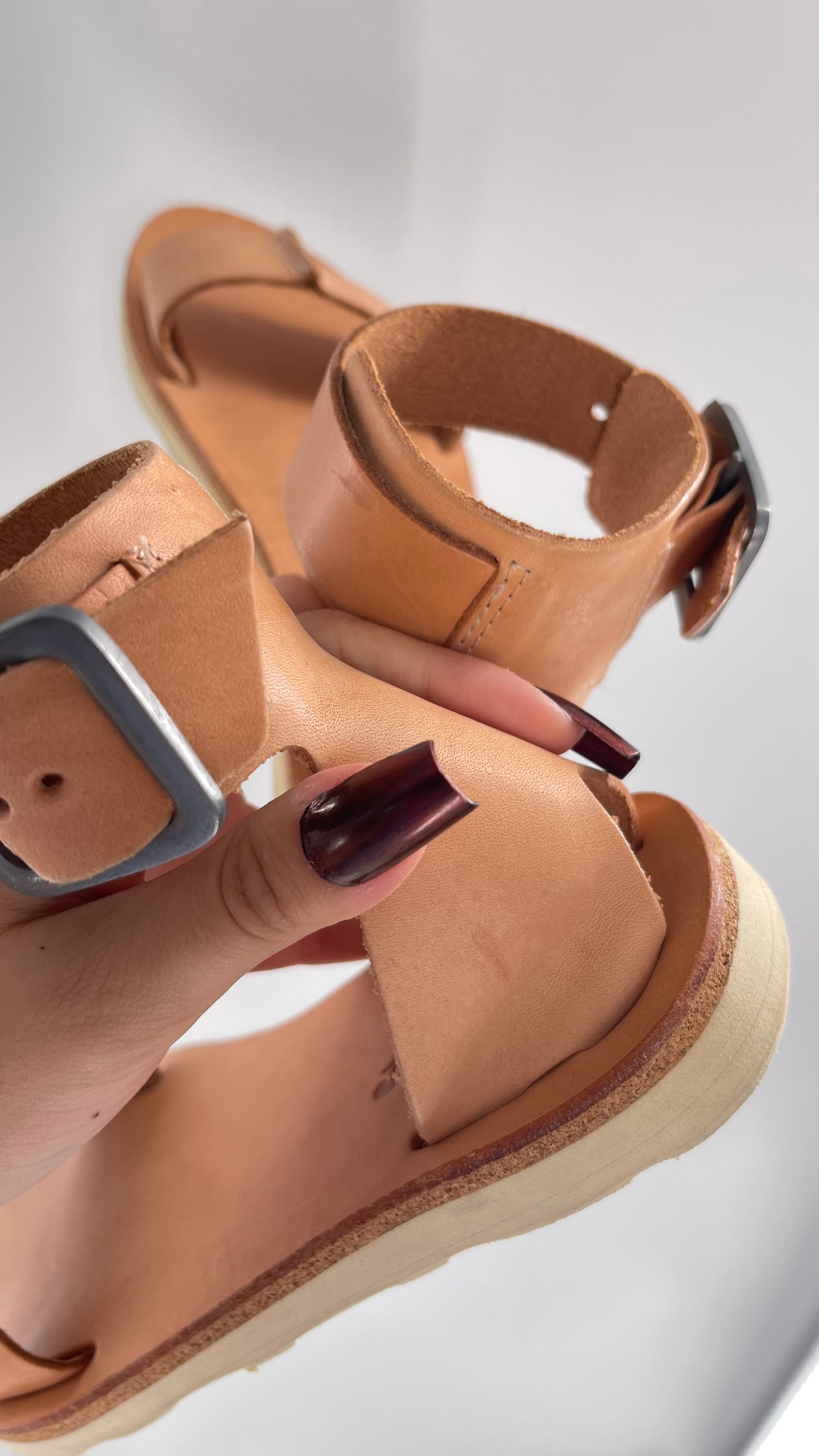 Free People Reef Light Nude / Tan Leather Sandals with Thick Ankle Strapped Buckle (6)