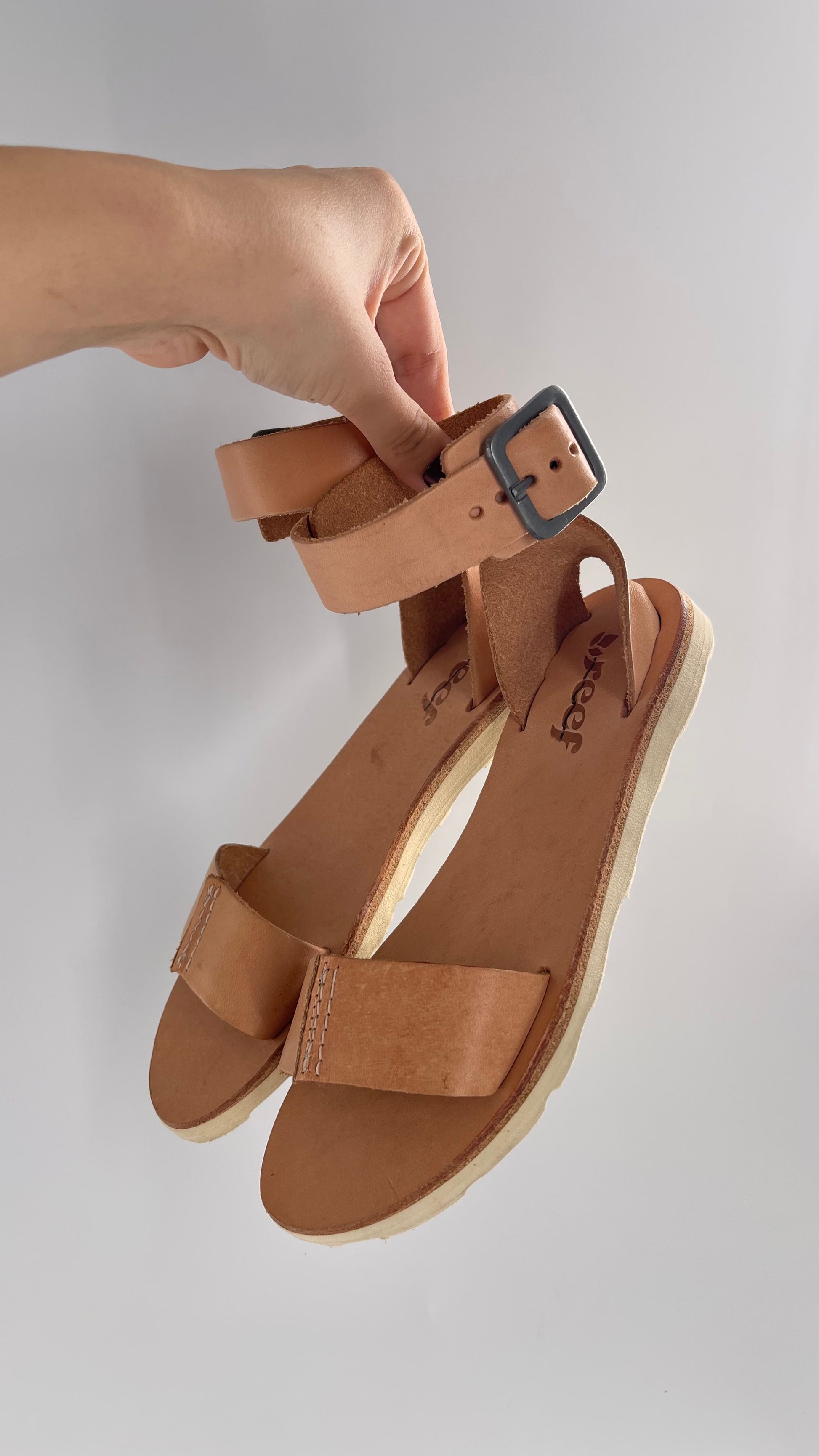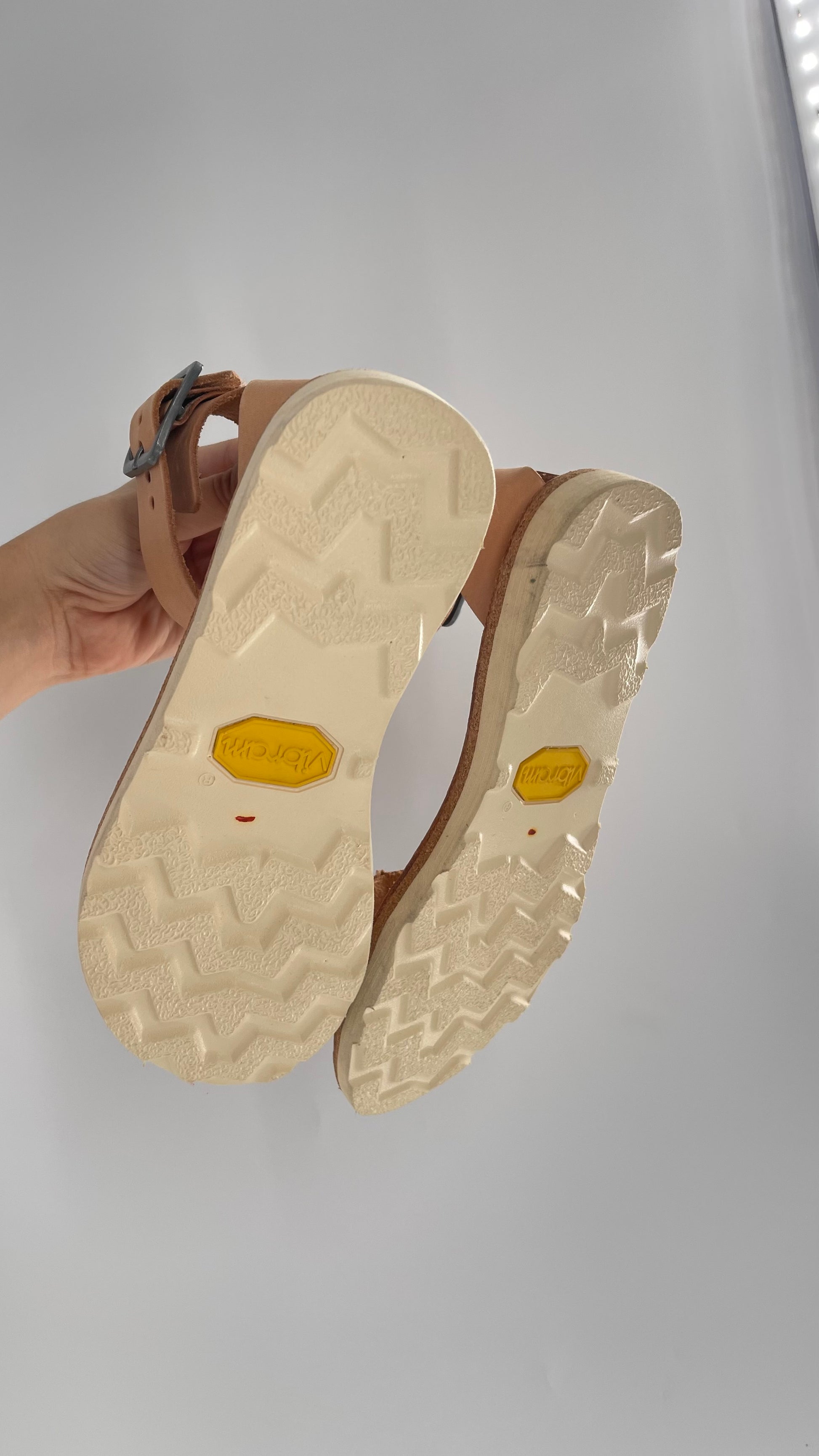 Free People Reef Light Nude / Tan Leather Sandals with Thick Ankle Strapped Buckle