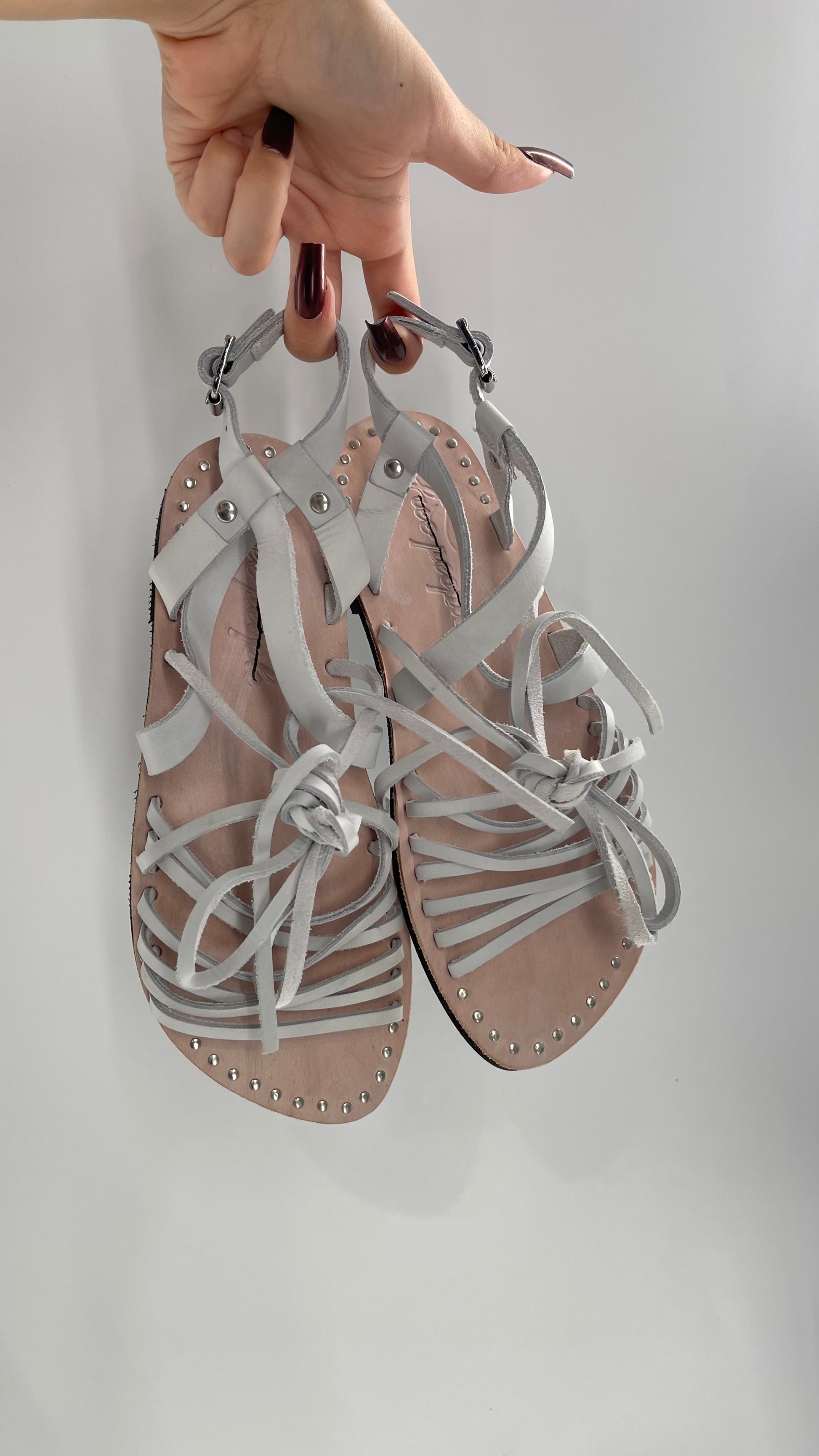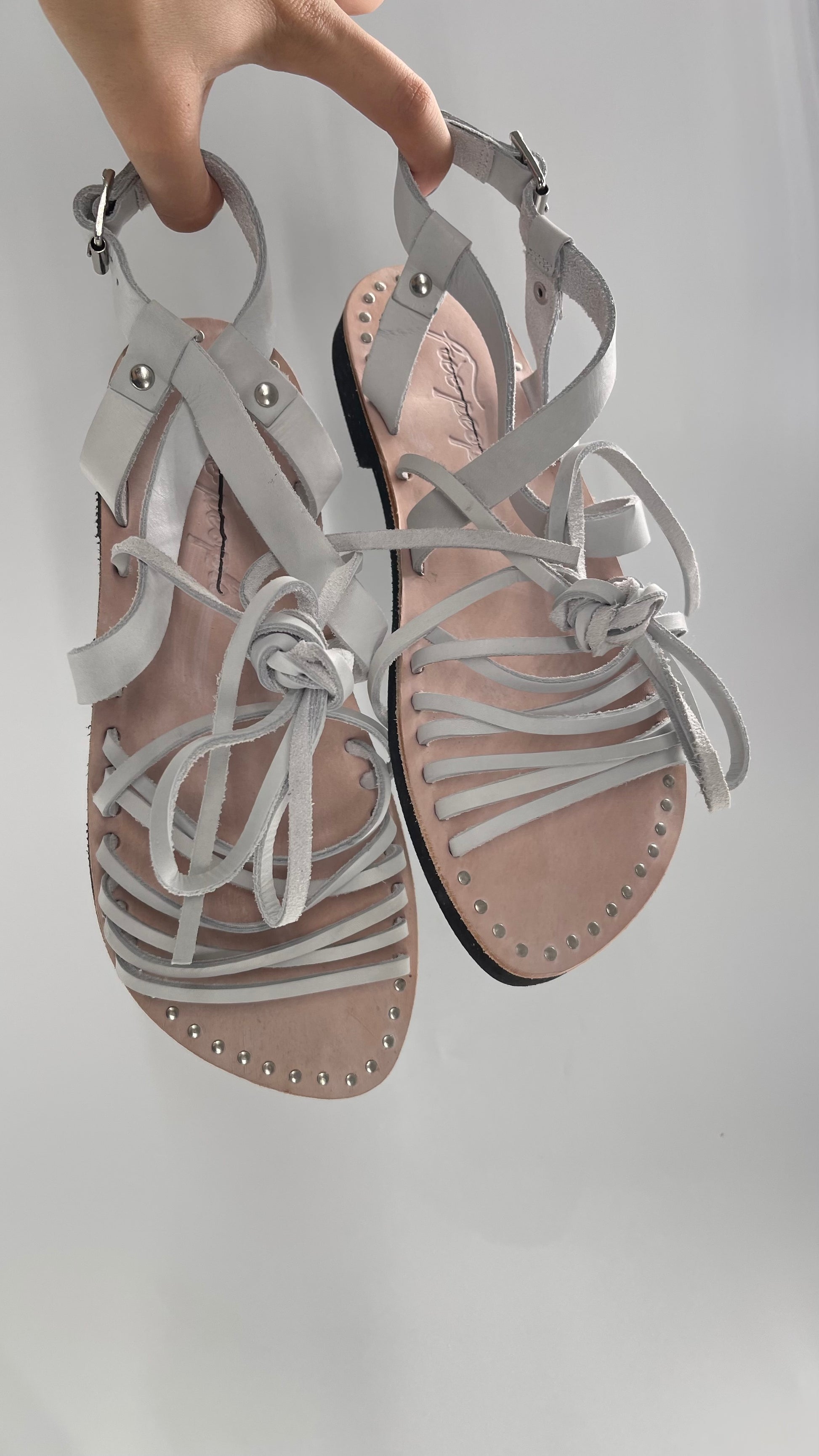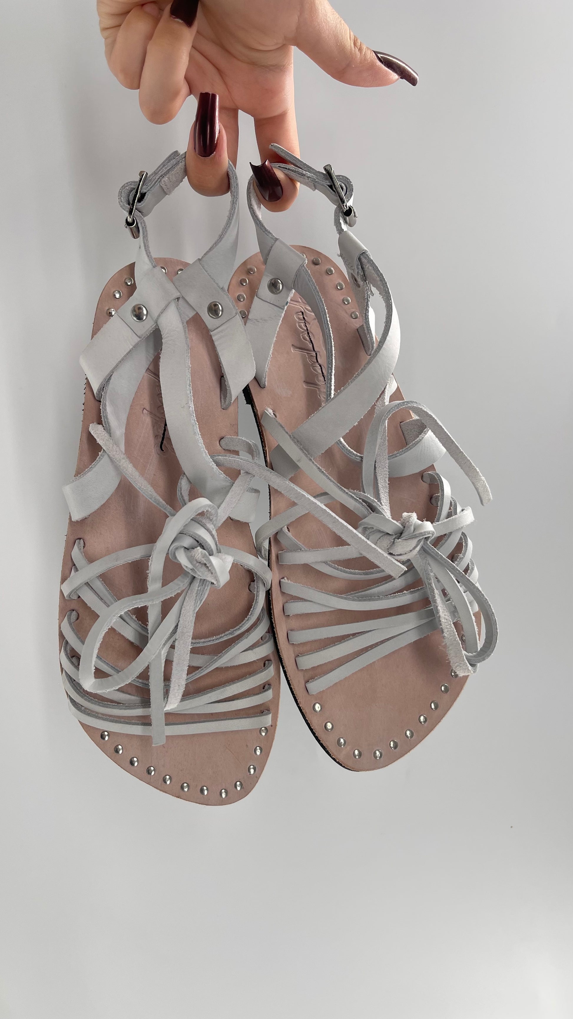 Free People Light Gray Willow Wrap Sandals with Studs (37)