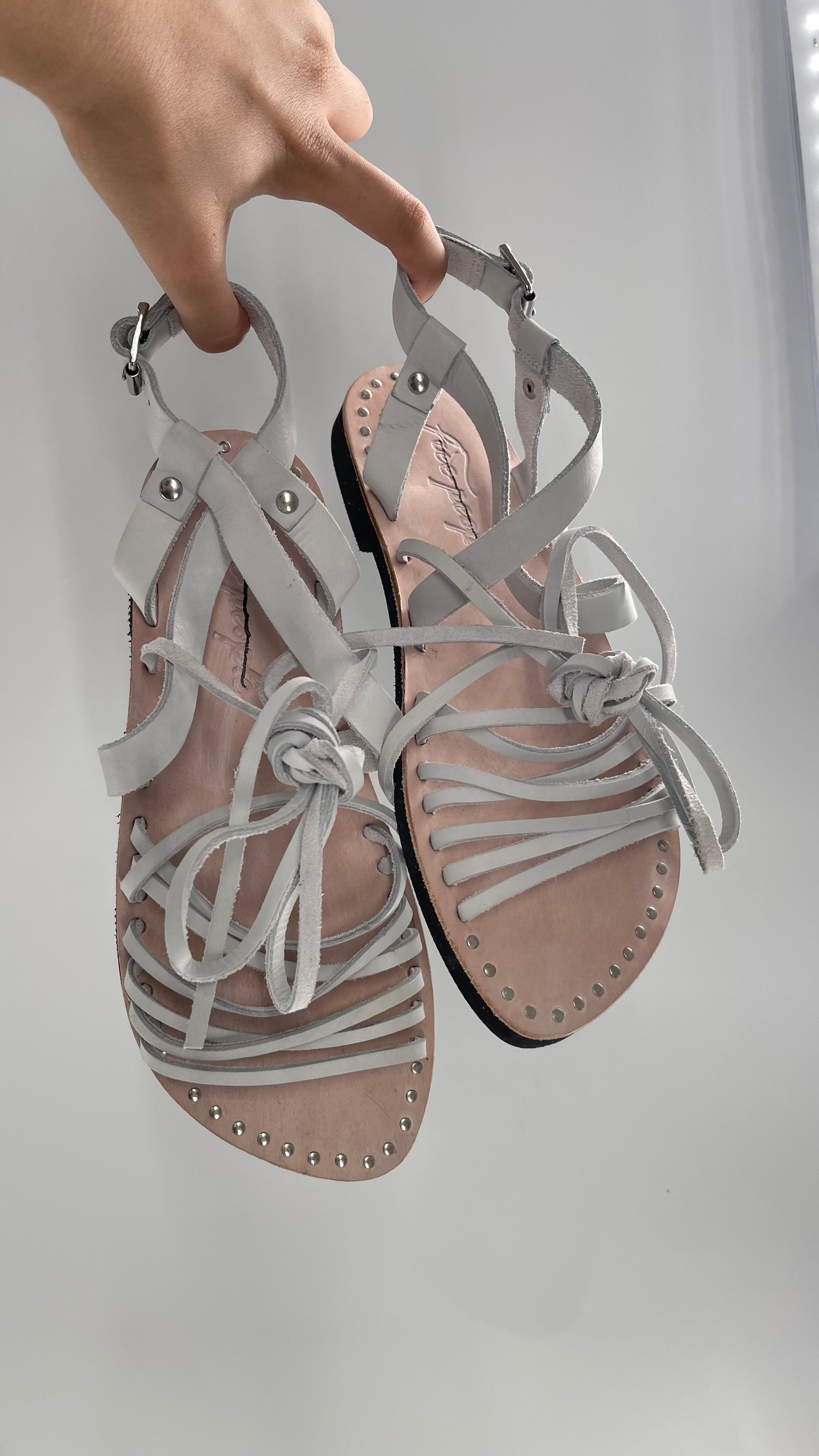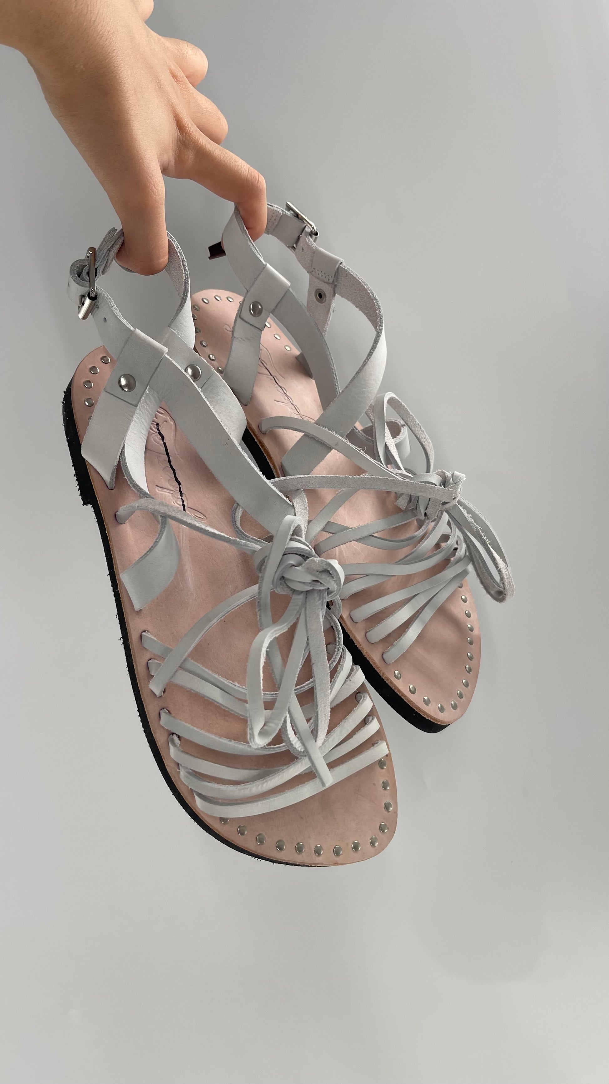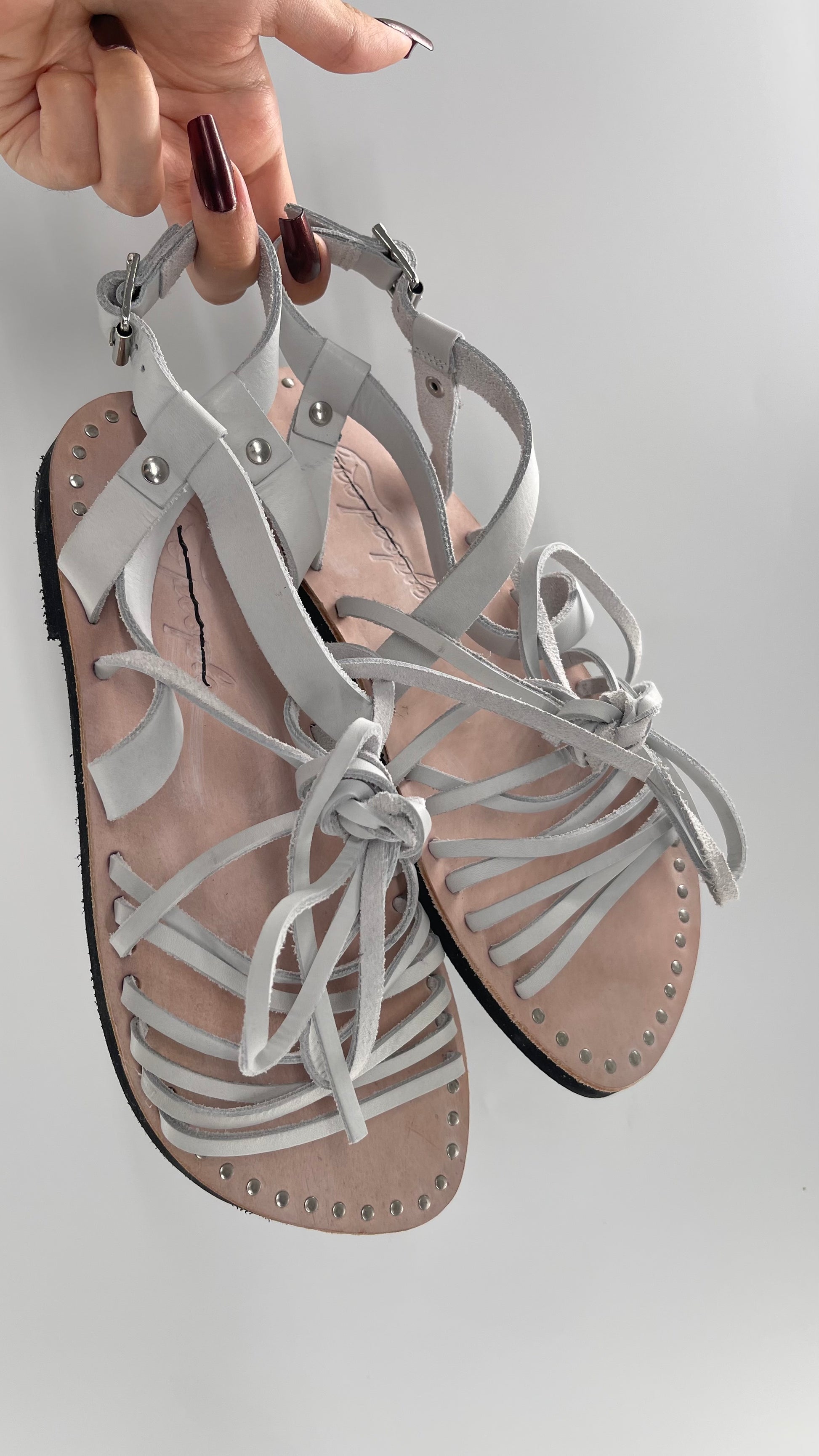 Free People Light Gray Willow Wrap Sandals with Studs (37)