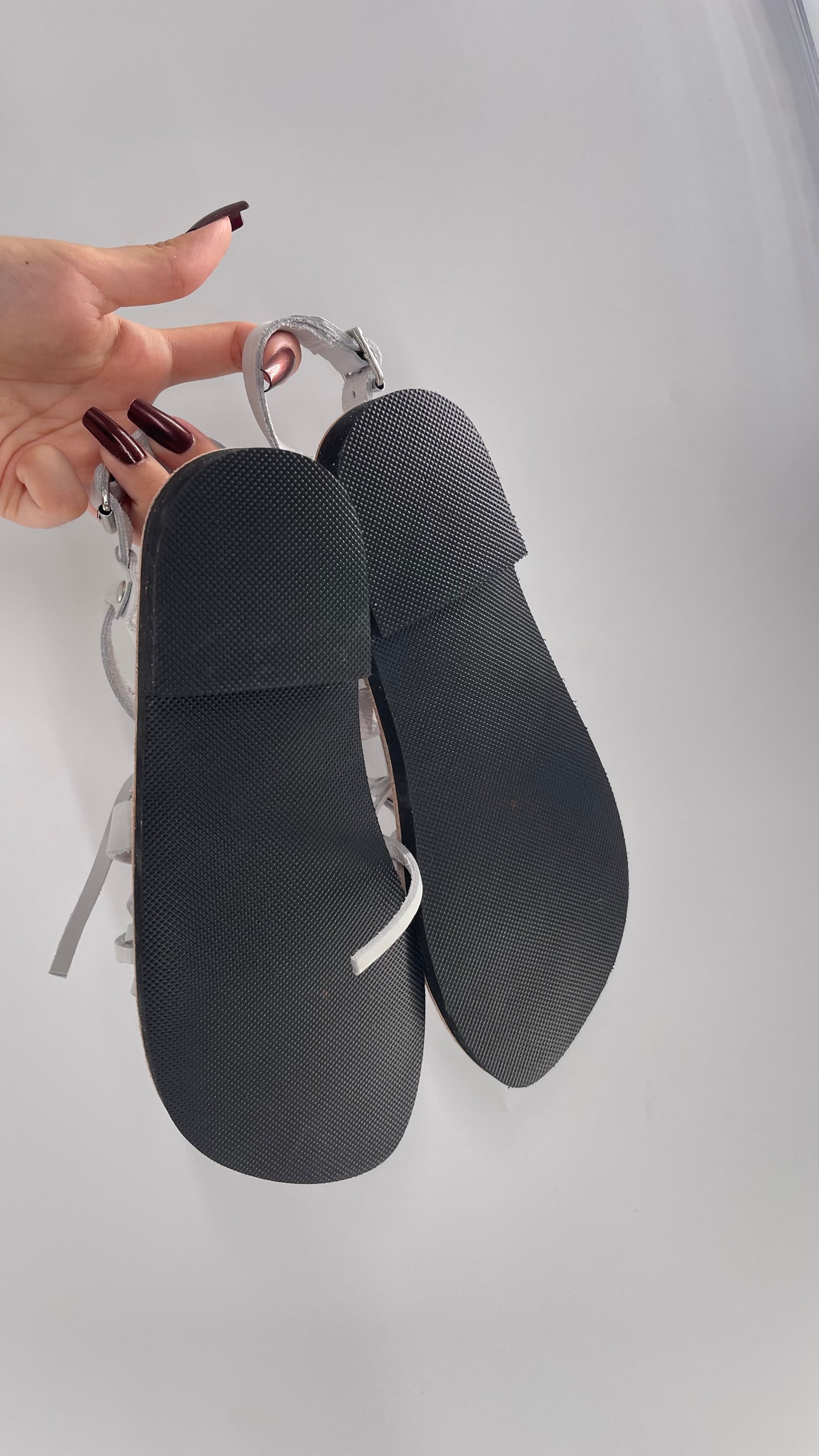 Free People Light Gray Willow Wrap Sandals with Studs