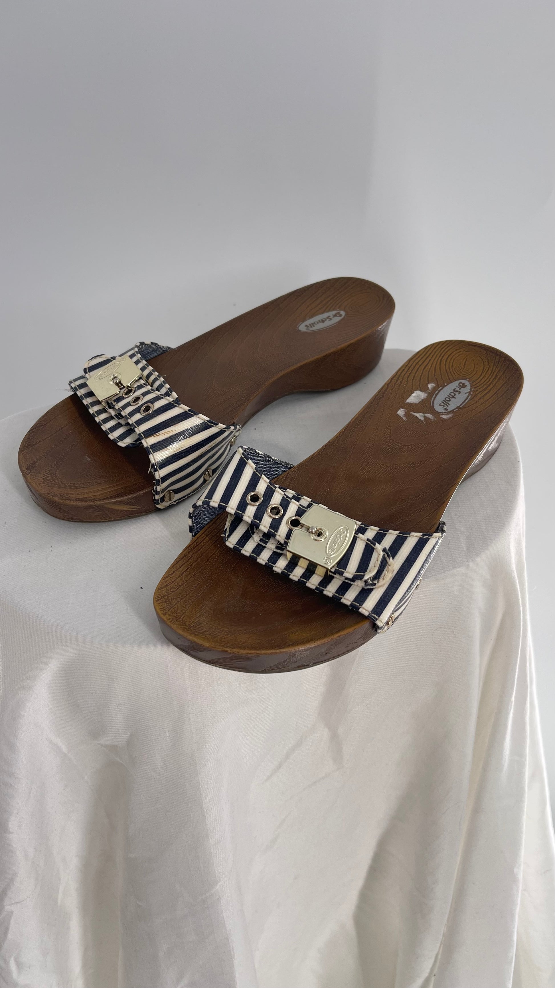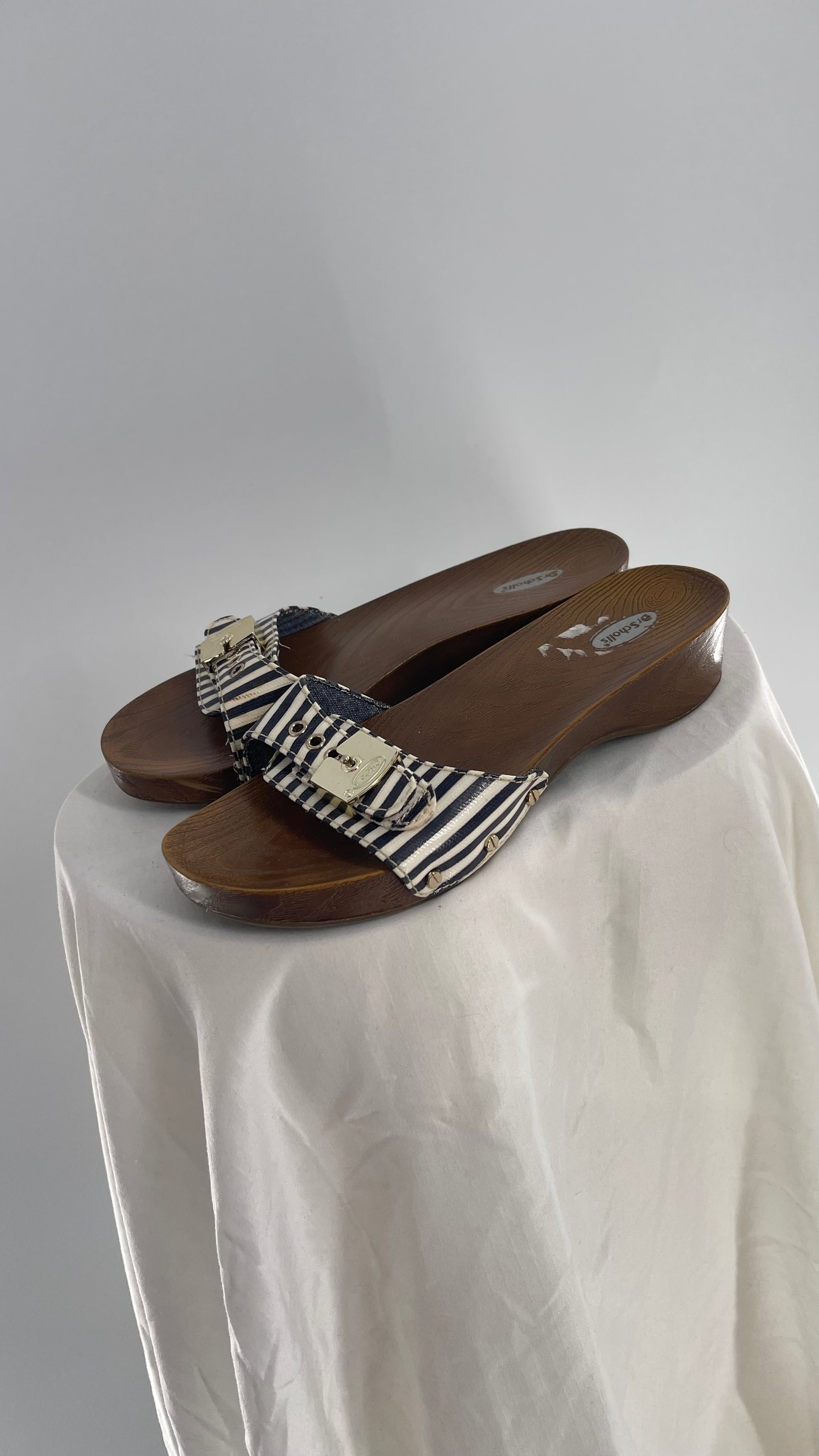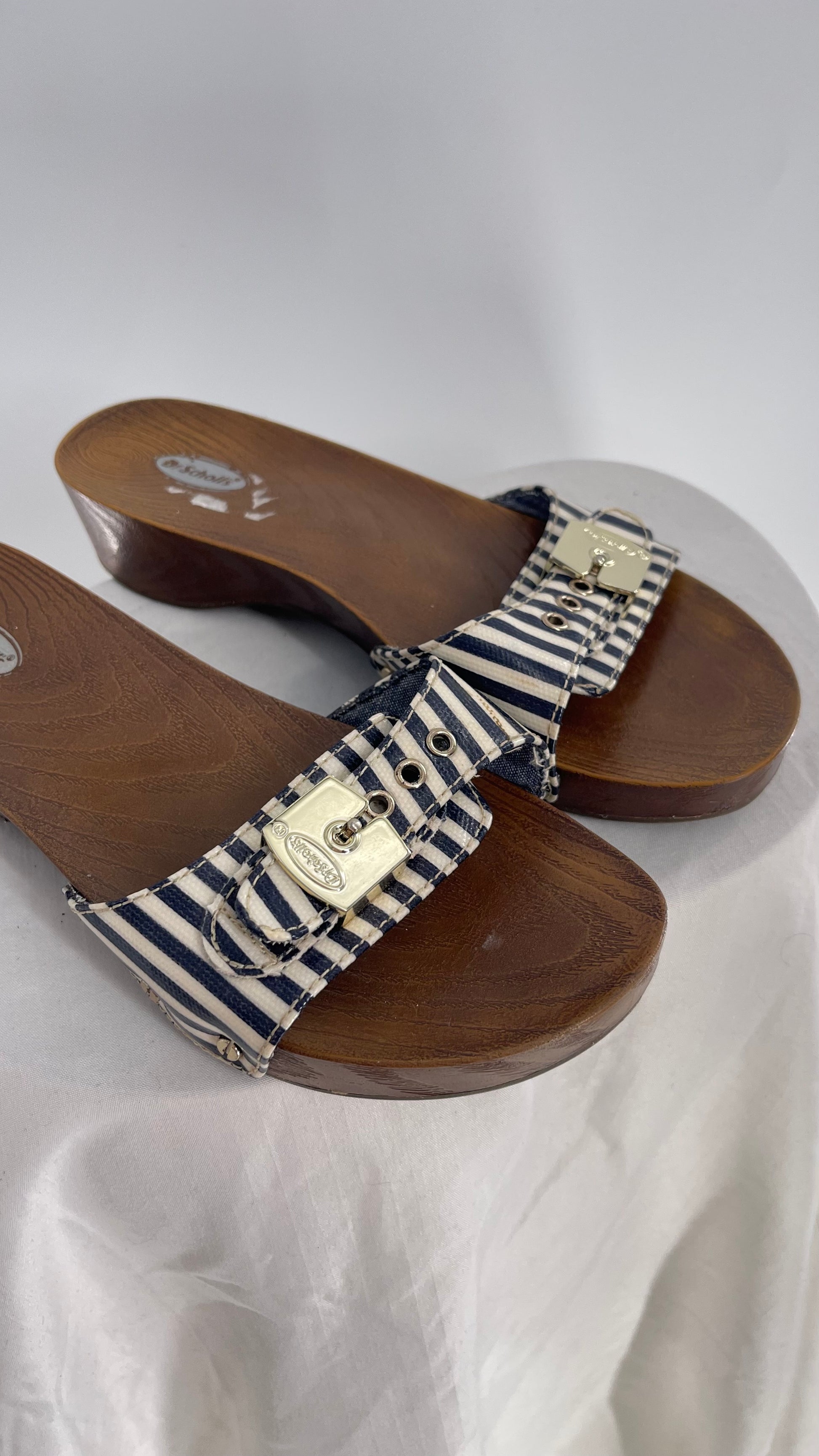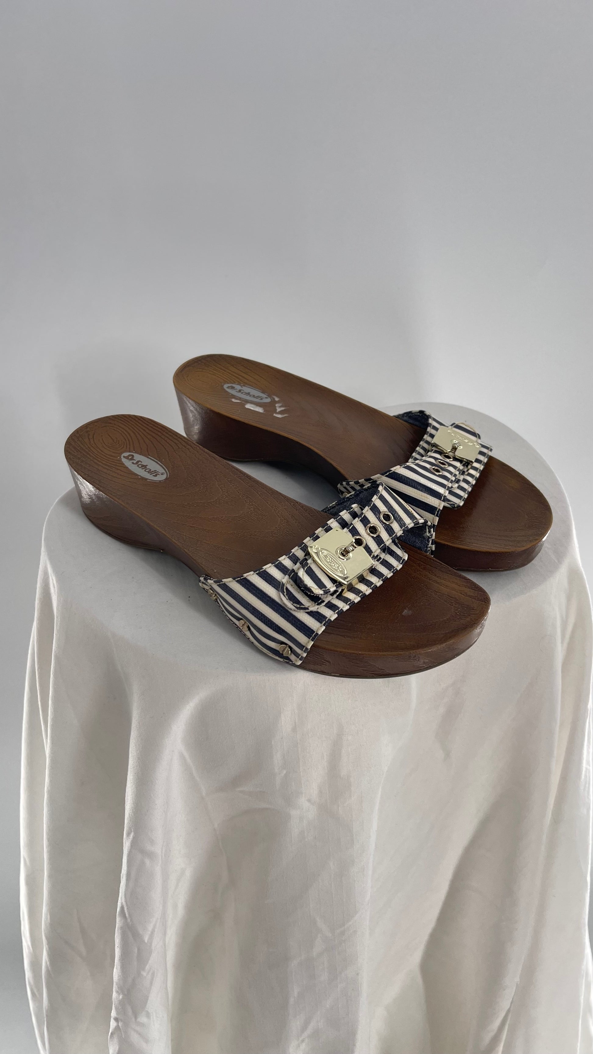 Vintage Dr. Scholls Striped Buckle Clog Sandal